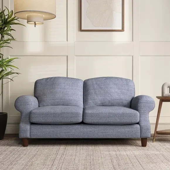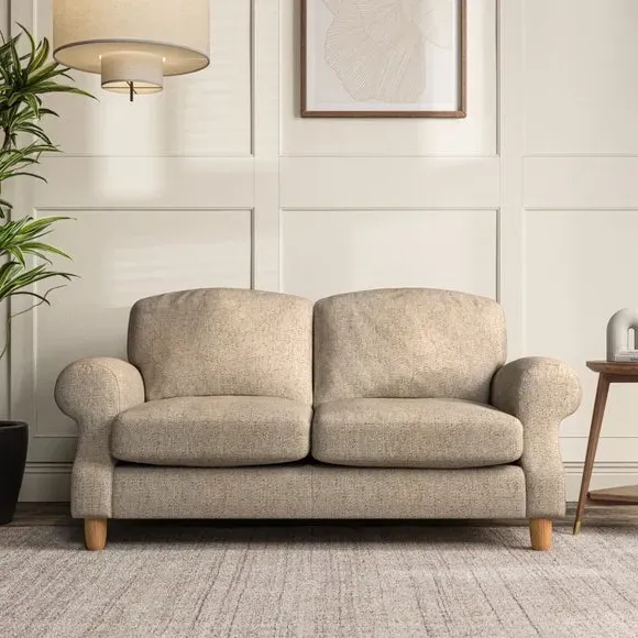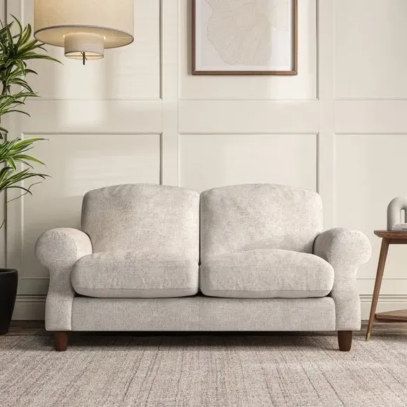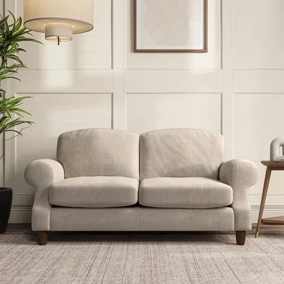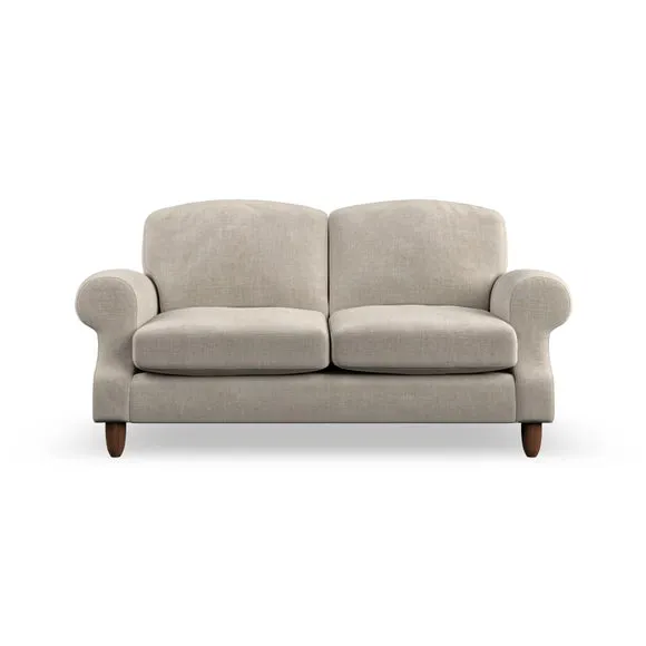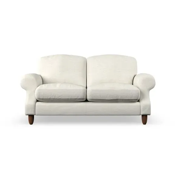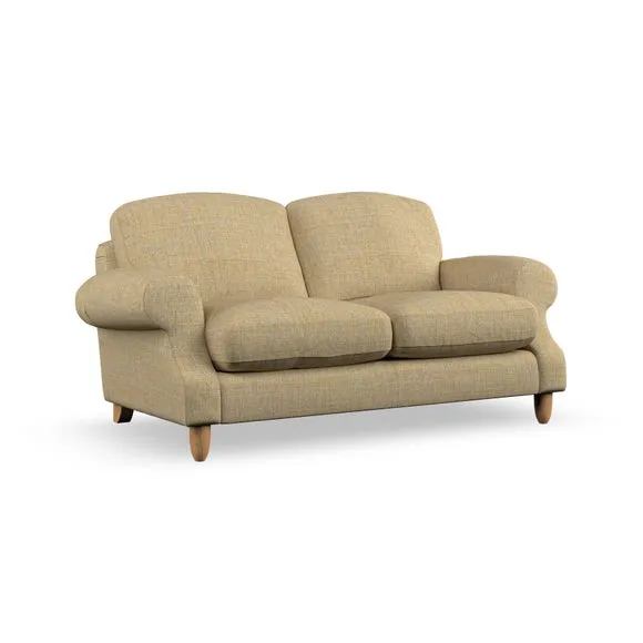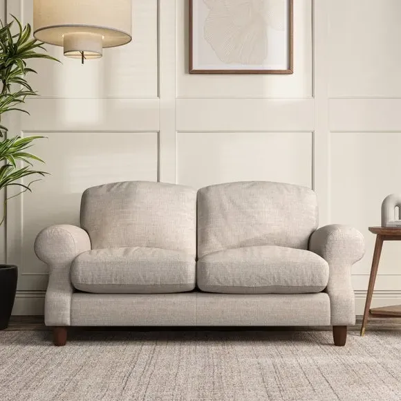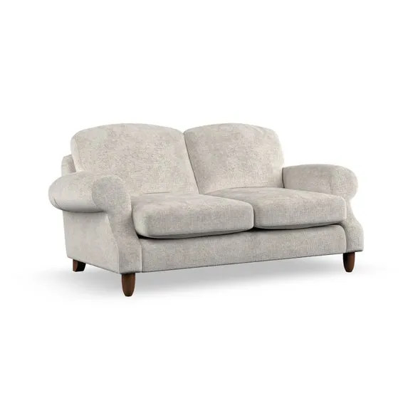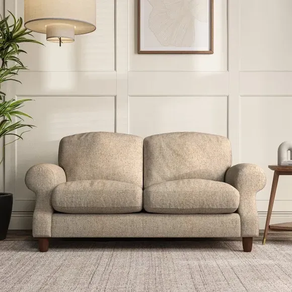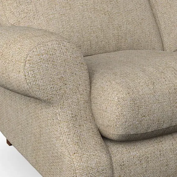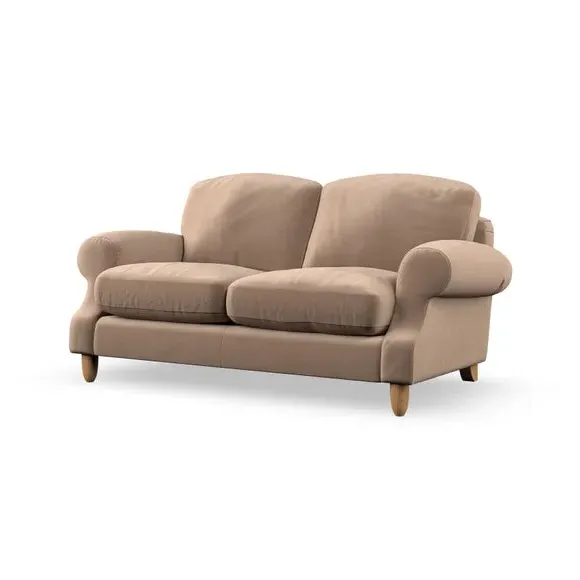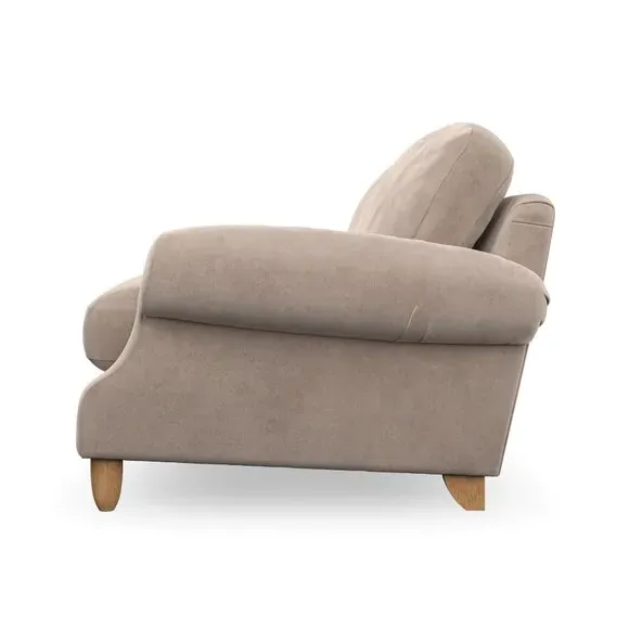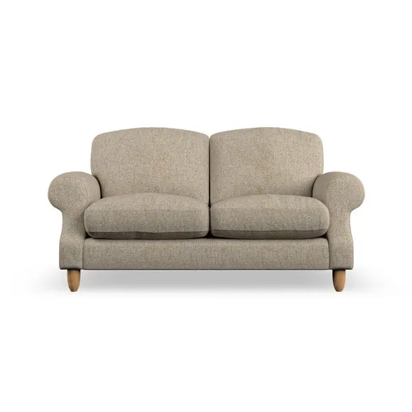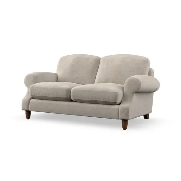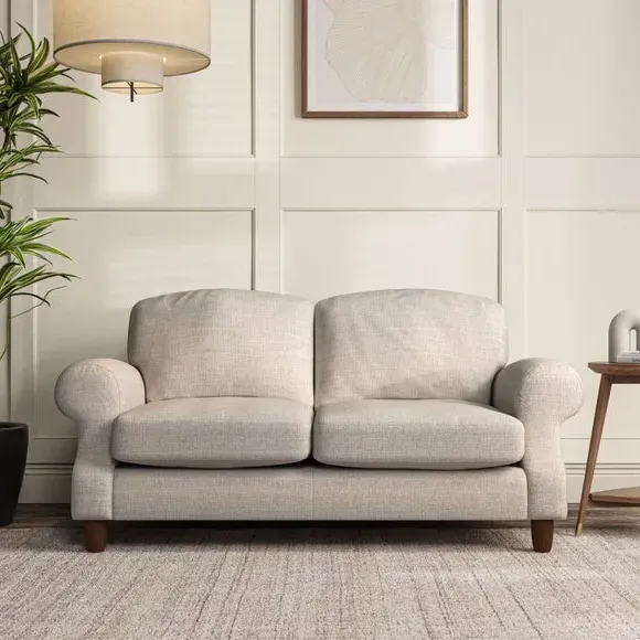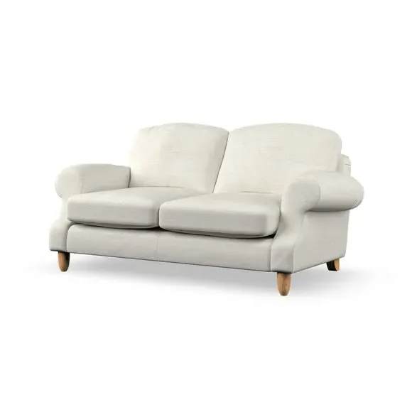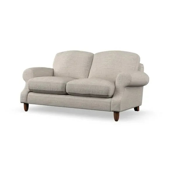 * Elegant style* Top stitched detail* High back cushions* Serpentine seat springs* Choose your support, fabric and leg colour This sofa features a cut back scroll arm and elegant, gently arched back cushions, providing both style and comfort. The top-stitched detail on the arm front adds a touch of sophistication. Higher back cushions with generous fibre filling offer excellent support for your back and shoulders. Customise your comfort by choosing between a low-maintenance foam seat or the inviting ‘Qualofill Blue’ fibre seat, made from 100% recycled polyester. Built for longevity, it includes serpentine seat springs for added comfort. The turned hardwood legs, available in two finishes, are easy to fit.