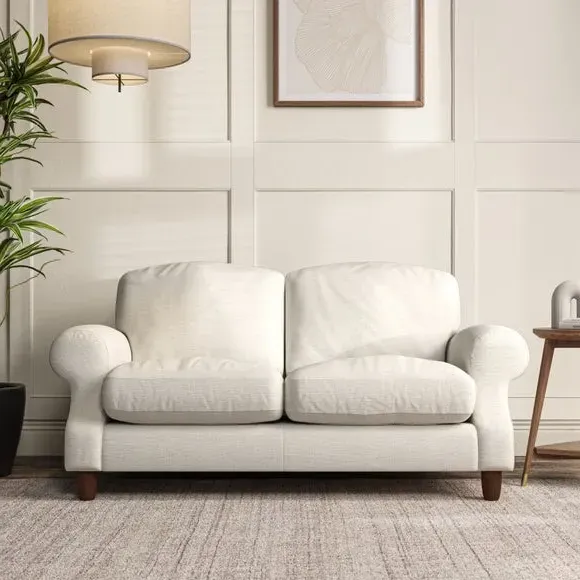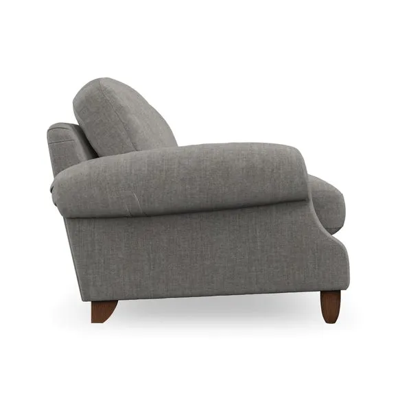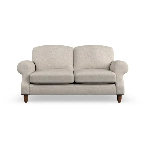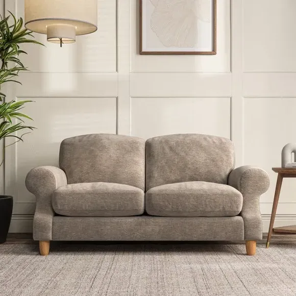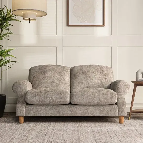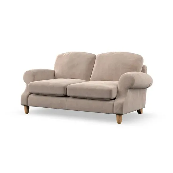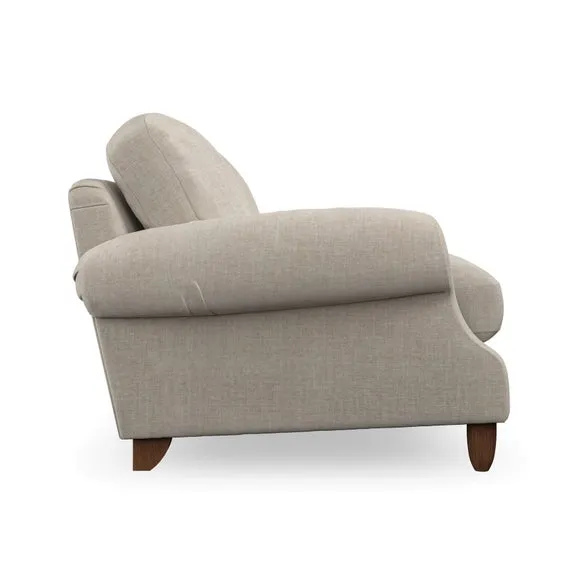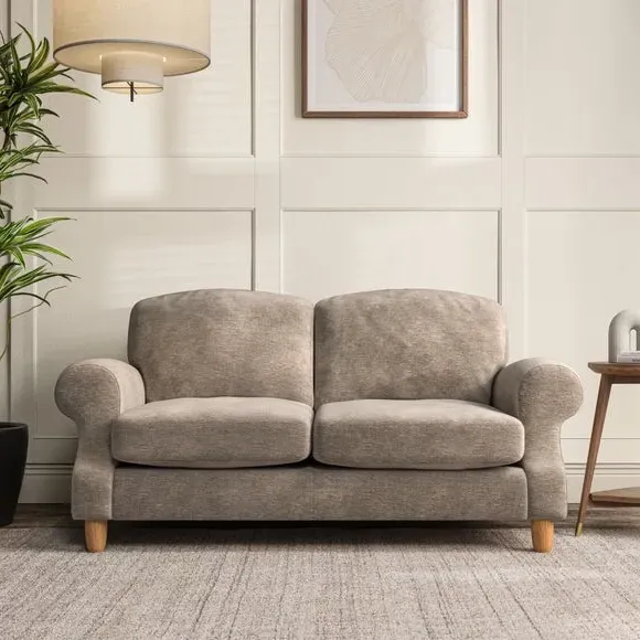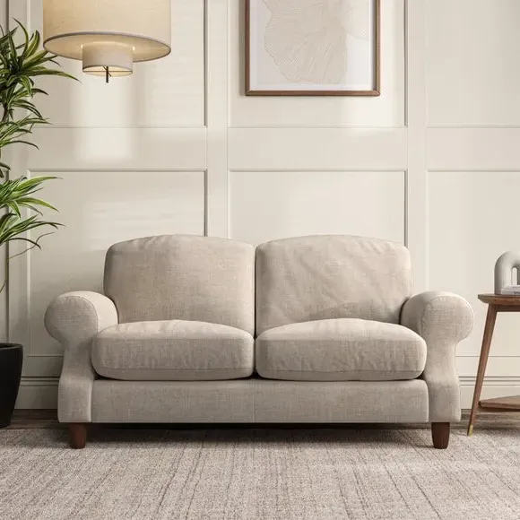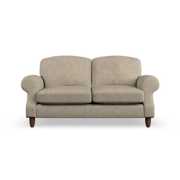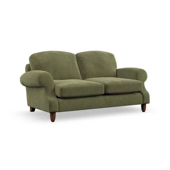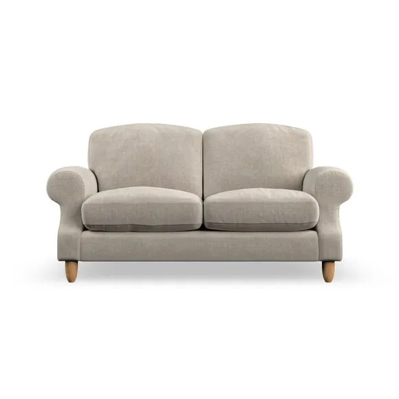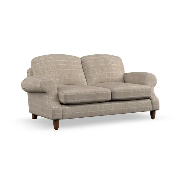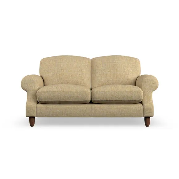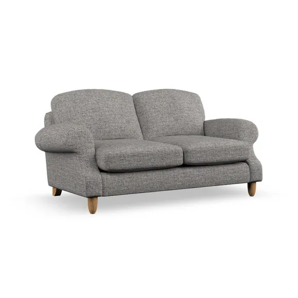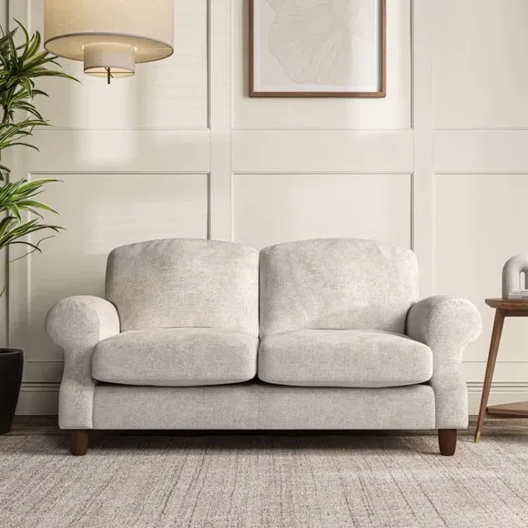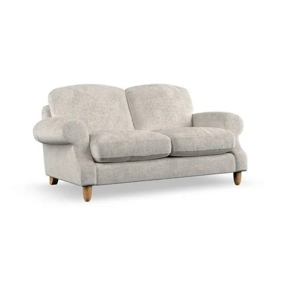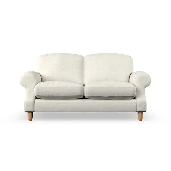* Elegant style* Top stitched detail* High back cushions* Serpentine seat springs* Choose your support, fabric and leg colour This sofa features a cut back scroll arm and elegant, gently arched back cushions, providing both style and comfort. The top-stitched detail on the arm front adds a touch of sophistication. Higher back cushions with generous fibre filling offer excellent support for your back and shoulders. Customise your comfort by choosing between a low-maintenance foam seat or the inviting ‘Qualofill Blue’ fibre seat, made from 100% recycled polyester. Built for longevity, it includes serpentine seat springs for added comfort. The turned hardwood legs, available in two finishes, are easy to fit.