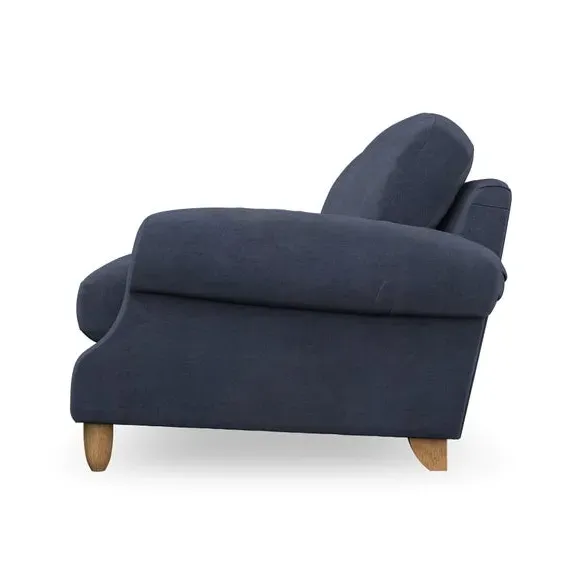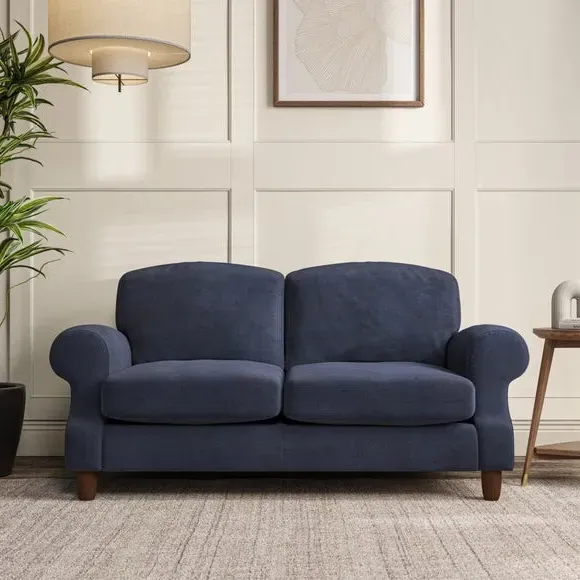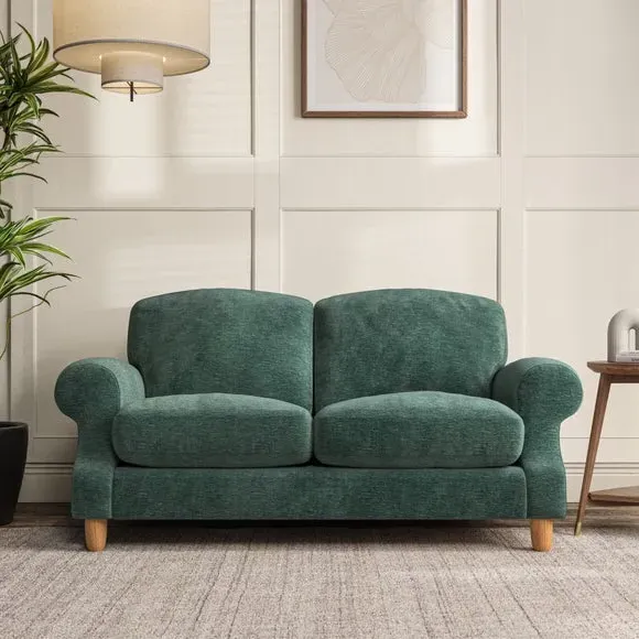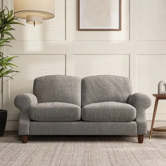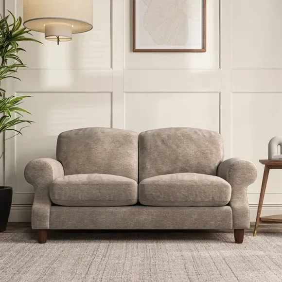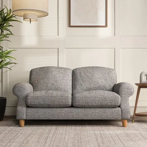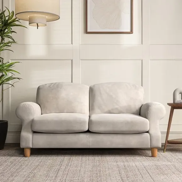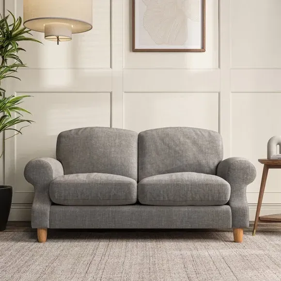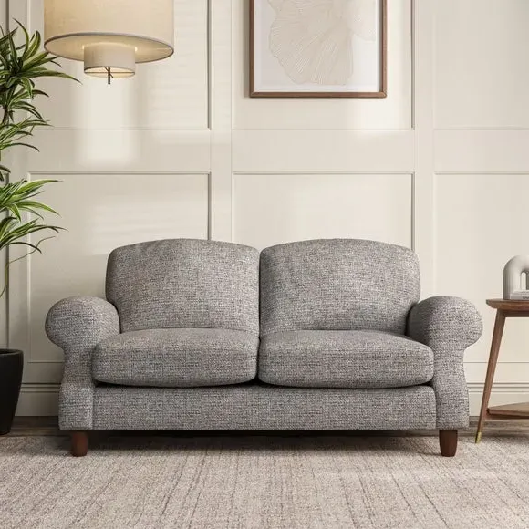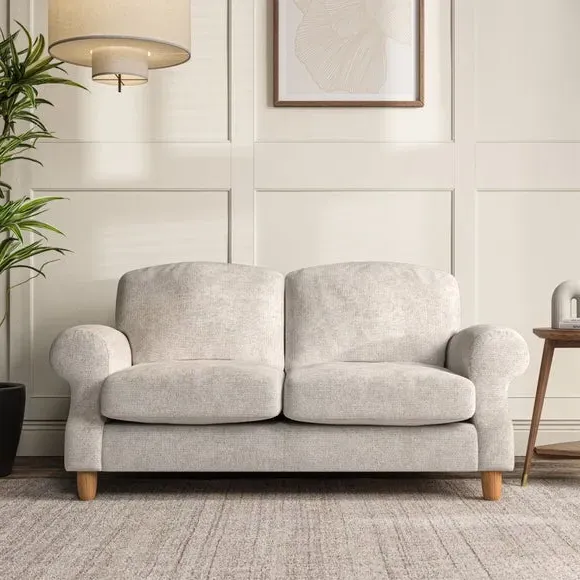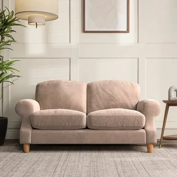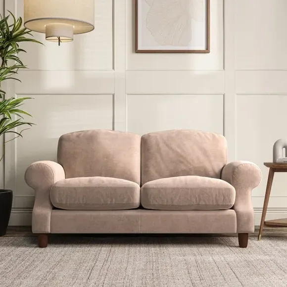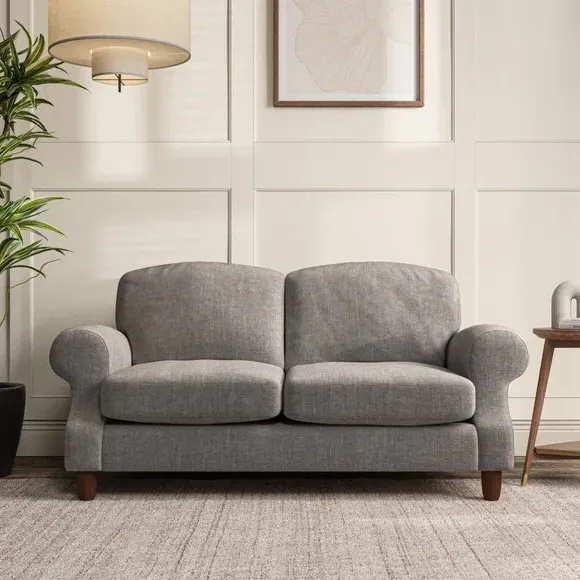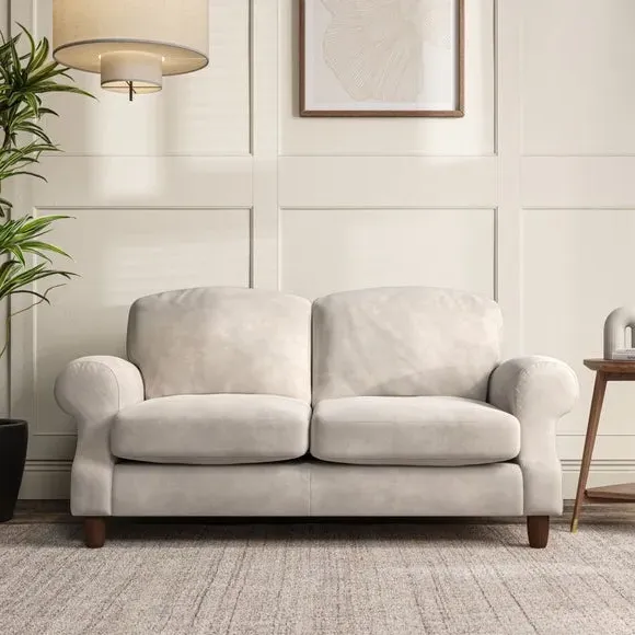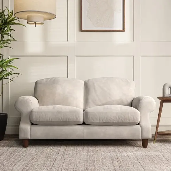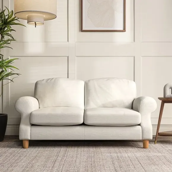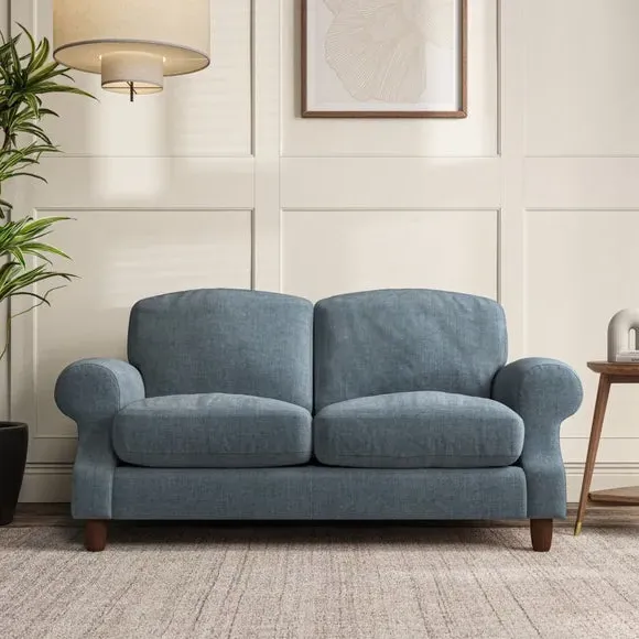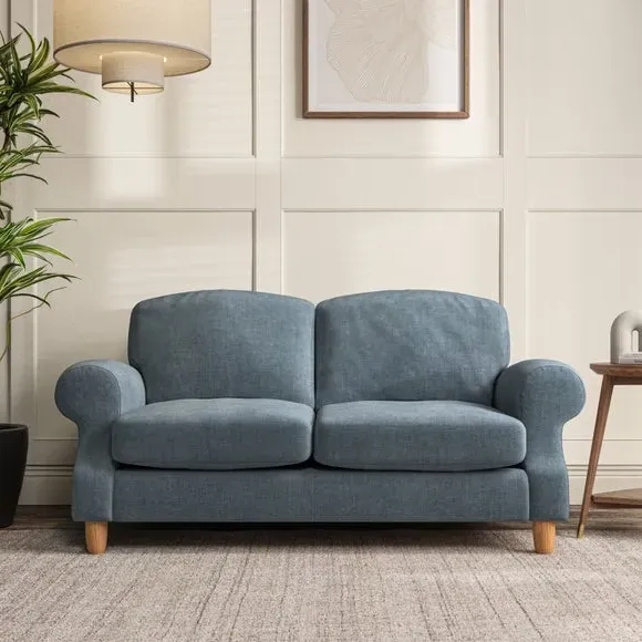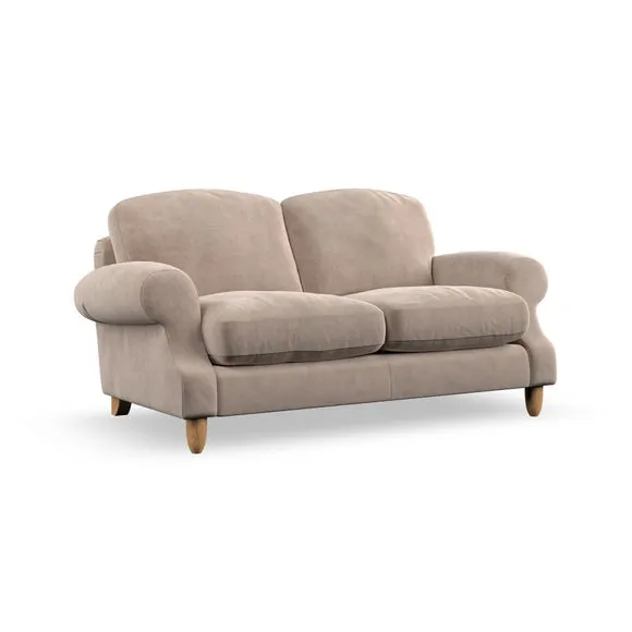 * Elegant style* Top stitched detail* High back cushions* Serpentine seat springs* Choose your support, fabric and leg colour This sofa features a cut back scroll arm and elegant, gently arched back cushions, providing both style and comfort. The top-stitched detail on the arm front adds a touch of sophistication. Higher back cushions with generous fibre filling offer excellent support for your back and shoulders. Customise your comfort by choosing between a low-maintenance foam seat or the inviting ‘Qualofill Blue’ fibre seat, made from 100% recycled polyester. Built for longevity, it includes serpentine seat springs for added comfort. The turned hardwood legs, available in two finishes, are easy to fit.