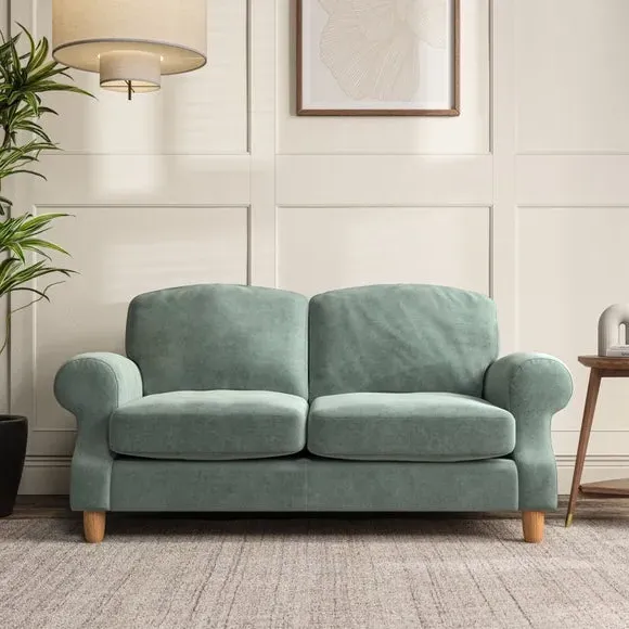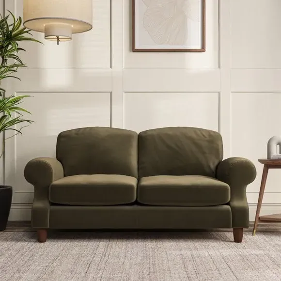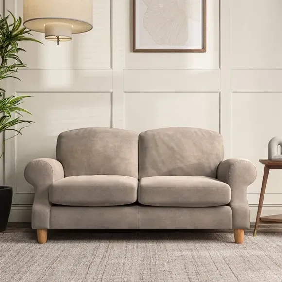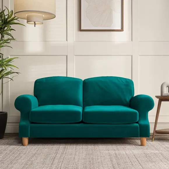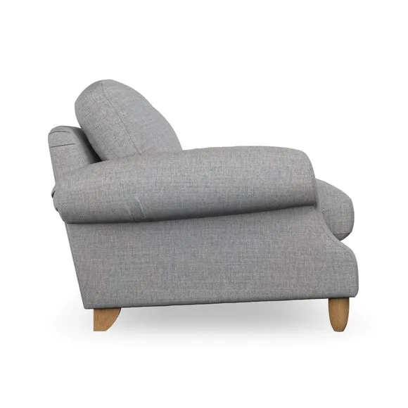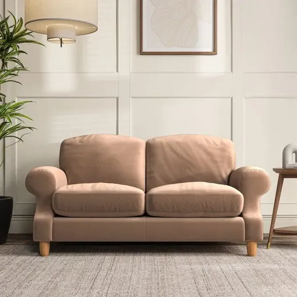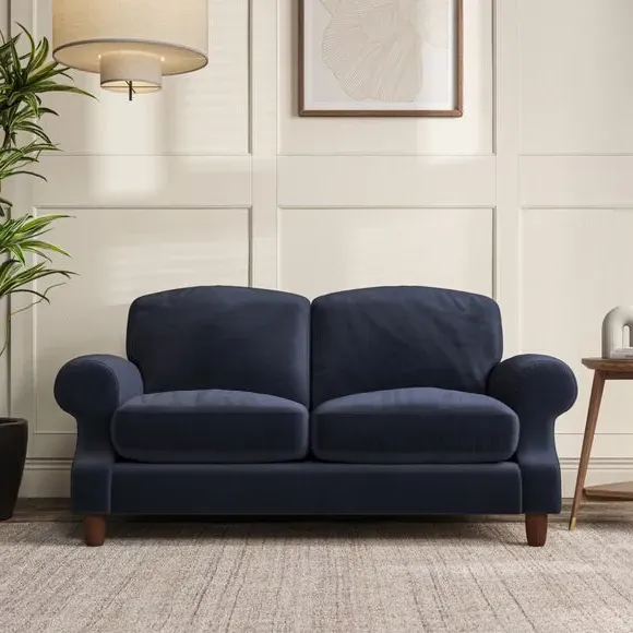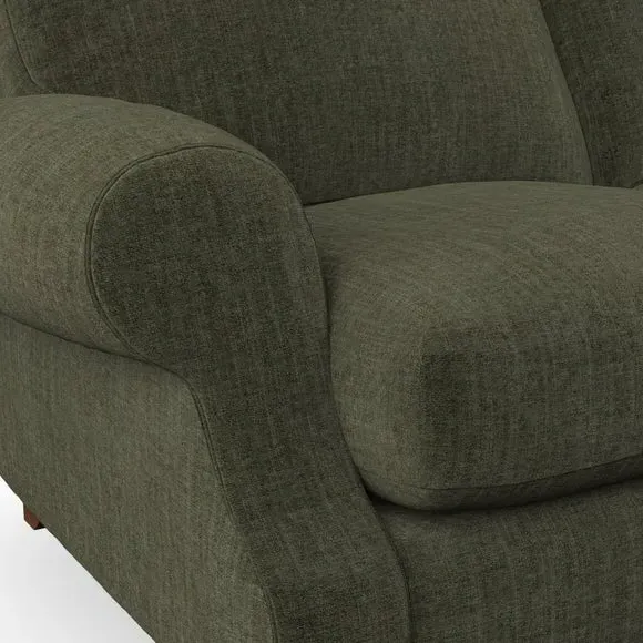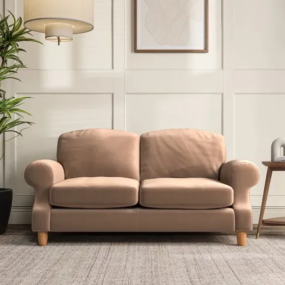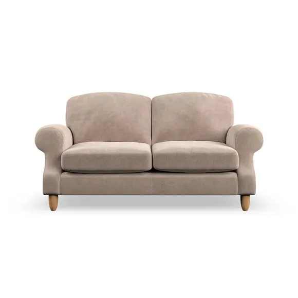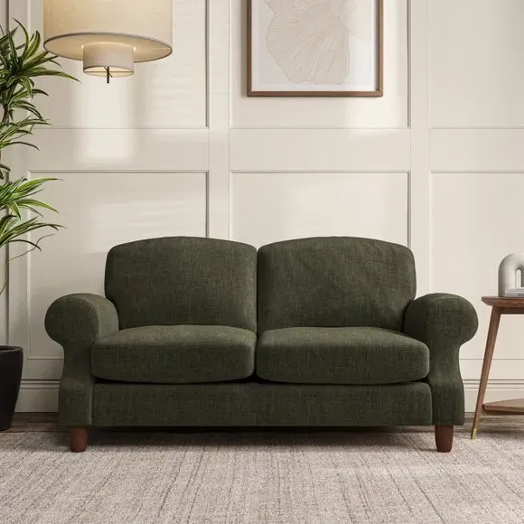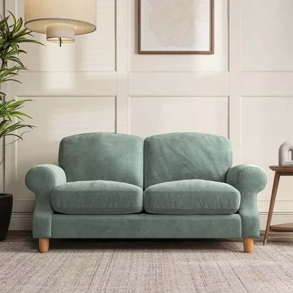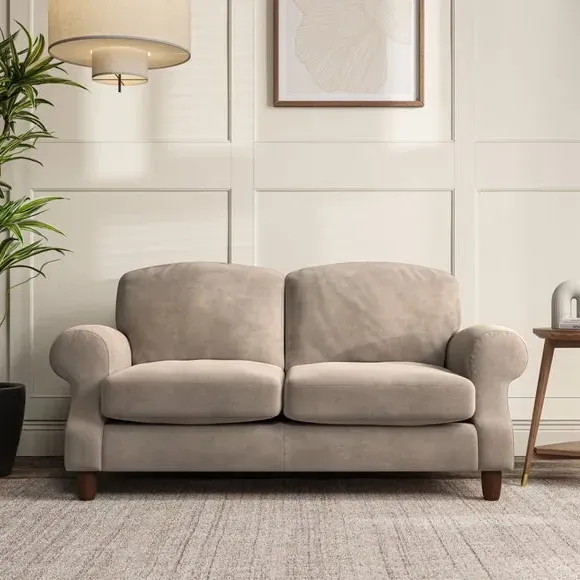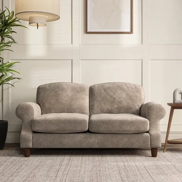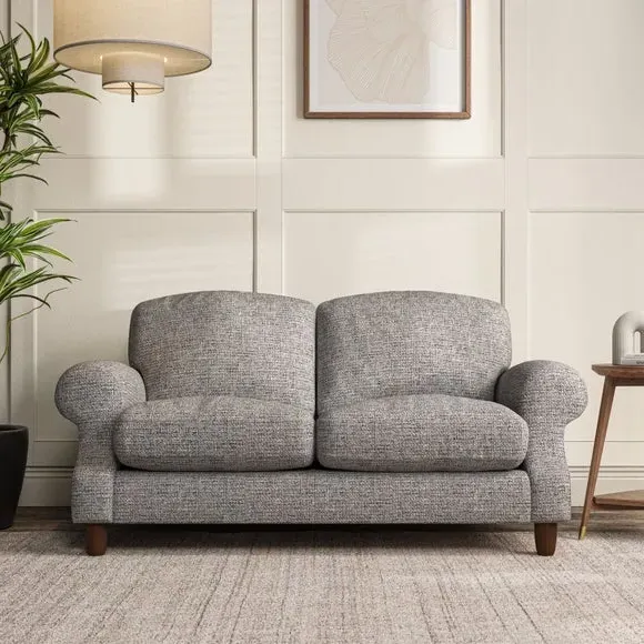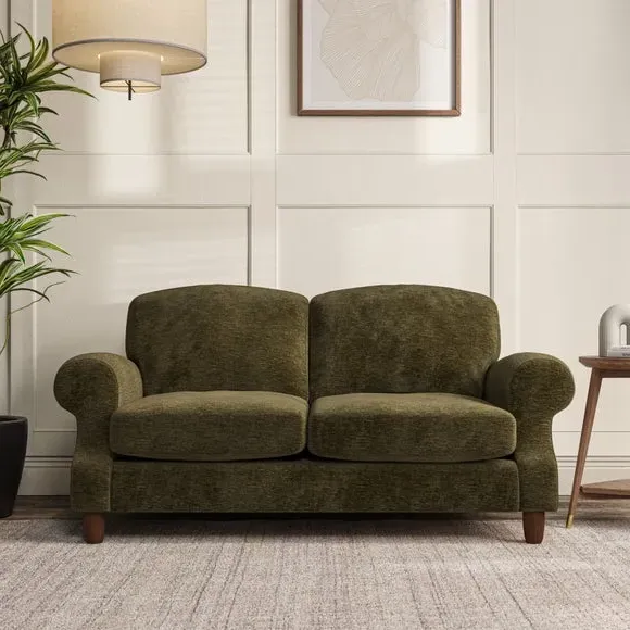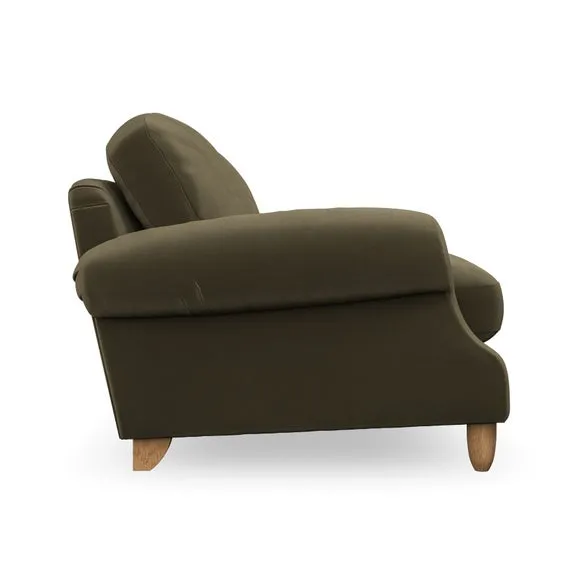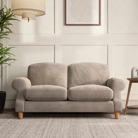 * Elegant style* Top stitched detail* High back cushions* Serpentine seat springs* Choose your support, fabric and leg colour This sofa features a cut back scroll arm and elegant, gently arched back cushions, providing both style and comfort. The top-stitched detail on the arm front adds a touch of sophistication. Higher back cushions with generous fibre filling offer excellent support for your back and shoulders. Customise your comfort by choosing between a low-maintenance foam seat or the inviting ‘Qualofill Blue’ fibre seat, made from 100% recycled polyester. Built for longevity, it includes serpentine seat springs for added comfort. The turned hardwood legs, available in two finishes, are easy to fit.
