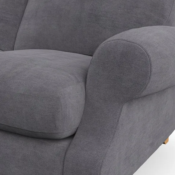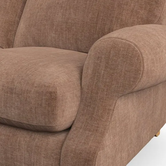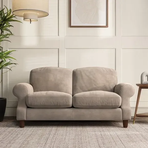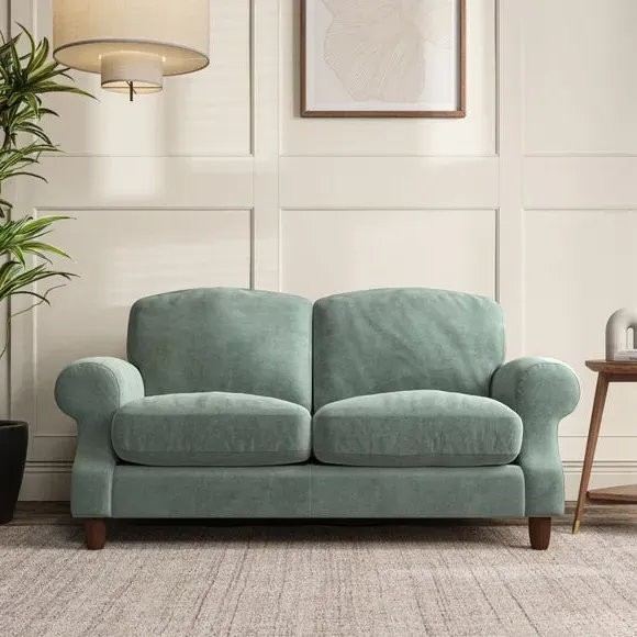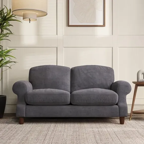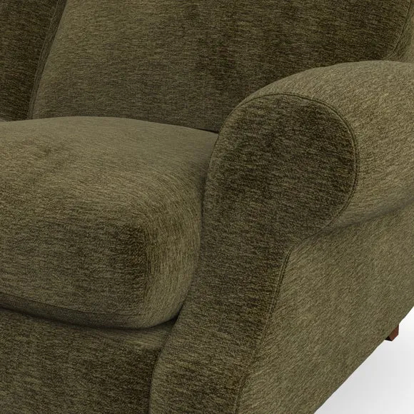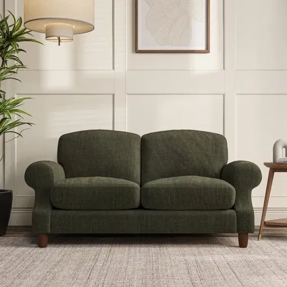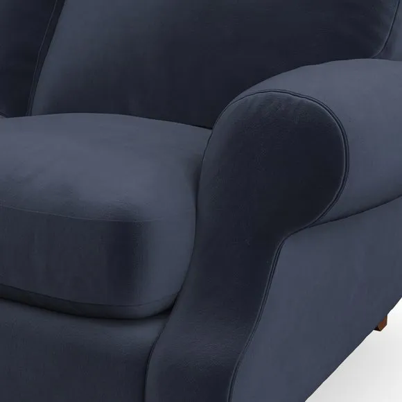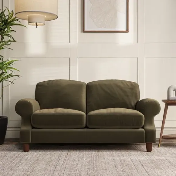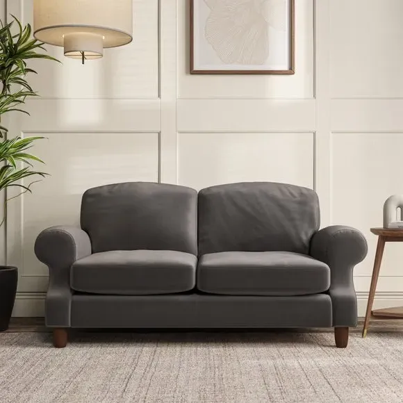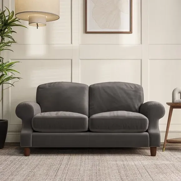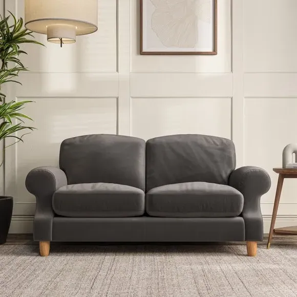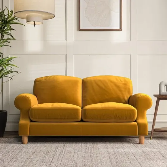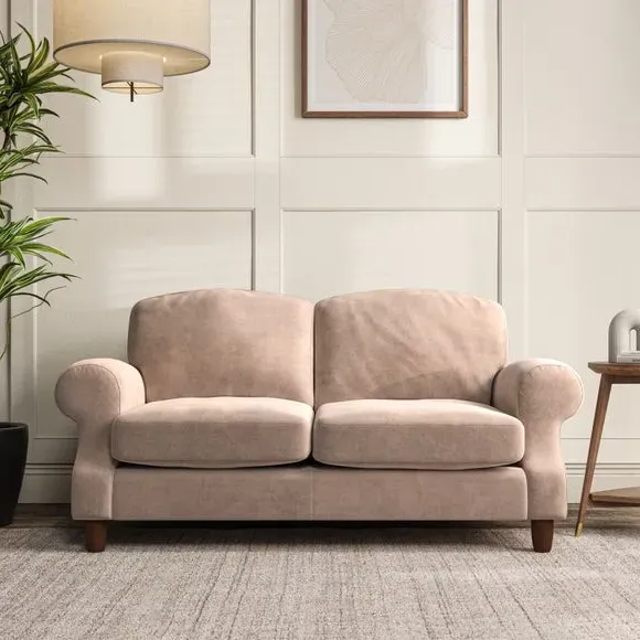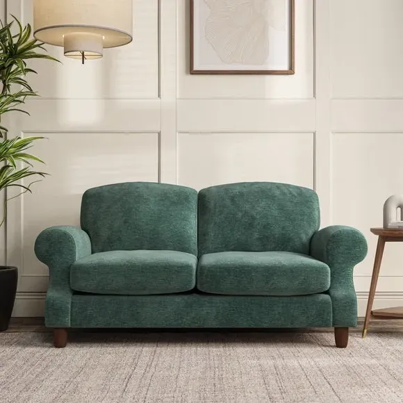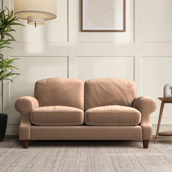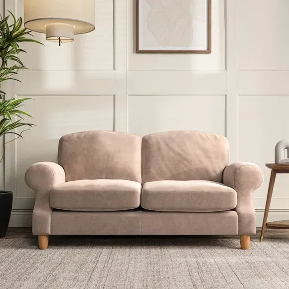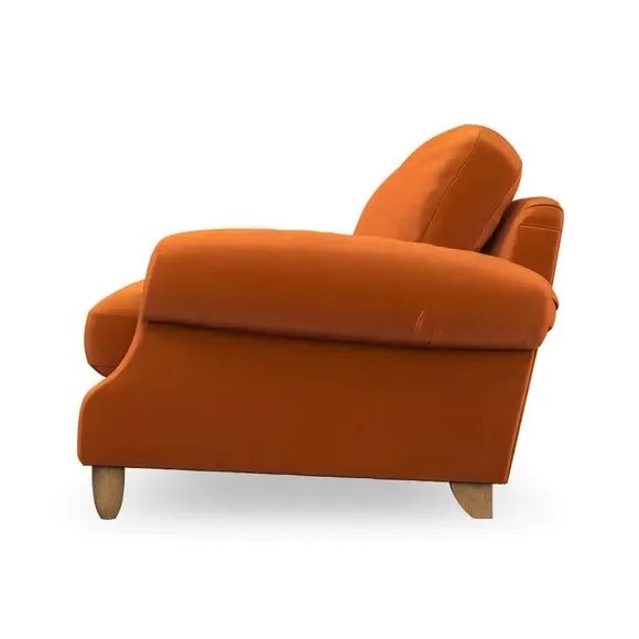 * Elegant style* Top stitched detail* High back cushions* Serpentine seat springs* Choose your support, fabric and leg colour This sofa features a cut back scroll arm and elegant, gently arched back cushions, providing both style and comfort. The top-stitched detail on the arm front adds a touch of sophistication. Higher back cushions with generous fibre filling offer excellent support for your back and shoulders. Customise your comfort by choosing between a low-maintenance foam seat or the inviting ‘Qualofill Blue’ fibre seat, made from 100% recycled polyester. Built for longevity, it includes serpentine seat springs for added comfort. The turned hardwood legs, available in two finishes, are easy to fit.