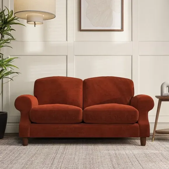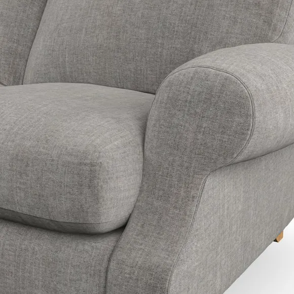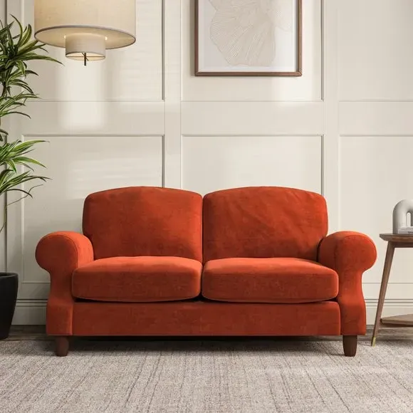 The sofa combines elegant style with its cut back scroll arms and gently arched back cushions. Its high back cushions with generous fibre filling provide excellent support for your back and shoulders, while the top-stitched detail on the arm front adds sophistication. The serpentine seat springs offer added comfort, and the turned hardwood legs ensure durability with easy fitting.