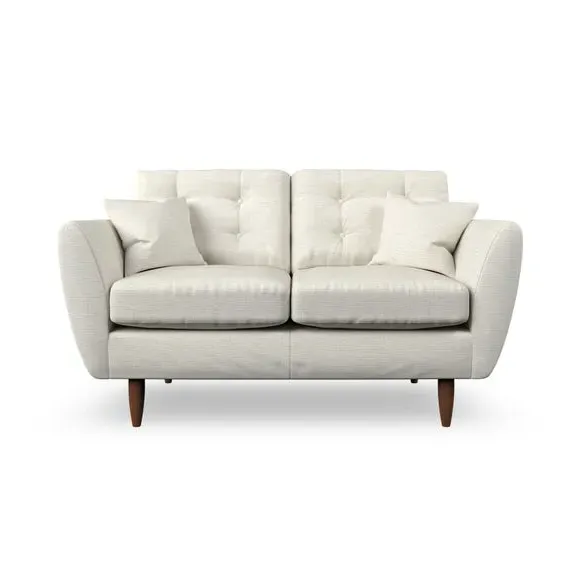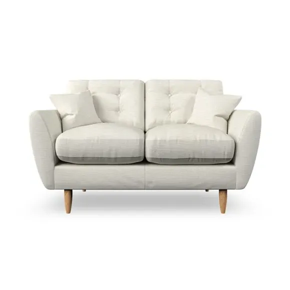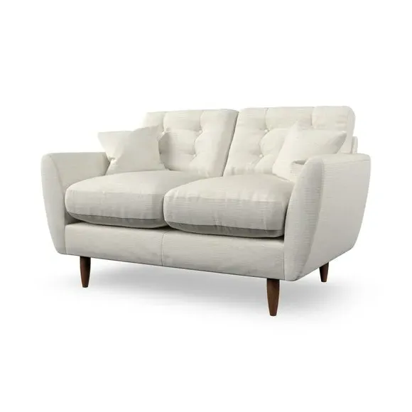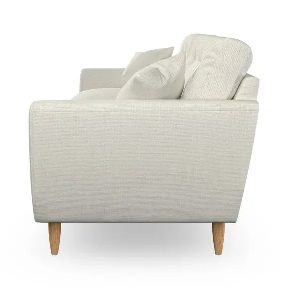 The sofa combines Scandinavian design with tailored comfort, featuring tear-drop shaped arms and fibre-filled scatter cushions. Its serpentine springs provide lasting support, while the top-stitched arm details add refined finishing. The back cushions include double-row button pull detailing for both support and visual appeal, and the hardwood legs offer durability with multiple finish options.