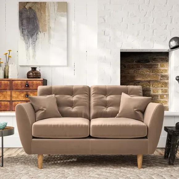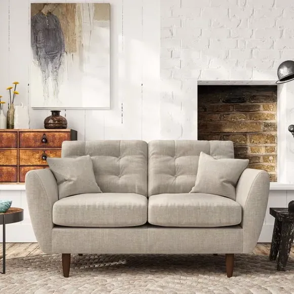 * Scandi design* Tear drop arms* Scatter cushions* Top stitched arm details* Serpentine seat springs* Choose your support, fabric and leg colour The Anders 2 Seater Sofa blends Scandinavian-inspired elegance with tailored comfort, featuring tear-drop shaped arms, fibre-filled scatter cushions, and sleek hardwood legs in a choice of finishes. The back cushions, with a stylish double-row button pull detail, provide both support and charm, while the seat can be customised with either a supportive foam option or the eco-friendly ‘Qualofill Blue’ fibre filling made from 100% recycled polyester. Durable serpentine springs ensure long-lasting comfort, making the Anders a versatile and timeless addition to any living space.