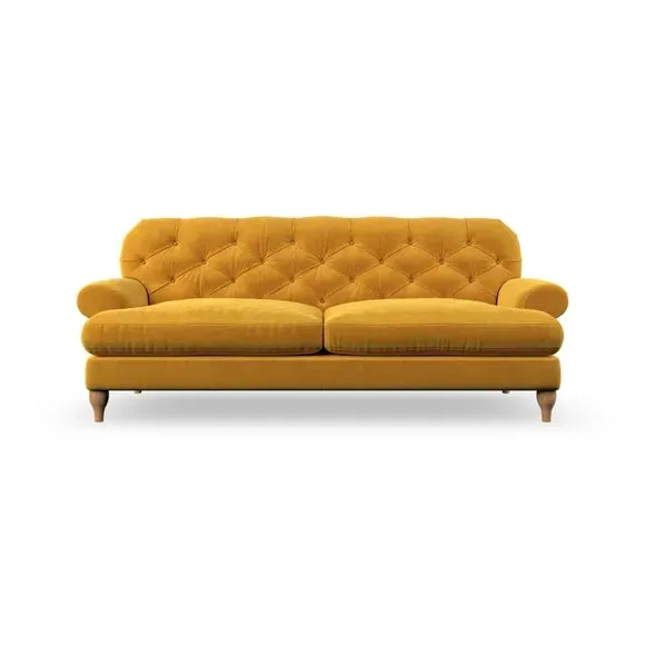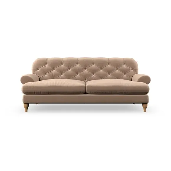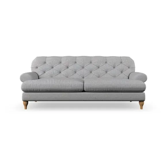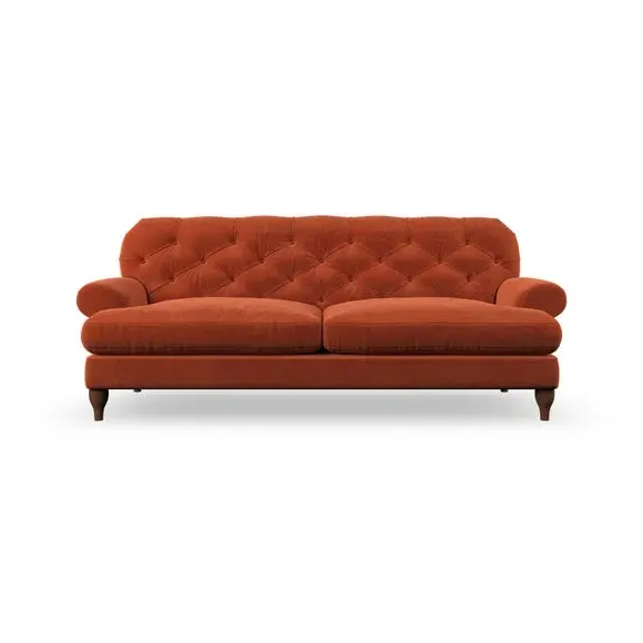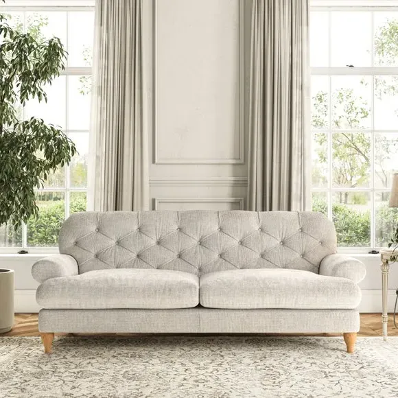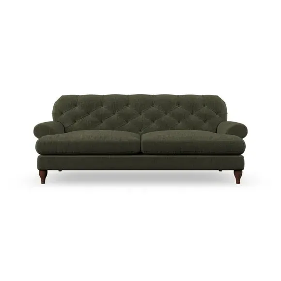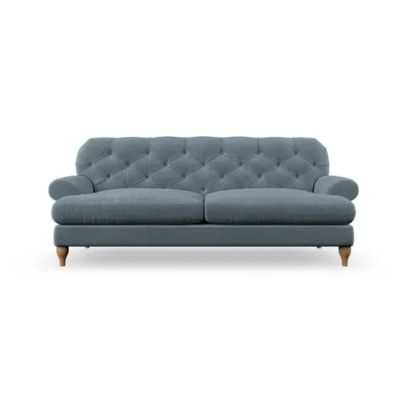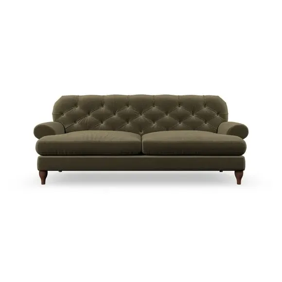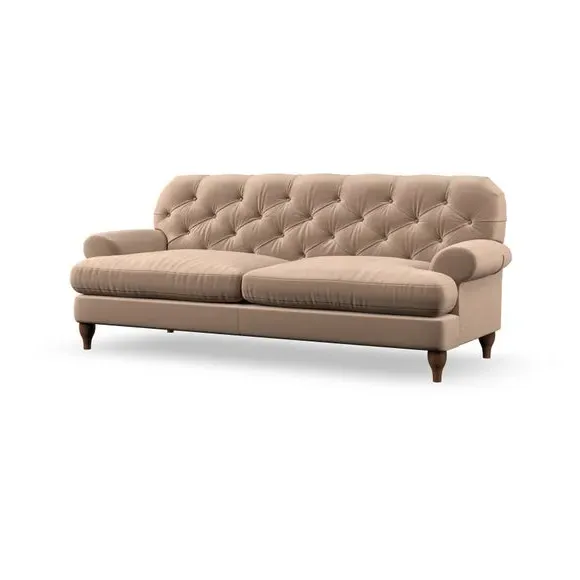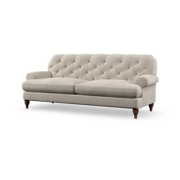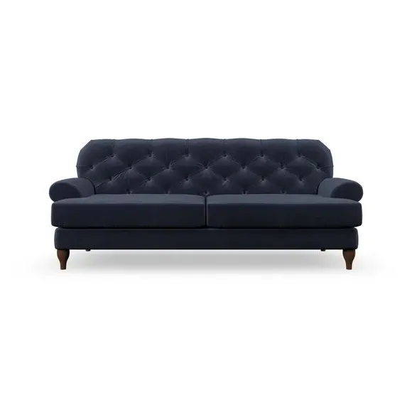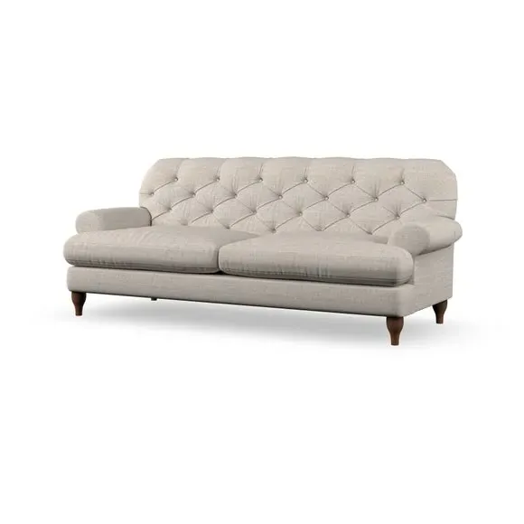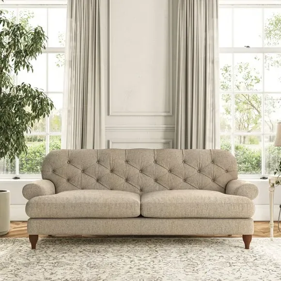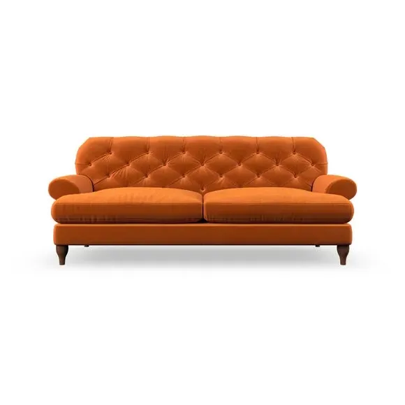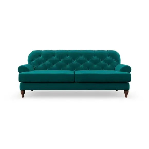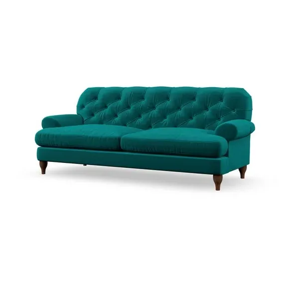 * Chesterfield style* Deep button detail* Scroll arms* Serpentine seat springs* Choose your support, fabric and leg colour This sofa boasts a high, supportive back and elegant compact scroll arms, providing both style and comfort. The serpentine seat springs and superloop sprung back ensure lasting durability and support. Choose between a low-maintenance foam seat or the inviting ‘Qualofill Blue’ fibre seat, crafted from 100% recycled polyester. The ‘T’ cushion seat and arm design offer a compact and contemporary look, enhanced by self-sewn seat cushions. This sofa also features ‘hour glass’ shaped turned hardwood legs in two finishes, which are easy to fit. Made to order, this sofa can be tailored to your exact preferences, offering a wide selection of colours, fabrics, foot types, and fillings for a truly personalised and comfortable piece.