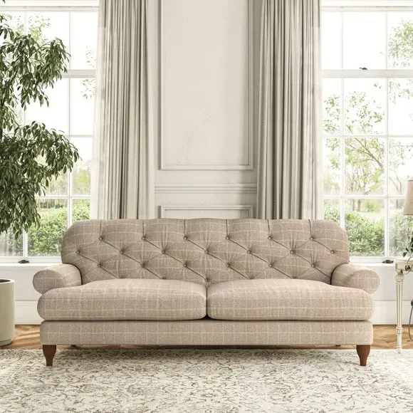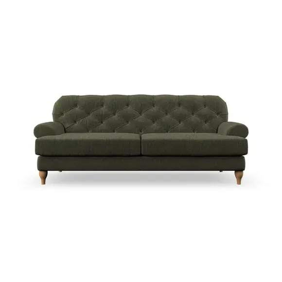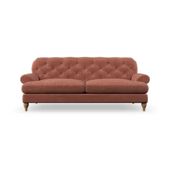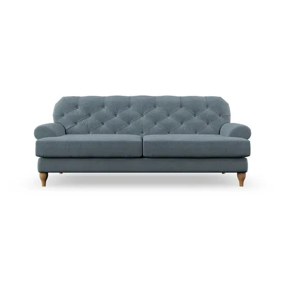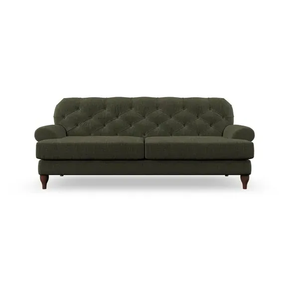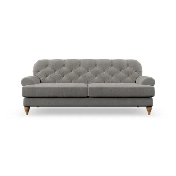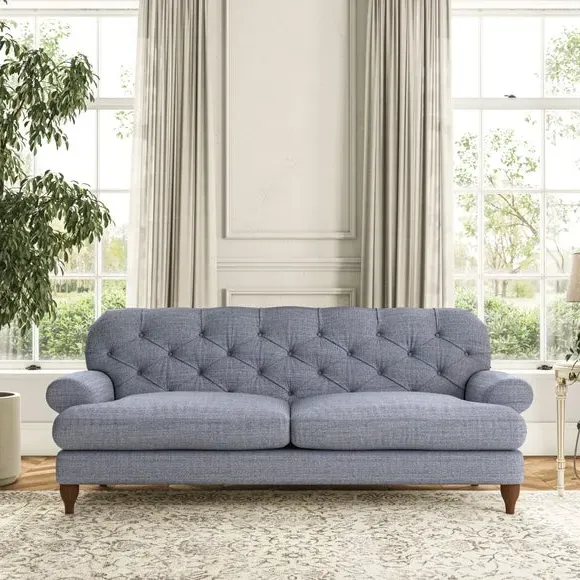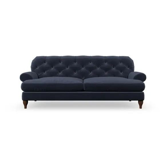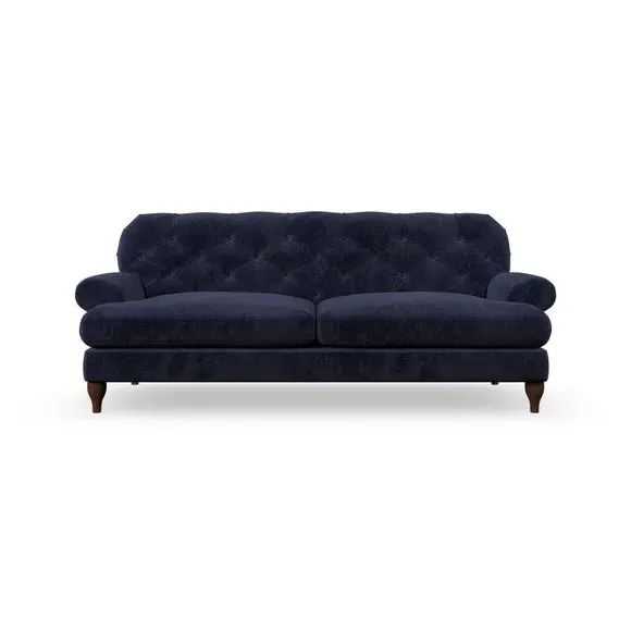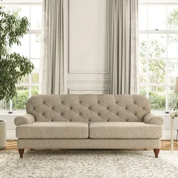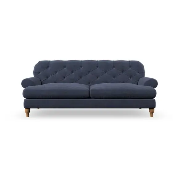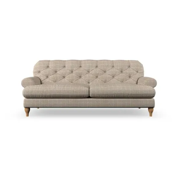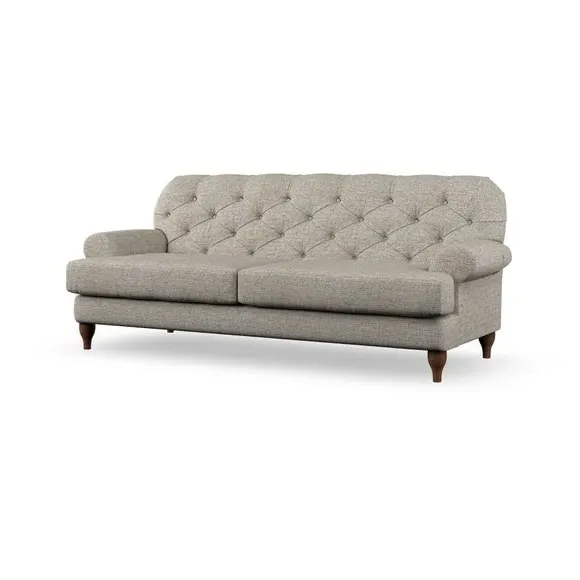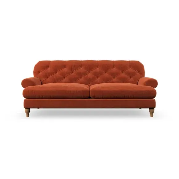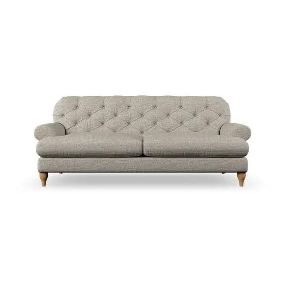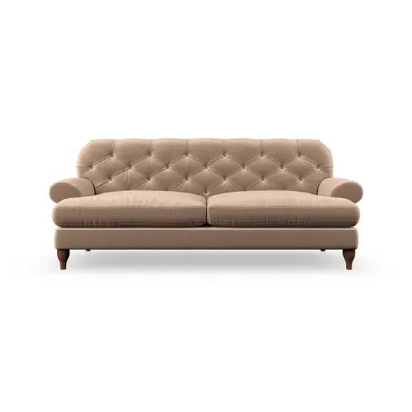 * Chesterfield style* Deep button detail* Scroll arms* Serpentine seat springs* Choose your support, fabric and leg colour This sofa boasts a high, supportive back and elegant compact scroll arms, providing both style and comfort. The serpentine seat springs and superloop sprung back ensure lasting durability and support. Choose between a low-maintenance foam seat or the inviting ‘Qualofill Blue’ fibre seat, crafted from 100% recycled polyester. The ‘T’ cushion seat and arm design offer a compact and contemporary look, enhanced by self-sewn seat cushions. This sofa also features ‘hour glass’ shaped turned hardwood legs in two finishes, which are easy to fit. Made to order, this sofa can be tailored to your exact preferences, offering a wide selection of colours, fabrics, foot types, and fillings for a truly personalised and comfortable piece.