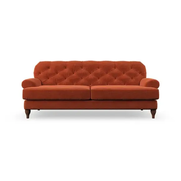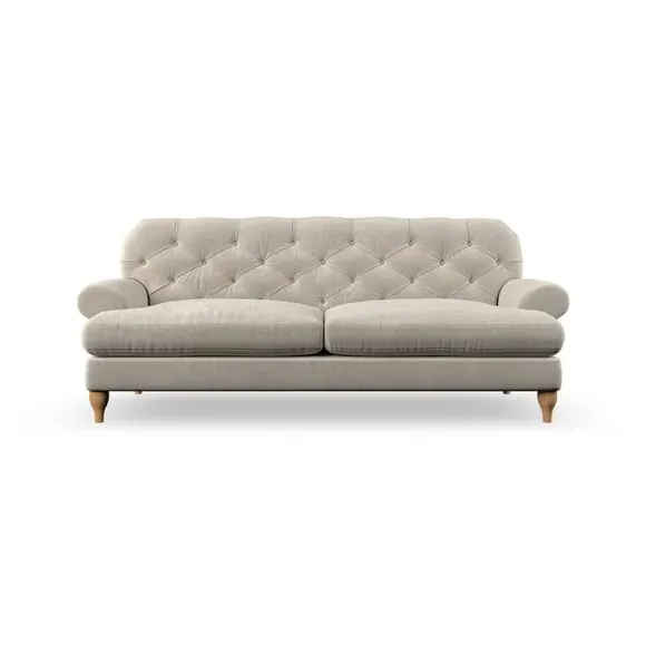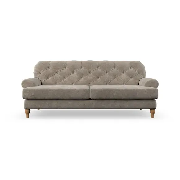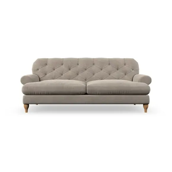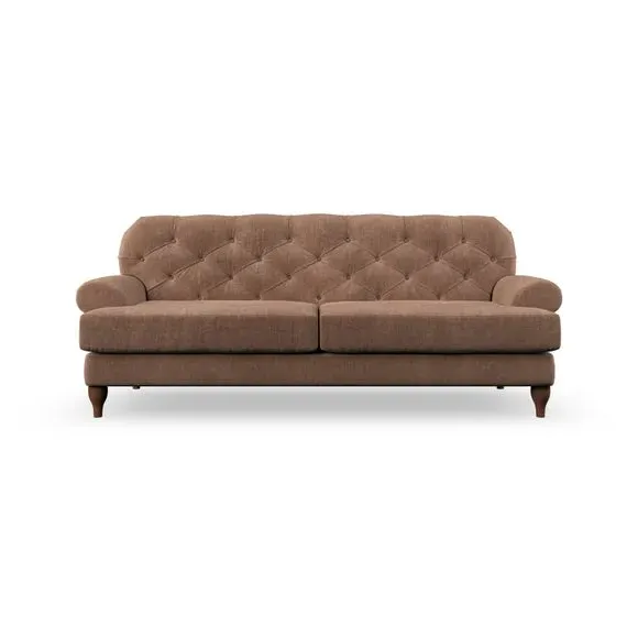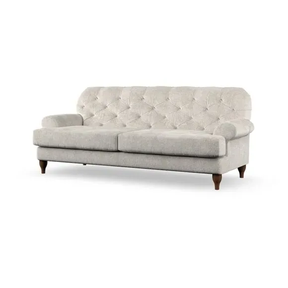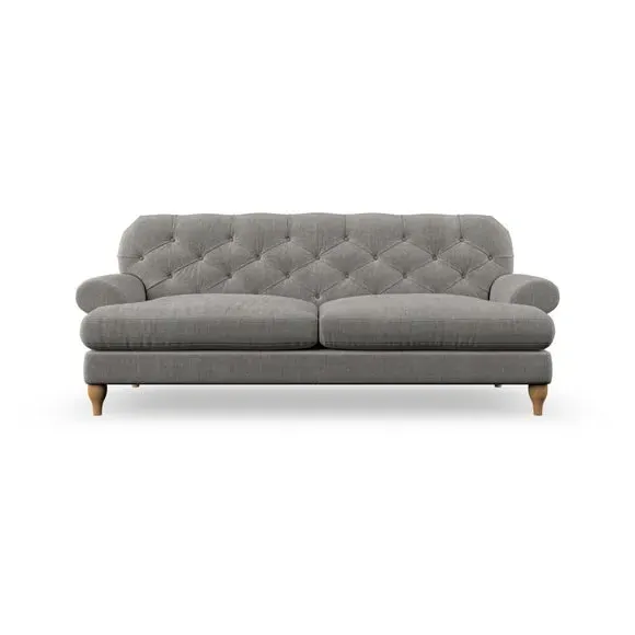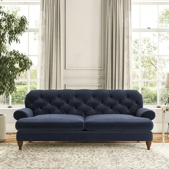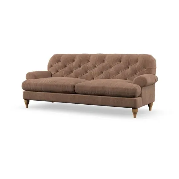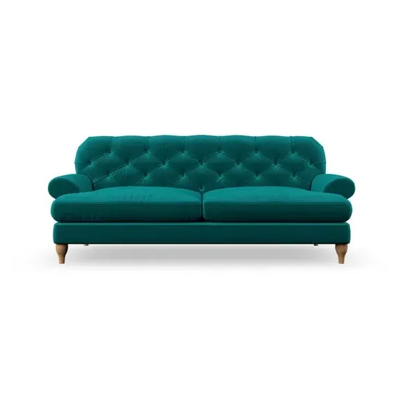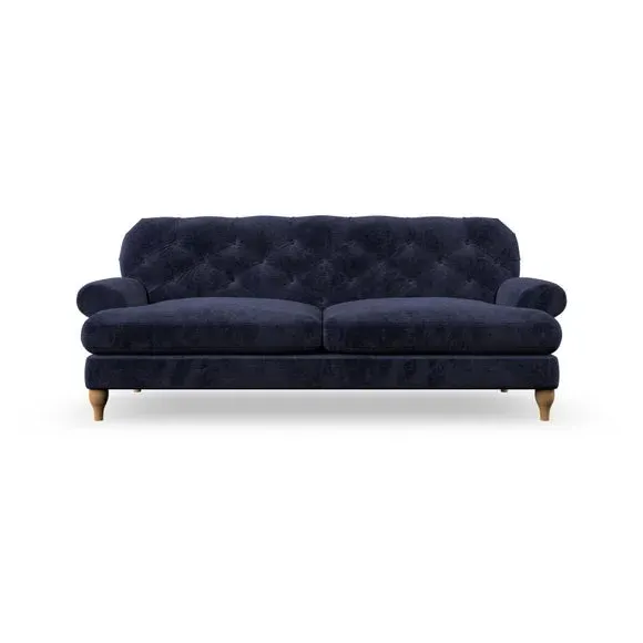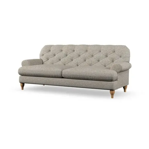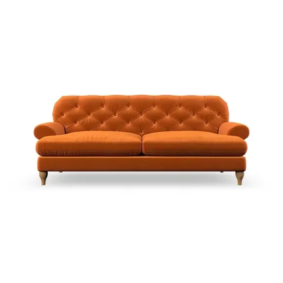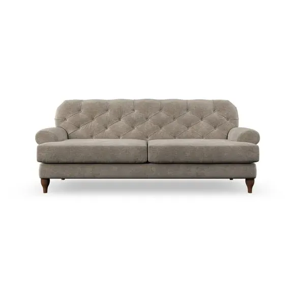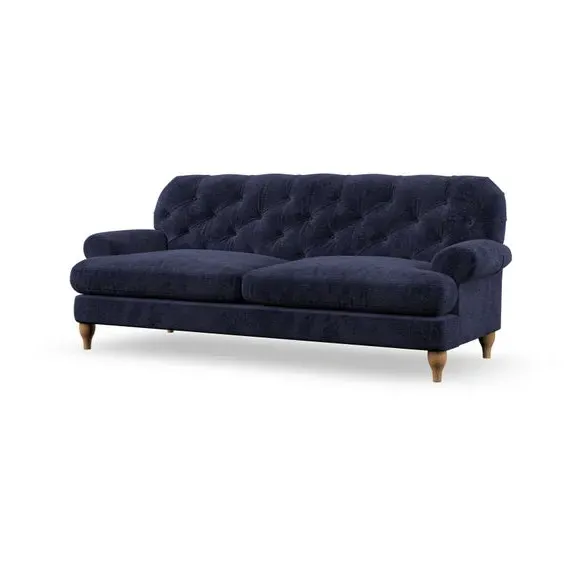 * Chesterfield style* Deep button detail* Scroll arms* Serpentine seat springs* Choose your support, fabric and leg colour This sofa boasts a high, supportive back and elegant compact scroll arms, providing both style and comfort. The serpentine seat springs and superloop sprung back ensure lasting durability and support. Choose between a low-maintenance foam seat or the inviting ‘Qualofill Blue’ fibre seat, crafted from 100% recycled polyester. The ‘T’ cushion seat and arm design offer a compact and contemporary look, enhanced by self-sewn seat cushions. This sofa also features ‘hour glass’ shaped turned hardwood legs in two finishes, which are easy to fit. Made to order, this sofa can be tailored to your exact preferences, offering a wide selection of colours, fabrics, foot types, and fillings for a truly personalised and comfortable piece.