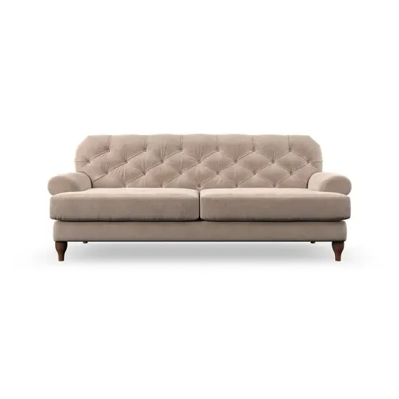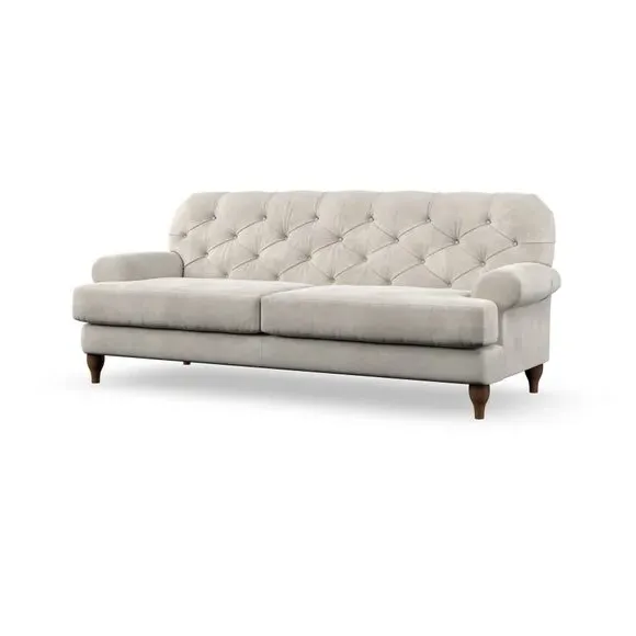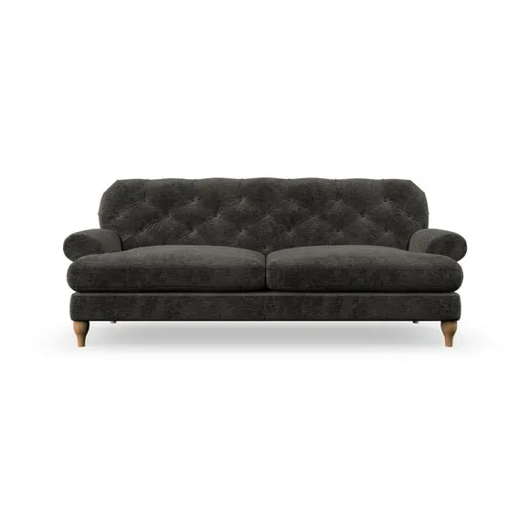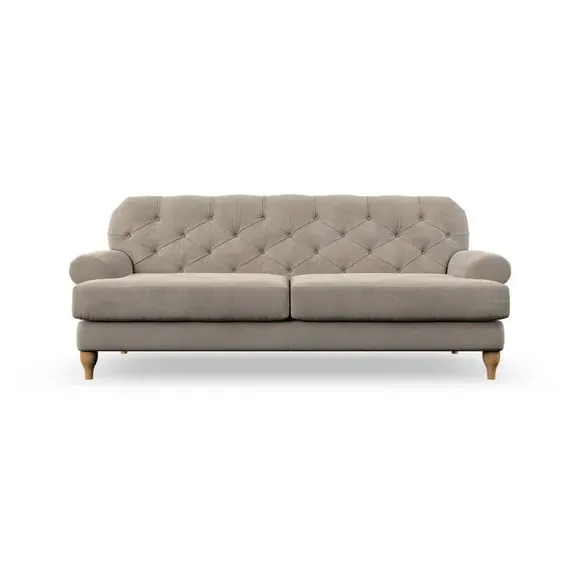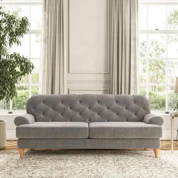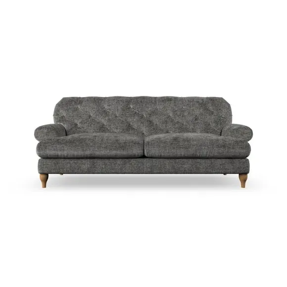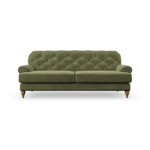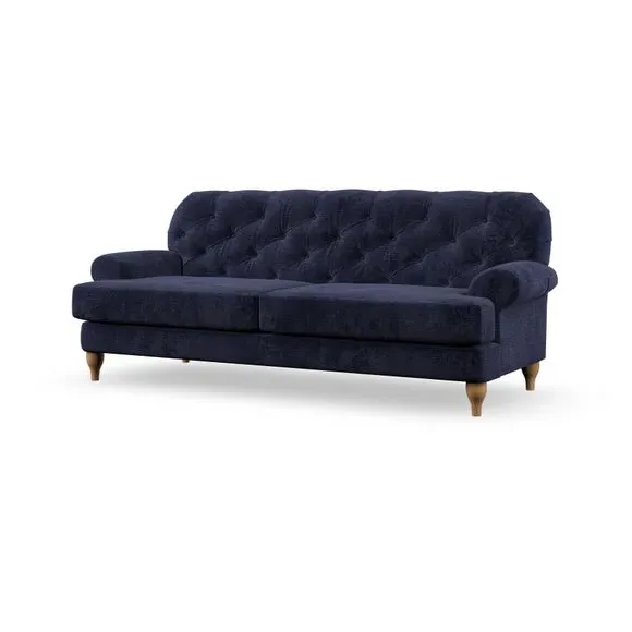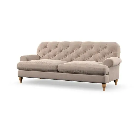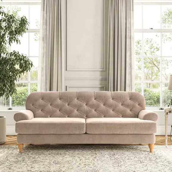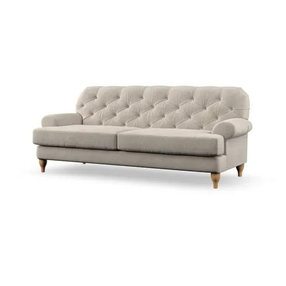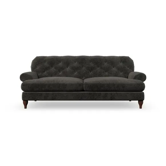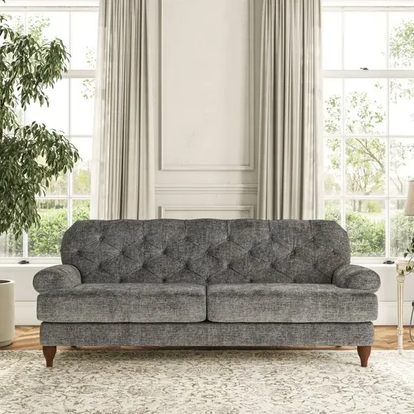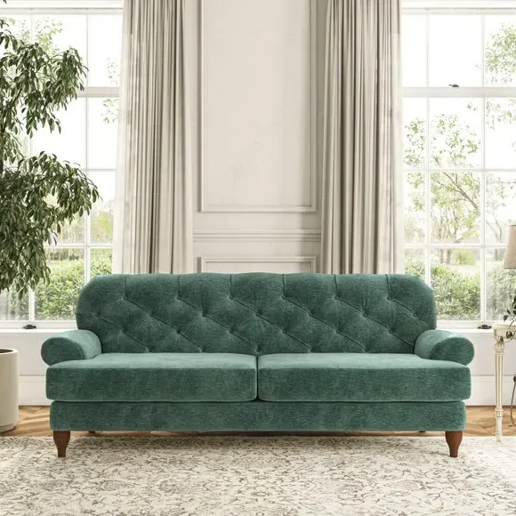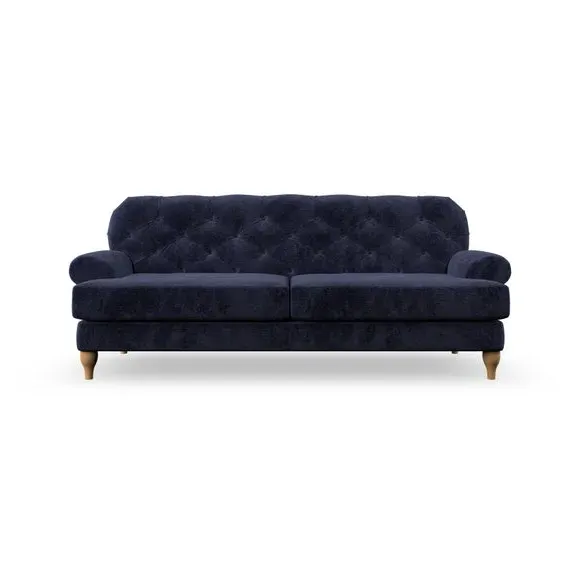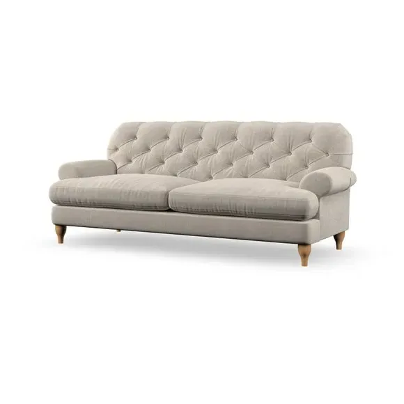* Chesterfield style* Deep button detail* Scroll arms* Serpentine seat springs* Choose your support, fabric and leg colour This sofa boasts a high, supportive back and elegant compact scroll arms, providing both style and comfort. The serpentine seat springs and superloop sprung back ensure lasting durability and support. Choose between a low-maintenance foam seat or the inviting ‘Qualofill Blue’ fibre seat, crafted from 100% recycled polyester. The ‘T’ cushion seat and arm design offer a compact and contemporary look, enhanced by self-sewn seat cushions. This sofa also features ‘hour glass’ shaped turned hardwood legs in two finishes, which are easy to fit. Made to order, this sofa can be tailored to your exact preferences, offering a wide selection of colours, fabrics, foot types, and fillings for a truly personalised and comfortable piece.