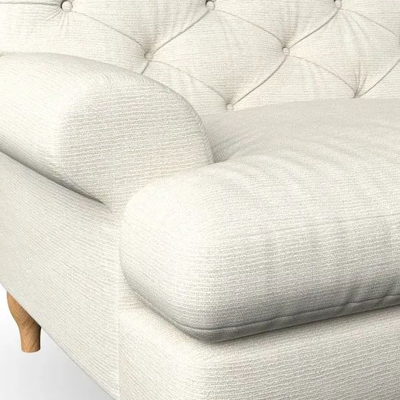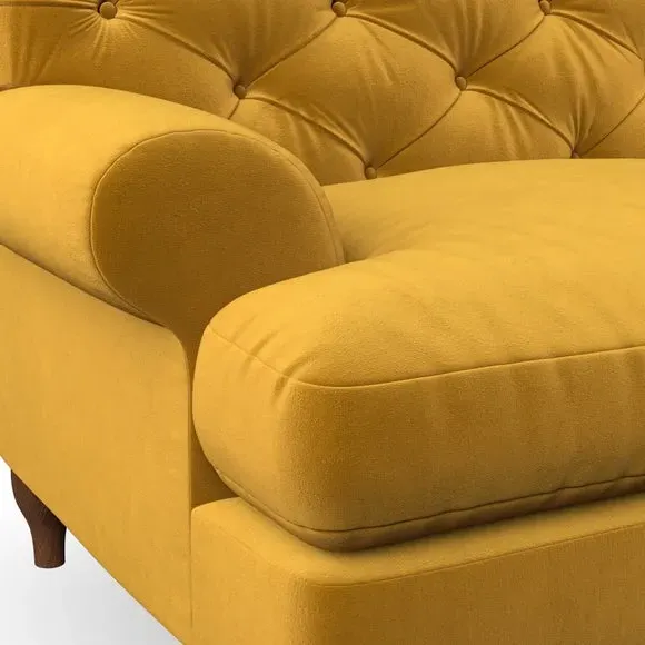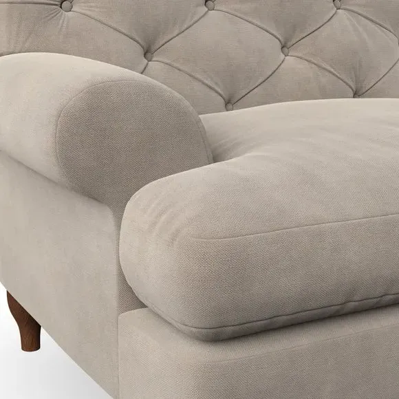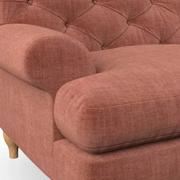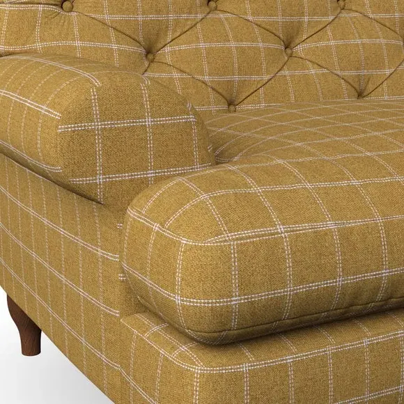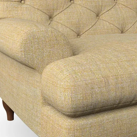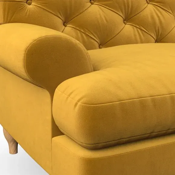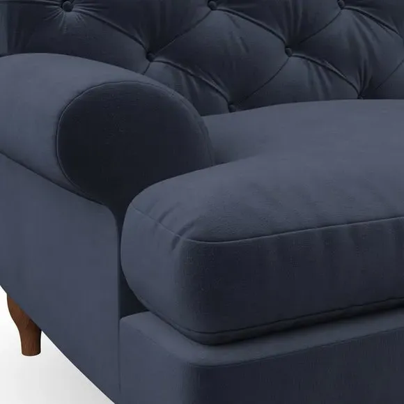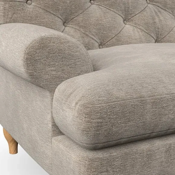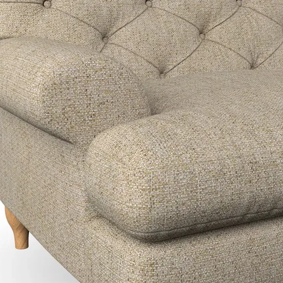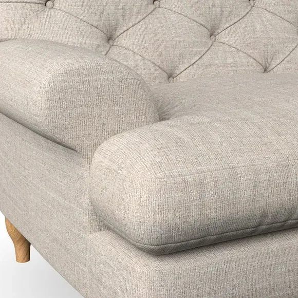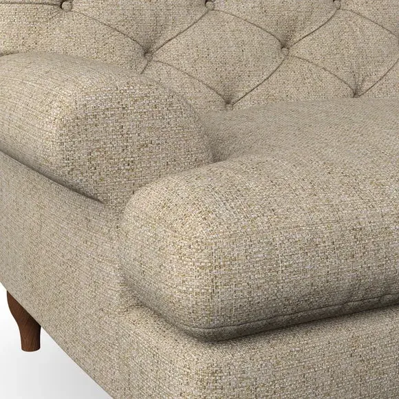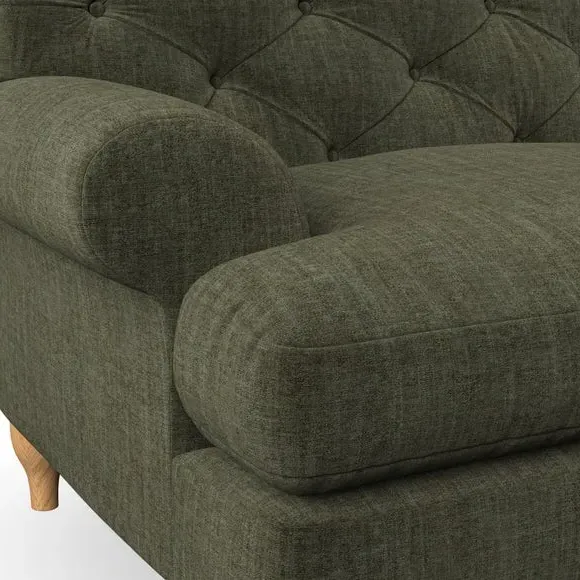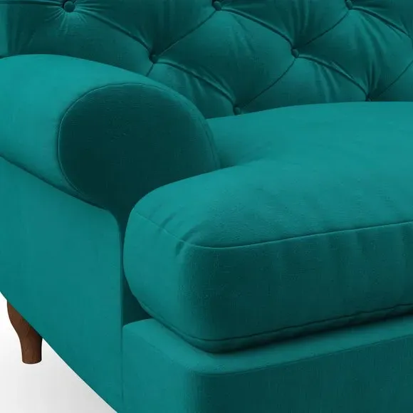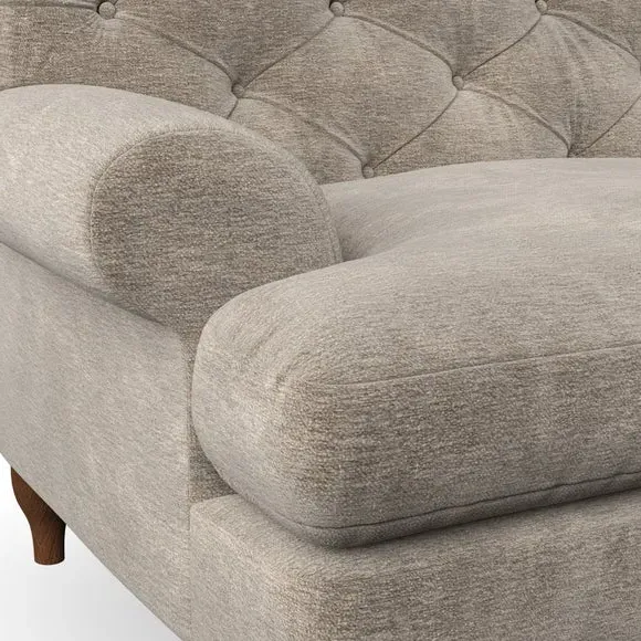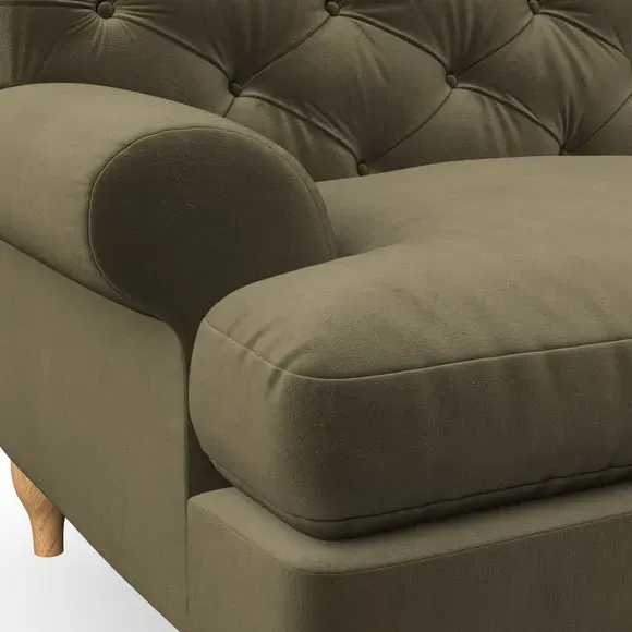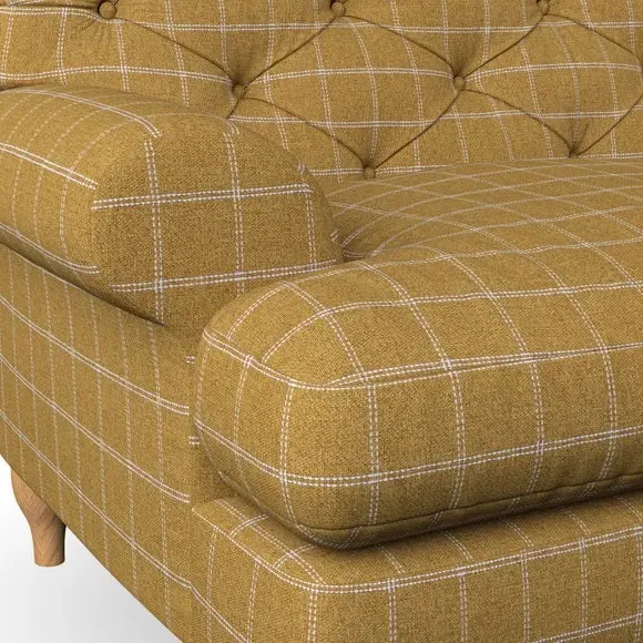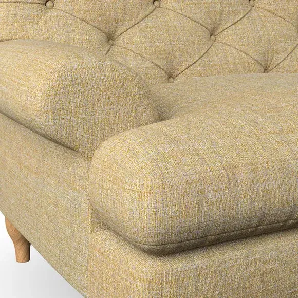 * Chesterfield style* Deep button detail* Scroll arms* Serpentine seat springs* Choose your support, fabric and leg colour This sofa boasts a high, supportive back and elegant compact scroll arms, providing both style and comfort. The serpentine seat springs and superloop sprung back ensure lasting durability and support. Choose between a low-maintenance foam seat or the inviting ‘Qualofill Blue’ fibre seat, crafted from 100% recycled polyester. The ‘T’ cushion seat and arm design offer a compact and contemporary look, enhanced by self-sewn seat cushions. Available as a right or left-handed corner group, this sofa also features ‘hour glass’ shaped turned hardwood legs in two finishes, which are easy to fit. Made to order, this sofa can be tailored to your exact preferences, offering a wide selection of colours, fabrics, foot types, and fillings for a truly personalised and comfortable piece.