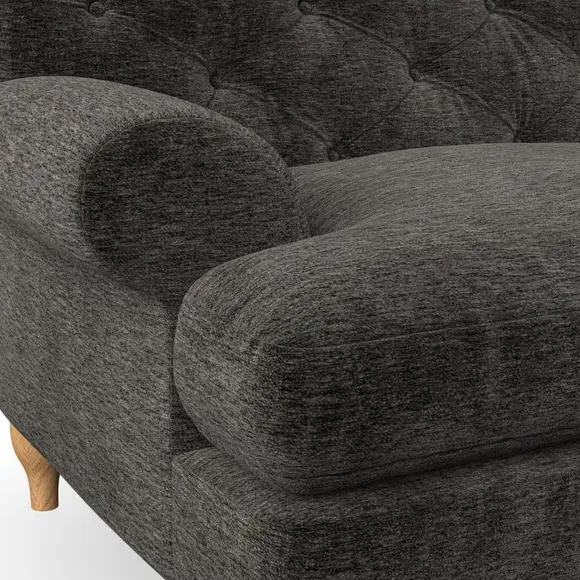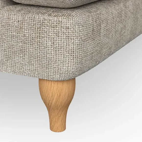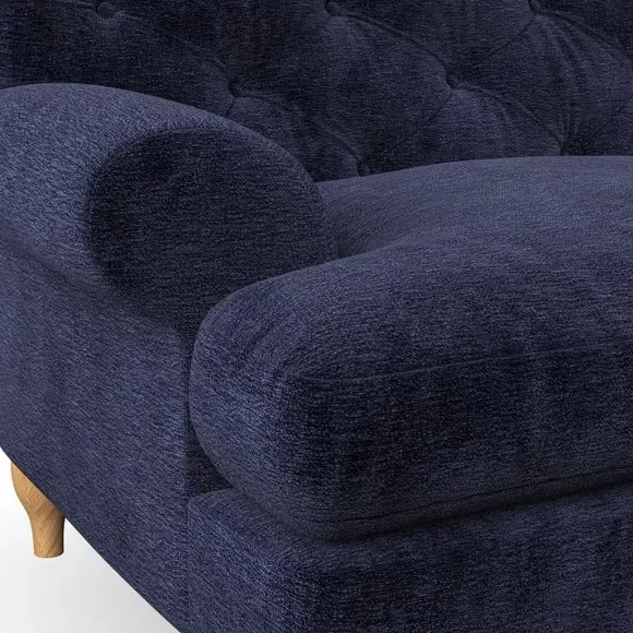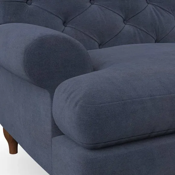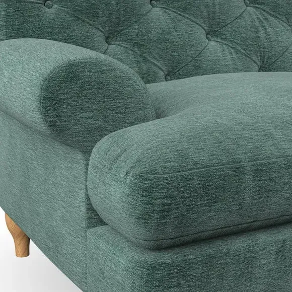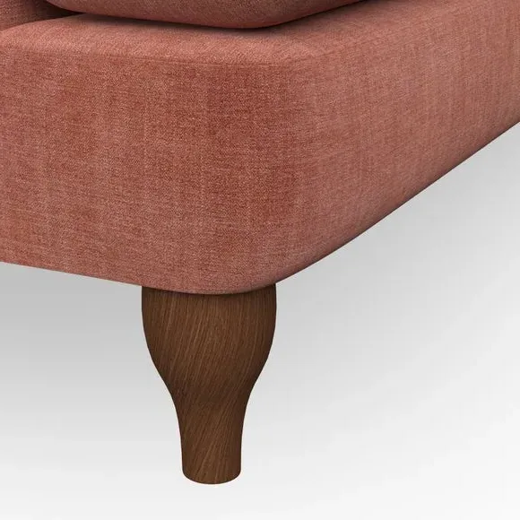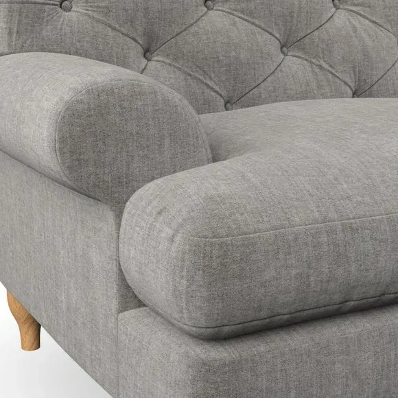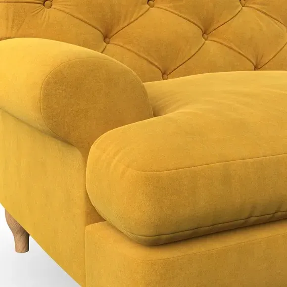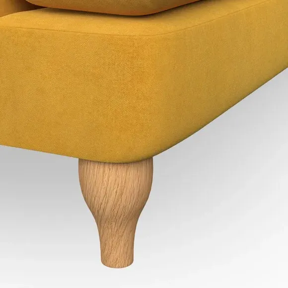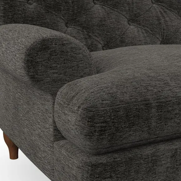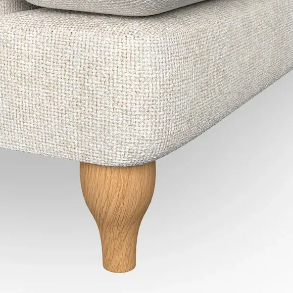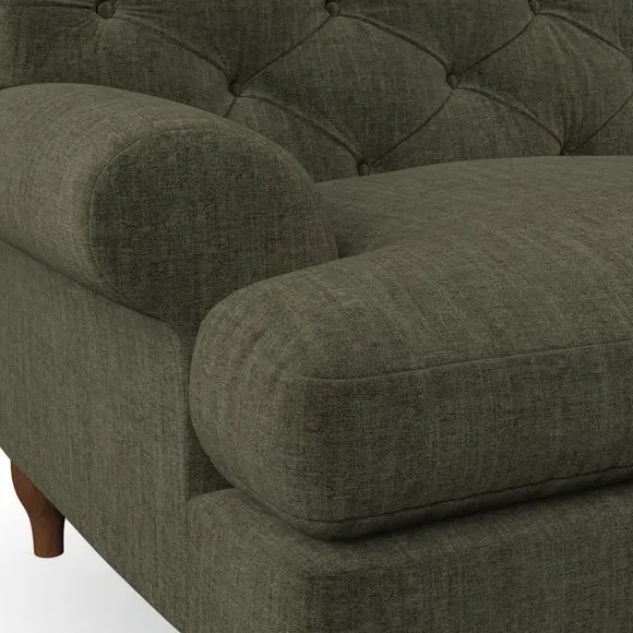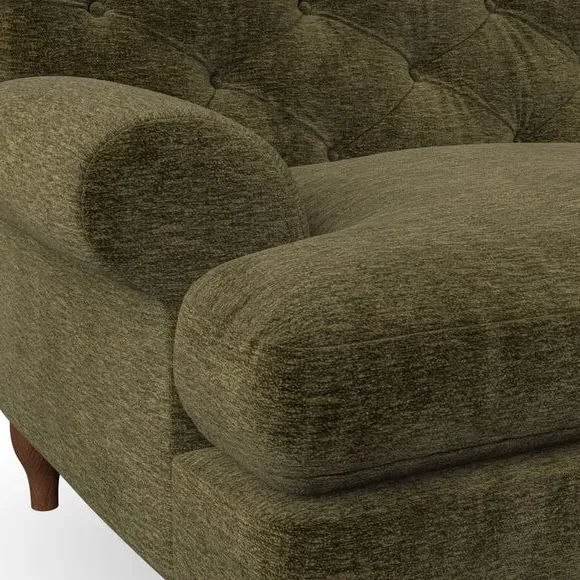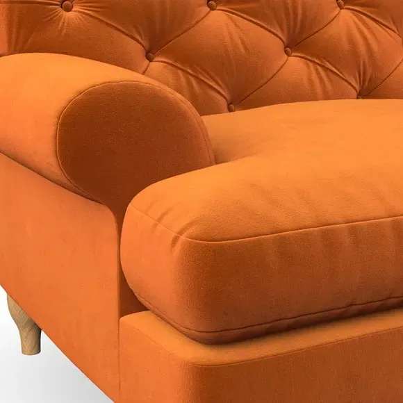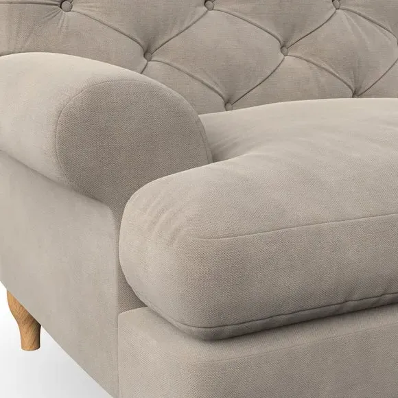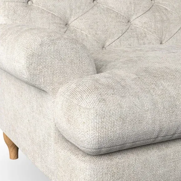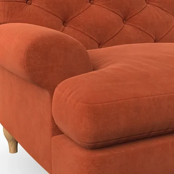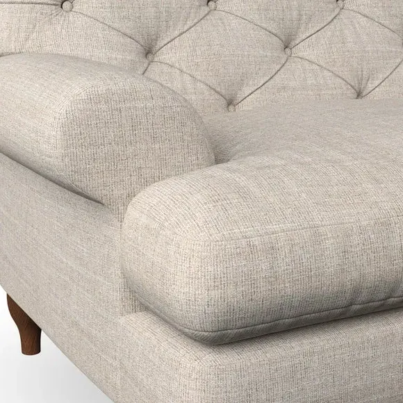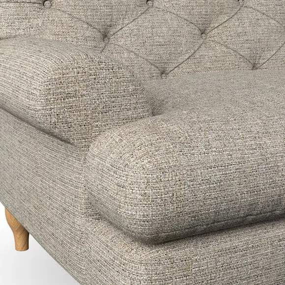 * Chesterfield style* Deep button detail* Scroll arms* Serpentine seat springs* Choose your support, fabric and leg colour This sofa boasts a high, supportive back and elegant compact scroll arms, providing both style and comfort. The serpentine seat springs and superloop sprung back ensure lasting durability and support. Choose between a low-maintenance foam seat or the inviting ‘Qualofill Blue’ fibre seat, crafted from 100% recycled polyester. The ‘T’ cushion seat and arm design offer a compact and contemporary look, enhanced by self-sewn seat cushions. Available as a right or left-handed corner group, this sofa also features ‘hour glass’ shaped turned hardwood legs in two finishes, which are easy to fit. Made to order, this sofa can be tailored to your exact preferences, offering a wide selection of colours, fabrics, foot types, and fillings for a truly personalised and comfortable piece.
