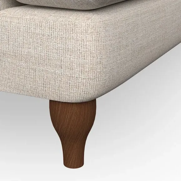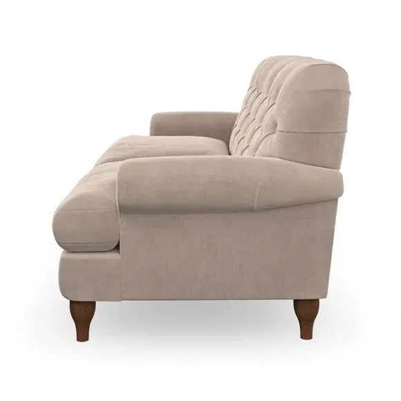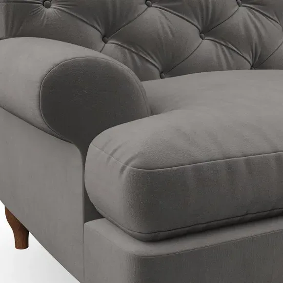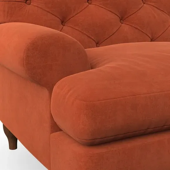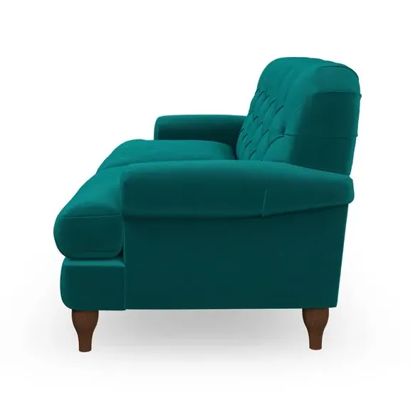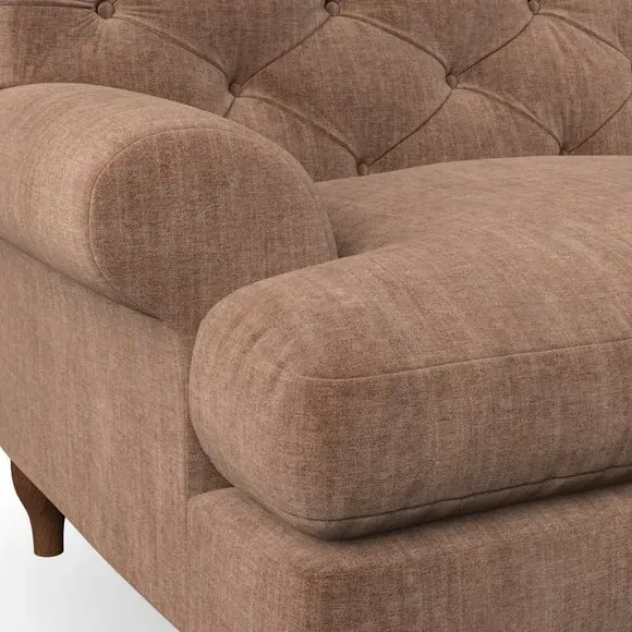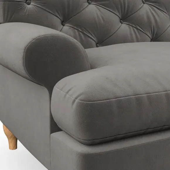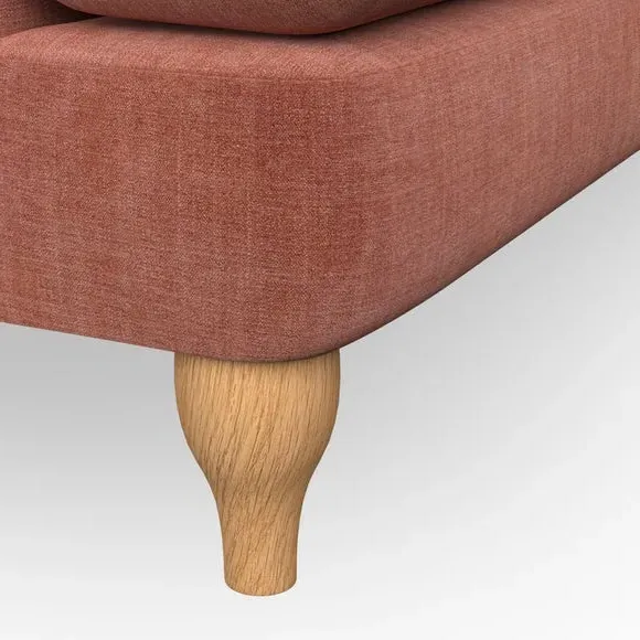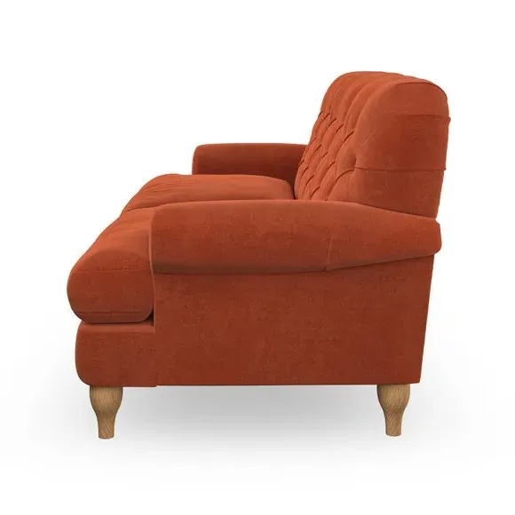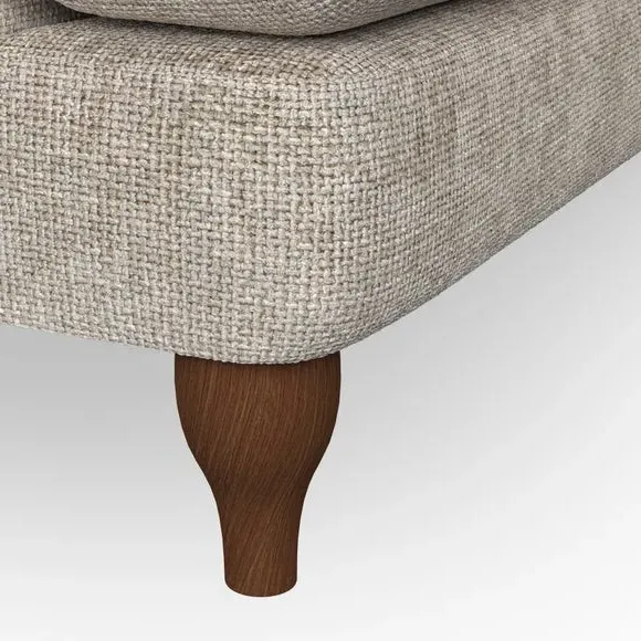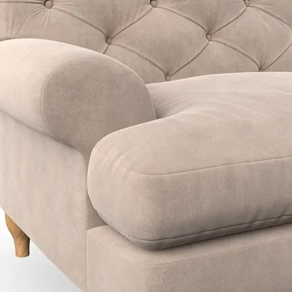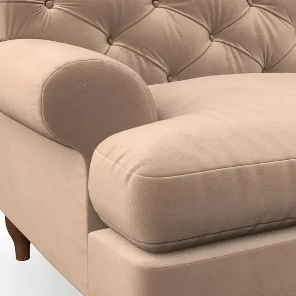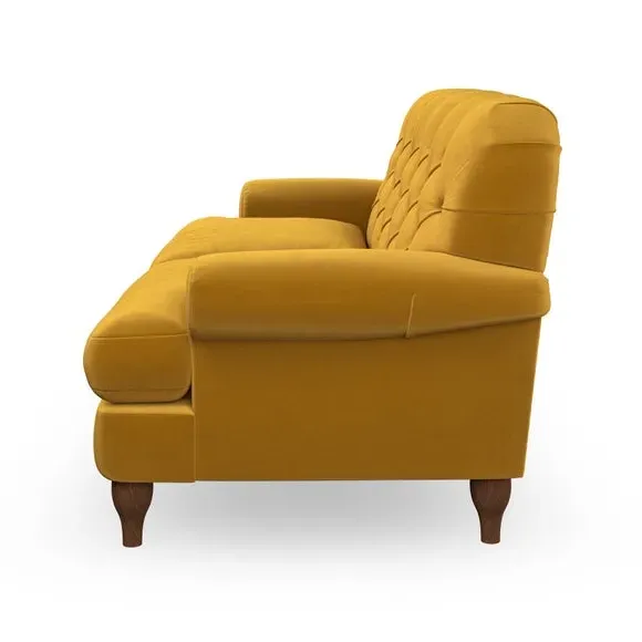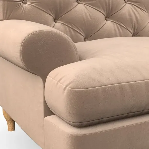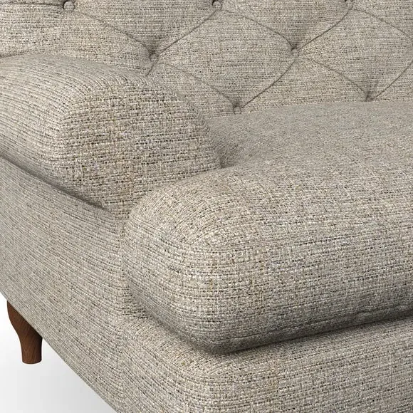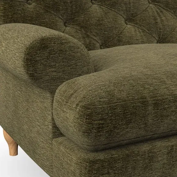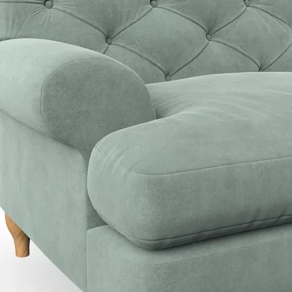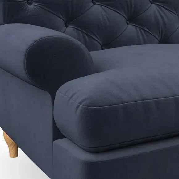* Chesterfield style* Deep button detail* Scroll arms* Serpentine seat springs* Choose your support, fabric and leg colour This sofa boasts a high, supportive back and elegant compact scroll arms, providing both style and comfort. The serpentine seat springs and superloop sprung back ensure lasting durability and support. Choose between a low-maintenance foam seat or the inviting ‘Qualofill Blue’ fibre seat, crafted from 100% recycled polyester. The ‘T’ cushion seat and arm design offer a compact and contemporary look, enhanced by self-sewn seat cushions. Available as a right or left-handed corner group, this sofa also features ‘hour glass’ shaped turned hardwood legs in two finishes, which are easy to fit. Made to order, this sofa can be tailored to your exact preferences, offering a wide selection of colours, fabrics, foot types, and fillings for a truly personalised and comfortable piece.
