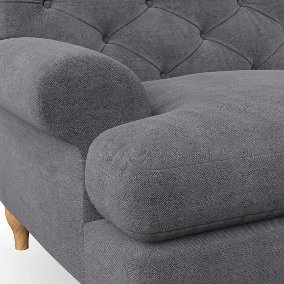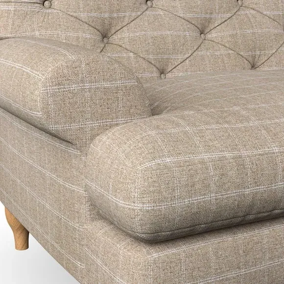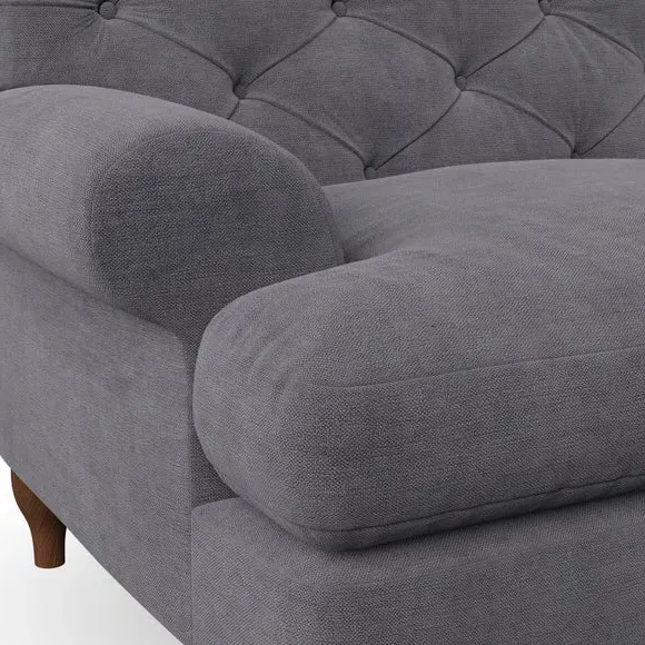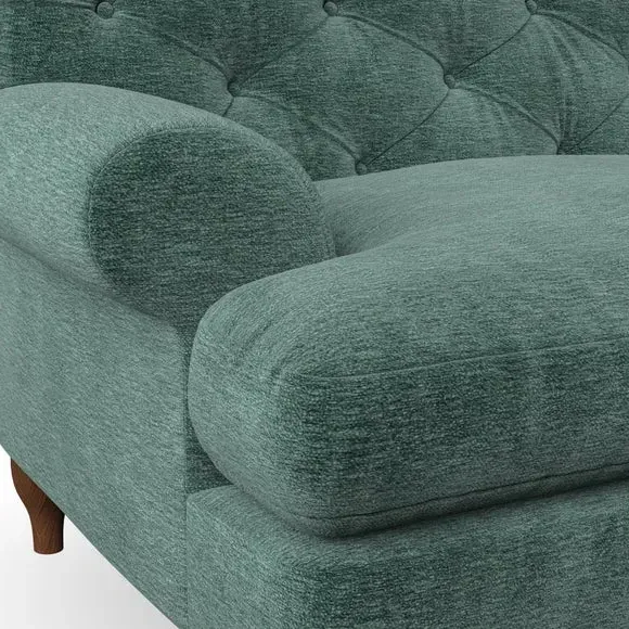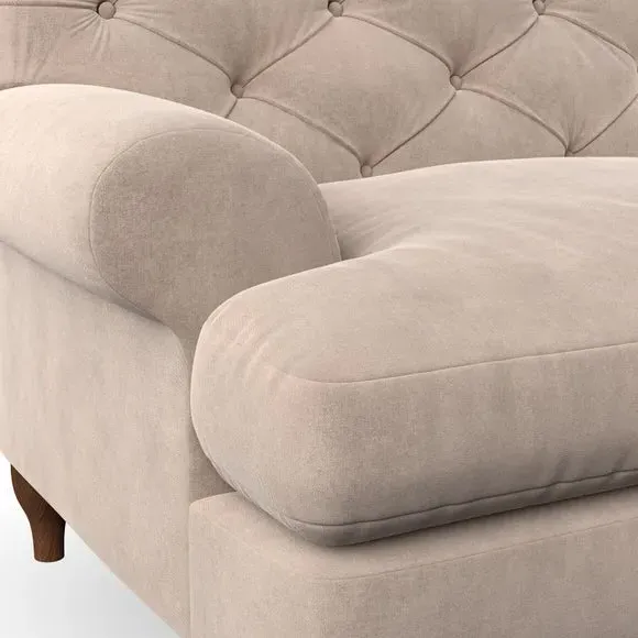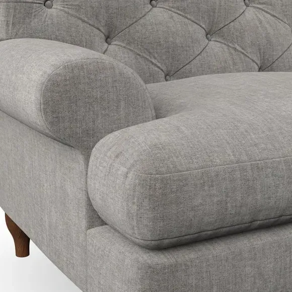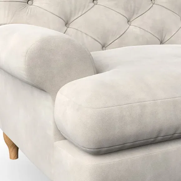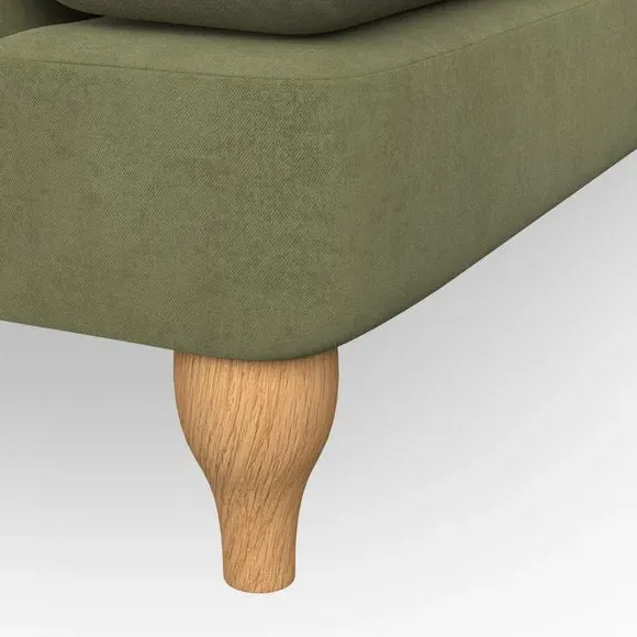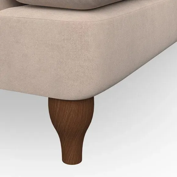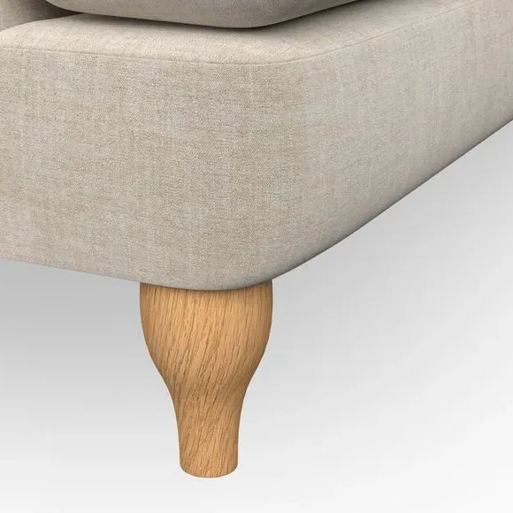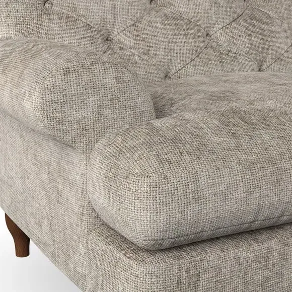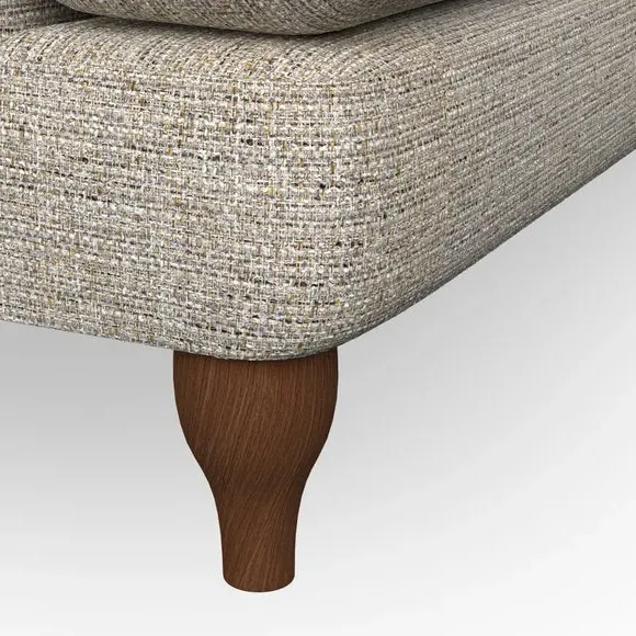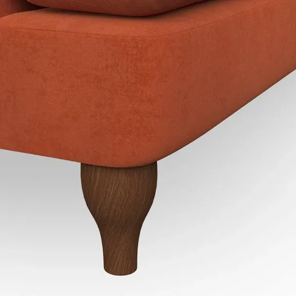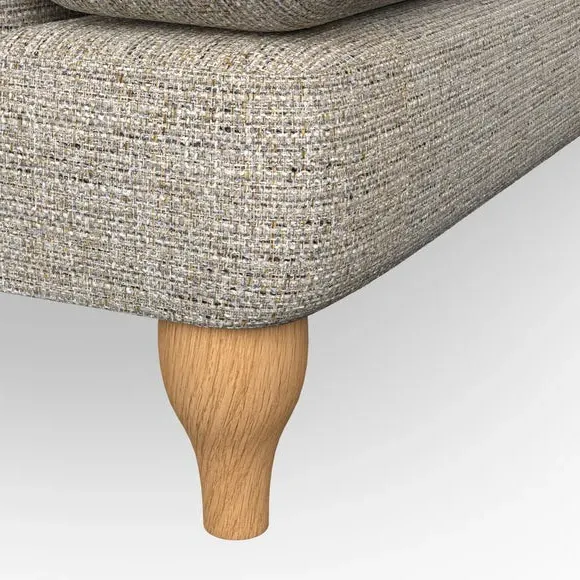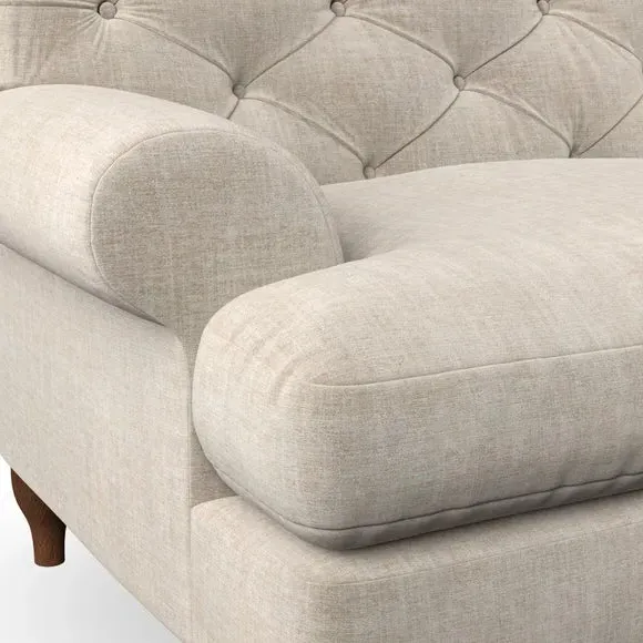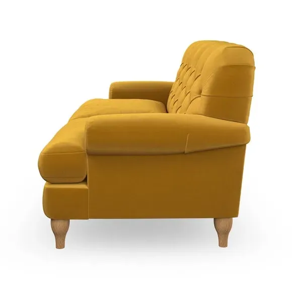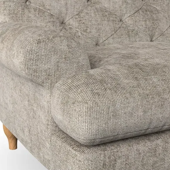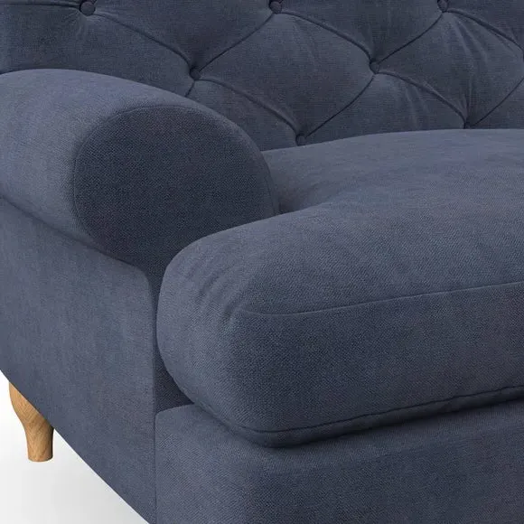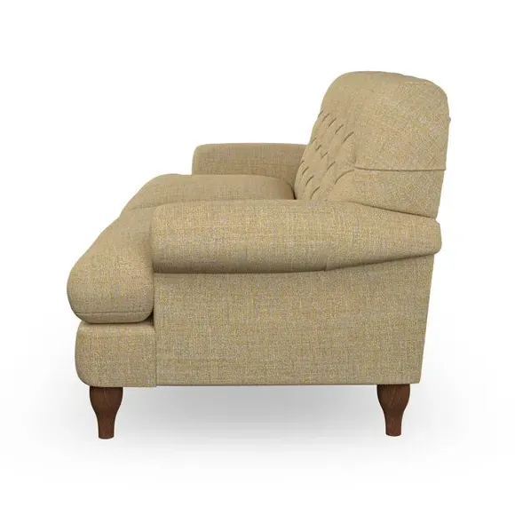 * Chesterfield style* Deep button detail* Scroll arms* Serpentine seat springs* Choose your support, fabric and leg colour This sofa boasts a high, supportive back and elegant compact scroll arms, providing both style and comfort. The serpentine seat springs and superloop sprung back ensure lasting durability and support. Choose between a low-maintenance foam seat or the inviting ‘Qualofill Blue’ fibre seat, crafted from 100% recycled polyester. The ‘T’ cushion seat and arm design offer a compact and contemporary look, enhanced by self-sewn seat cushions. Available as a right or left-handed corner group, this sofa also features ‘hour glass’ shaped turned hardwood legs in two finishes, which are easy to fit. Made to order, this sofa can be tailored to your exact preferences, offering a wide selection of colours, fabrics, foot types, and fillings for a truly personalised and comfortable piece.
