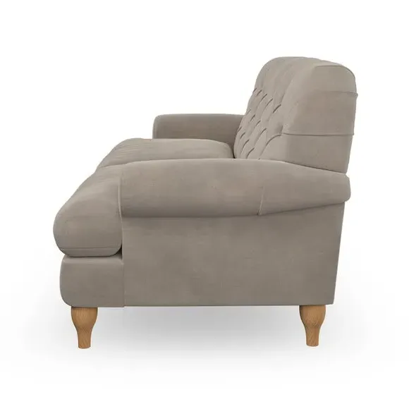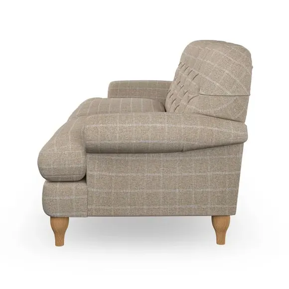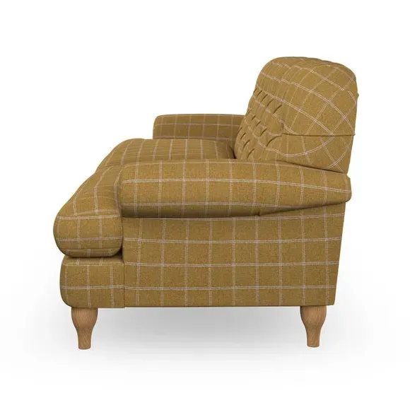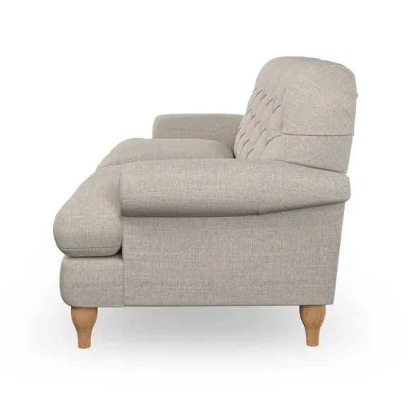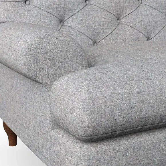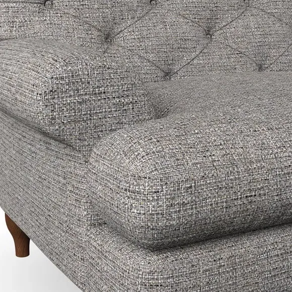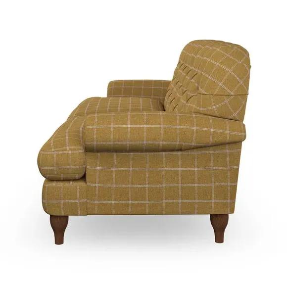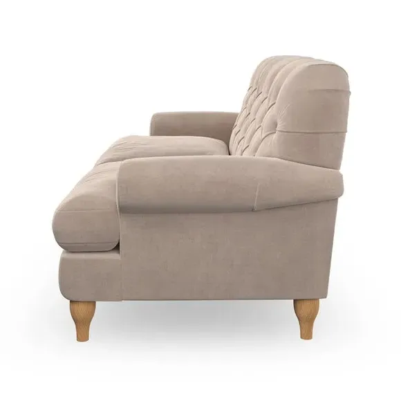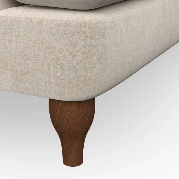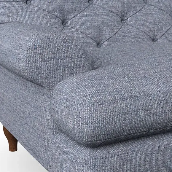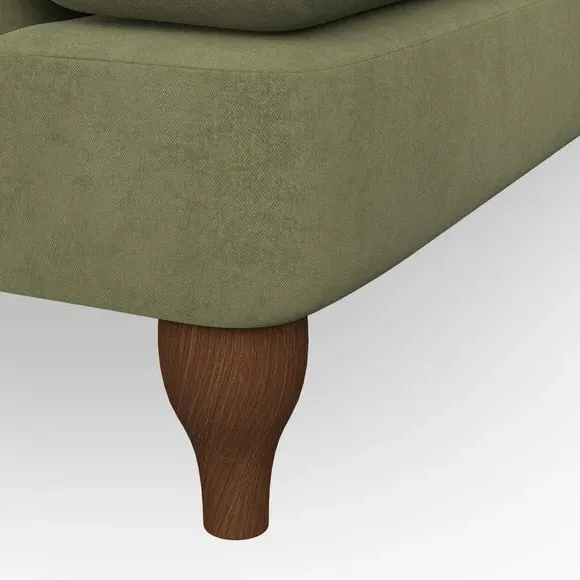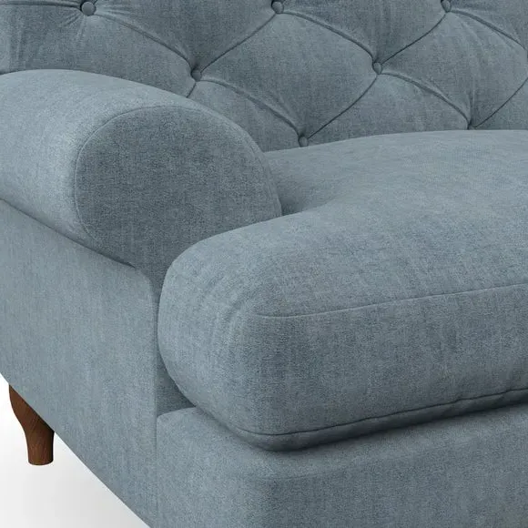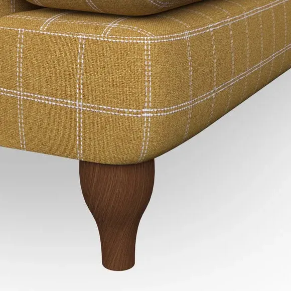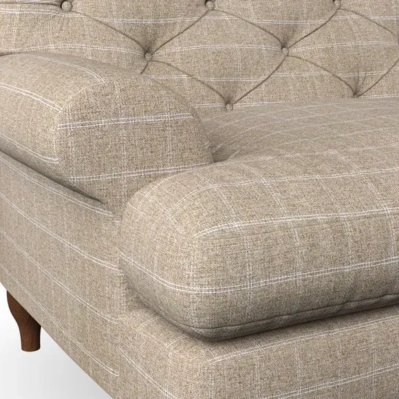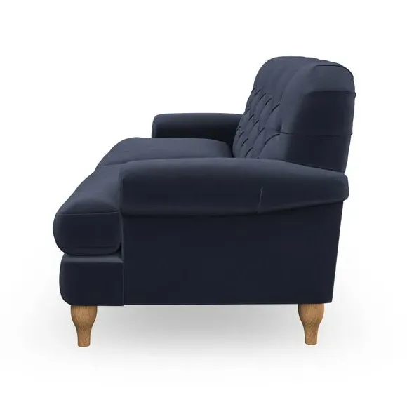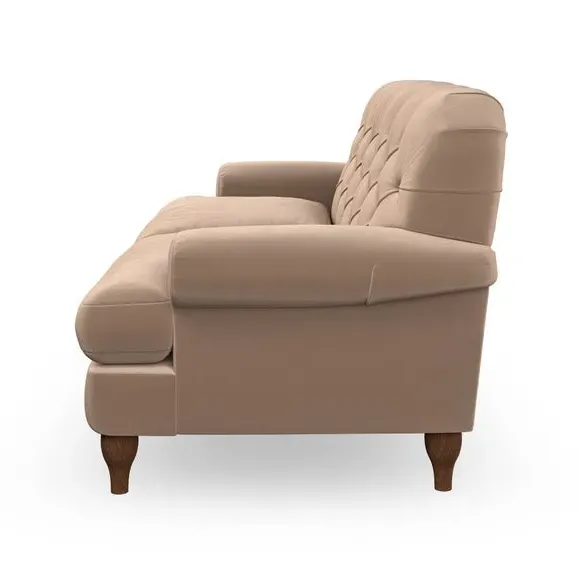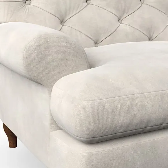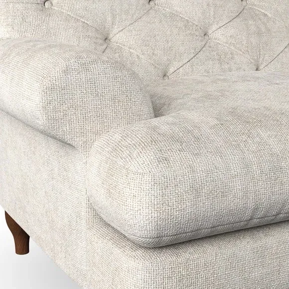 * Chesterfield style* Deep button detail* Scroll arms* Serpentine seat springs* Choose your support, fabric and leg colour This sofa boasts a high, supportive back and elegant compact scroll arms, providing both style and comfort. The serpentine seat springs and superloop sprung back ensure lasting durability and support. Choose between a low-maintenance foam seat or the inviting ‘Qualofill Blue’ fibre seat, crafted from 100% recycled polyester. The ‘T’ cushion seat and arm design offer a compact and contemporary look, enhanced by self-sewn seat cushions. Available as a right or left-handed corner group, this sofa also features ‘hour glass’ shaped turned hardwood legs in two finishes, which are easy to fit. Made to order, this sofa can be tailored to your exact preferences, offering a wide selection of colours, fabrics, foot types, and fillings for a truly personalised and comfortable piece.