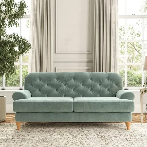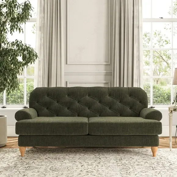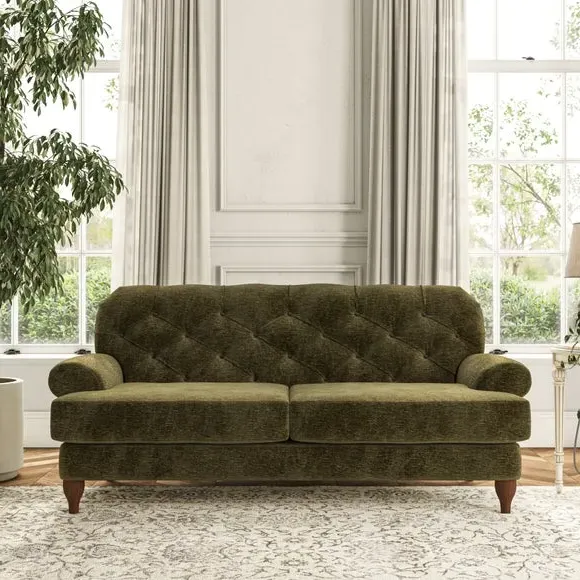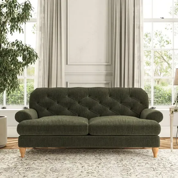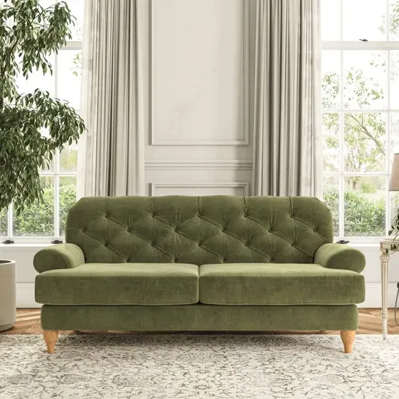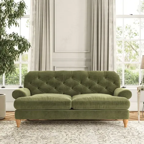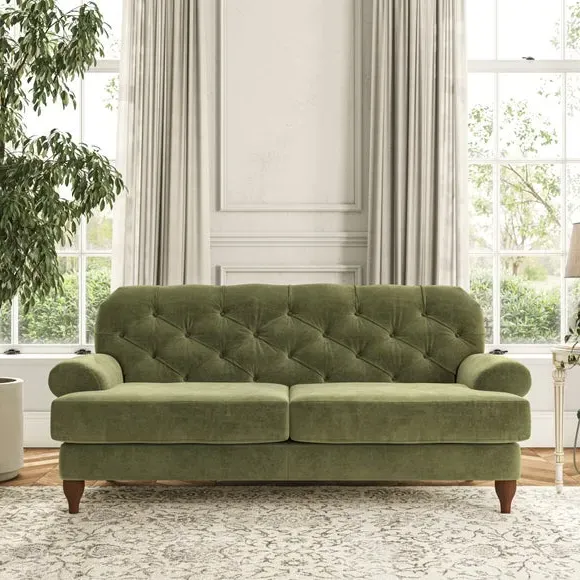 3-Seater Chesterfield Sofa - Olive, Velvet