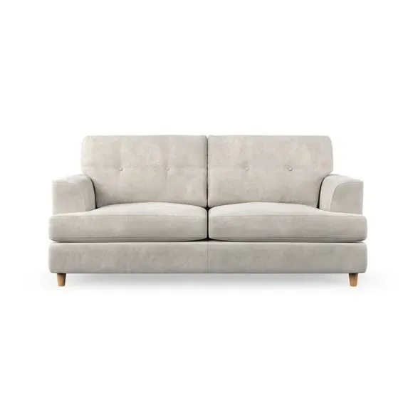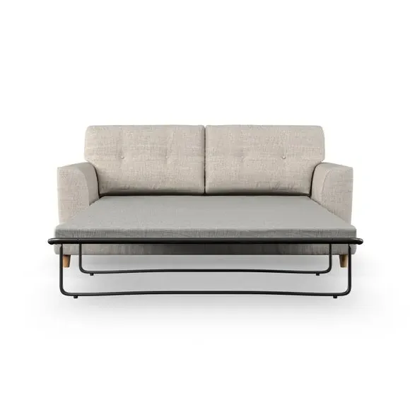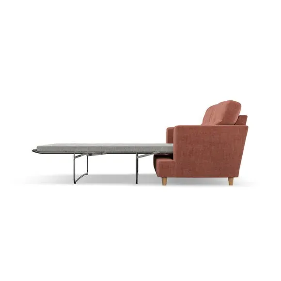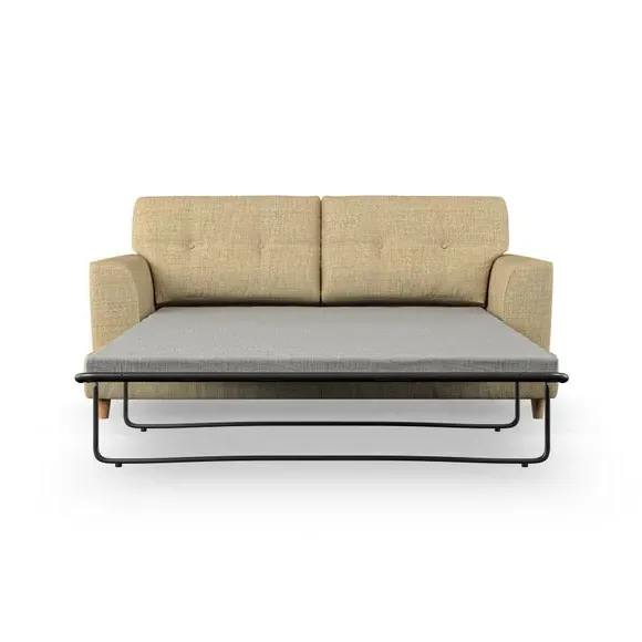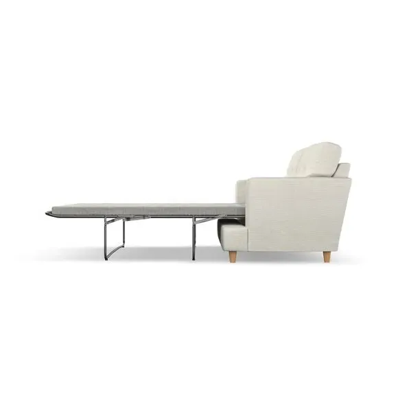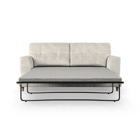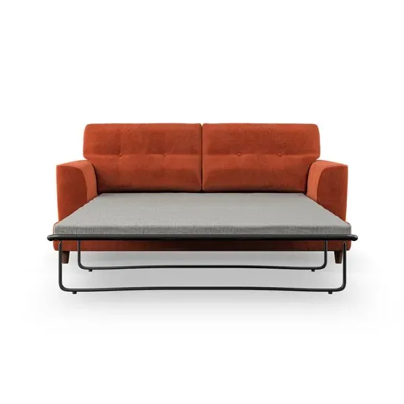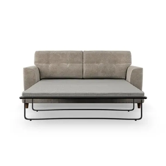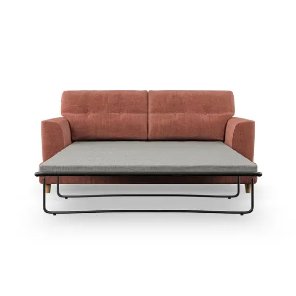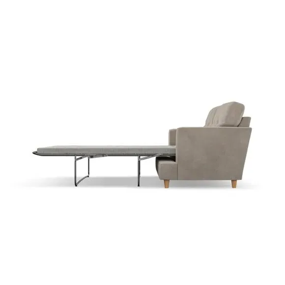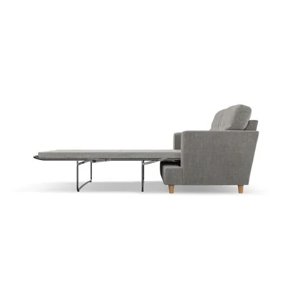 * Scandi inspired design* High legs* Button pull detailing* Choose the cushion filling, leg colour and fabric The Cooper 3 Seater Sofa Bed combines Scandinavian-inspired elegance with practical functionality. Its clean-lined design includes high legs, T-shaped seat cushions, and fibre-filled back cushions with button-pull detailing for added comfort and style. Easily transform this sofa into a convenient bed for guests without compromising on aesthetics. With options to customise the fabric, leg finish, and cushion filling, the Cooper Sofa Bed adapts seamlessly to your space.