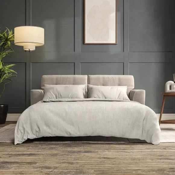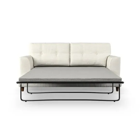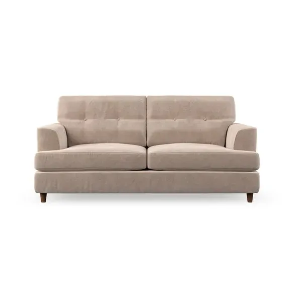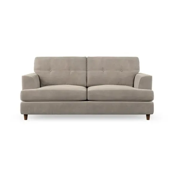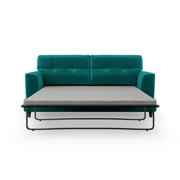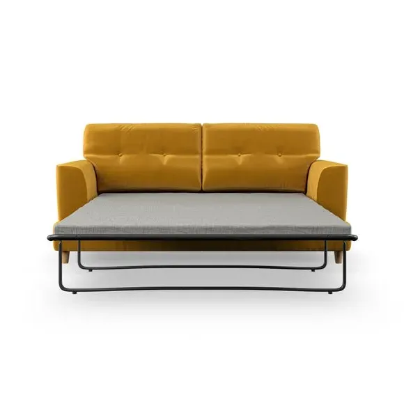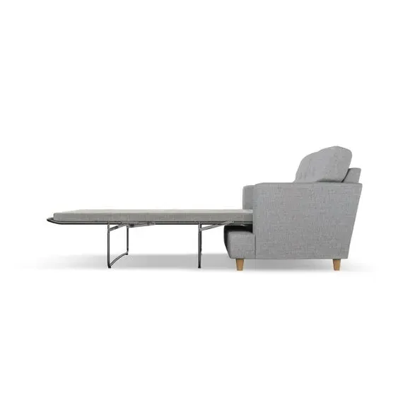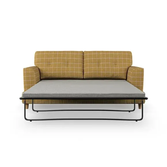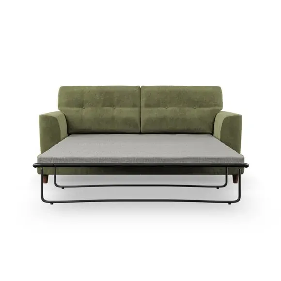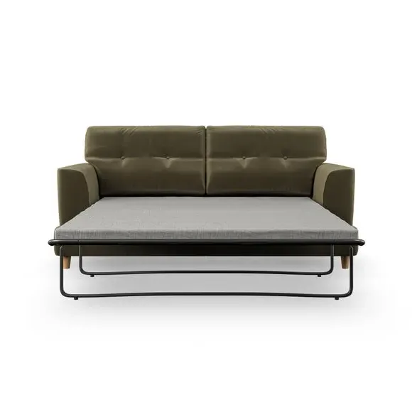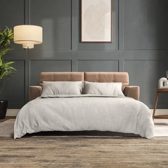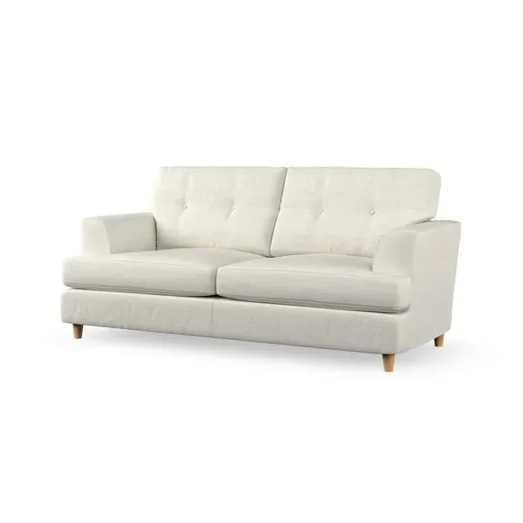 * Scandi inspired design* High legs* Button pull detailing* Choose the cushion filling, leg colour and fabric The Cooper 3 Seater Sofa Bed combines Scandinavian-inspired elegance with practical functionality. Its clean-lined design includes high legs, T-shaped seat cushions, and fibre-filled back cushions with button-pull detailing for added comfort and style. Easily transform this sofa into a convenient bed for guests without compromising on aesthetics. With options to customise the fabric, leg finish, and cushion filling, the Cooper Sofa Bed adapts seamlessly to your space.