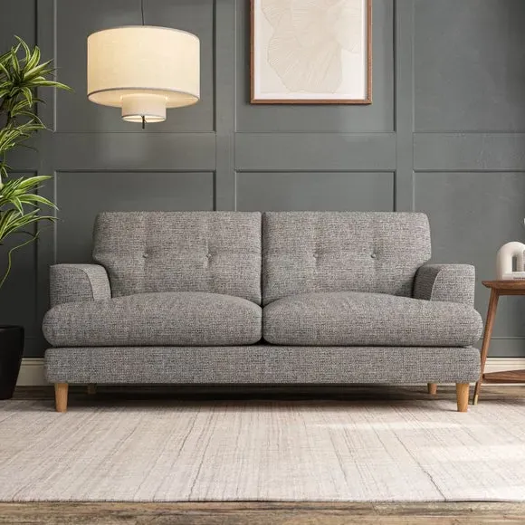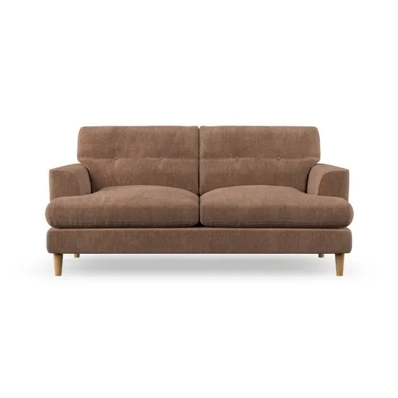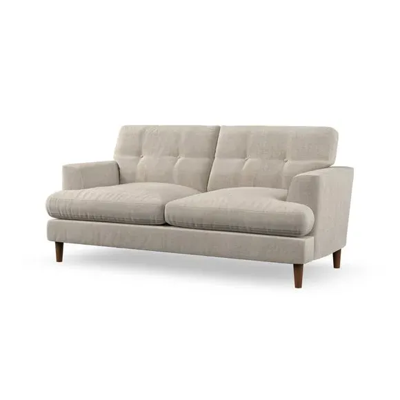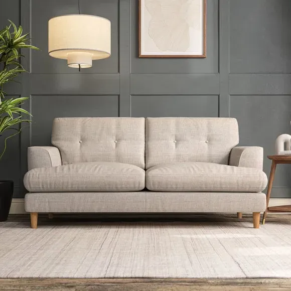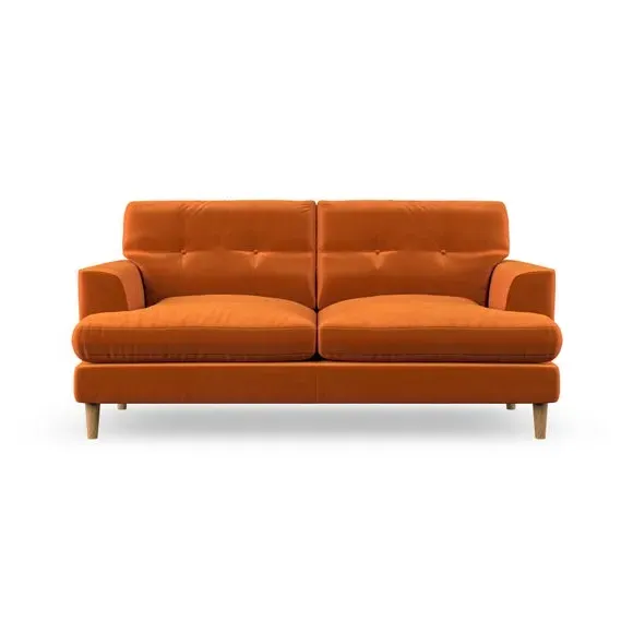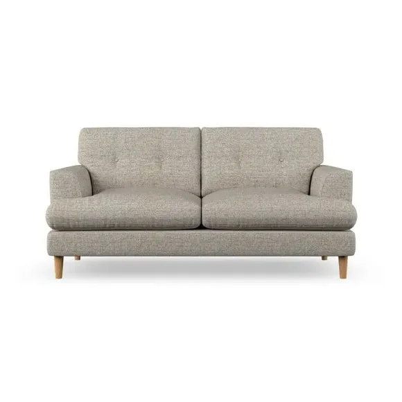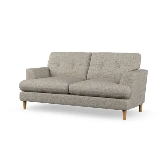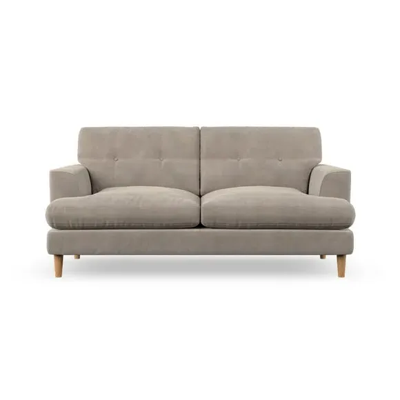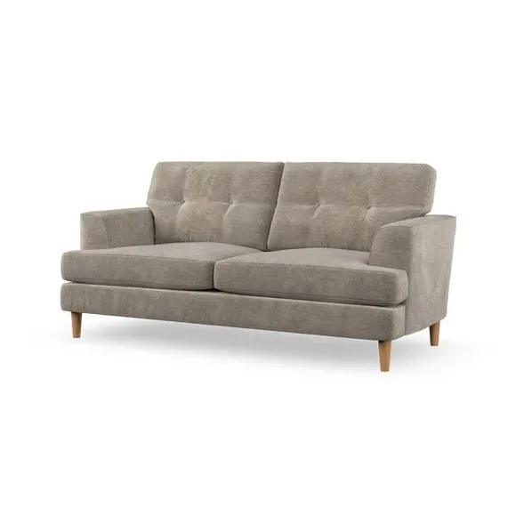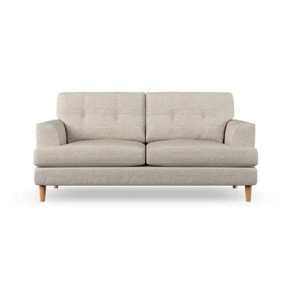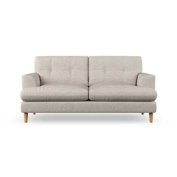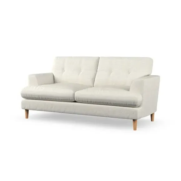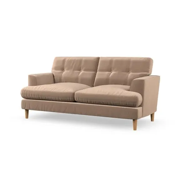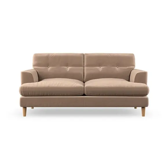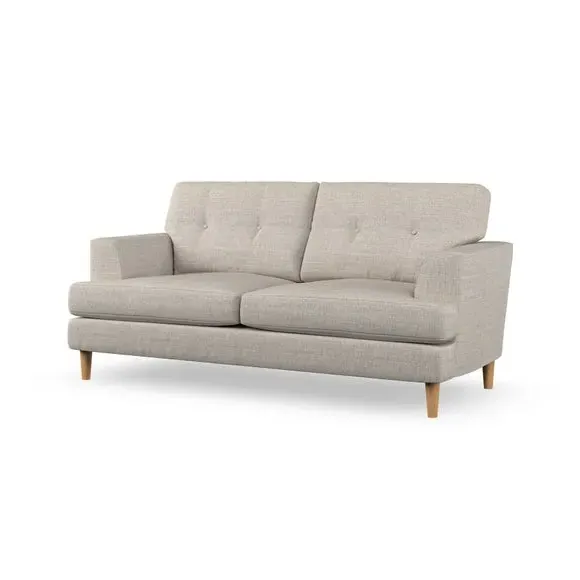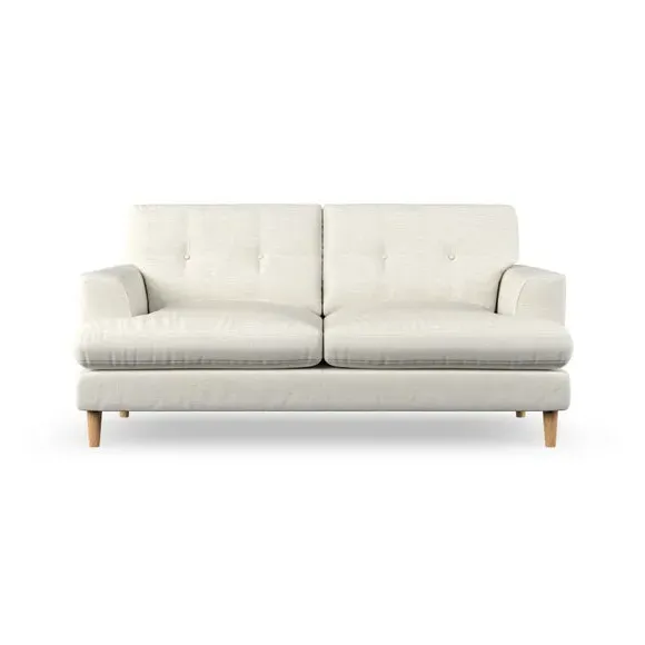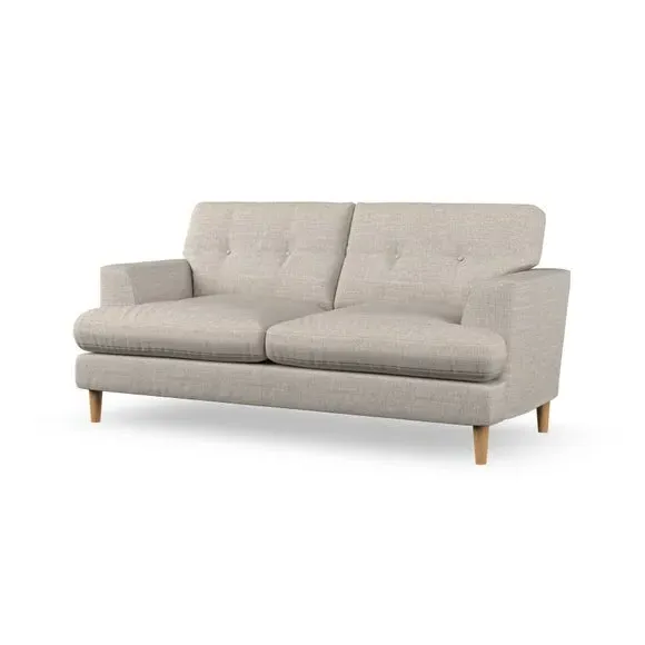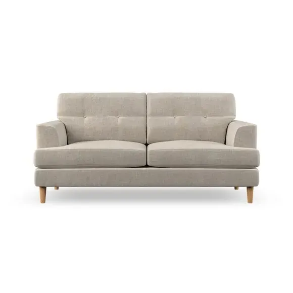 * Scandi inspired design* High legs* Button pull detailing* Choose the cushion filling, leg colour and fabric The Cooper 3 Seater Sofa is a versatile and stylish addition to any home. Its sleek Scandinavian design features high legs, clean lines, and T-shaped seat cushions for a modern look. The fibre-filled back cushions, accented by button-pull detailing, provide a supportive and comfortable seating experience. Available in a range of fabrics, leg finishes, and cushion fillings, the Cooper 3 Seater Sofa can be tailored to match your décor.