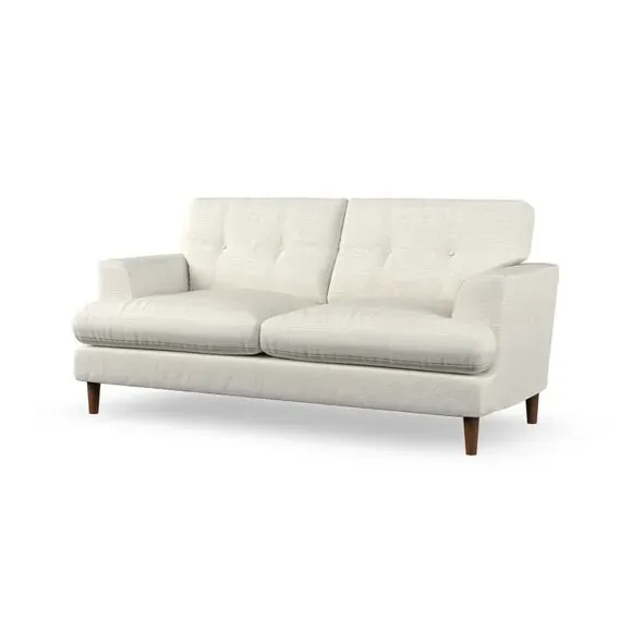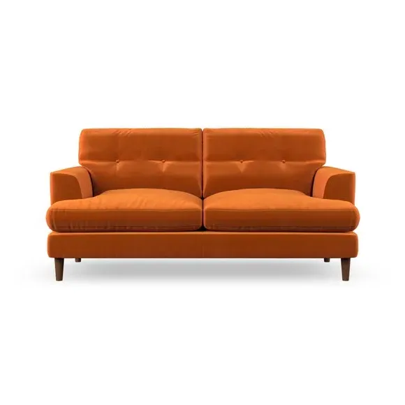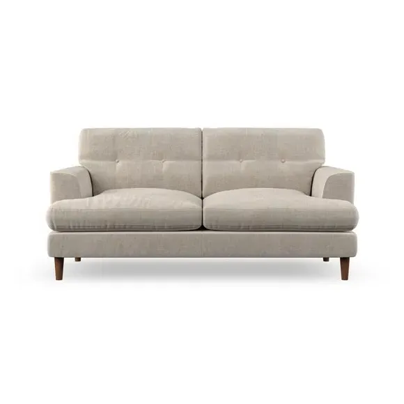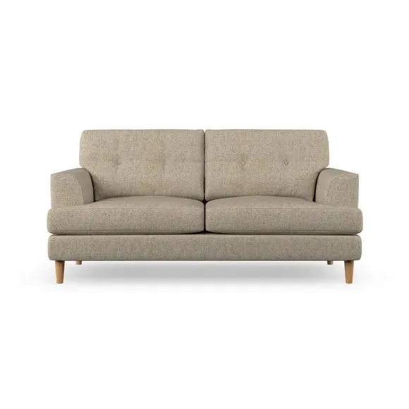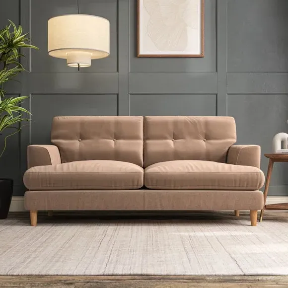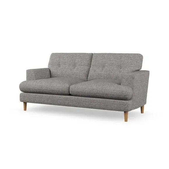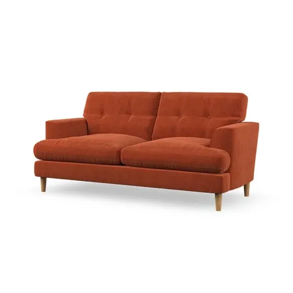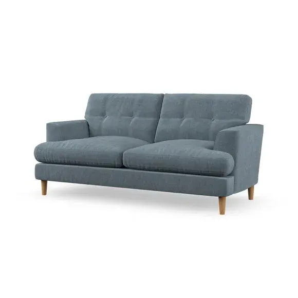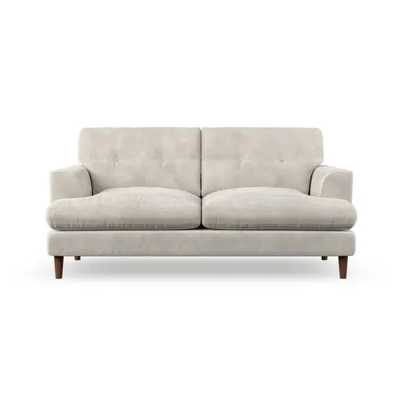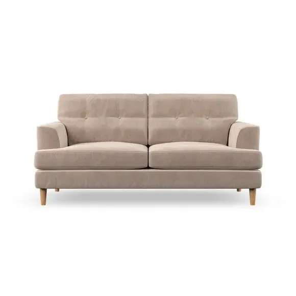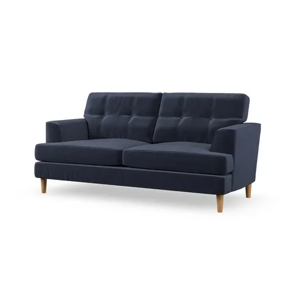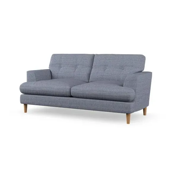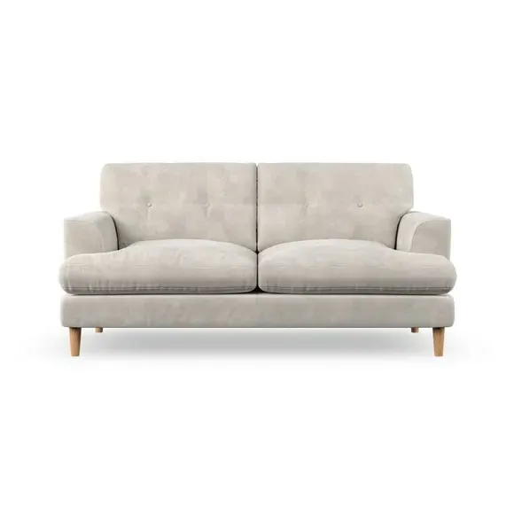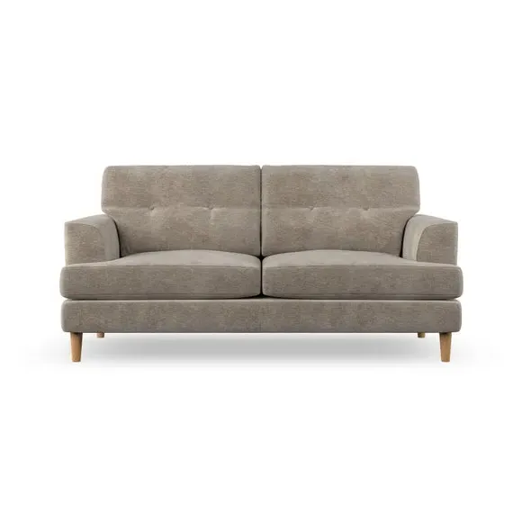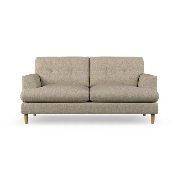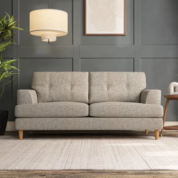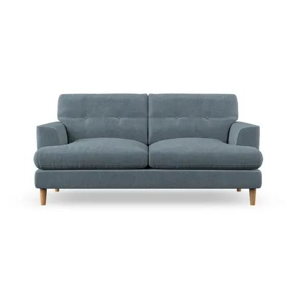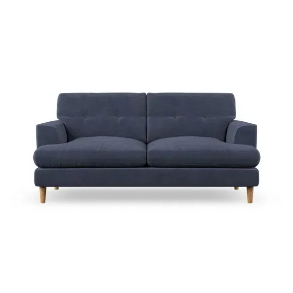 * Scandi inspired design* High legs* Button pull detailing* Choose the cushion filling, leg colour and fabric The Cooper 3 Seater Sofa is a versatile and stylish addition to any home. Its sleek Scandinavian design features high legs, clean lines, and T-shaped seat cushions for a modern look. The fibre-filled back cushions, accented by button-pull detailing, provide a supportive and comfortable seating experience. Available in a range of fabrics, leg finishes, and cushion fillings, the Cooper 3 Seater Sofa can be tailored to match your décor.