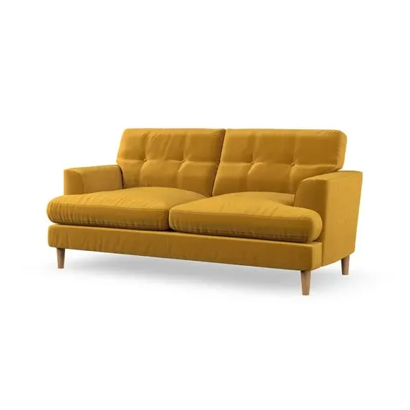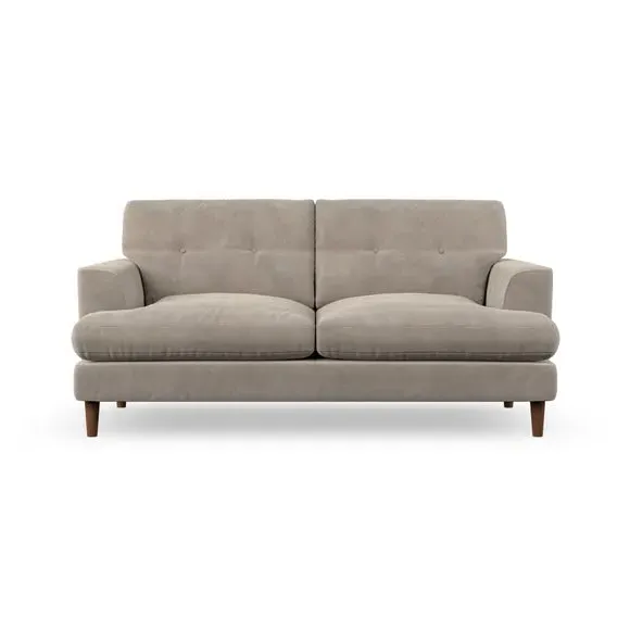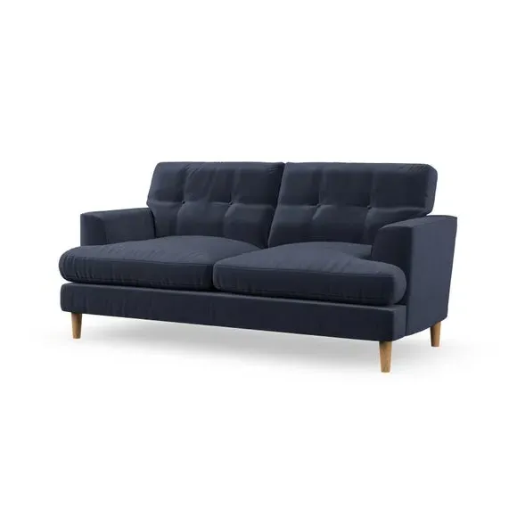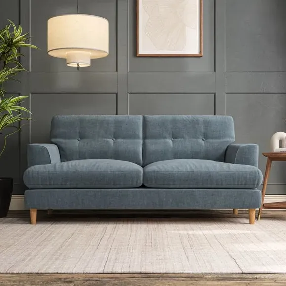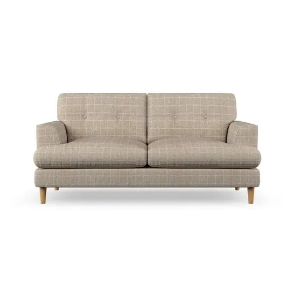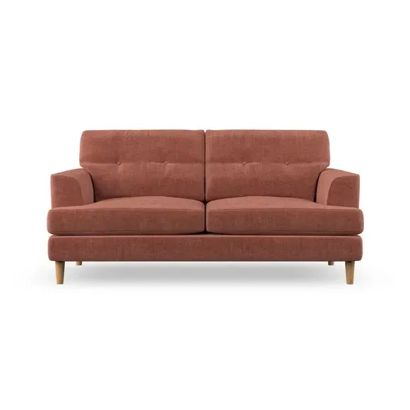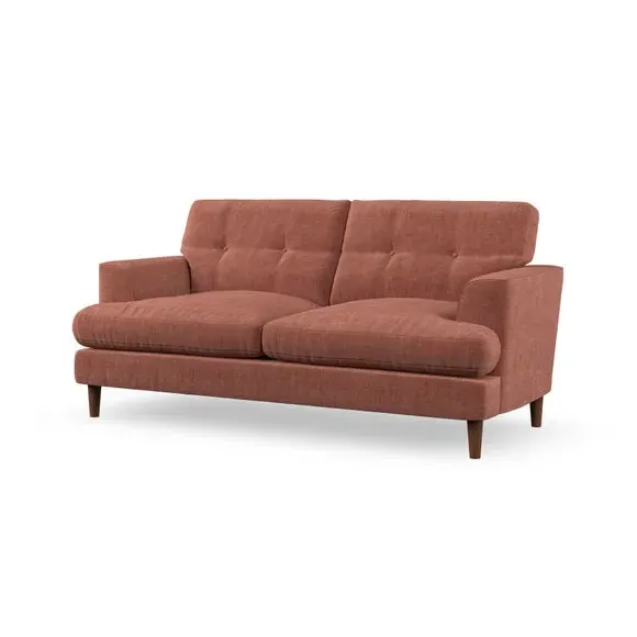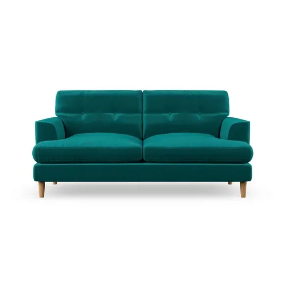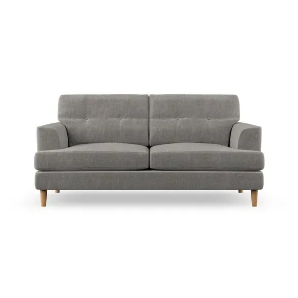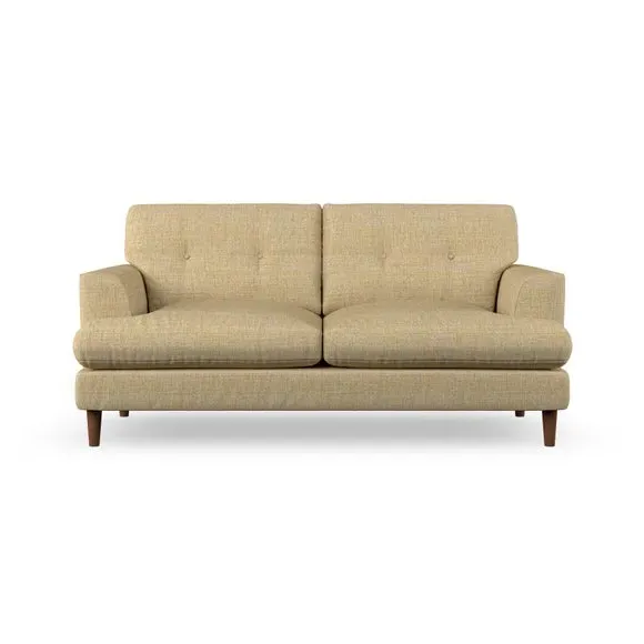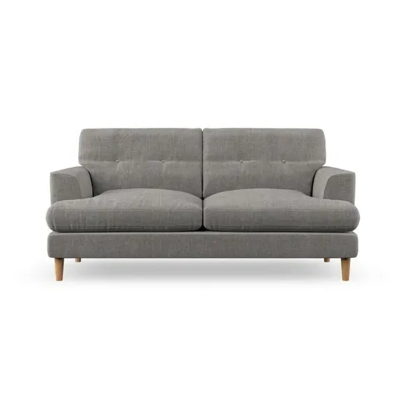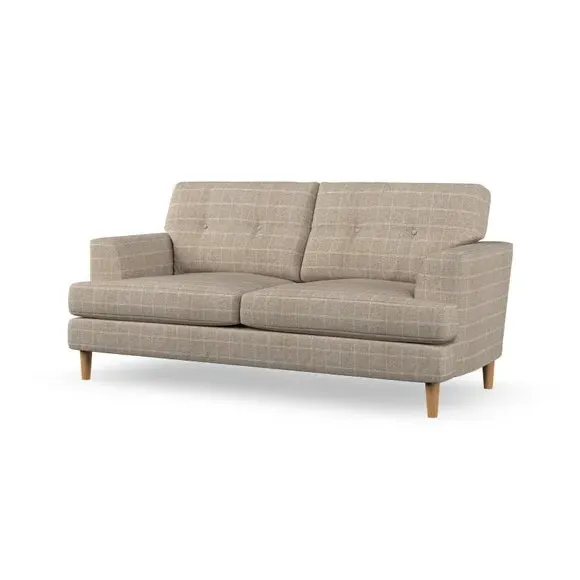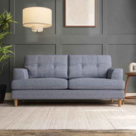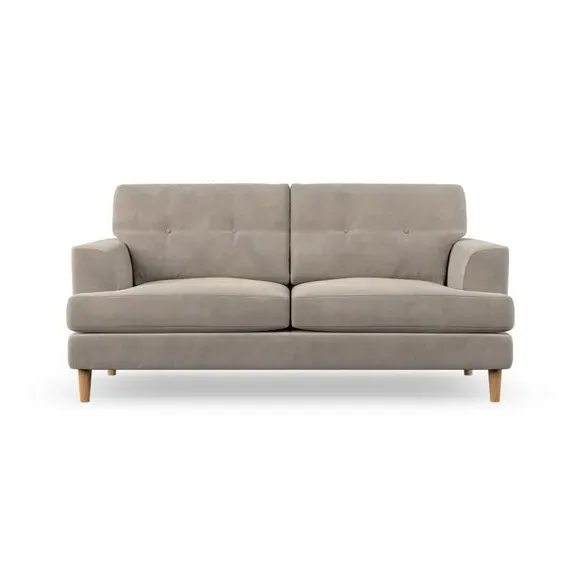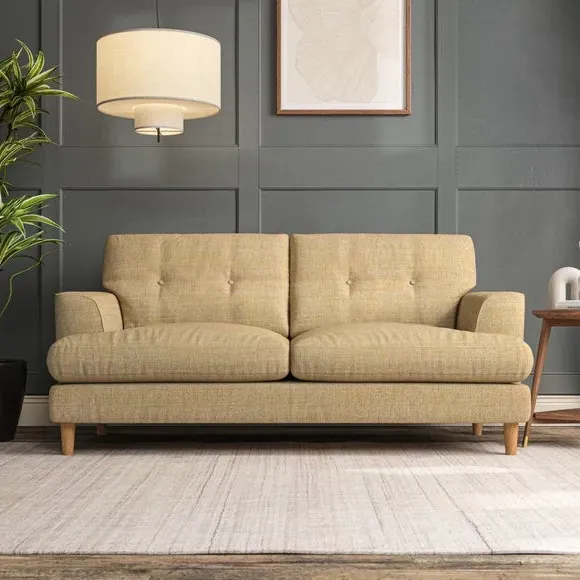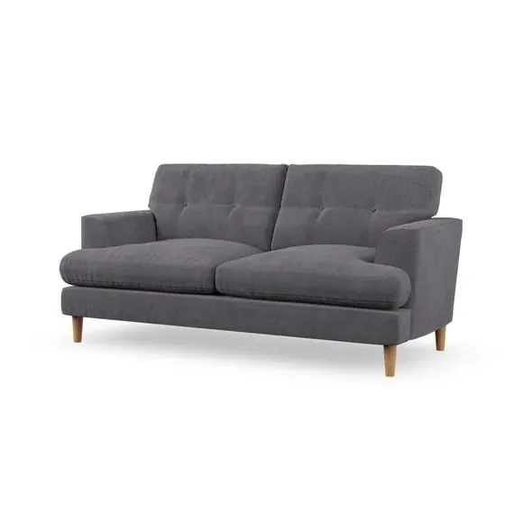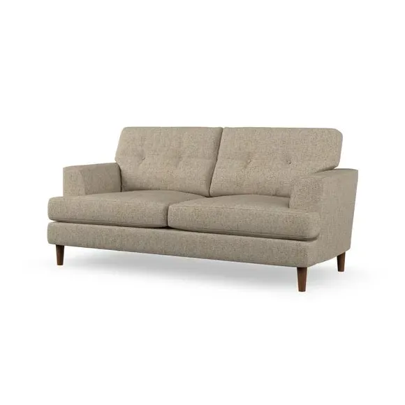 * Scandi inspired design* High legs* Button pull detailing* Choose the cushion filling, leg colour and fabric The Cooper 3 Seater Sofa is a versatile and stylish addition to any home. Its sleek Scandinavian design features high legs, clean lines, and T-shaped seat cushions for a modern look. The fibre-filled back cushions, accented by button-pull detailing, provide a supportive and comfortable seating experience. Available in a range of fabrics, leg finishes, and cushion fillings, the Cooper 3 Seater Sofa can be tailored to match your décor.