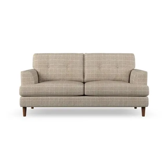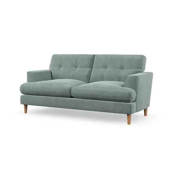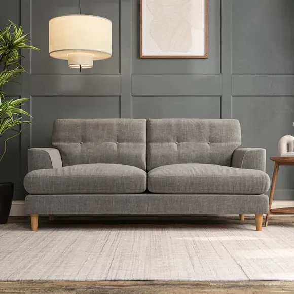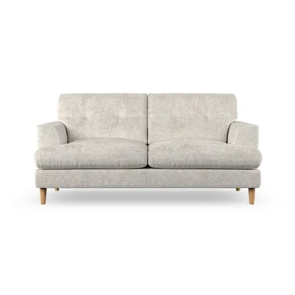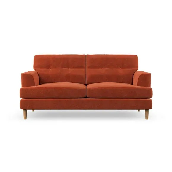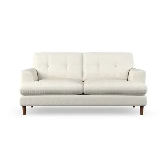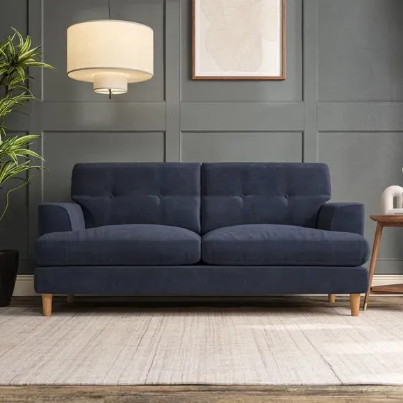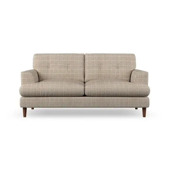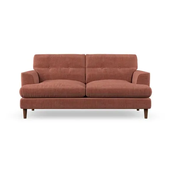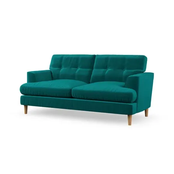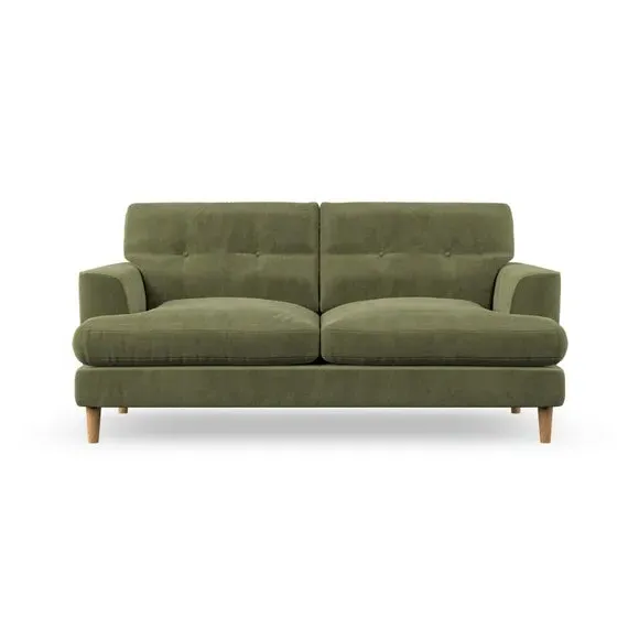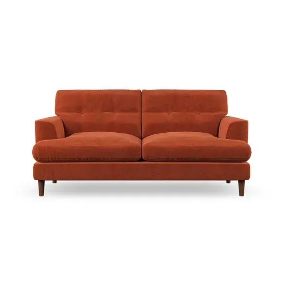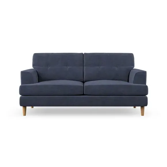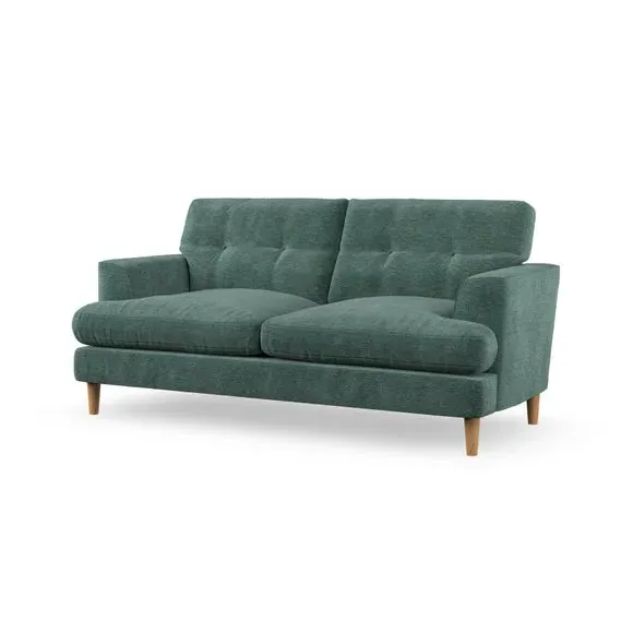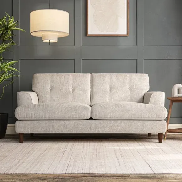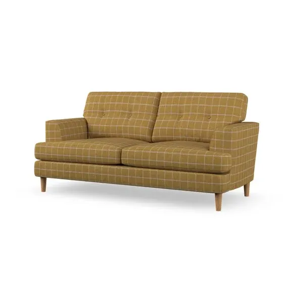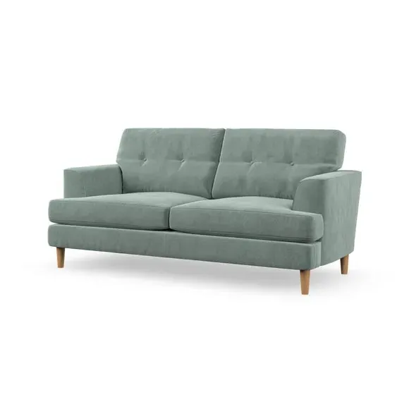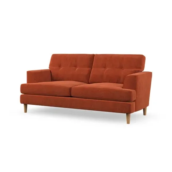* Scandi inspired design* High legs* Button pull detailing* Choose the cushion filling, leg colour and fabric The Cooper 3 Seater Sofa is a versatile and stylish addition to any home. Its sleek Scandinavian design features high legs, clean lines, and T-shaped seat cushions for a modern look. The fibre-filled back cushions, accented by button-pull detailing, provide a supportive and comfortable seating experience. Available in a range of fabrics, leg finishes, and cushion fillings, the Cooper 3 Seater Sofa can be tailored to match your décor.
