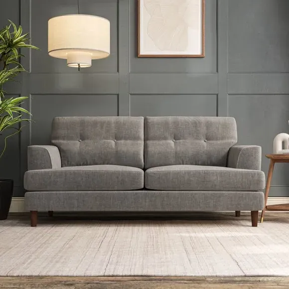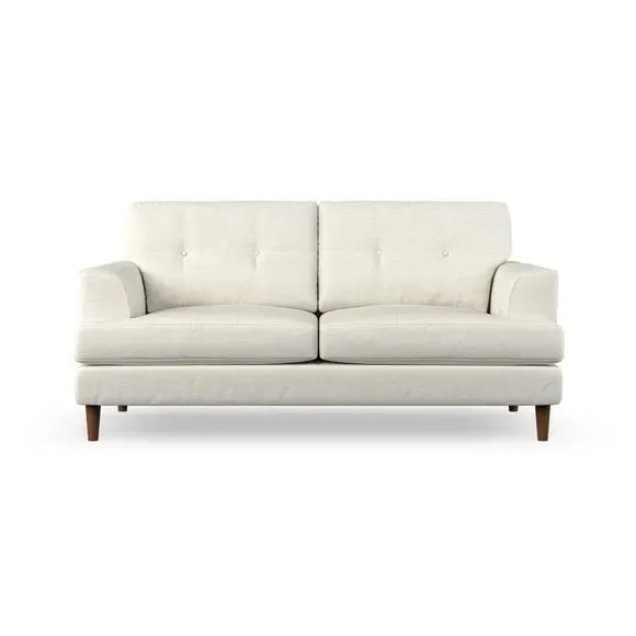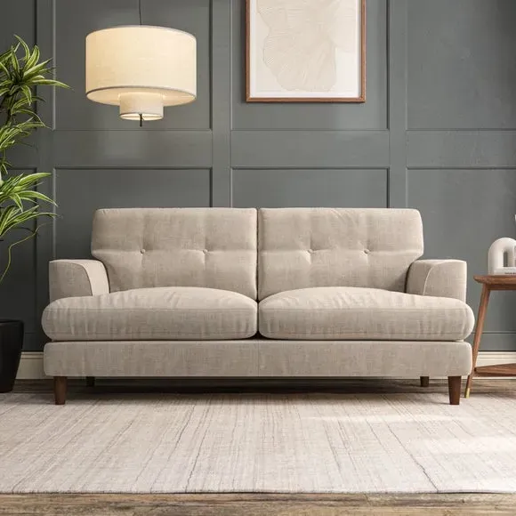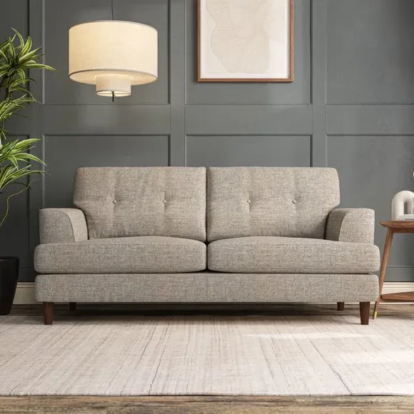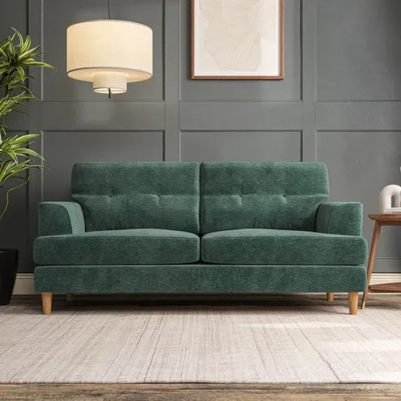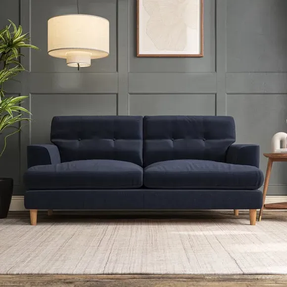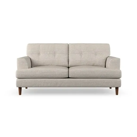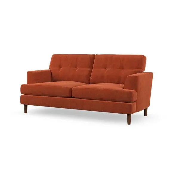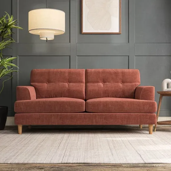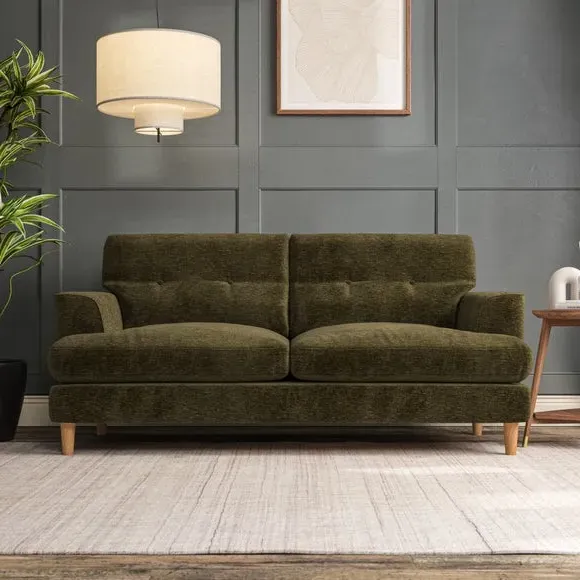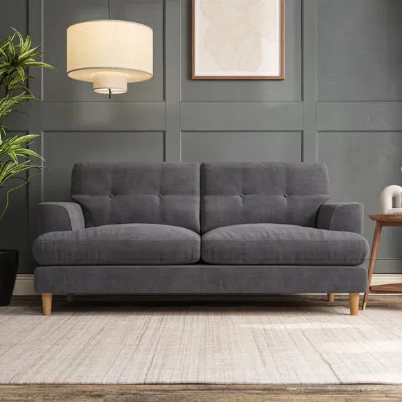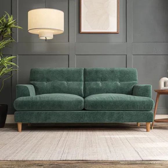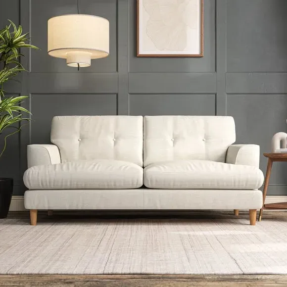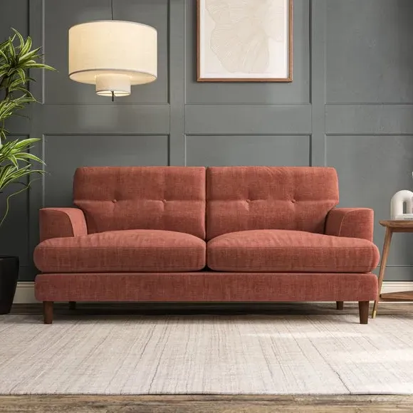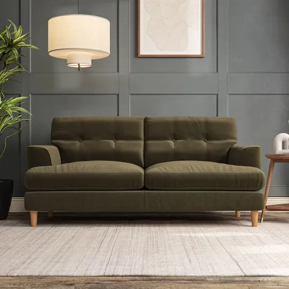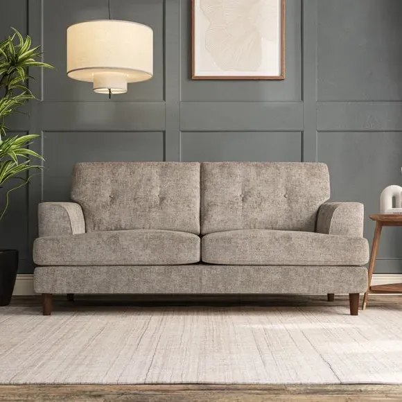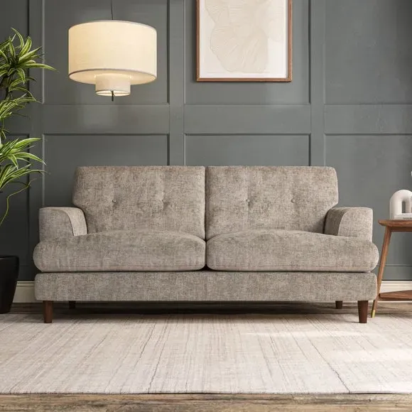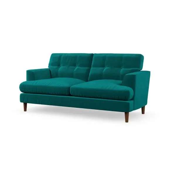 * Scandi inspired design* High legs* Button pull detailing* Choose the cushion filling, leg colour and fabric The Cooper 3 Seater Sofa is a versatile and stylish addition to any home. Its sleek Scandinavian design features high legs, clean lines, and T-shaped seat cushions for a modern look. The fibre-filled back cushions, accented by button-pull detailing, provide a supportive and comfortable seating experience. Available in a range of fabrics, leg finishes, and cushion fillings, the Cooper 3 Seater Sofa can be tailored to match your décor.
