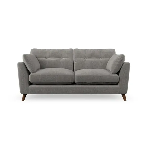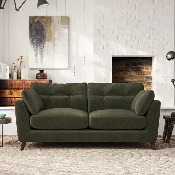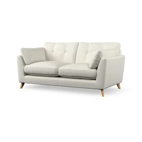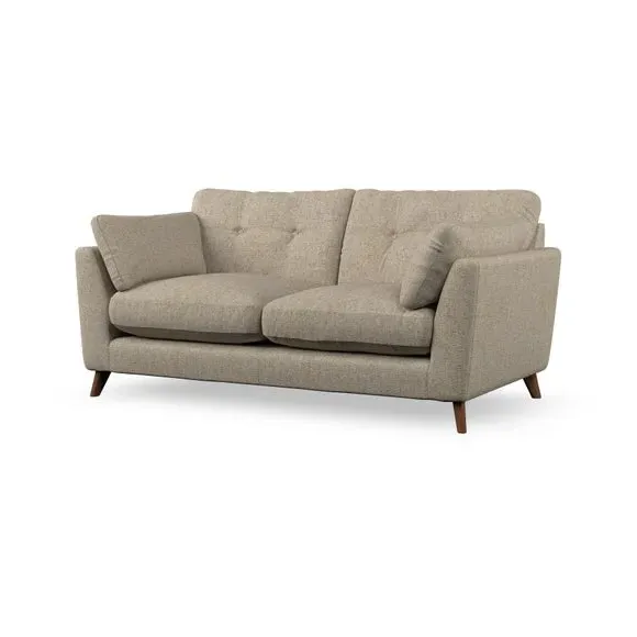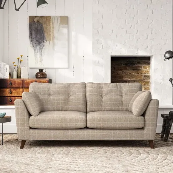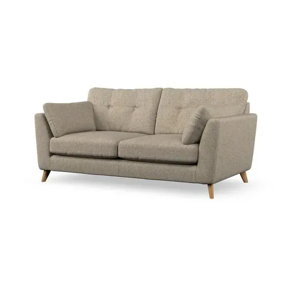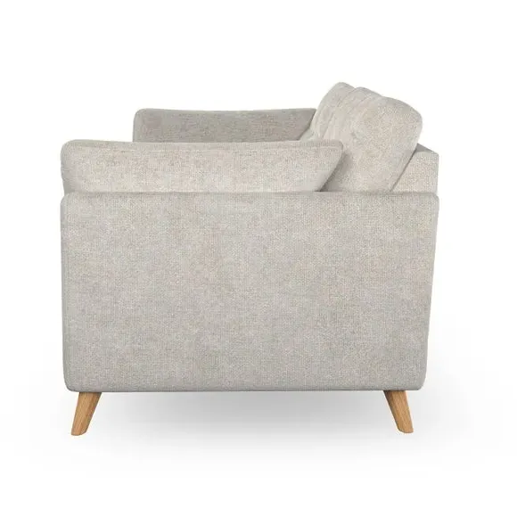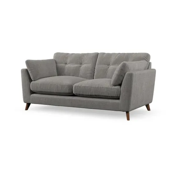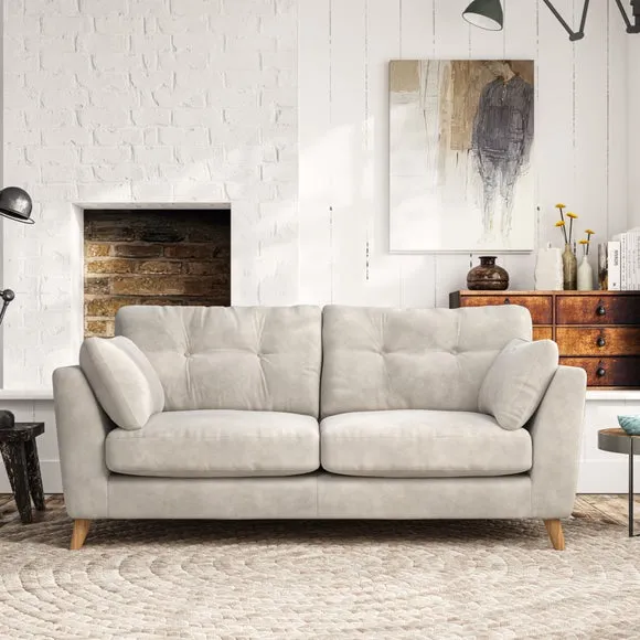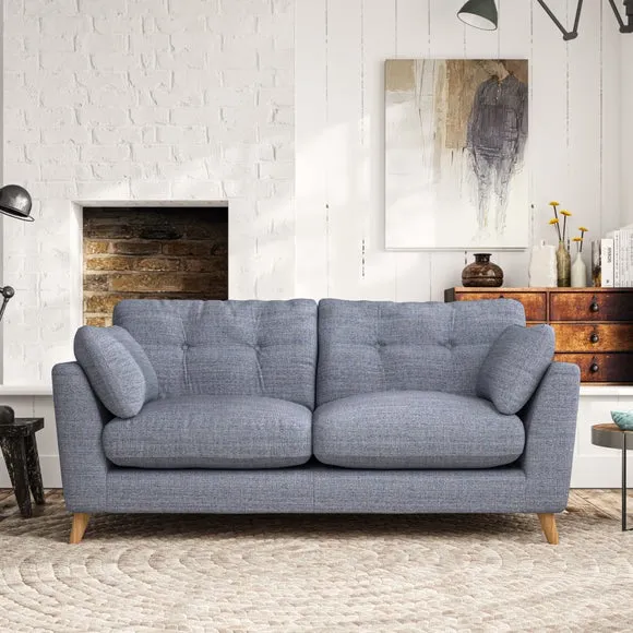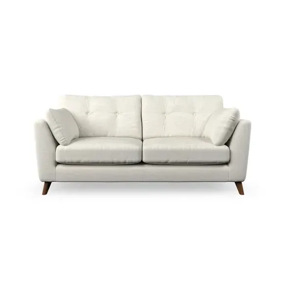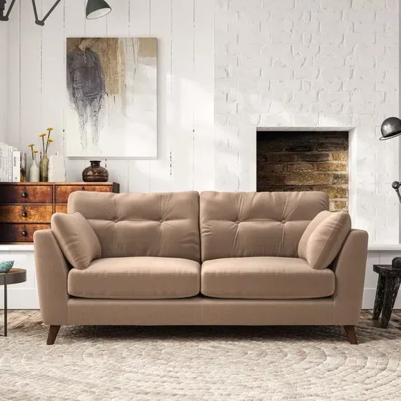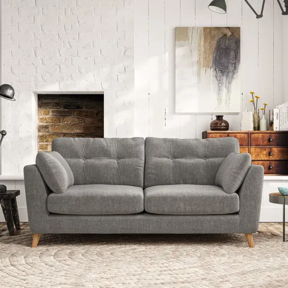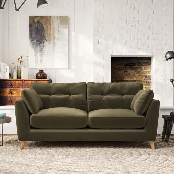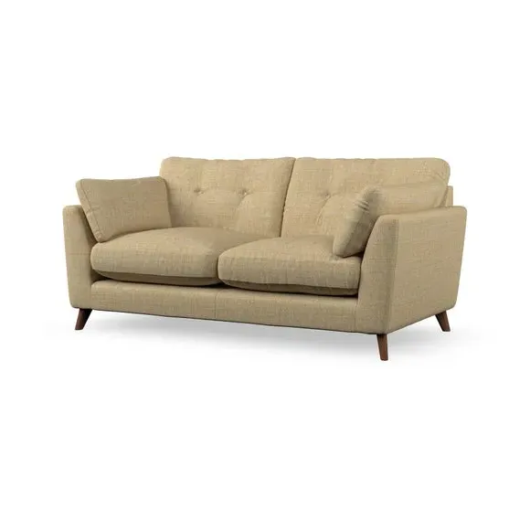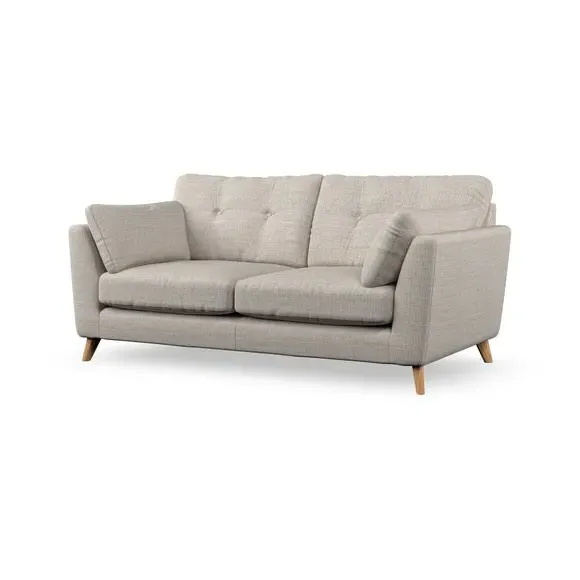* Mid-century style* Pillow top arms* Button pull details* Choose fabric type, leg colour and cushion filling This sofa's high legs and plush fibre-filled arm pads add softness to its clean lines, while the button-pull details on the supportive back cushions provide a refined touch. The higher back cushions offer excellent support for your back and shoulders, ensuring comfort without compromise. You can personalise your sofa by choosing between a low-maintenance foam seat or a more relaxed 'Qualofill Blue' fibre seat. Built with serpentine seat springs, the Peyton sofa ensures durability and comfort for the long term. The splayed hardwood legs, available in two finishes, are easy to fit and allow for customisation.