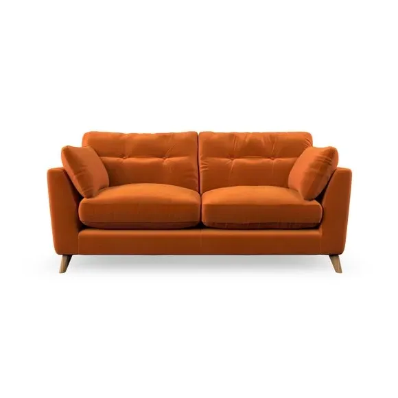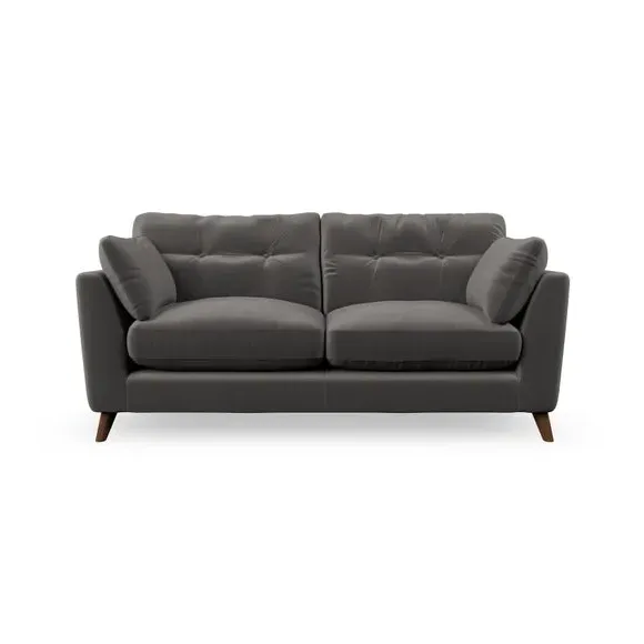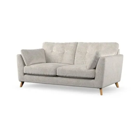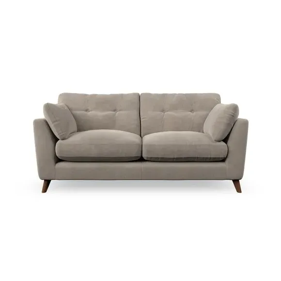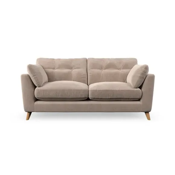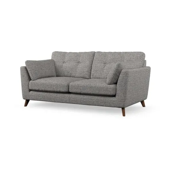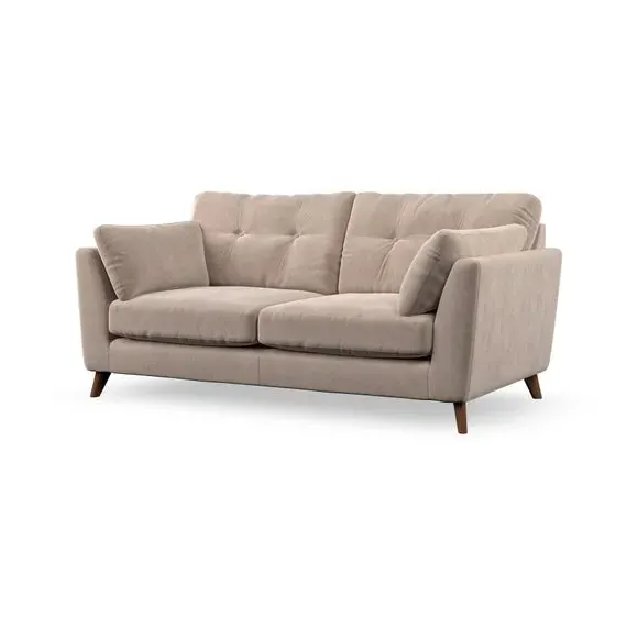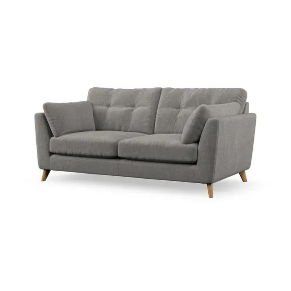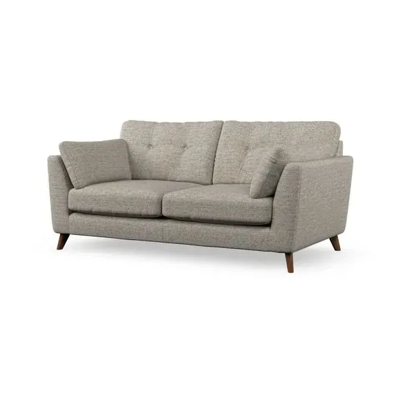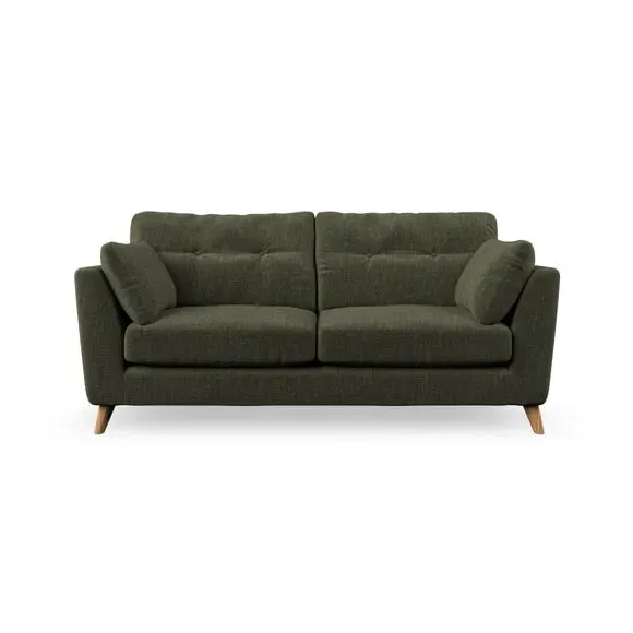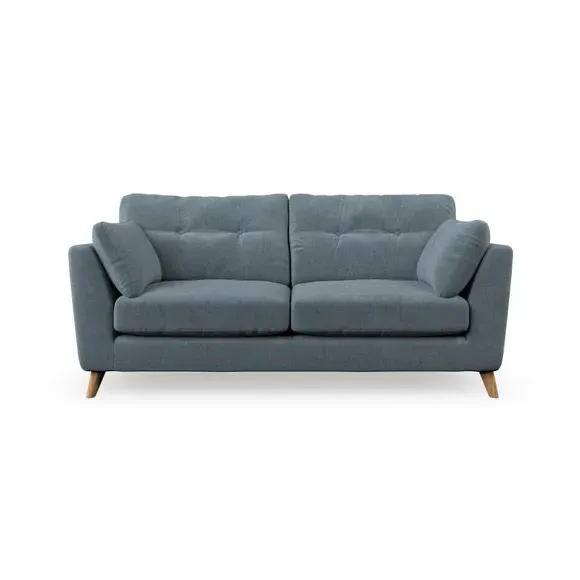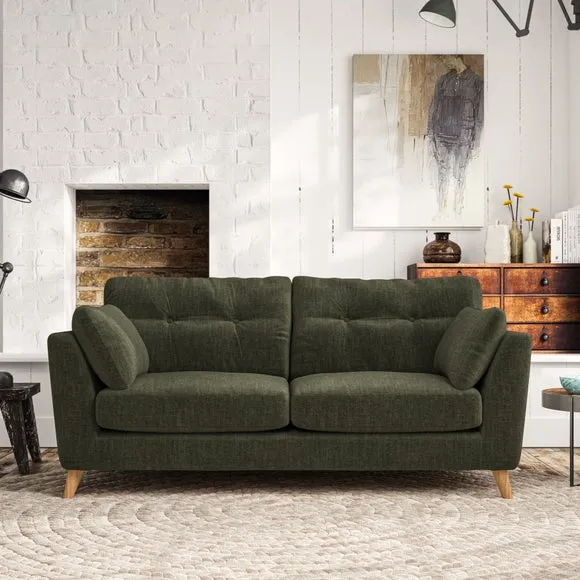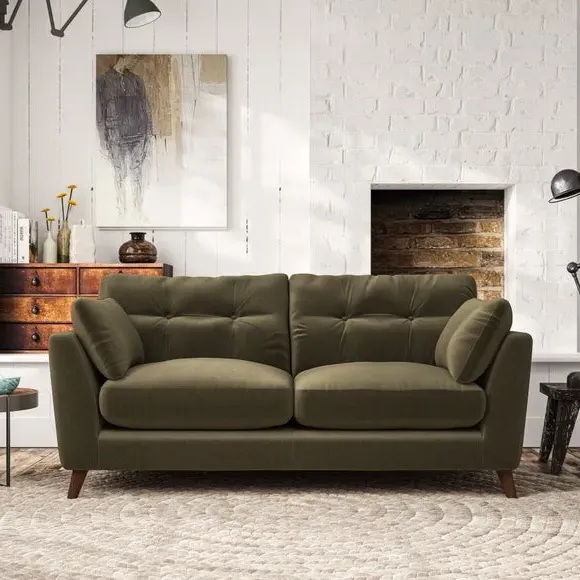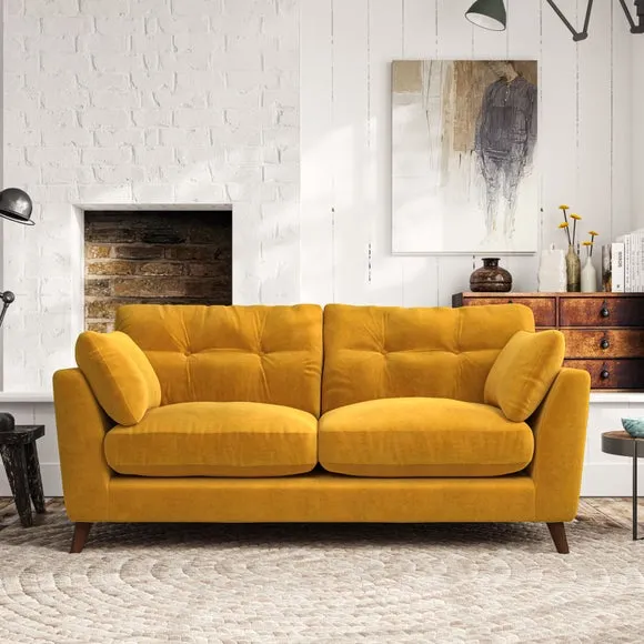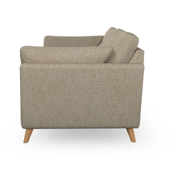 * Mid-century style* Pillow top arms* Button pull details* Choose fabric type, leg colour and cushion filling This sofa's high legs and plush fibre-filled arm pads add softness to its clean lines, while the button-pull details on the supportive back cushions provide a refined touch. The higher back cushions offer excellent support for your back and shoulders, ensuring comfort without compromise. You can personalise your sofa by choosing between a low-maintenance foam seat or a more relaxed 'Qualofill Blue' fibre seat. Built with serpentine seat springs, the Peyton sofa ensures durability and comfort for the long term. The splayed hardwood legs, available in two finishes, are easy to fit and allow for customisation.
