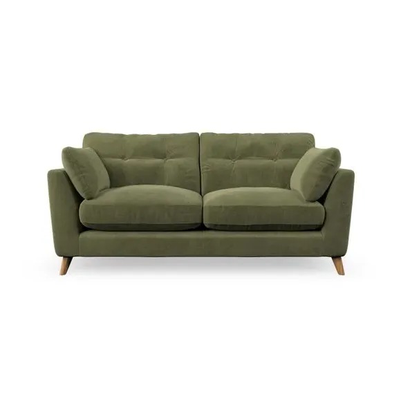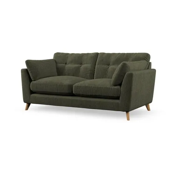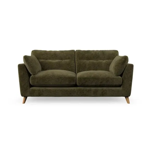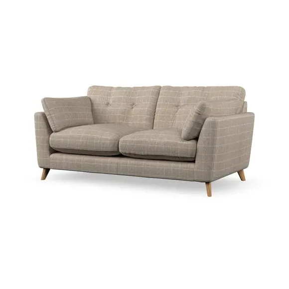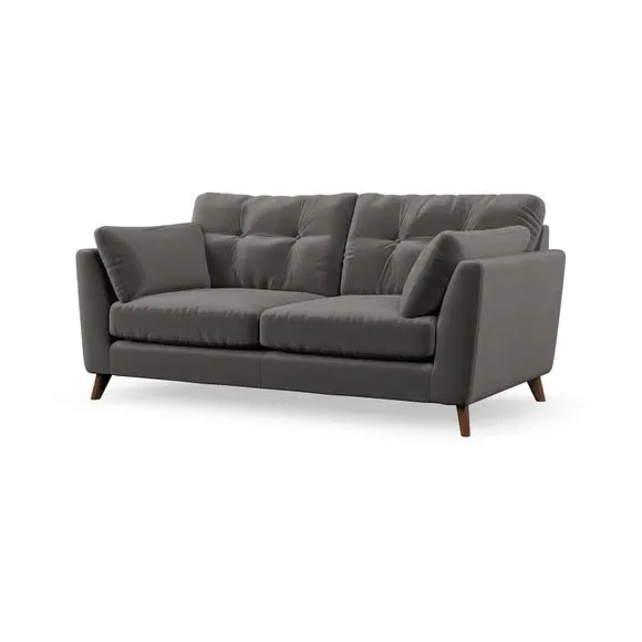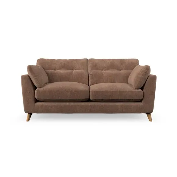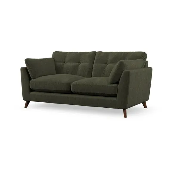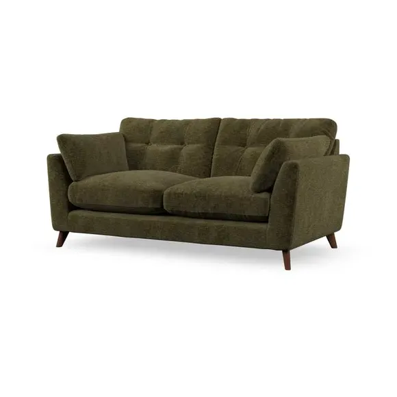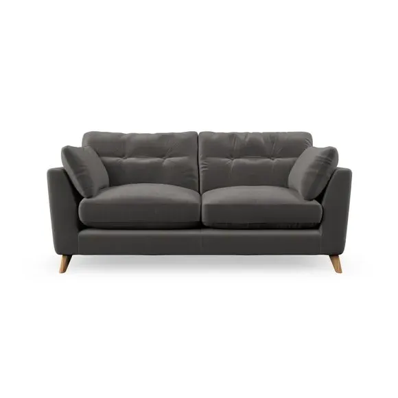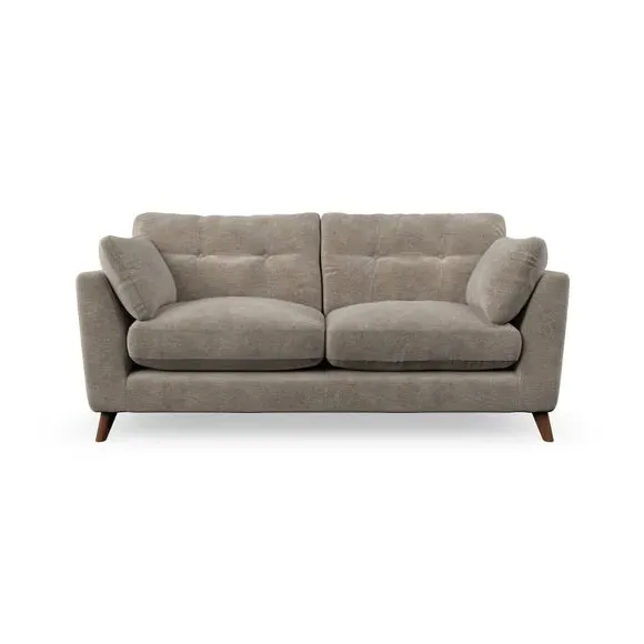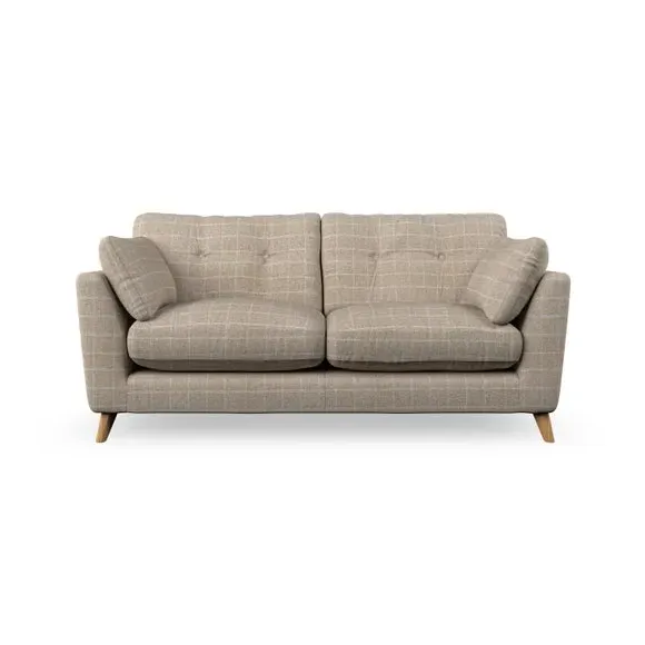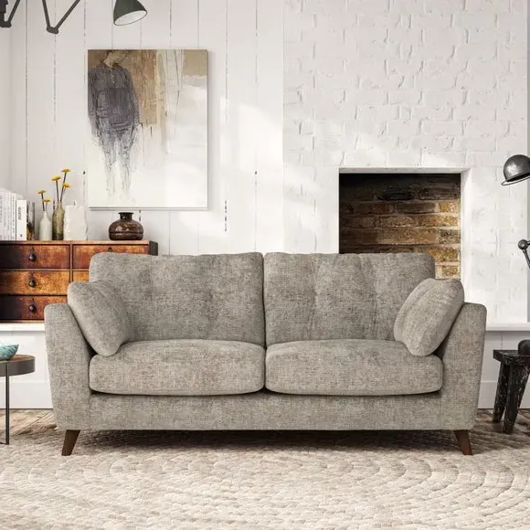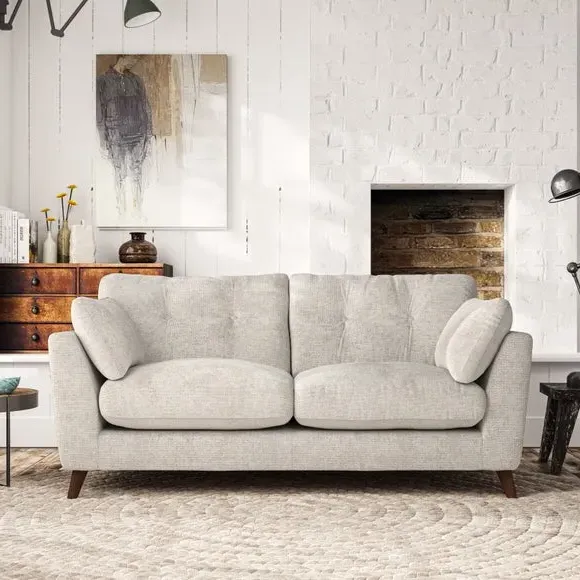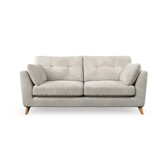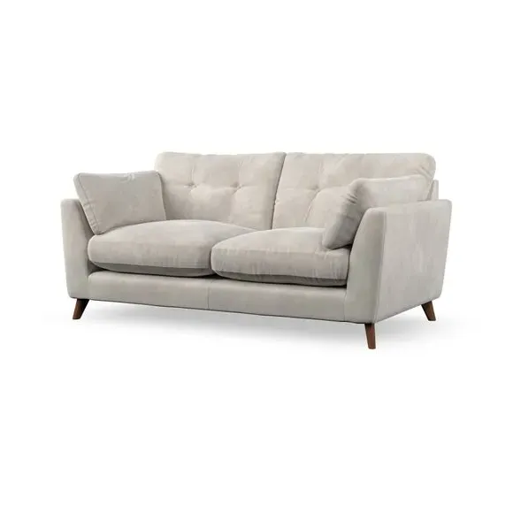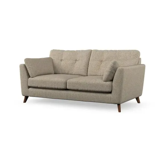 * Mid-century style* Pillow top arms* Button pull details* Choose fabric type, leg colour and cushion filling This sofa's high legs and plush fibre-filled arm pads add softness to its clean lines, while the button-pull details on the supportive back cushions provide a refined touch. The higher back cushions offer excellent support for your back and shoulders, ensuring comfort without compromise. You can personalise your sofa by choosing between a low-maintenance foam seat or a more relaxed 'Qualofill Blue' fibre seat. Built with serpentine seat springs, the Peyton sofa ensures durability and comfort for the long term. The splayed hardwood legs, available in two finishes, are easy to fit and allow for customisation.