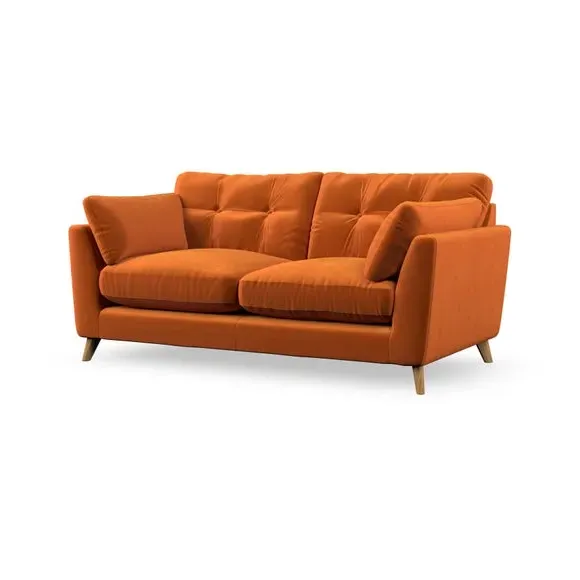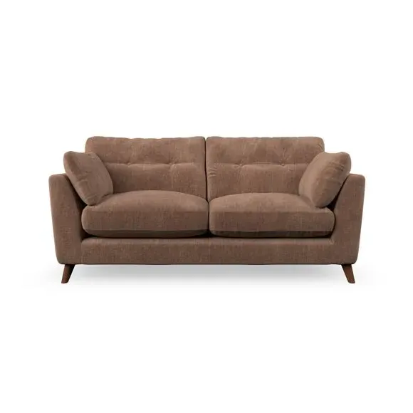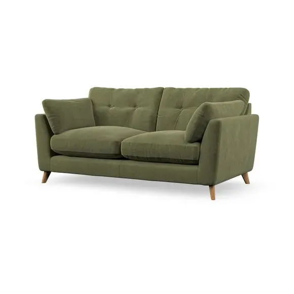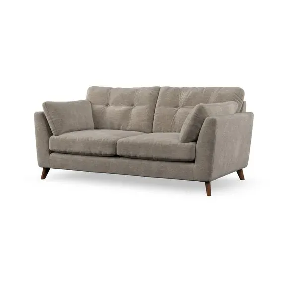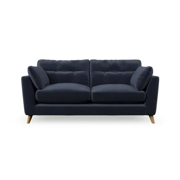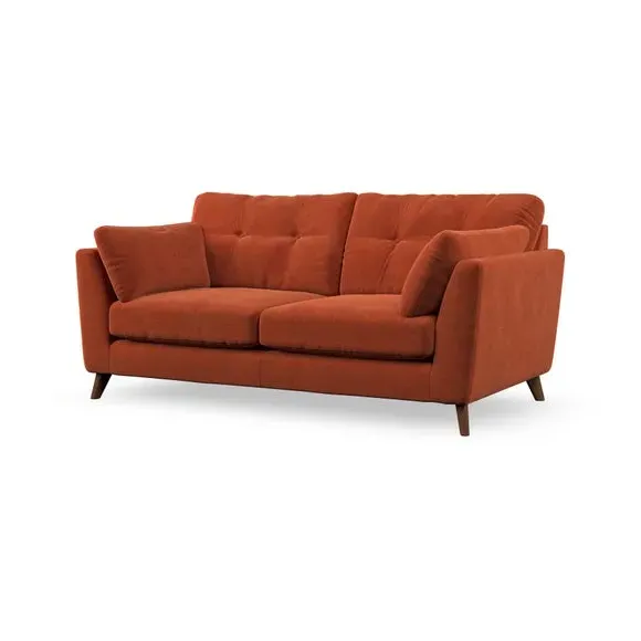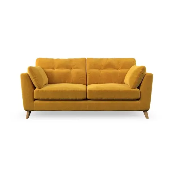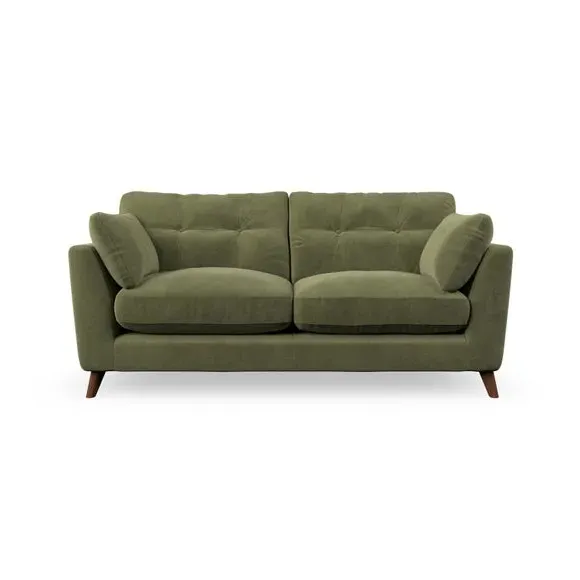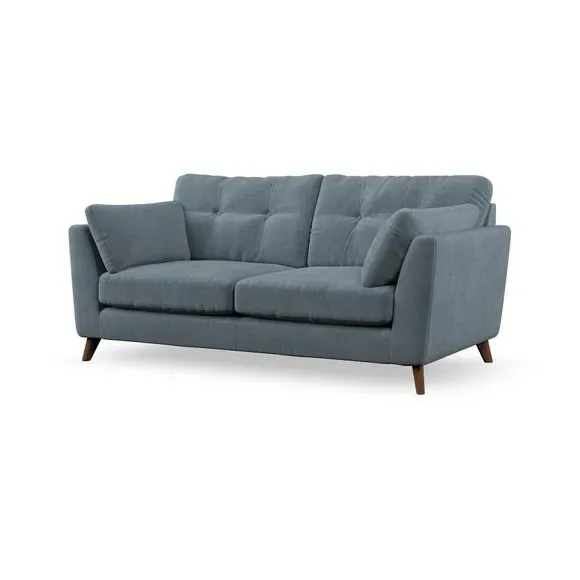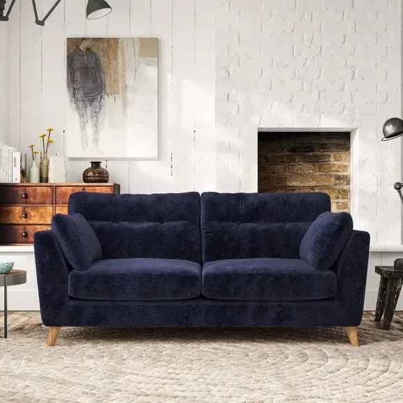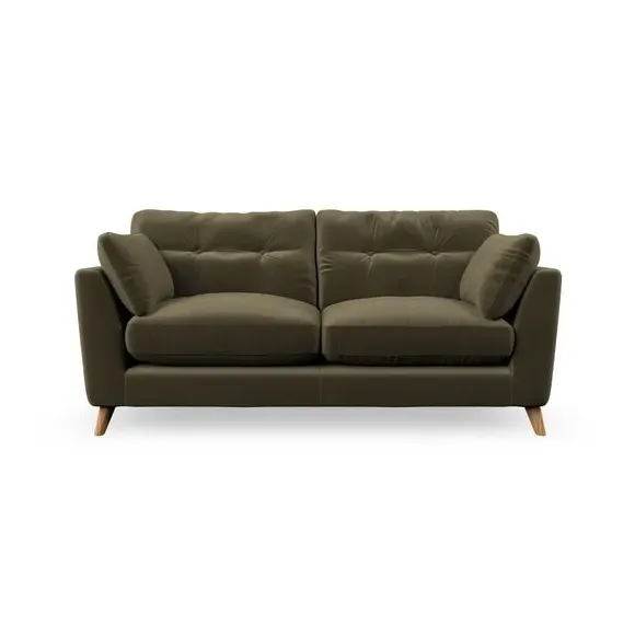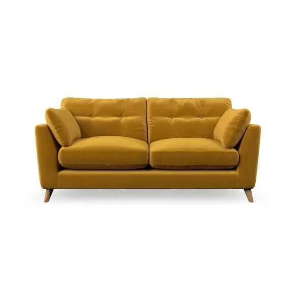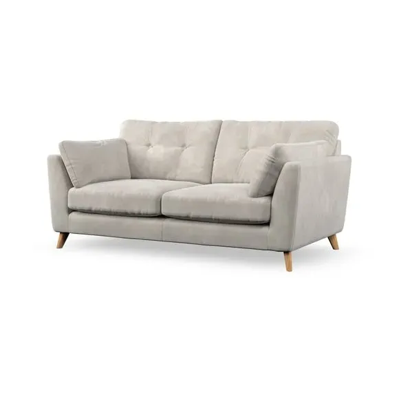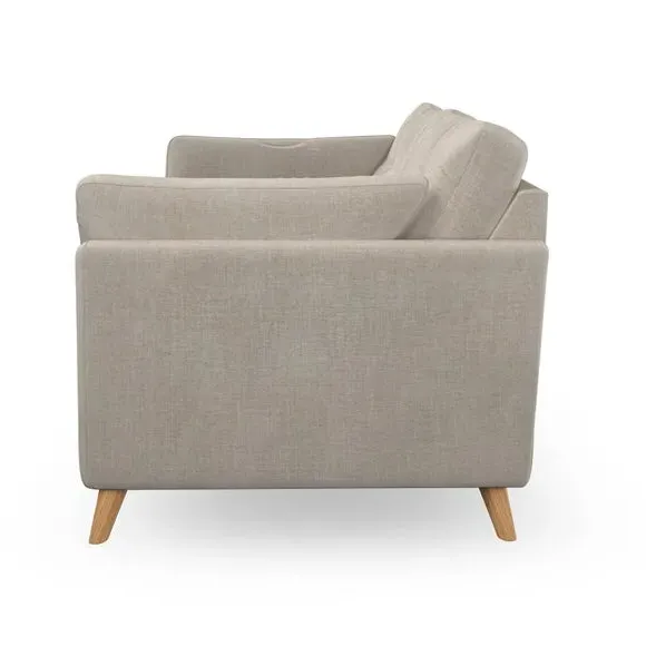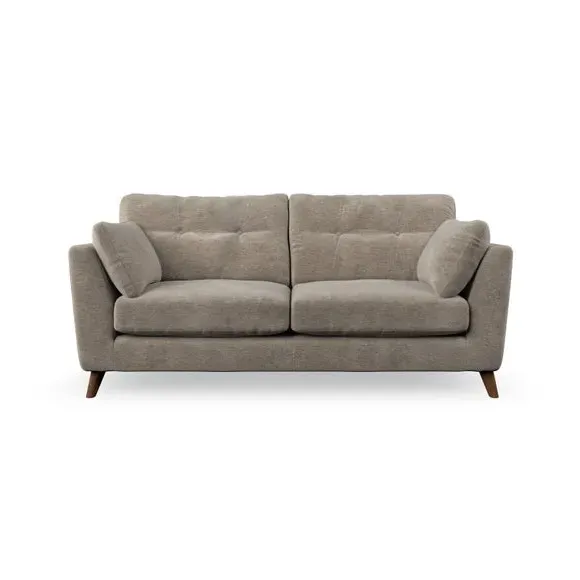 * Mid-century style* Pillow top arms* Button pull details* Choose fabric type, leg colour and cushion filling This sofa's high legs and plush fibre-filled arm pads add softness to its clean lines, while the button-pull details on the supportive back cushions provide a refined touch. The higher back cushions offer excellent support for your back and shoulders, ensuring comfort without compromise. You can personalise your sofa by choosing between a low-maintenance foam seat or a more relaxed 'Qualofill Blue' fibre seat. Built with serpentine seat springs, the Peyton sofa ensures durability and comfort for the long term. The splayed hardwood legs, available in two finishes, are easy to fit and allow for customisation.