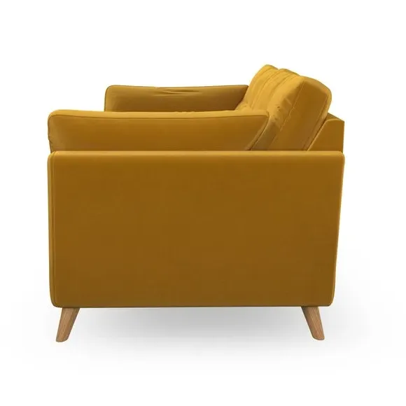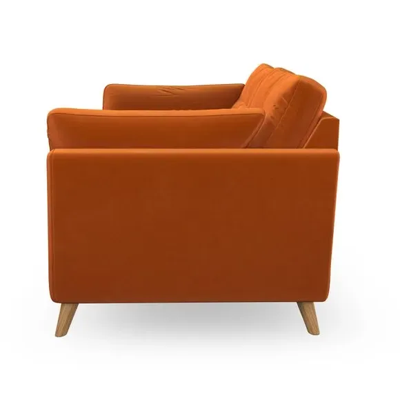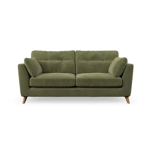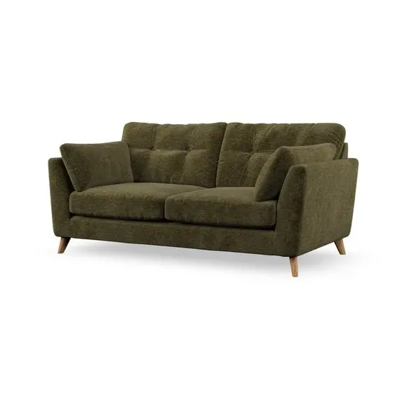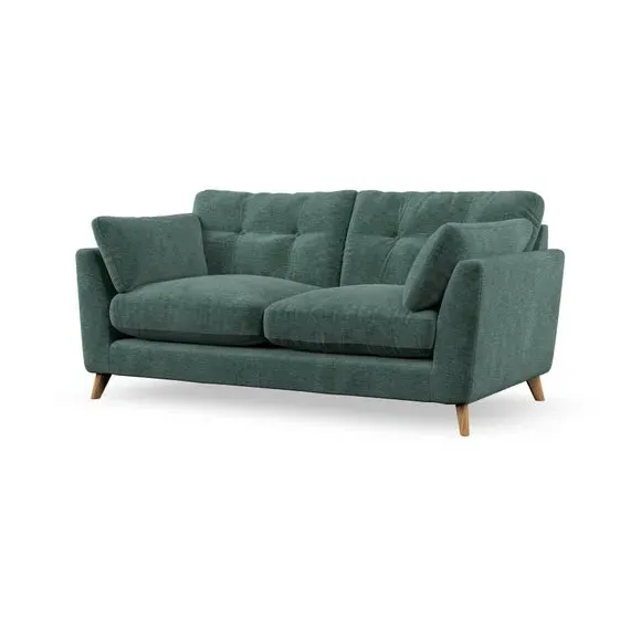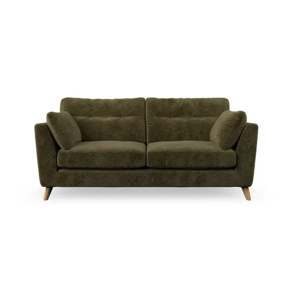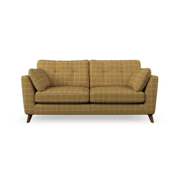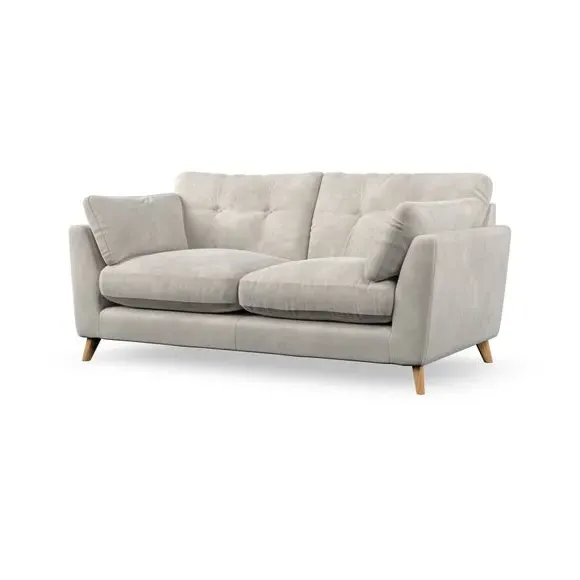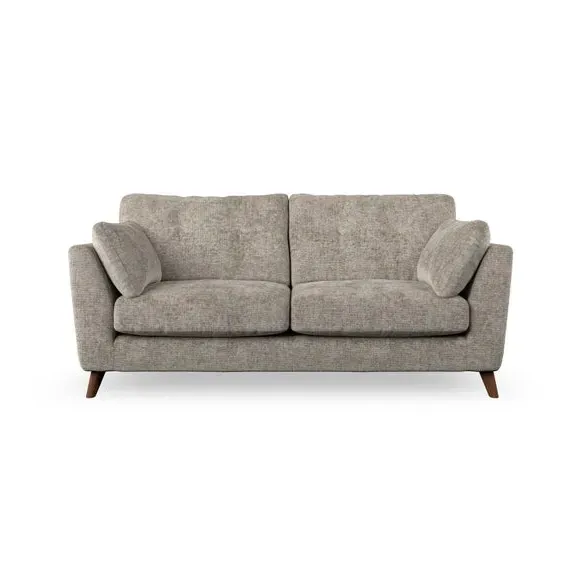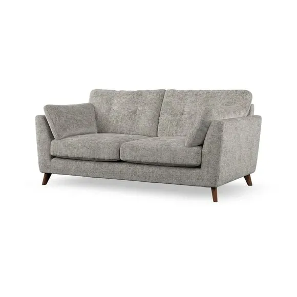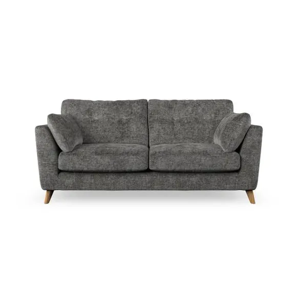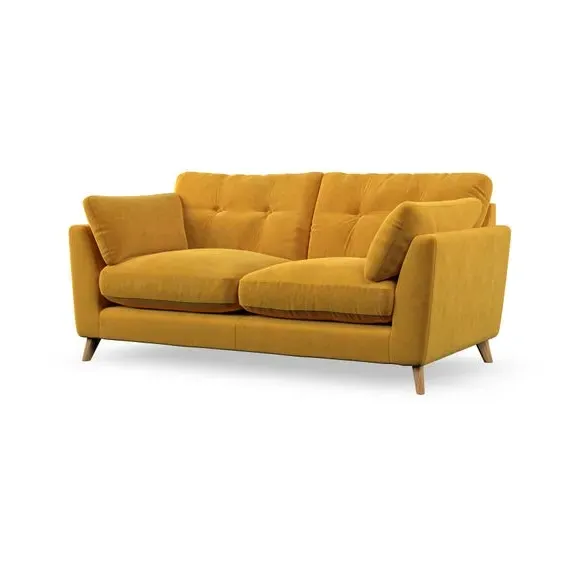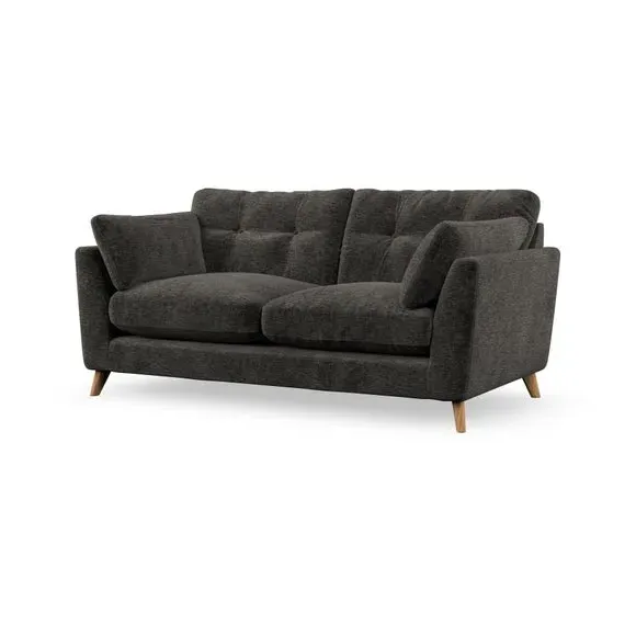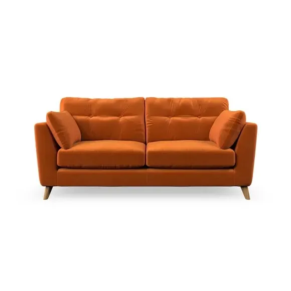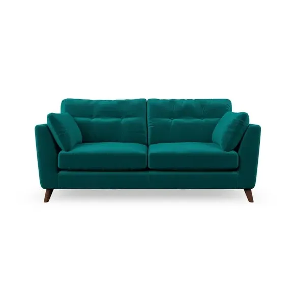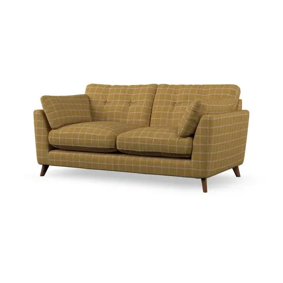 * Mid-century style* Pillow top arms* Button pull details* Choose fabric type, leg colour and cushion filling This sofa's high legs and plush fibre-filled arm pads add softness to its clean lines, while the button-pull details on the supportive back cushions provide a refined touch. The higher back cushions offer excellent support for your back and shoulders, ensuring comfort without compromise. You can personalise your sofa by choosing between a low-maintenance foam seat or a more relaxed 'Qualofill Blue' fibre seat. Built with serpentine seat springs, the Peyton sofa ensures durability and comfort for the long term. The splayed hardwood legs, available in two finishes, are easy to fit and allow for customisation.