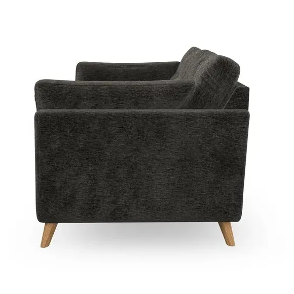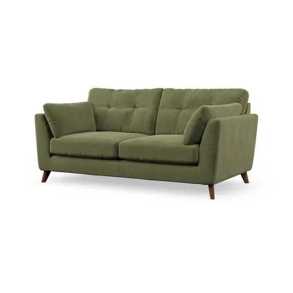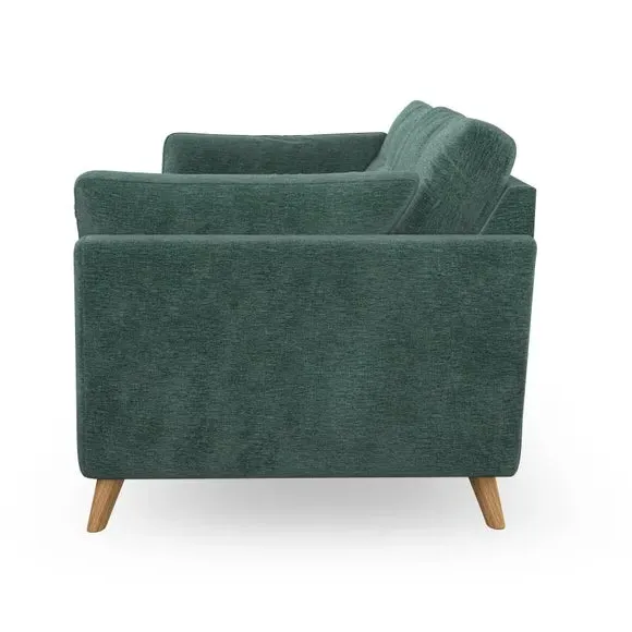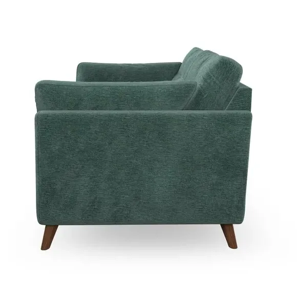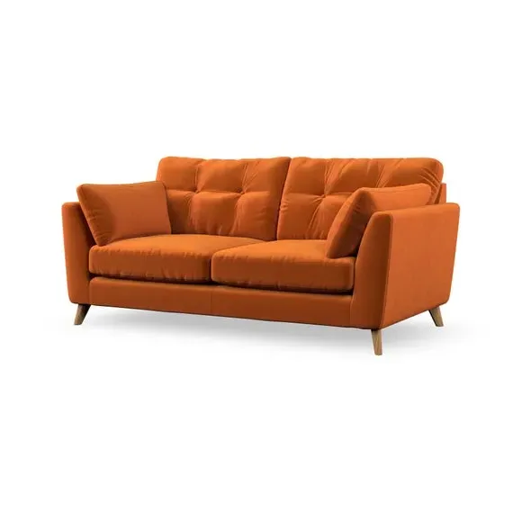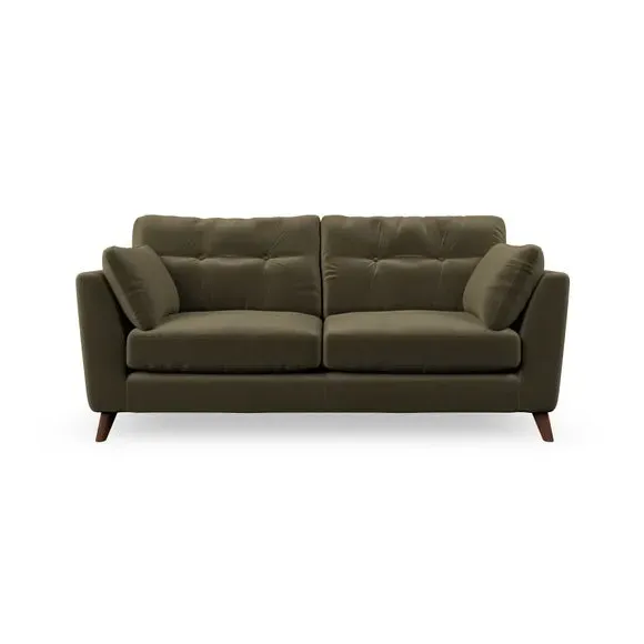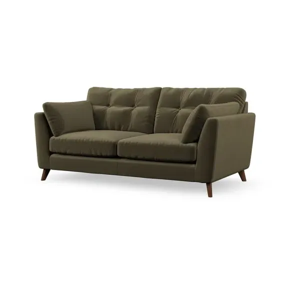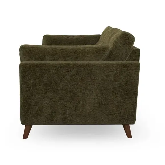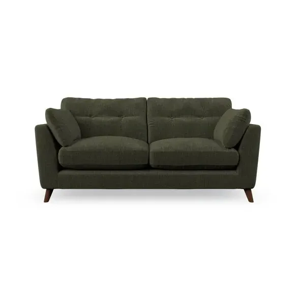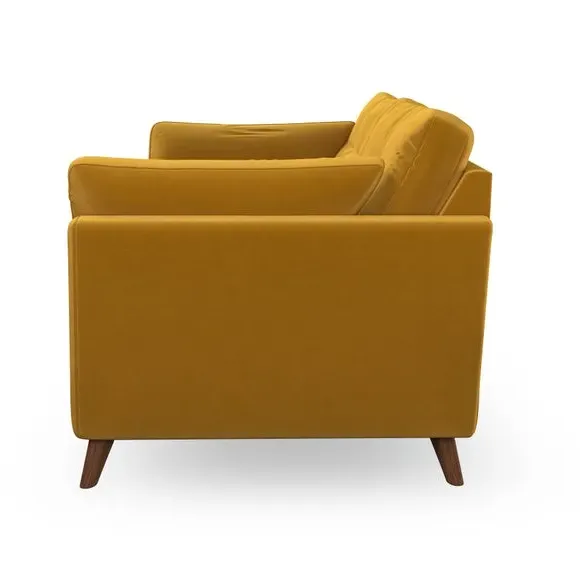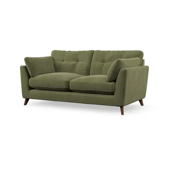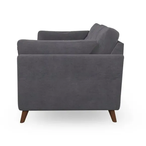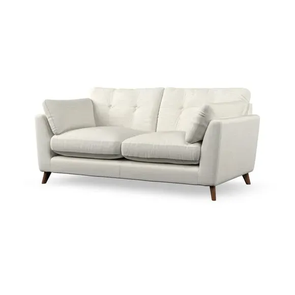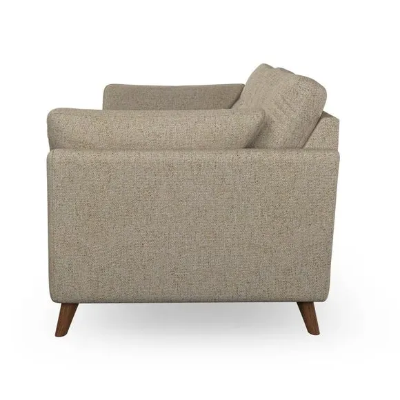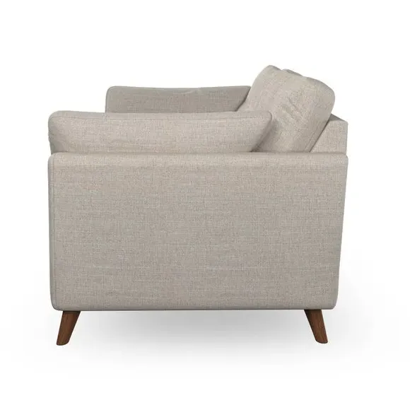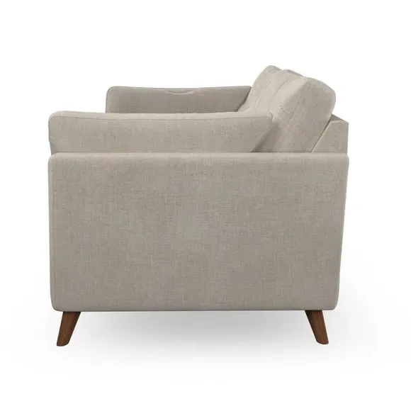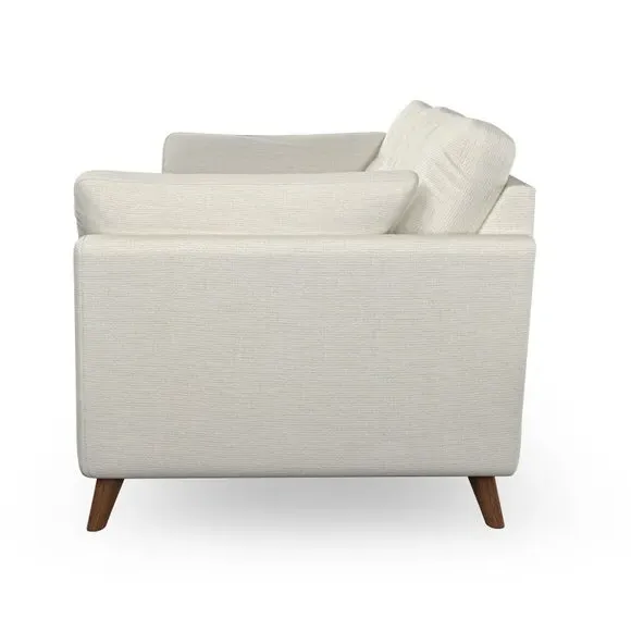 The sofa combines mid-century style with plush fibre-filled arm pads that add softness to its clean lines. Its button-pull details on the back cushions provide a refined touch, while the higher back design offers excellent support for your back and shoulders. Built with serpentine seat springs for durability, the sofa features splayed hardwood legs that are easy to fit and allow for customisation.