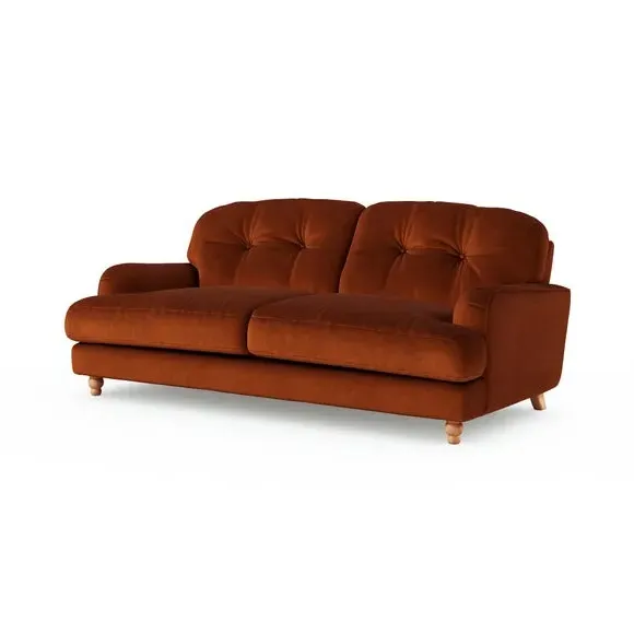 * Plush Velvet Upholstery* Cosy sofa* Timeless, turned, wooden legs* Comfortable fibre-filled seating Luxuriate in comfort with this sumptuous sofa, boasting a plush velvet exterior that radiates sophistication from every angle. Sink into its deep, inviting cushions and experience true indulgence after a long day. The matte finish adds a touch of understated elegance, effortlessly blending classic charm with contemporary style. This product has fibre filled seat cushions. This means they require vigorous plumped by shaking and redistributing the fibres daily. This will add air back into the fibres and preventing clumping, flattening and the seat dipping.