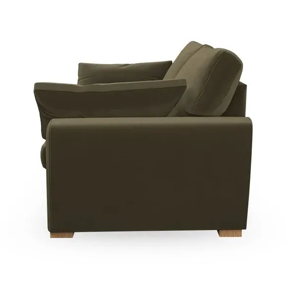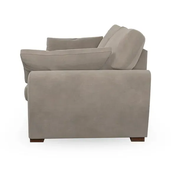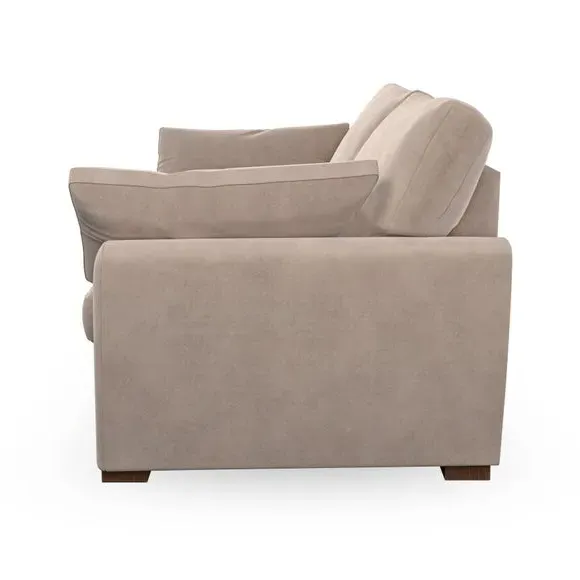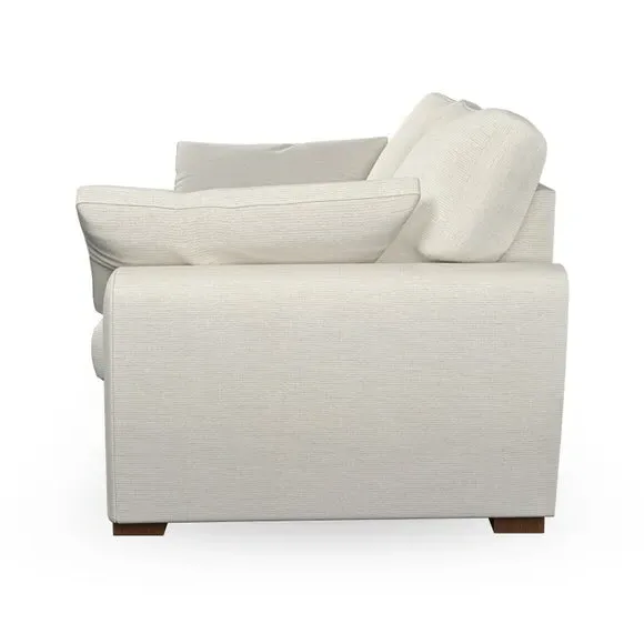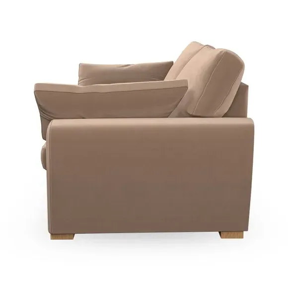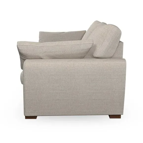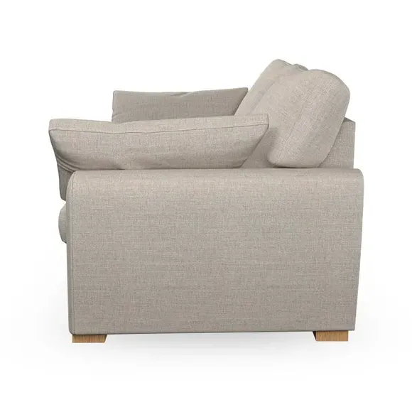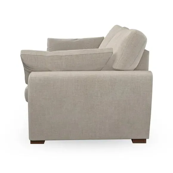 The sofa combines comfort with its pebble-shaped pillow top arms and fibre-filled arm pads that create an inviting feel. Its higher back cushions provide superb support for your back and shoulders, while the serpentine seat springs ensure long-lasting durability. The customizable design allows you to choose from different fabric types, leg colours, and cushion fillings including supportive foam or relaxed fibre-filled seats.