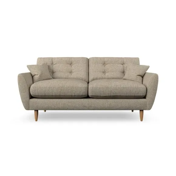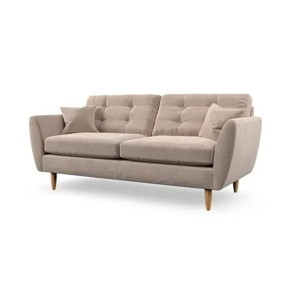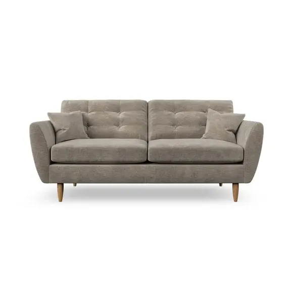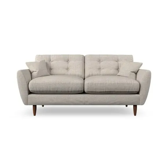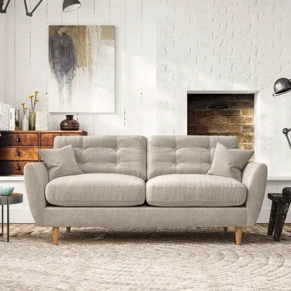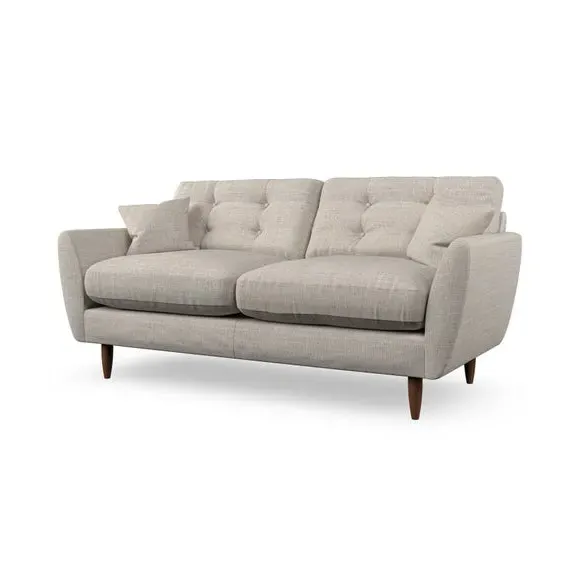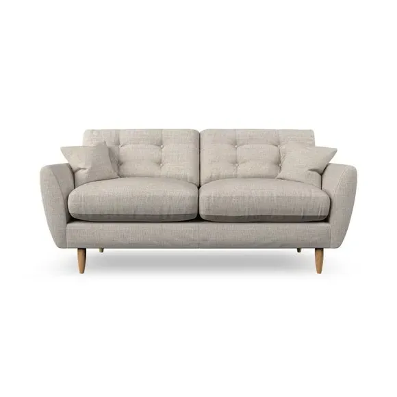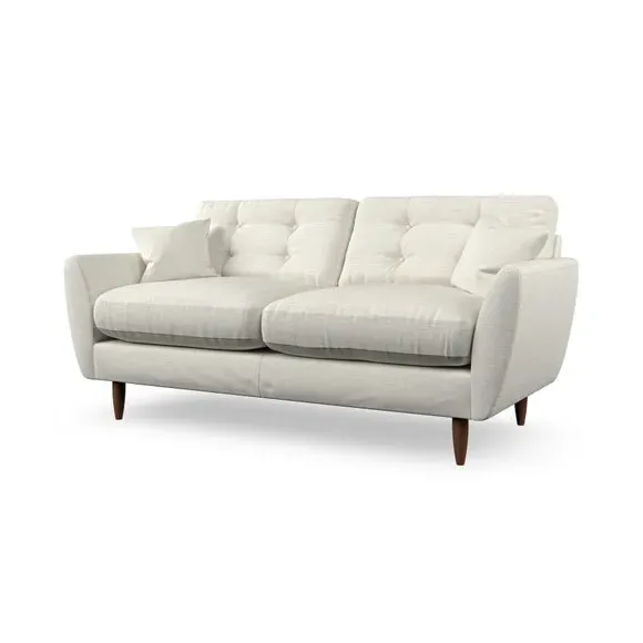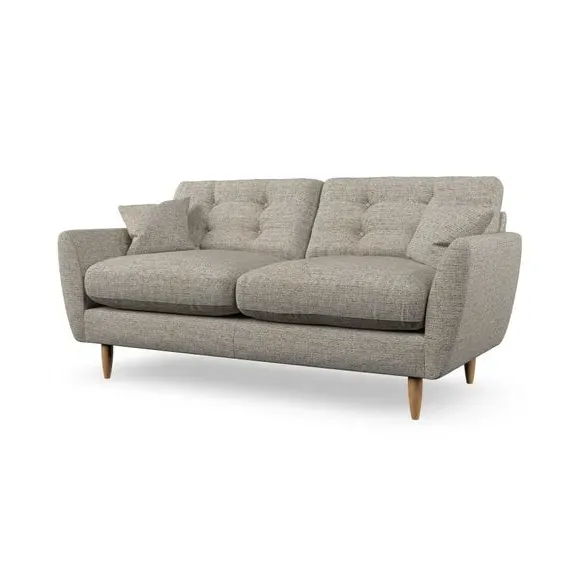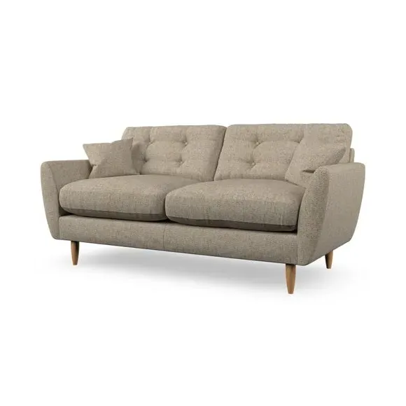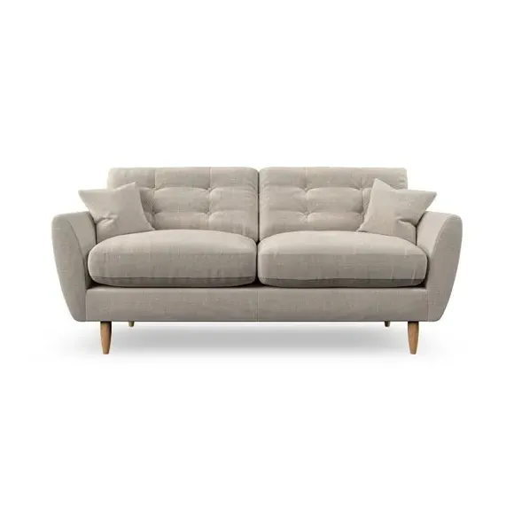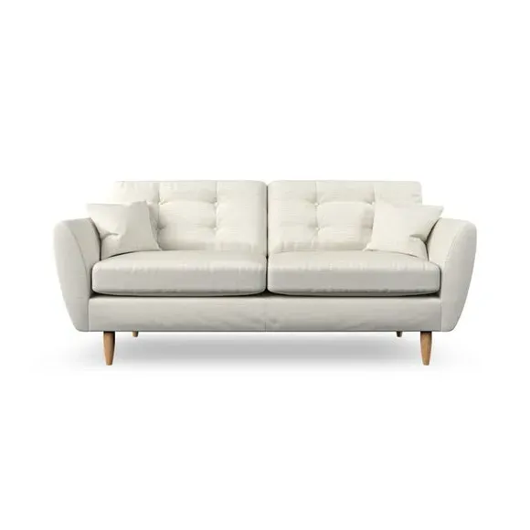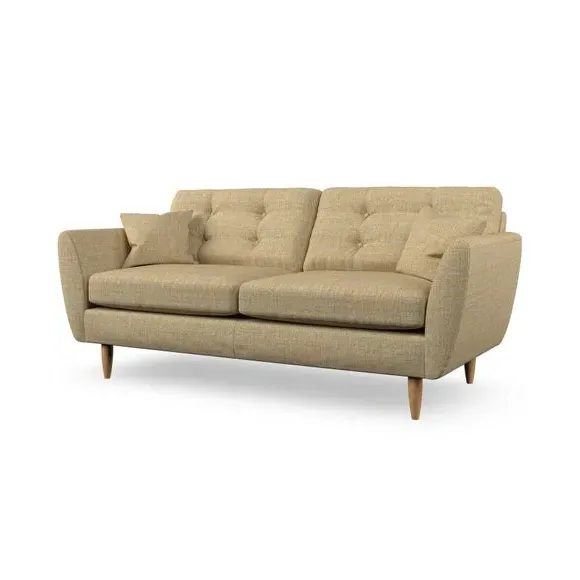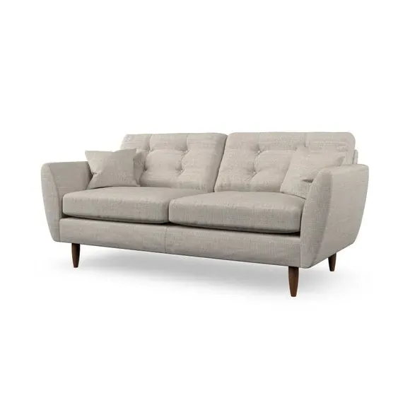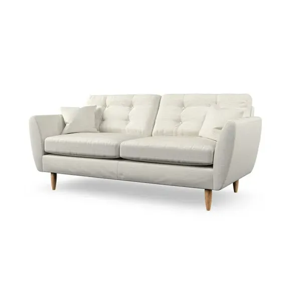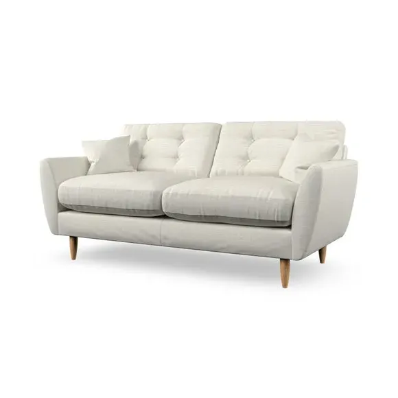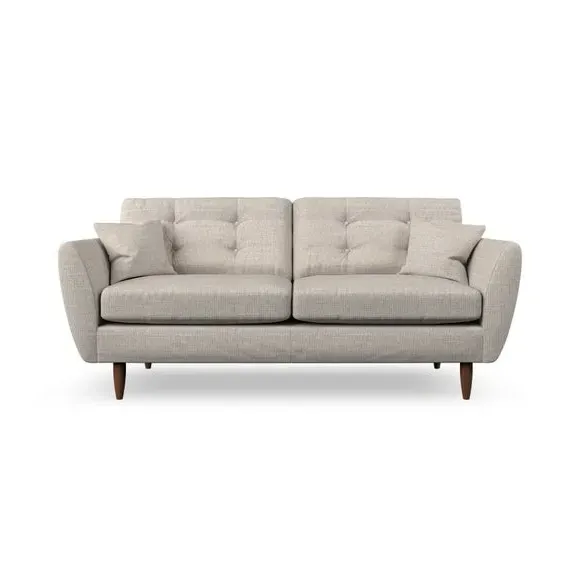 The 3-seater sofa combines Scandinavian-inspired design with exceptional comfort, featuring elegant tear-drop shaped arms and fibre-filled scatter cushions. Its serpentine seat springs provide lasting support, while the double-row button pull detail on back cushions adds a refined touch. The top-stitched arm details enhance durability, and the hardwood legs ensure stability with style.