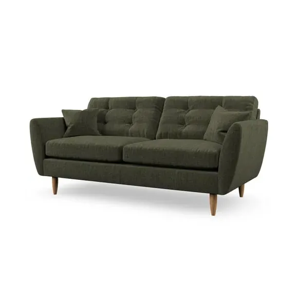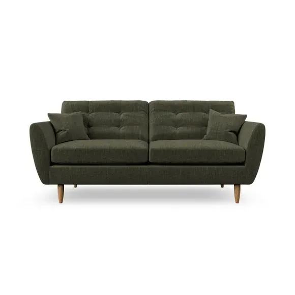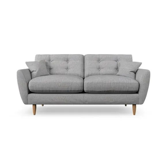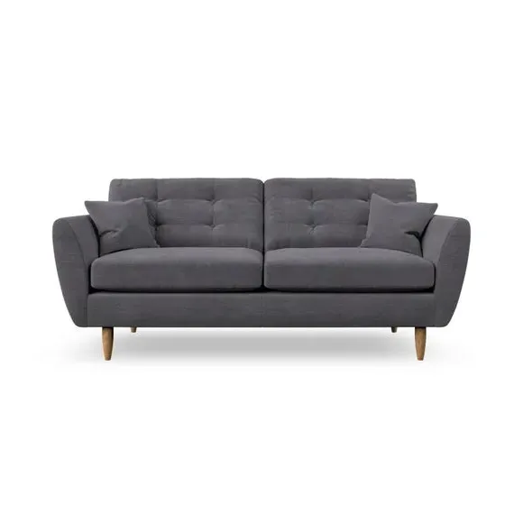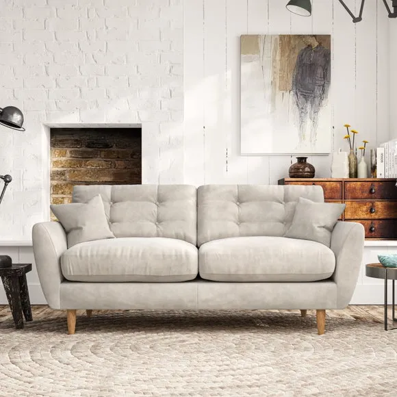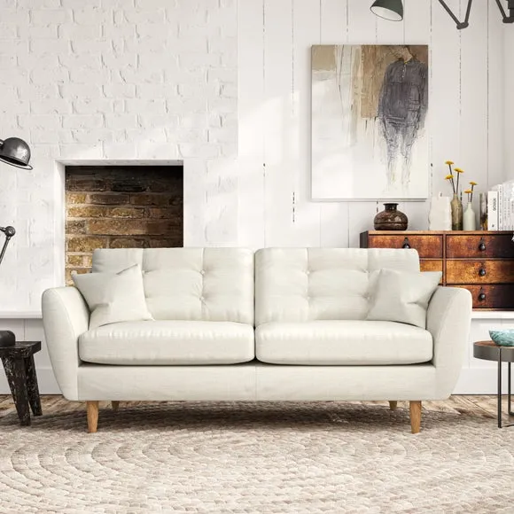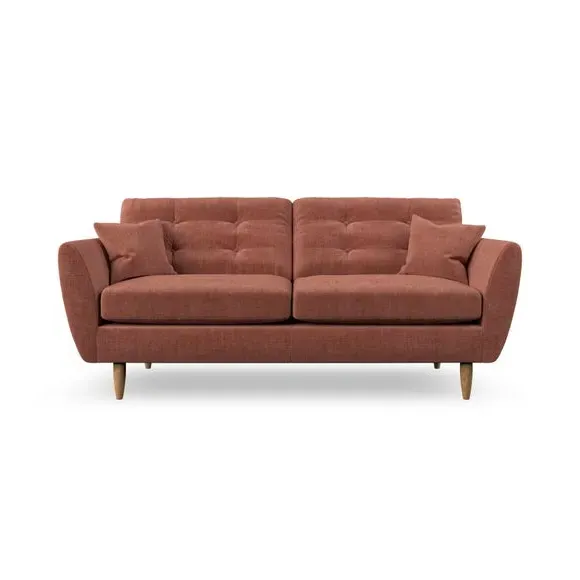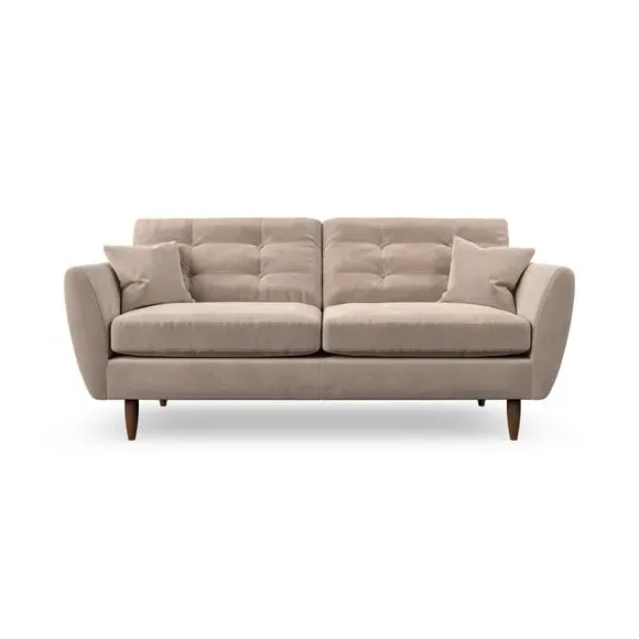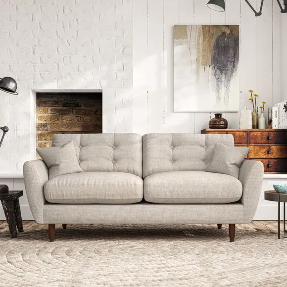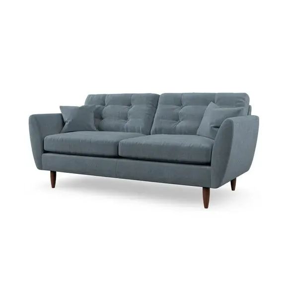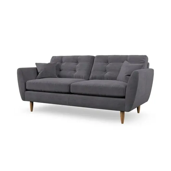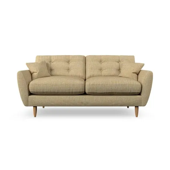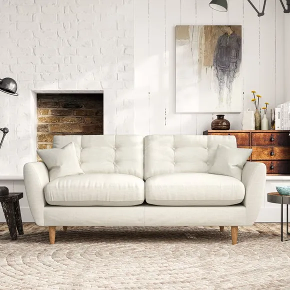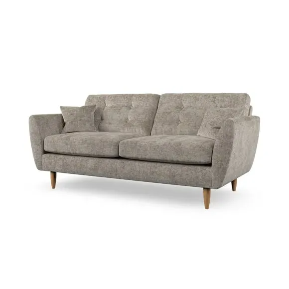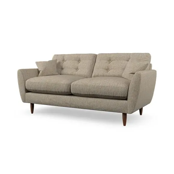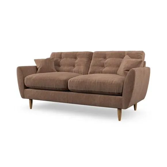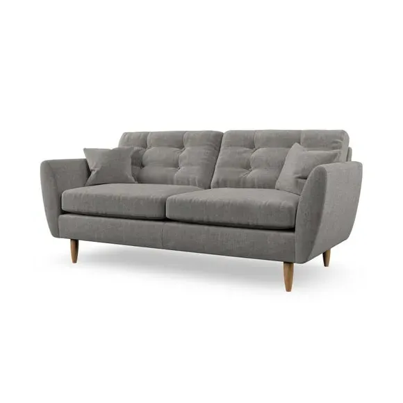 The 3-seater sofa combines Scandinavian-inspired design with exceptional comfort, featuring elegant tear-drop shaped arms and fibre-filled scatter cushions. Its serpentine seat springs provide lasting support, while the double-row button pull detail on back cushions adds a refined touch. The top-stitched arm details enhance durability, and the hardwood legs ensure stability with style.