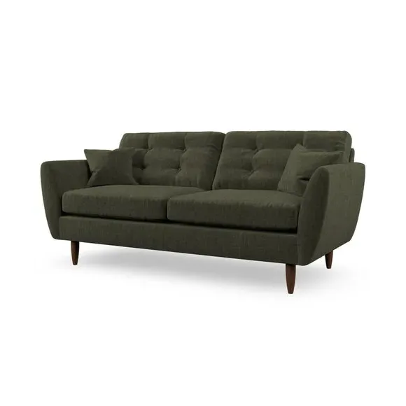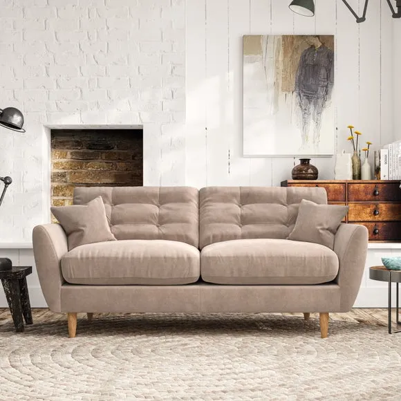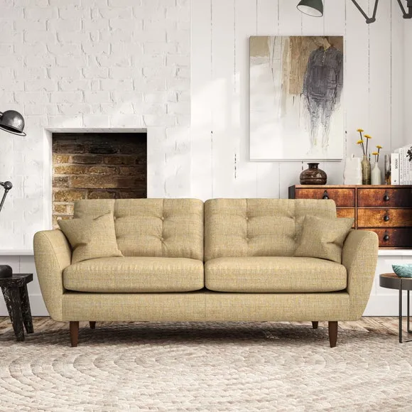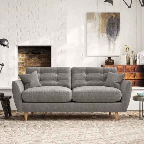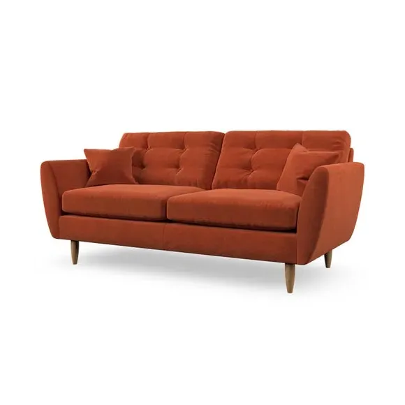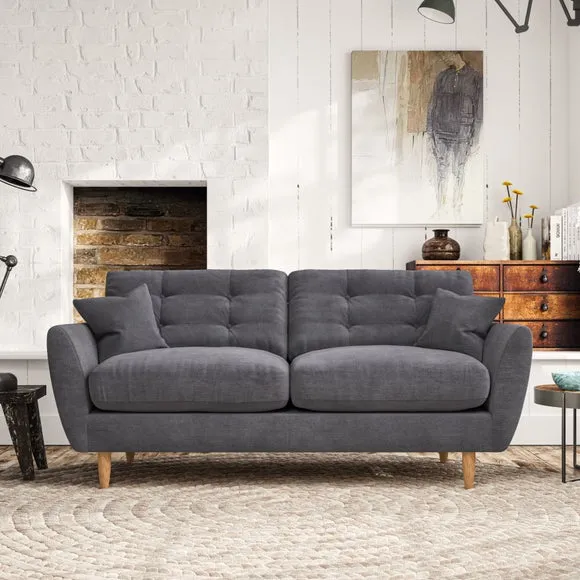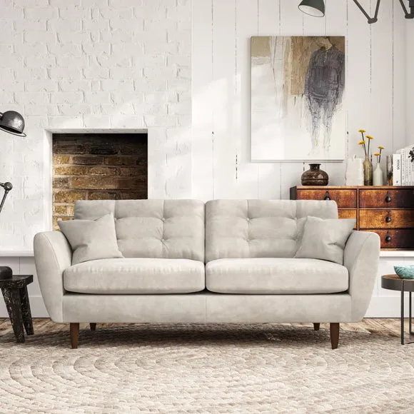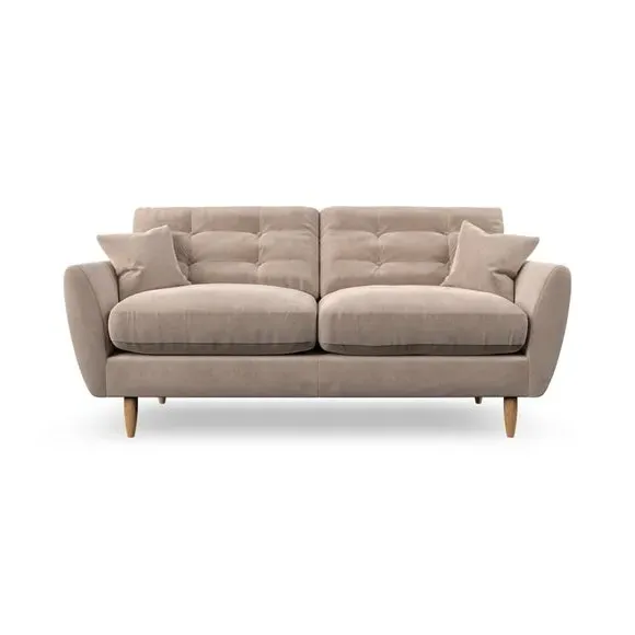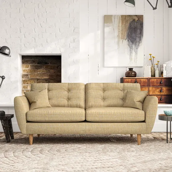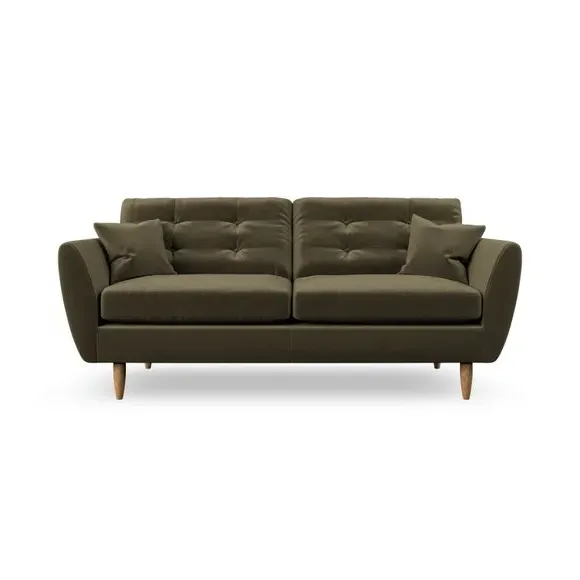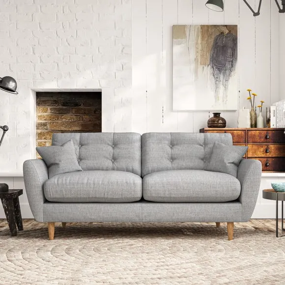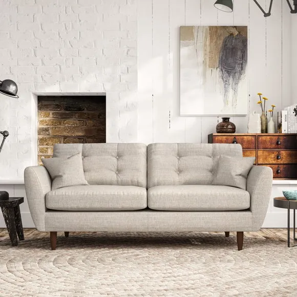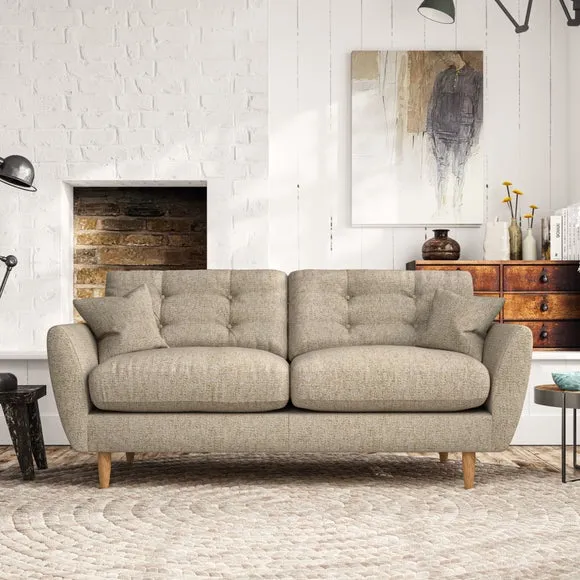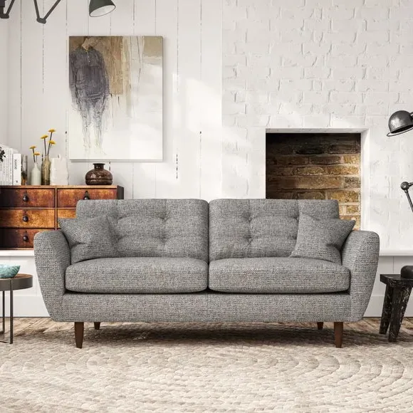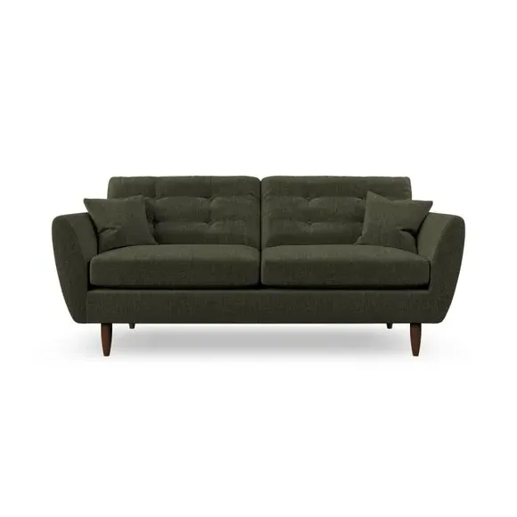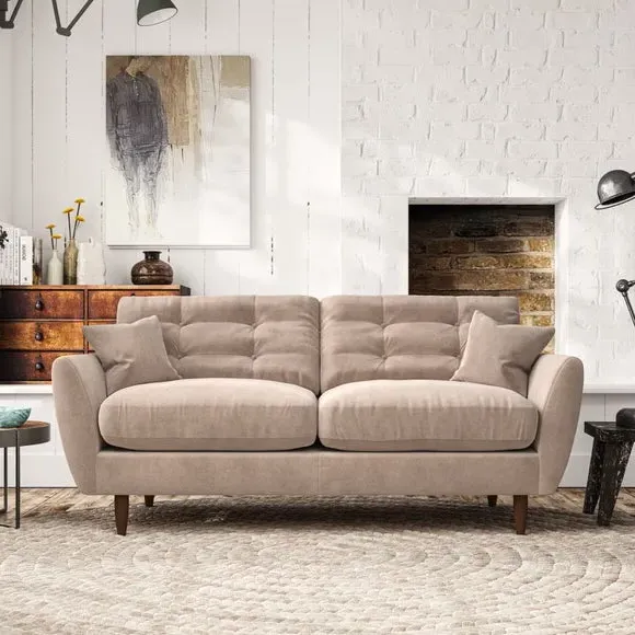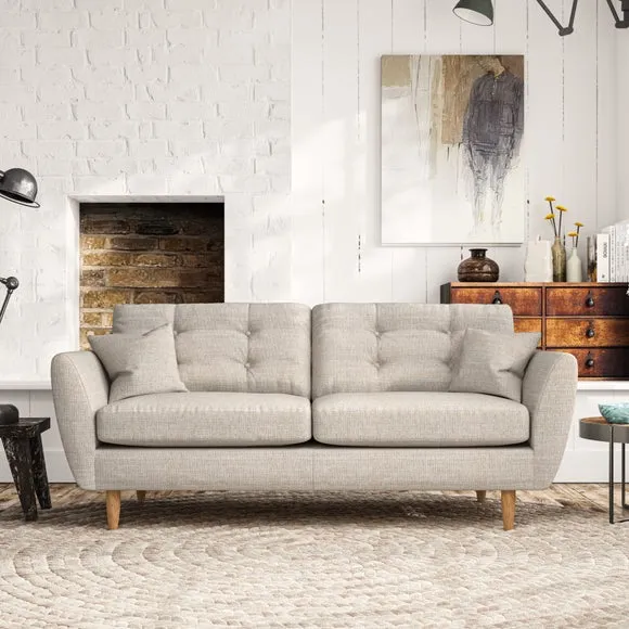 The 3-seater sofa combines Scandinavian-inspired design with exceptional comfort, featuring elegant tear-drop shaped arms and fibre-filled scatter cushions. Its serpentine seat springs provide lasting support, while the double-row button pull detail on back cushions adds a refined touch. The top-stitched arm details enhance durability, and the hardwood legs ensure stability with style.