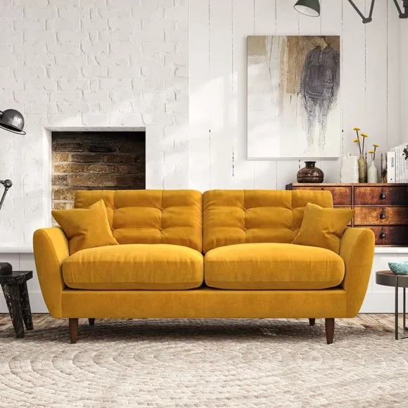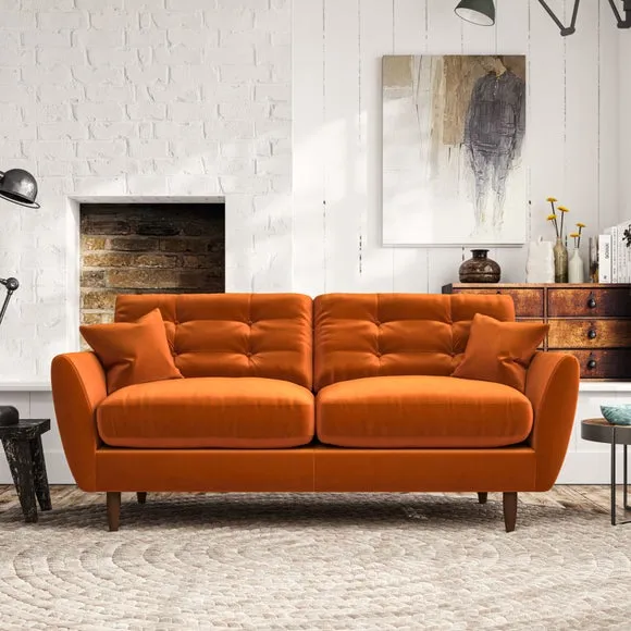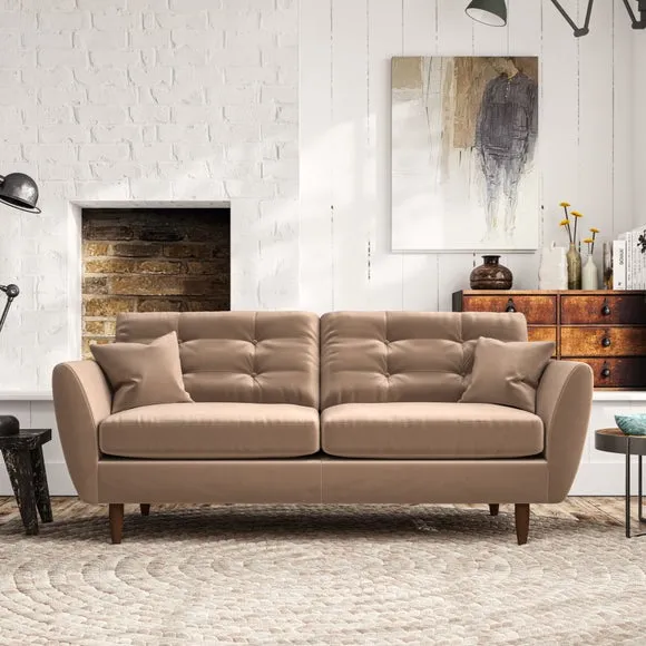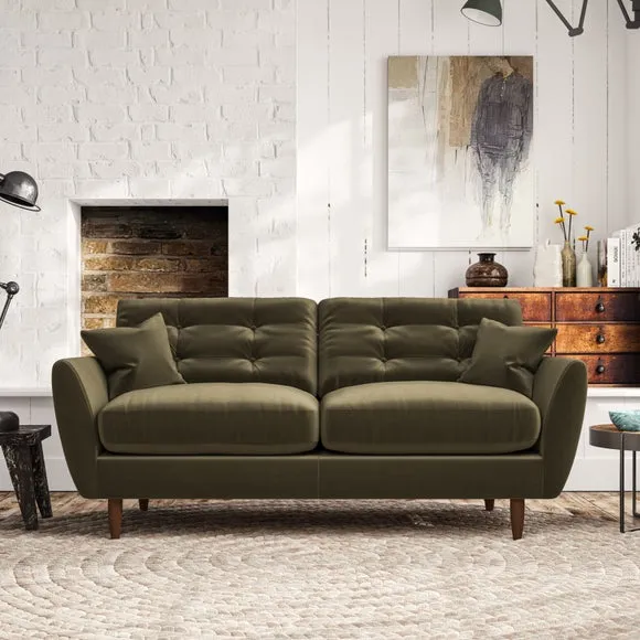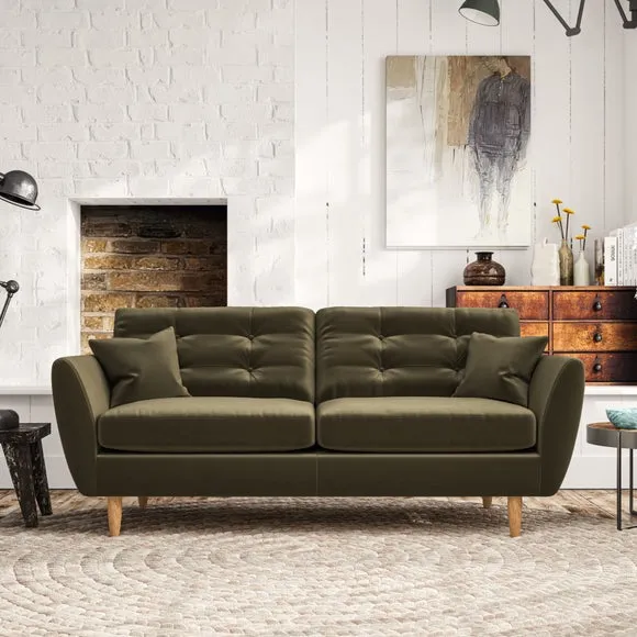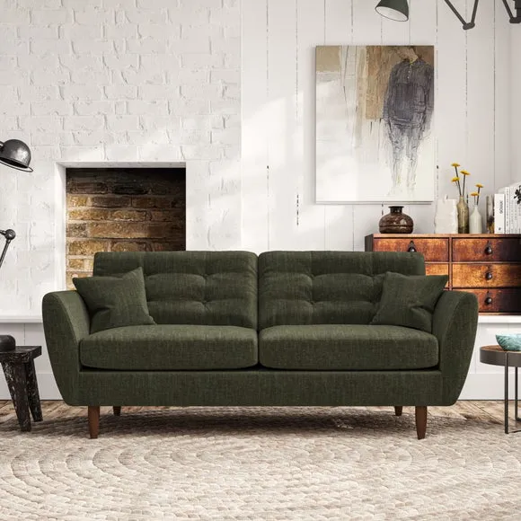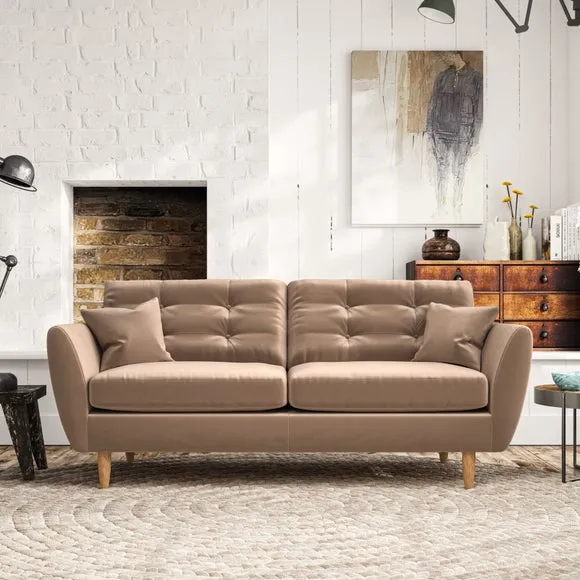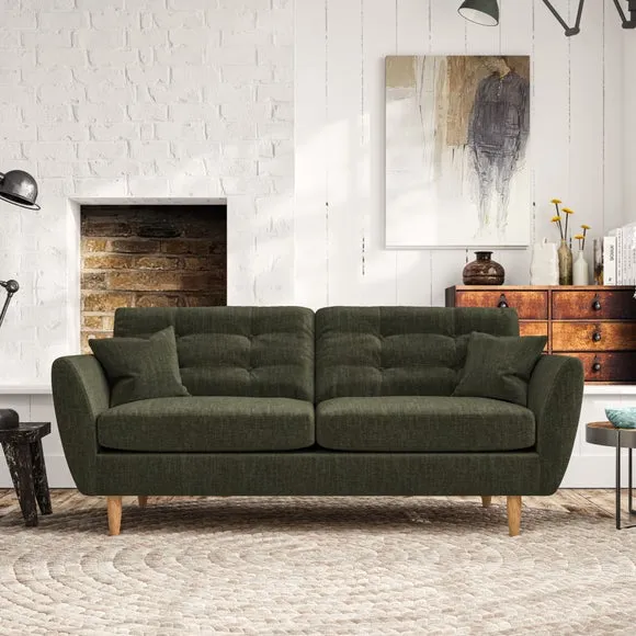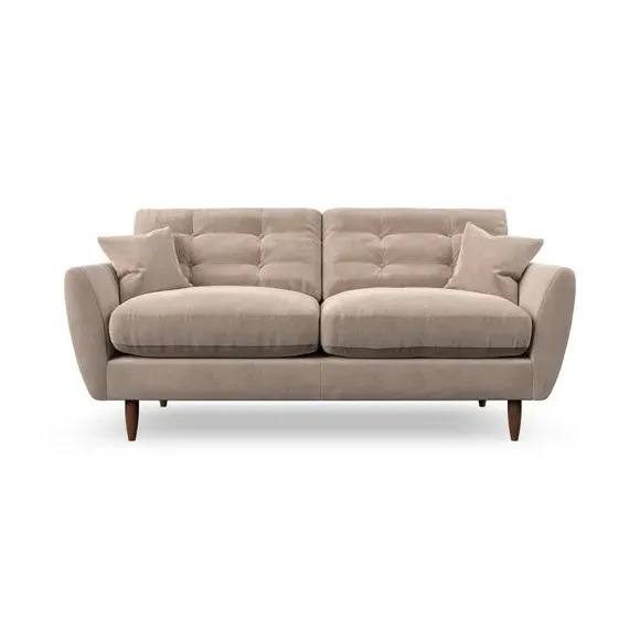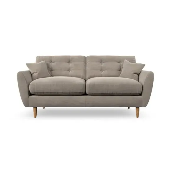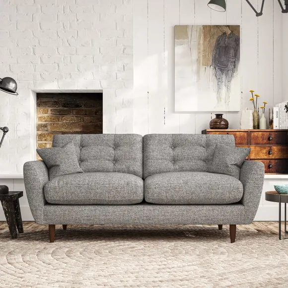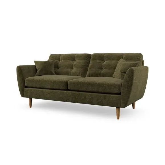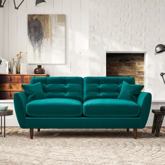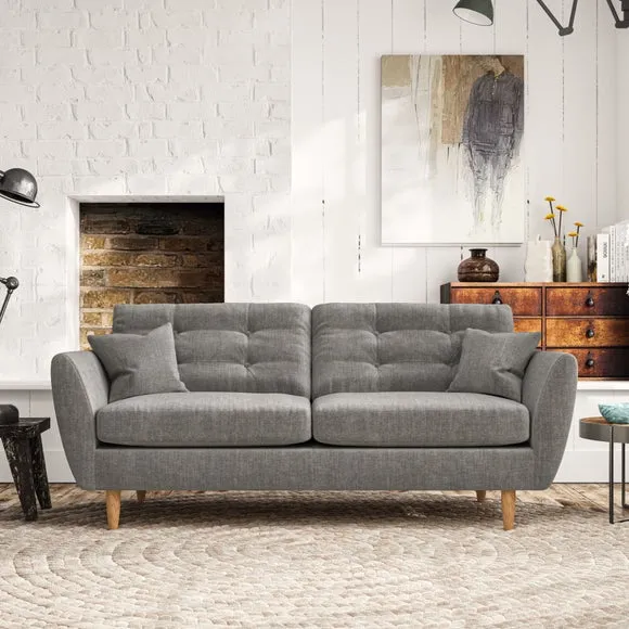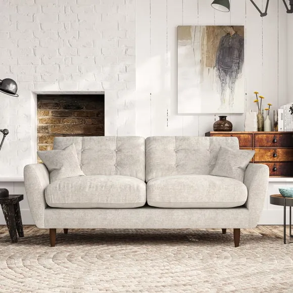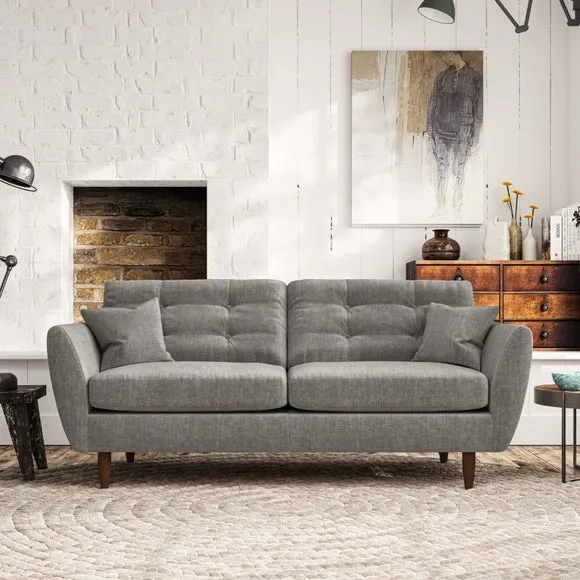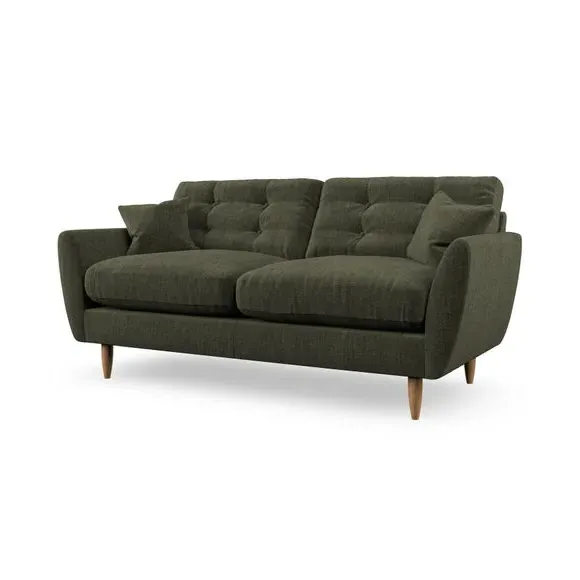 The 3-seater sofa combines Scandinavian-inspired design with exceptional comfort, featuring elegant tear-drop shaped arms and fibre-filled scatter cushions. Its serpentine seat springs provide lasting support, while the double-row button pull detail on back cushions adds a refined touch. The top-stitched arm details enhance durability, and the hardwood legs ensure stability with style.