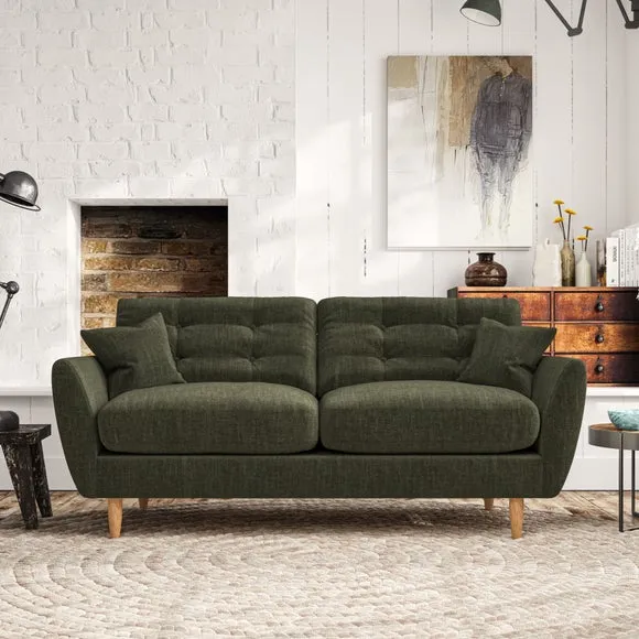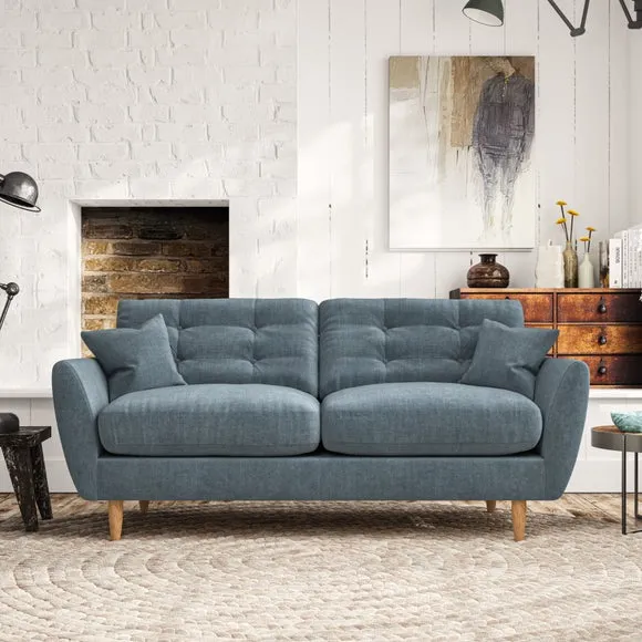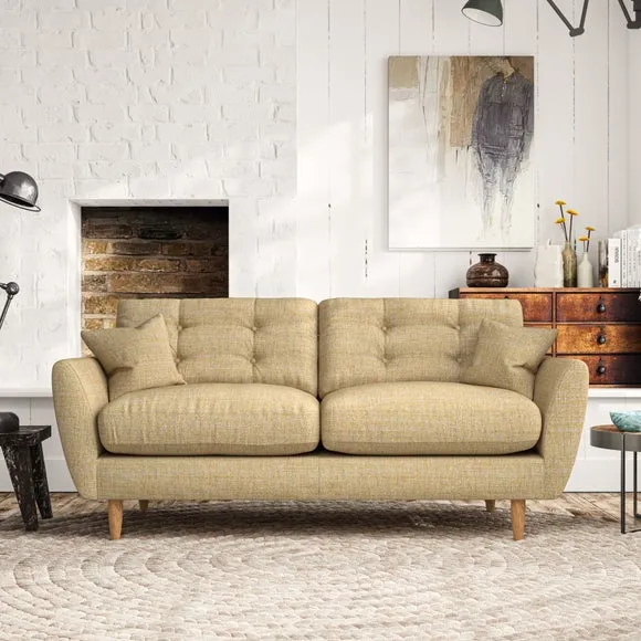 * Scandi design* Tear drop arms* Scatter cushions* Top stitched arm details* Serpentine seat springs* Choose your support, fabric and leg colour The Anders 3 Seater Sofa combines Scandinavian-inspired design with exceptional comfort, making it a stylish centrepiece for your living space. Featuring elegant tear-drop shaped arms, fibre-filled scatter cushions, and sleek hardwood legs available in two finishes, it offers a timeless aesthetic. The fibre-filled back cushions, detailed with a double-row button pull, add both support and a refined touch. Customise your seating experience with a choice between a supportive foam seat or the eco-friendly ‘Qualofill Blue’ fibre filling, crafted from 100% recycled polyester. With durable serpentine springs for added longevity, the Anders 3 Seater Sofa is as functional as it is elegant.
