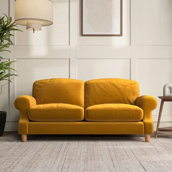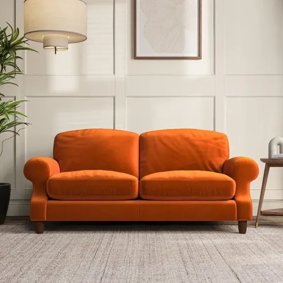 3-Seater Sofa with Scroll Arms - Amber, Velvet