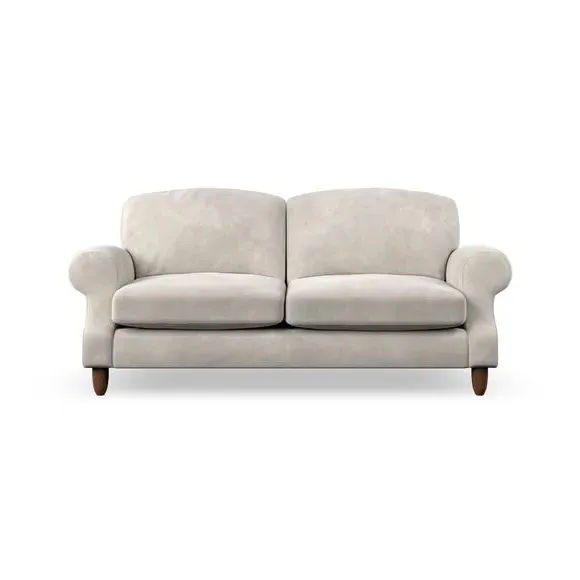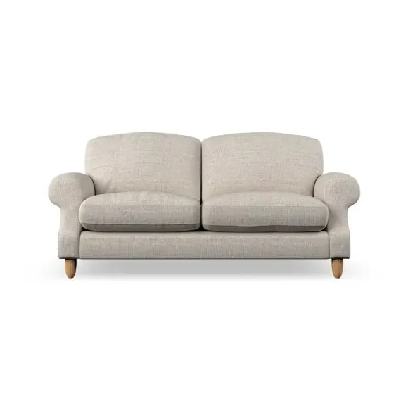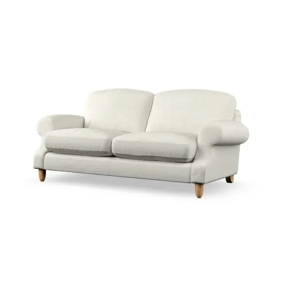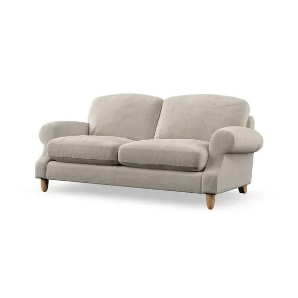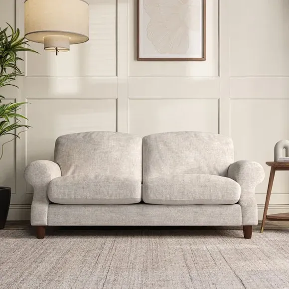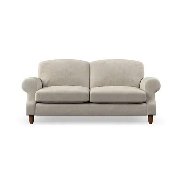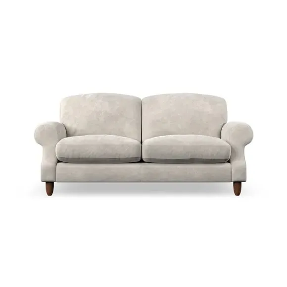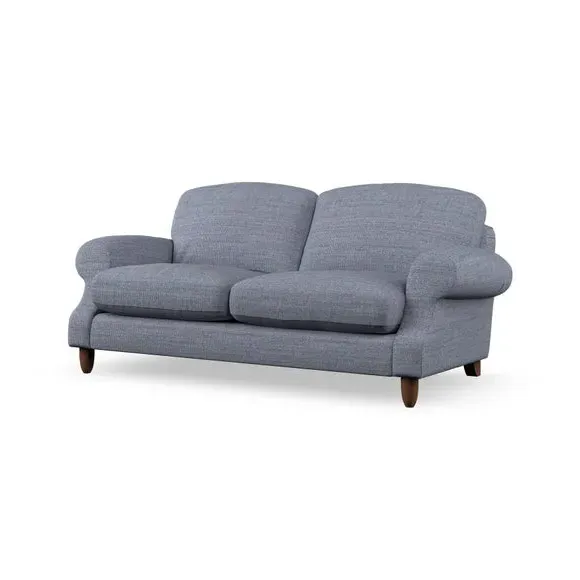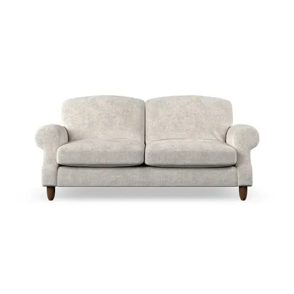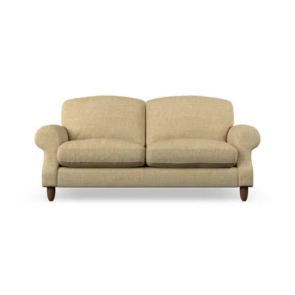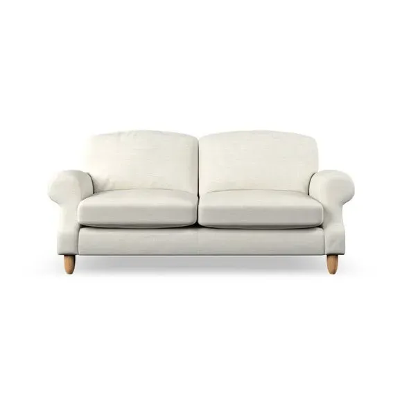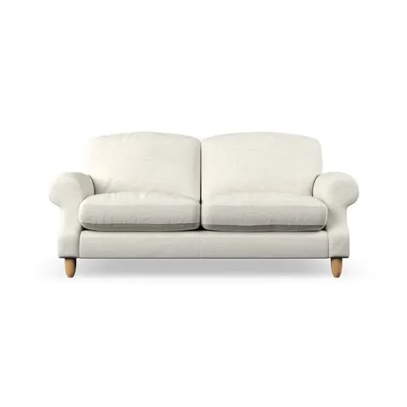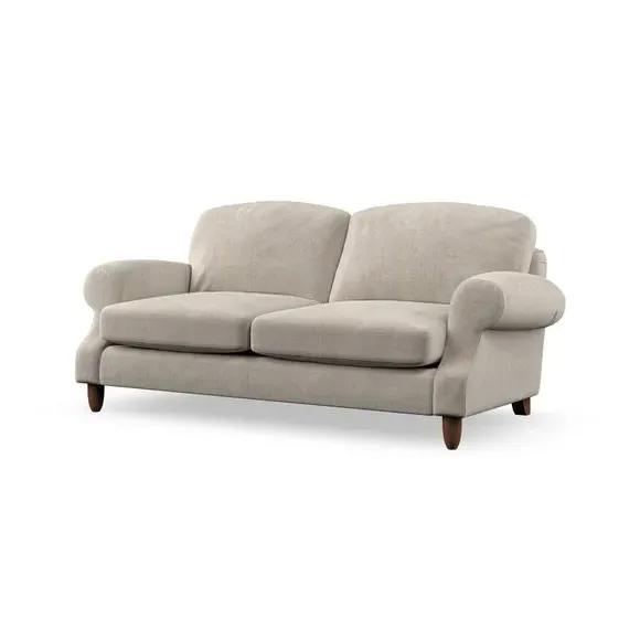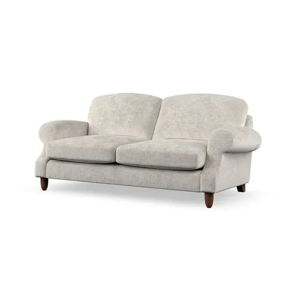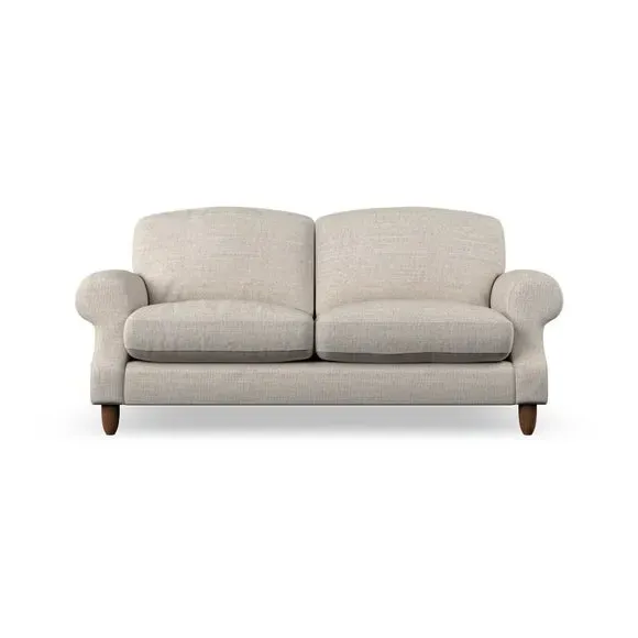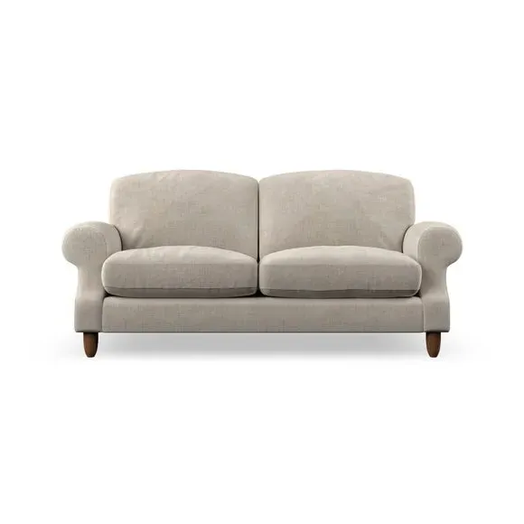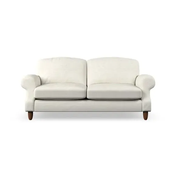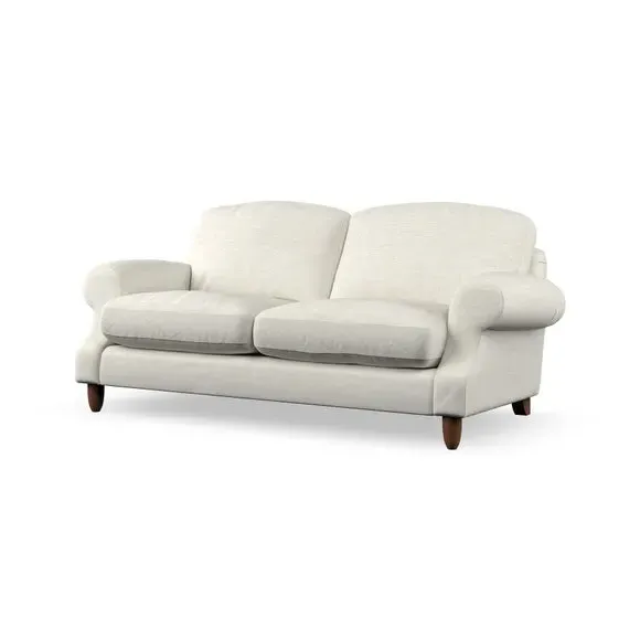 * Elegant style* Top stitched detail* High back cushions* Serpentine seat springs* Choose your support, fabric and leg colour This sofa features a cut back scroll arm and elegant, gently arched back cushions, providing both style and comfort. The top-stitched detail on the arm front adds a touch of sophistication. Higher back cushions with generous fibre filling offer excellent support for your back and shoulders. Customise your comfort by choosing between a low-maintenance foam seat or the inviting ‘Qualofill Blue’ fibre seat, made from 100% recycled polyester. Built for longevity, it includes serpentine seat springs for added comfort. The turned hardwood legs, available in two finishes, are easy to fit.