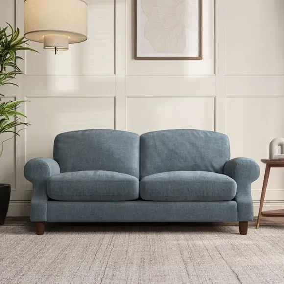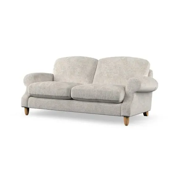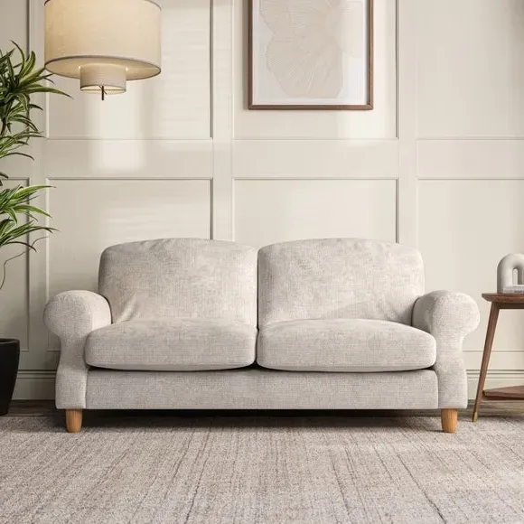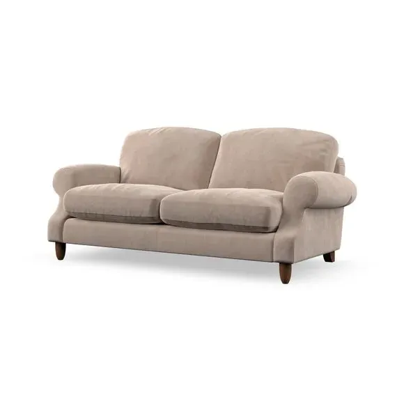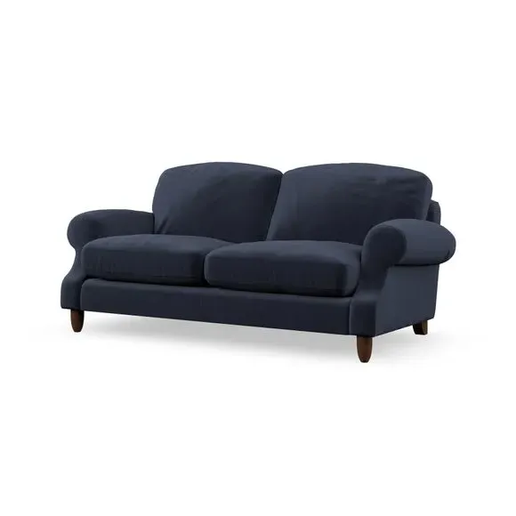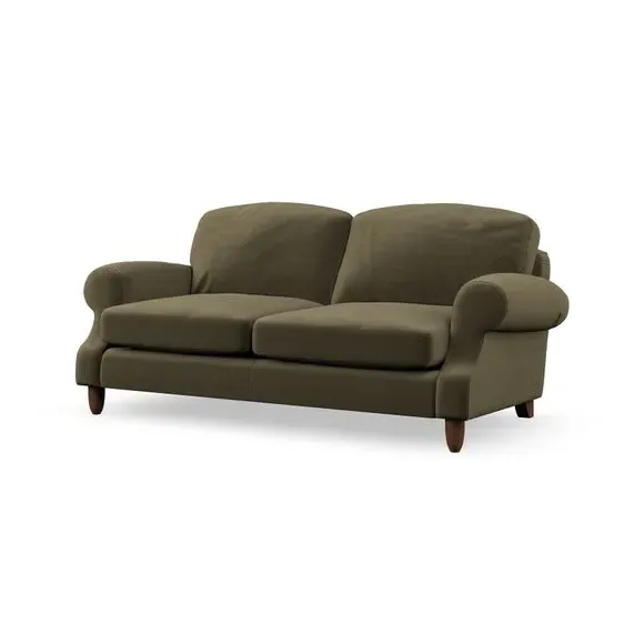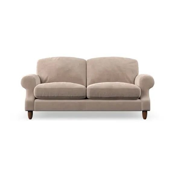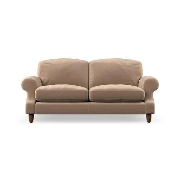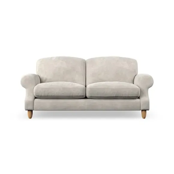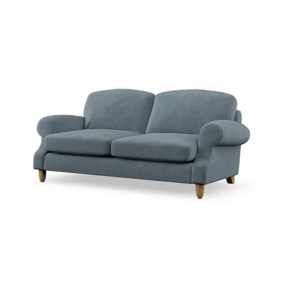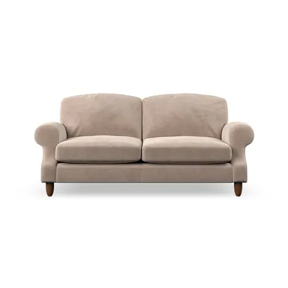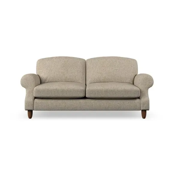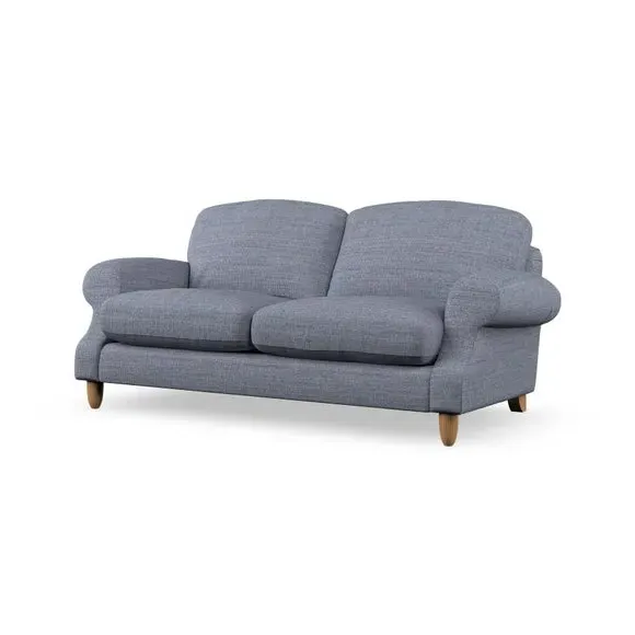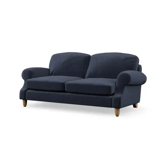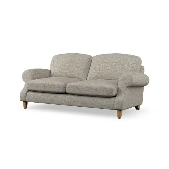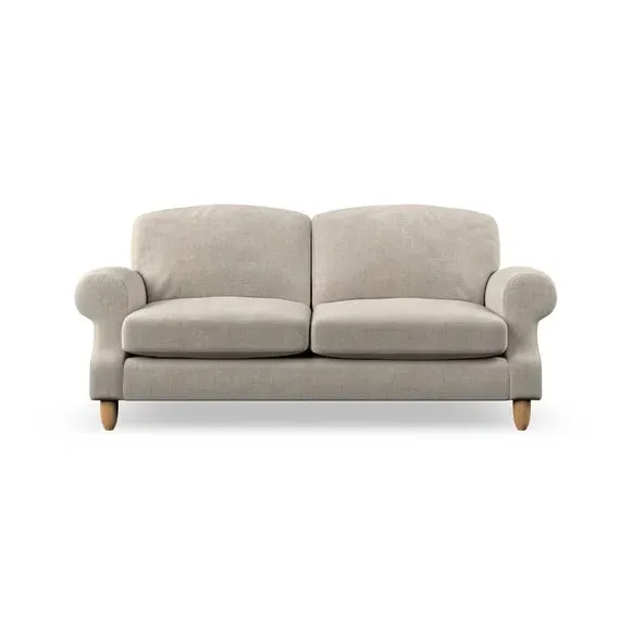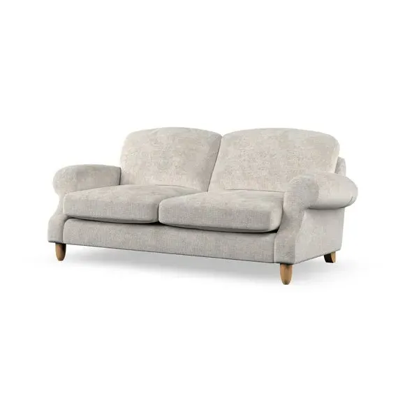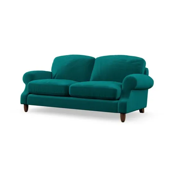 * Elegant style* Top stitched detail* High back cushions* Serpentine seat springs* Choose your support, fabric and leg colour This sofa features a cut back scroll arm and elegant, gently arched back cushions, providing both style and comfort. The top-stitched detail on the arm front adds a touch of sophistication. Higher back cushions with generous fibre filling offer excellent support for your back and shoulders. Customise your comfort by choosing between a low-maintenance foam seat or the inviting ‘Qualofill Blue’ fibre seat, made from 100% recycled polyester. Built for longevity, it includes serpentine seat springs for added comfort. The turned hardwood legs, available in two finishes, are easy to fit.