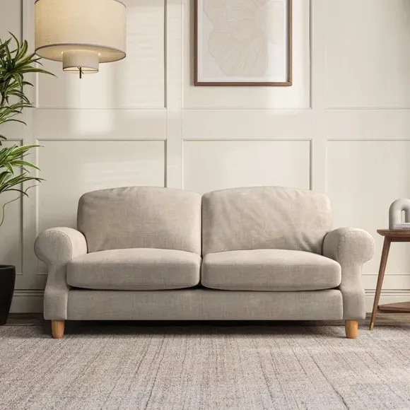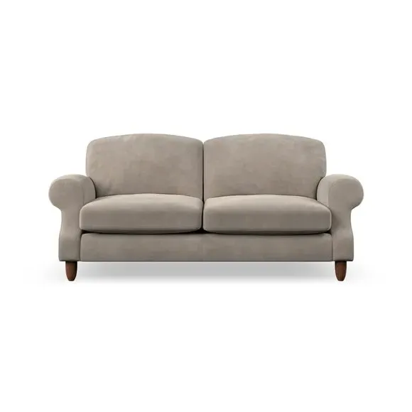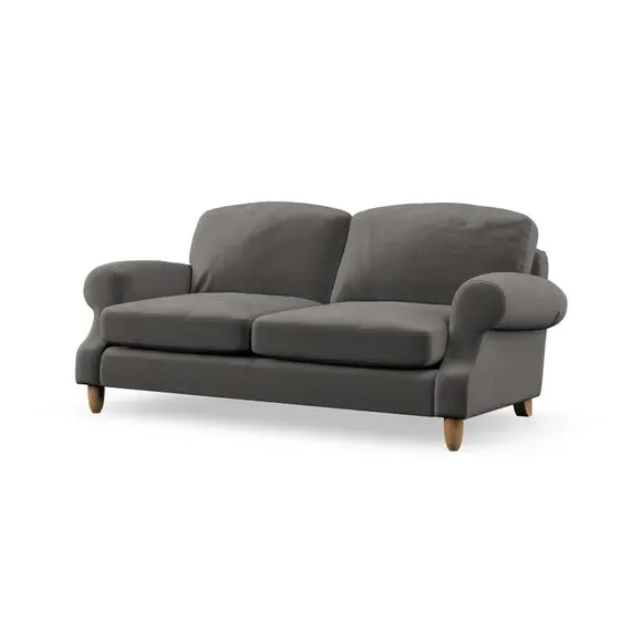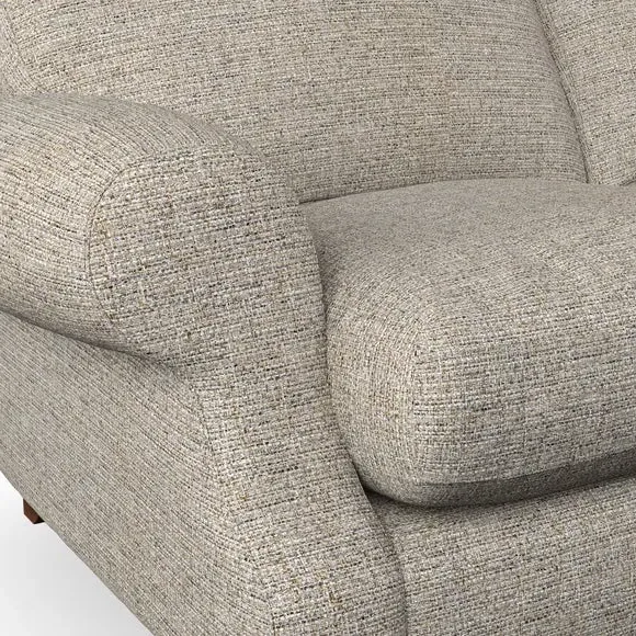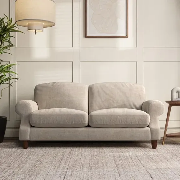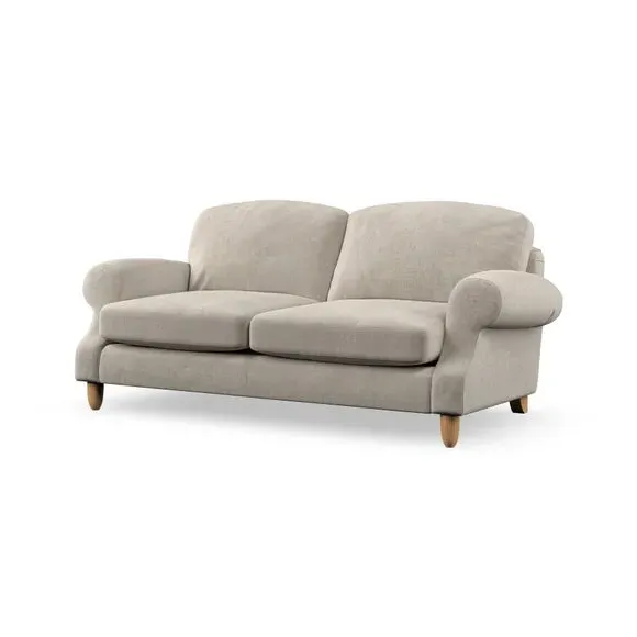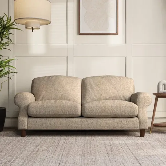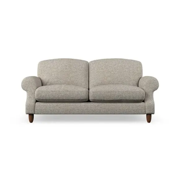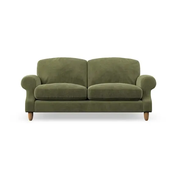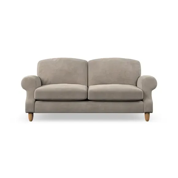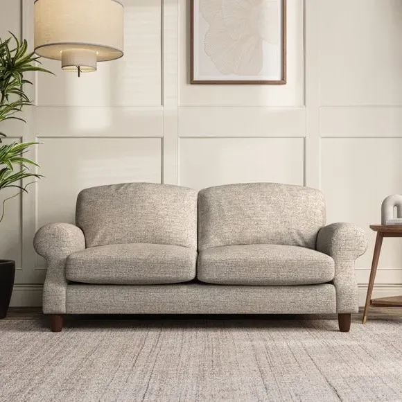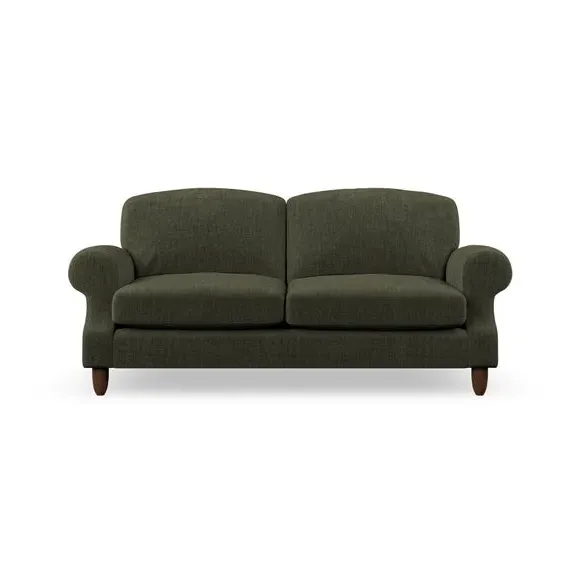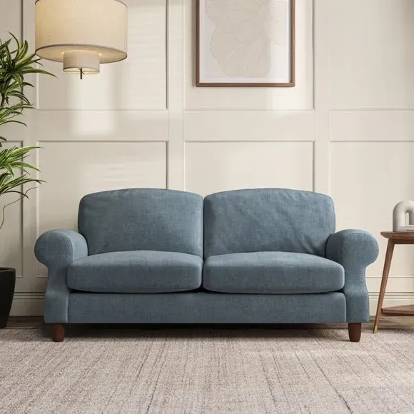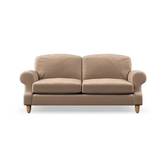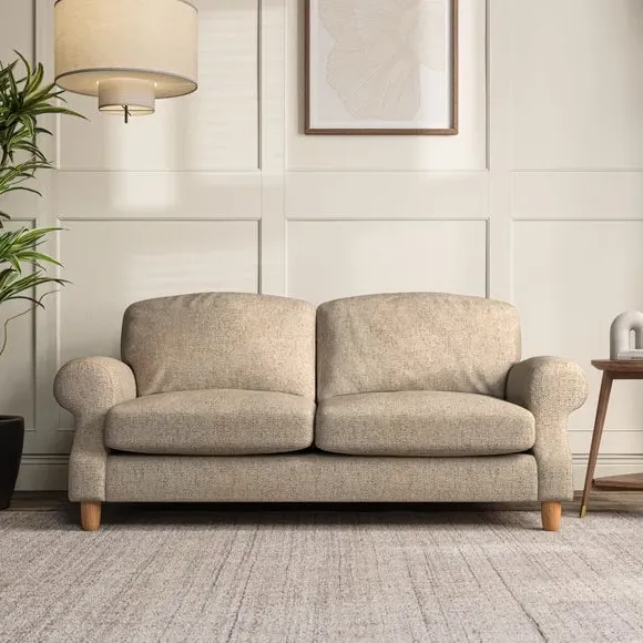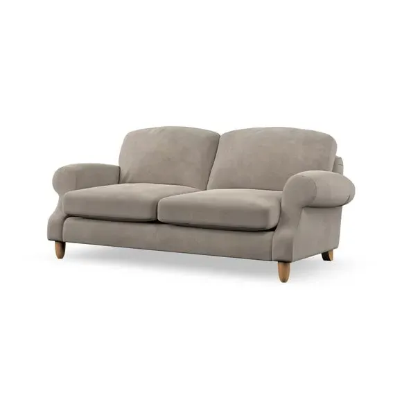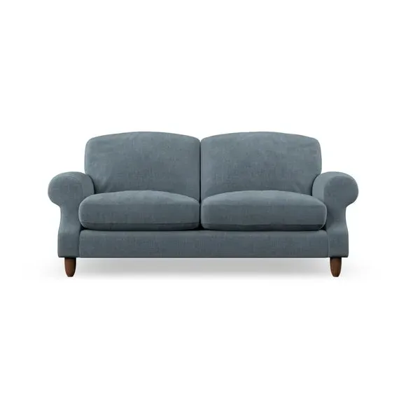 * Elegant style* Top stitched detail* High back cushions* Serpentine seat springs* Choose your support, fabric and leg colour This sofa features a cut back scroll arm and elegant, gently arched back cushions, providing both style and comfort. The top-stitched detail on the arm front adds a touch of sophistication. Higher back cushions with generous fibre filling offer excellent support for your back and shoulders. Customise your comfort by choosing between a low-maintenance foam seat or the inviting ‘Qualofill Blue’ fibre seat, made from 100% recycled polyester. Built for longevity, it includes serpentine seat springs for added comfort. The turned hardwood legs, available in two finishes, are easy to fit.