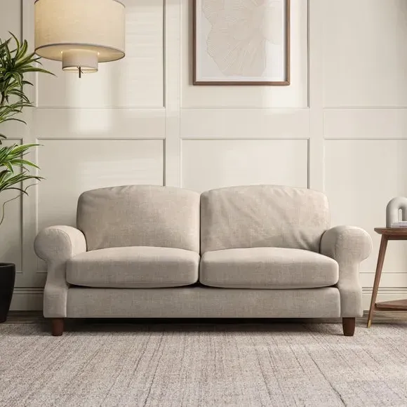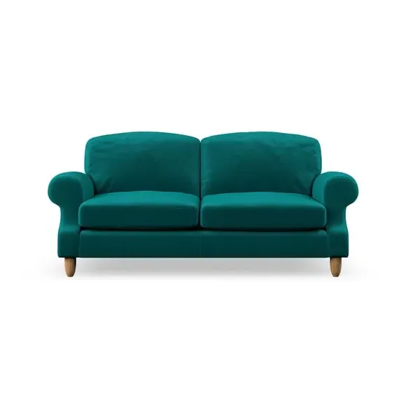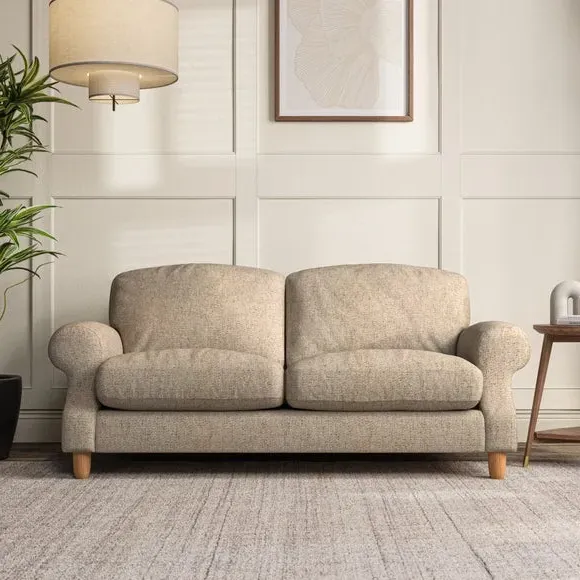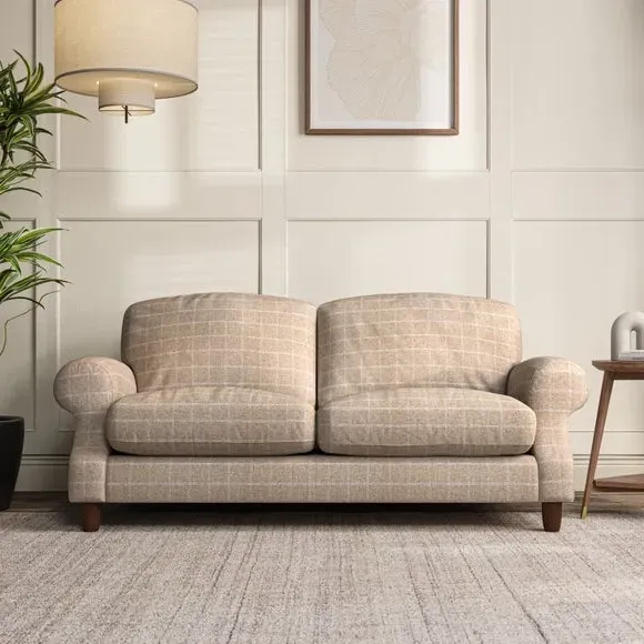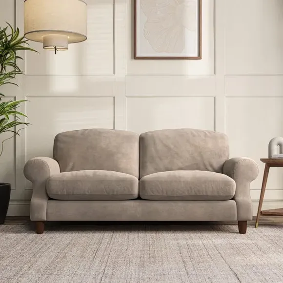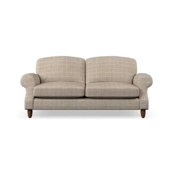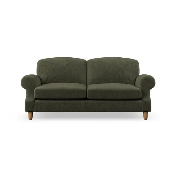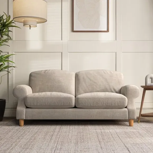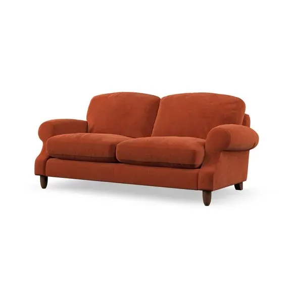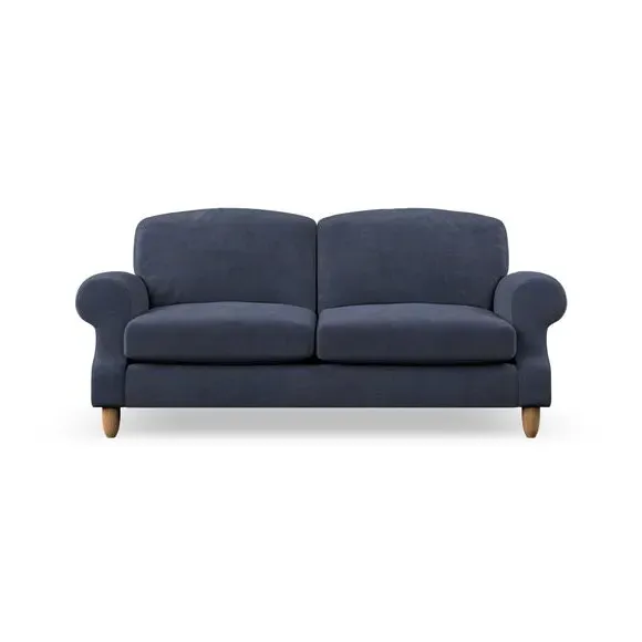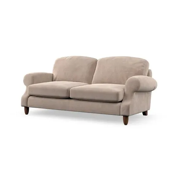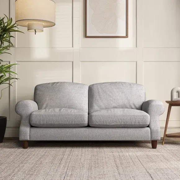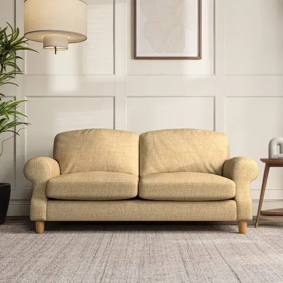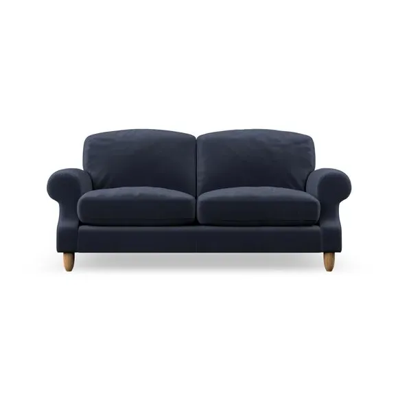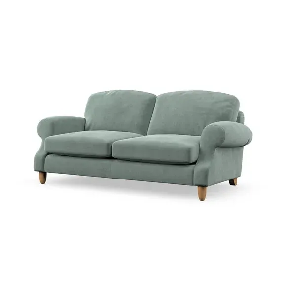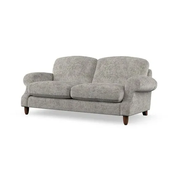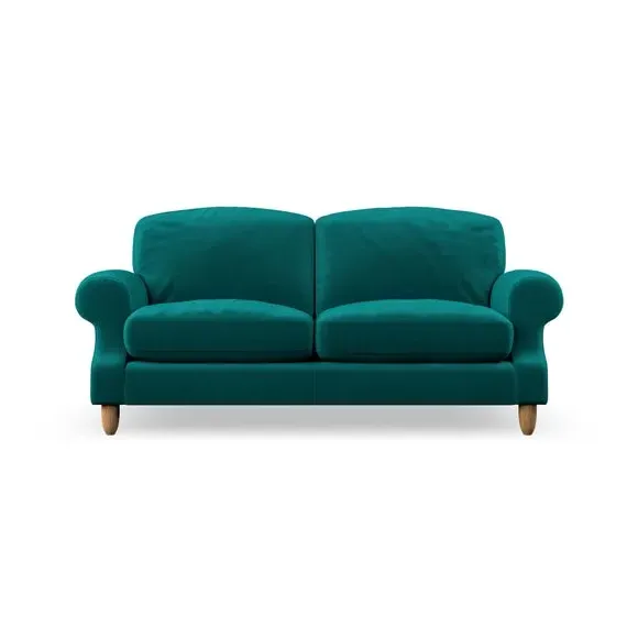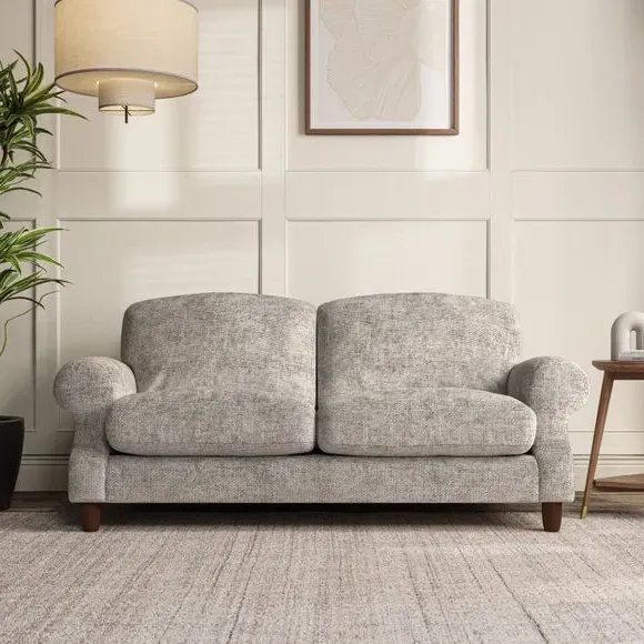 * Elegant style* Top stitched detail* High back cushions* Serpentine seat springs* Choose your support, fabric and leg colour This sofa features a cut back scroll arm and elegant, gently arched back cushions, providing both style and comfort. The top-stitched detail on the arm front adds a touch of sophistication. Higher back cushions with generous fibre filling offer excellent support for your back and shoulders. Customise your comfort by choosing between a low-maintenance foam seat or the inviting ‘Qualofill Blue’ fibre seat, made from 100% recycled polyester. Built for longevity, it includes serpentine seat springs for added comfort. The turned hardwood legs, available in two finishes, are easy to fit.