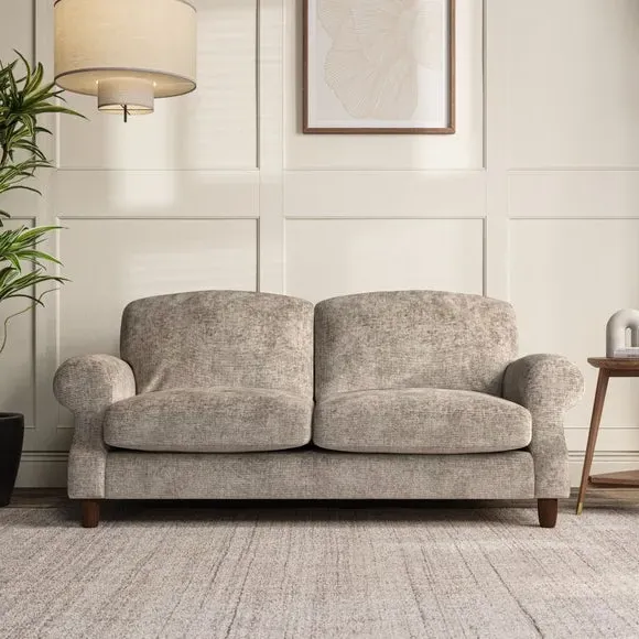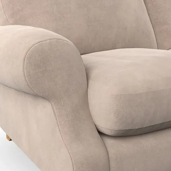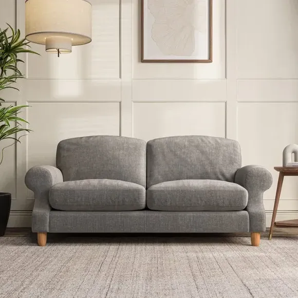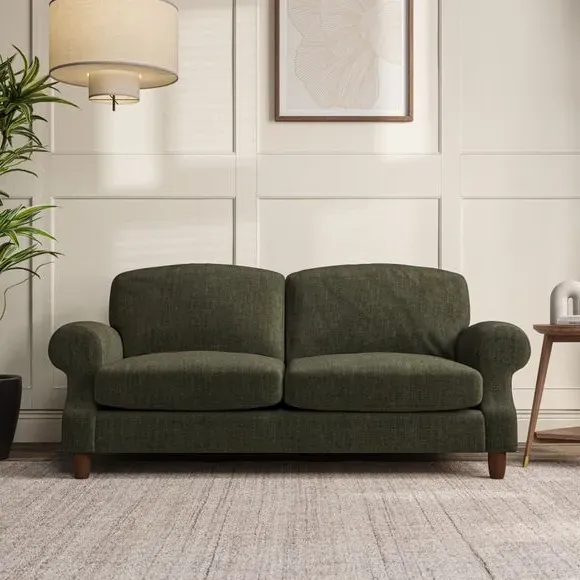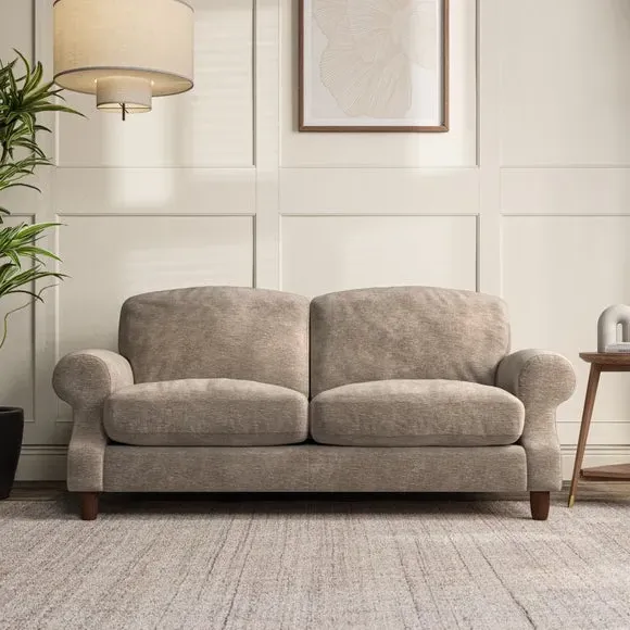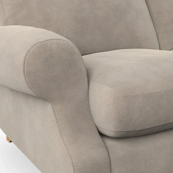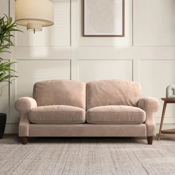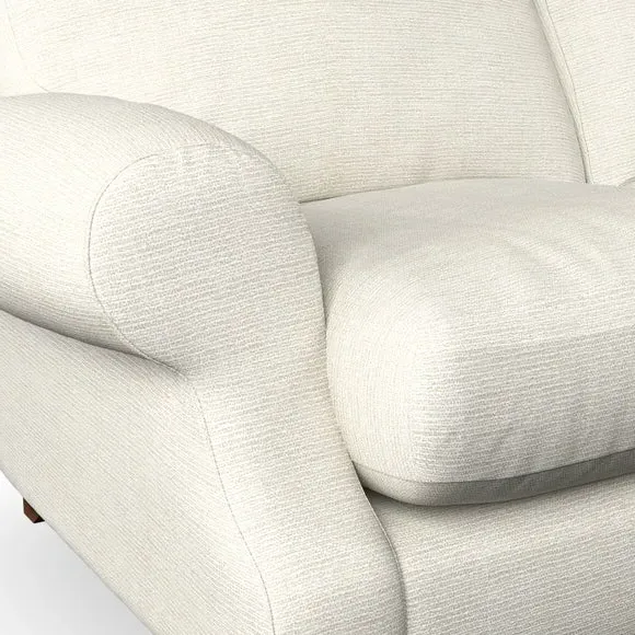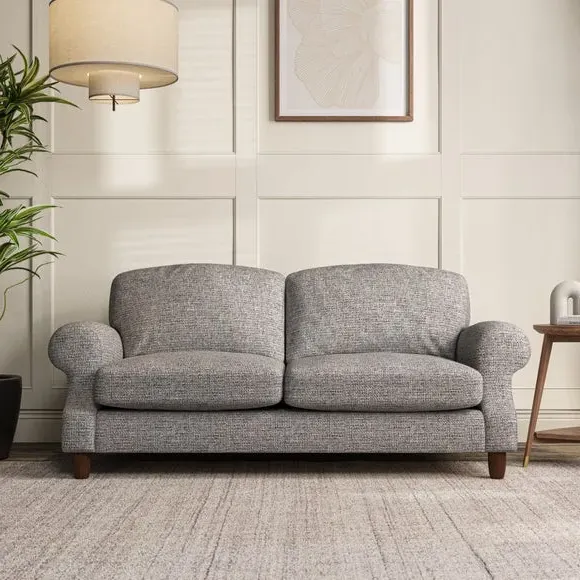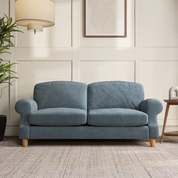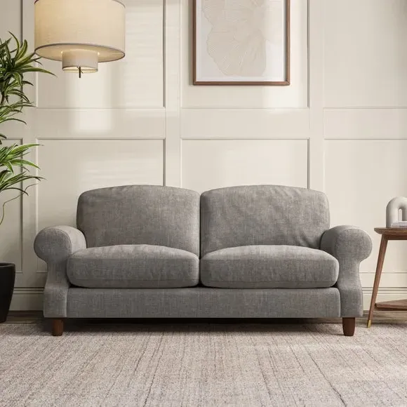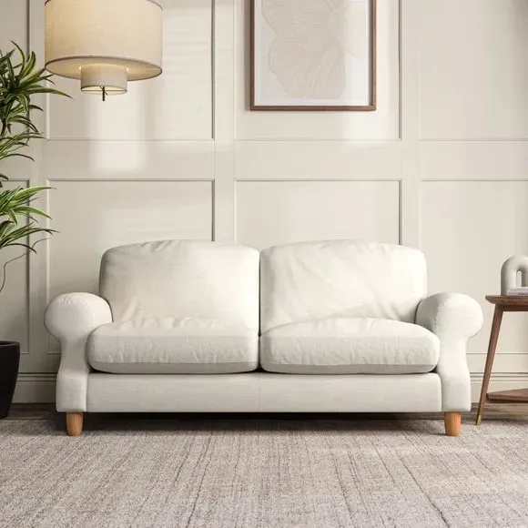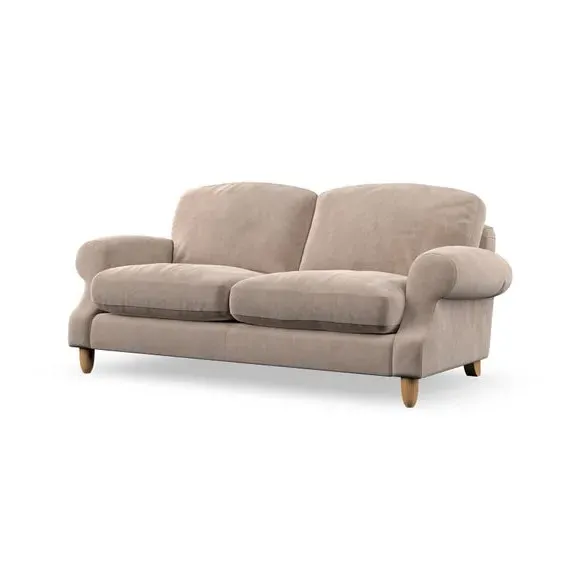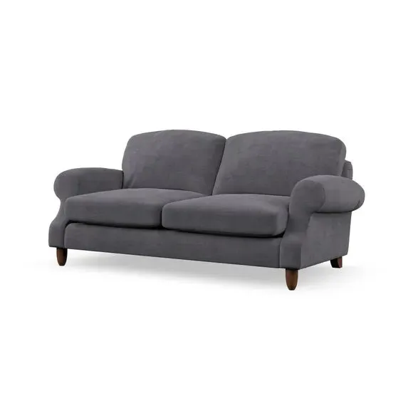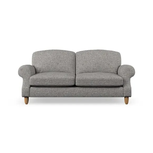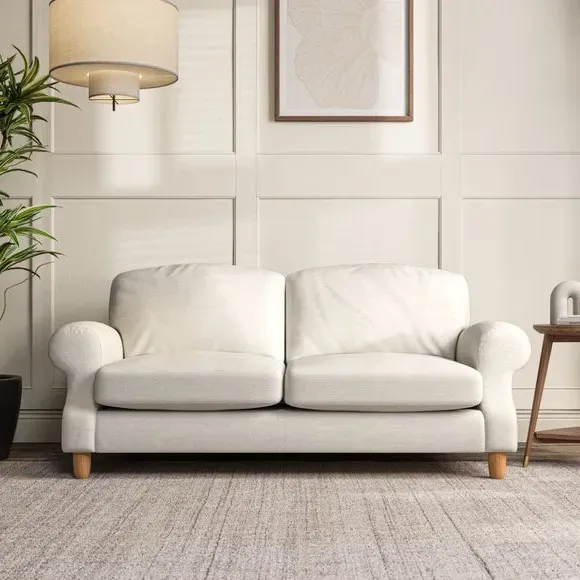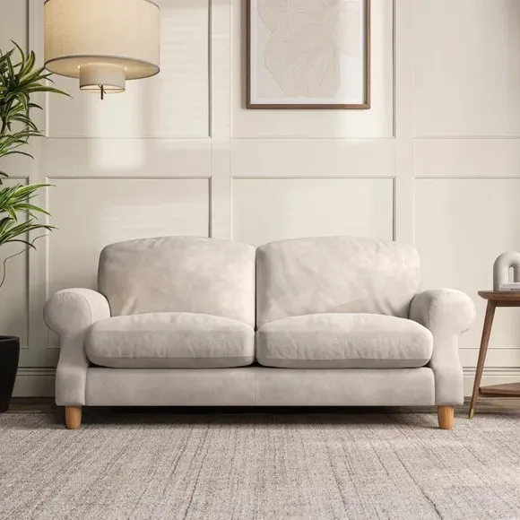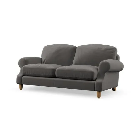 * Elegant style* Top stitched detail* High back cushions* Serpentine seat springs* Choose your support, fabric and leg colour This sofa features a cut back scroll arm and elegant, gently arched back cushions, providing both style and comfort. The top-stitched detail on the arm front adds a touch of sophistication. Higher back cushions with generous fibre filling offer excellent support for your back and shoulders. Customise your comfort by choosing between a low-maintenance foam seat or the inviting ‘Qualofill Blue’ fibre seat, made from 100% recycled polyester. Built for longevity, it includes serpentine seat springs for added comfort. The turned hardwood legs, available in two finishes, are easy to fit.