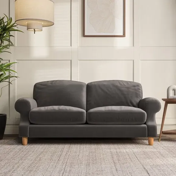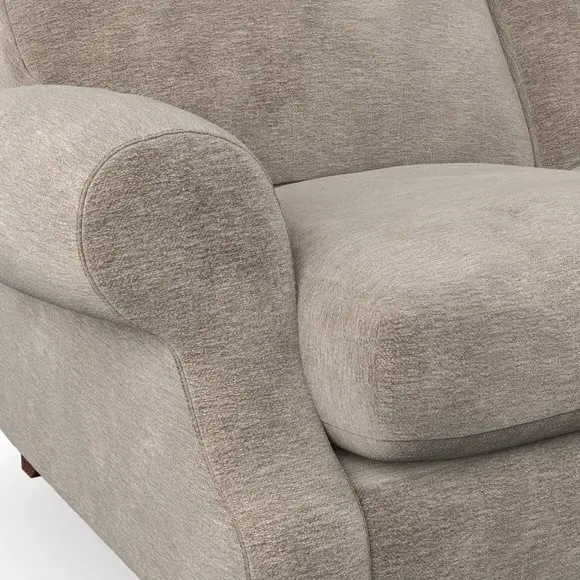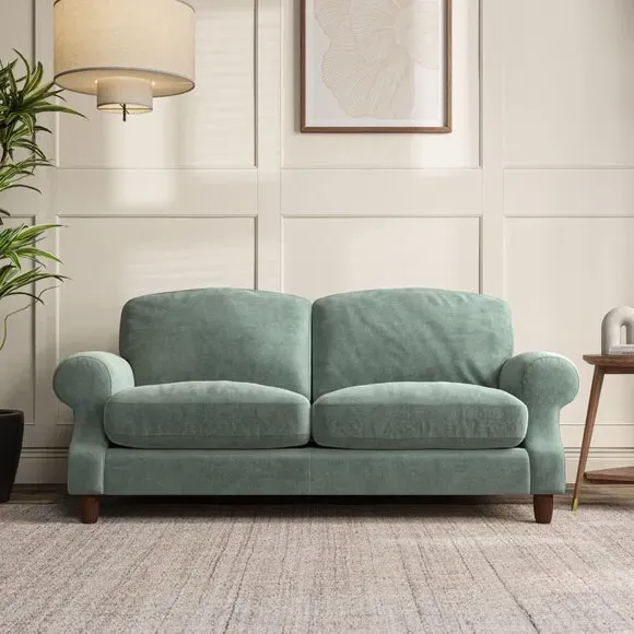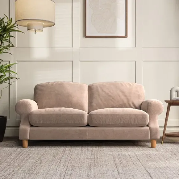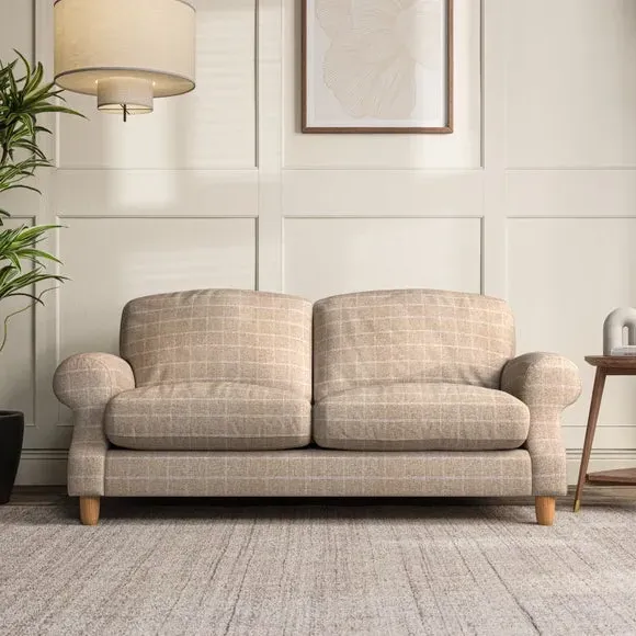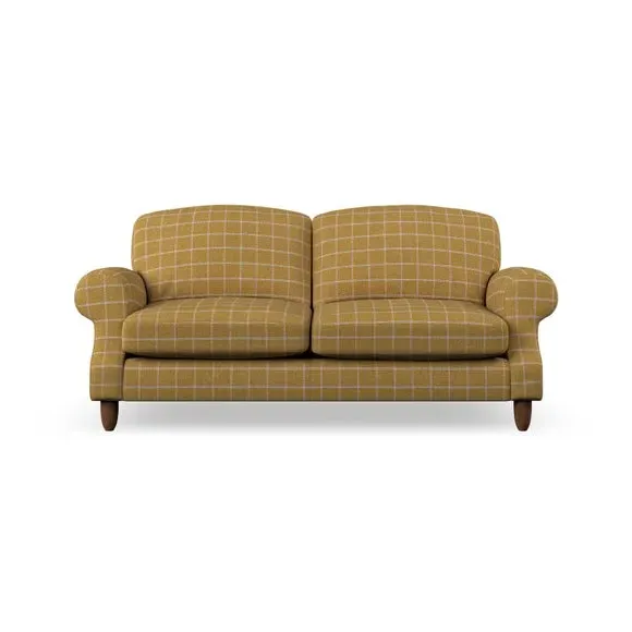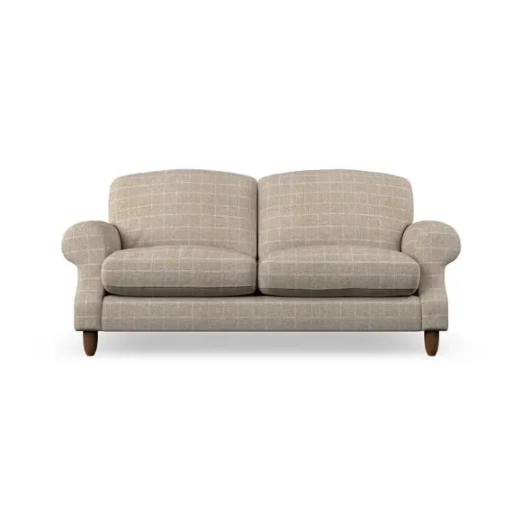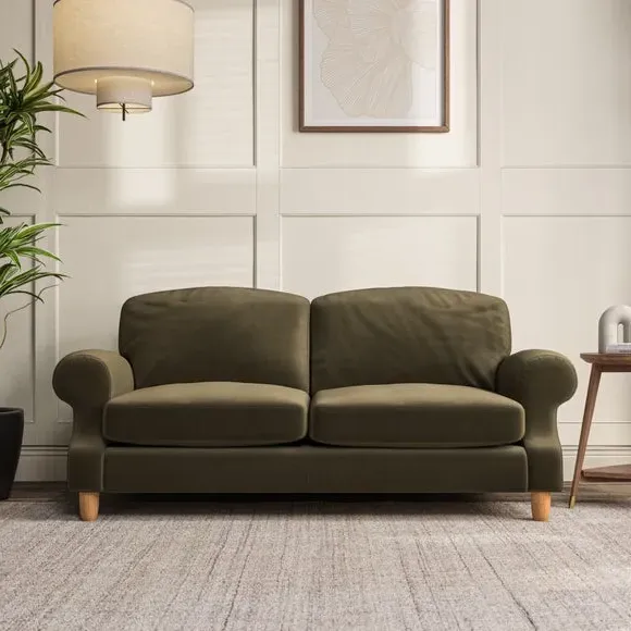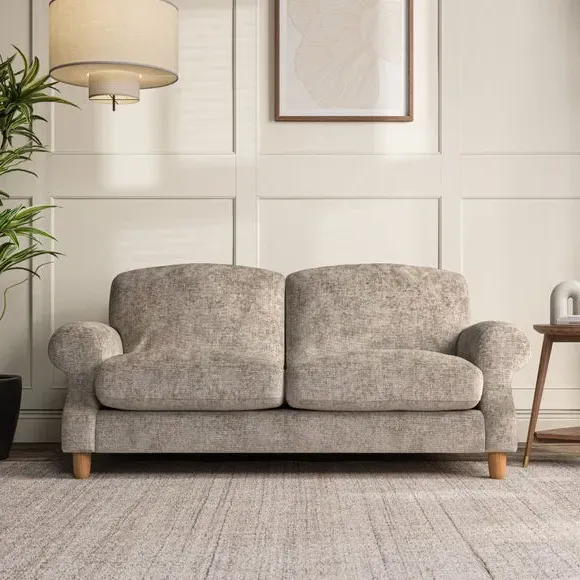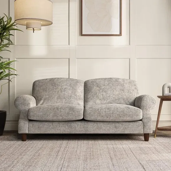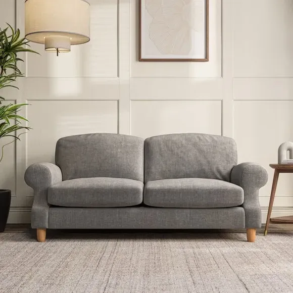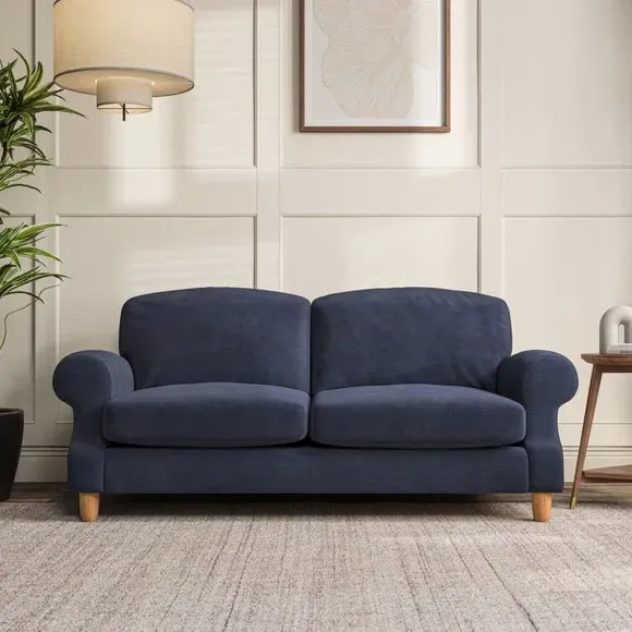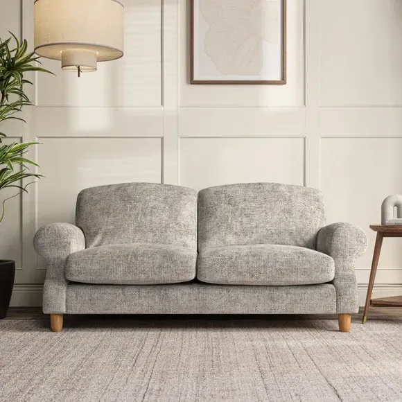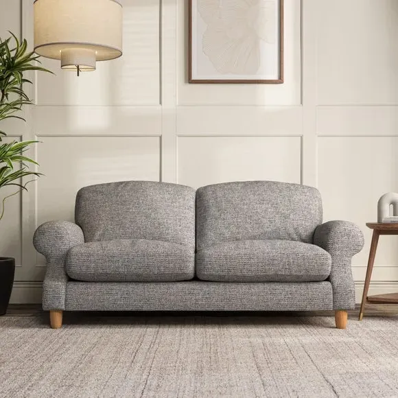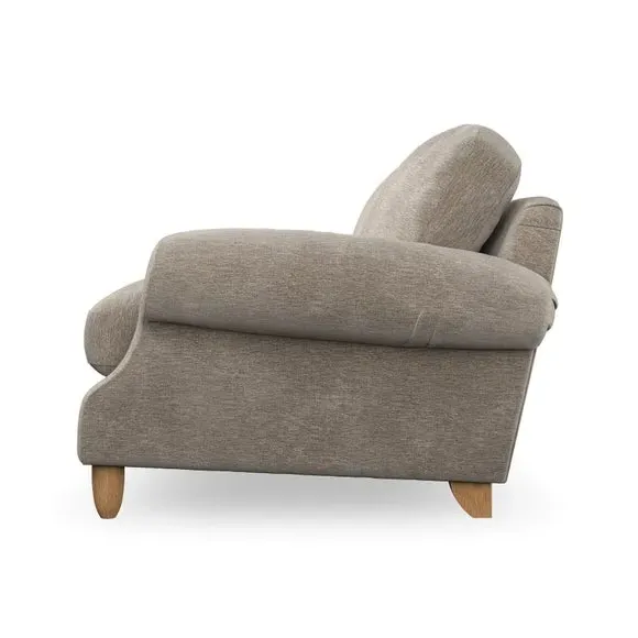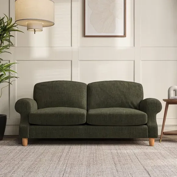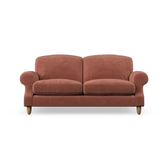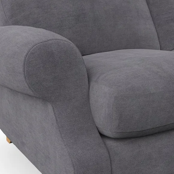 * Elegant style* Top stitched detail* High back cushions* Serpentine seat springs* Choose your support, fabric and leg colour This sofa features a cut back scroll arm and elegant, gently arched back cushions, providing both style and comfort. The top-stitched detail on the arm front adds a touch of sophistication. Higher back cushions with generous fibre filling offer excellent support for your back and shoulders. Customise your comfort by choosing between a low-maintenance foam seat or the inviting ‘Qualofill Blue’ fibre seat, made from 100% recycled polyester. Built for longevity, it includes serpentine seat springs for added comfort. The turned hardwood legs, available in two finishes, are easy to fit.