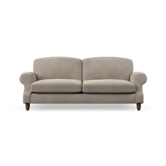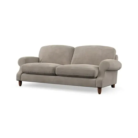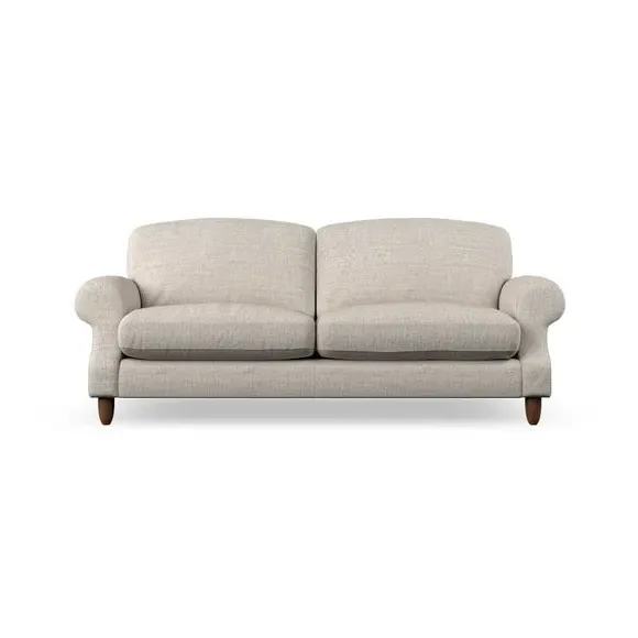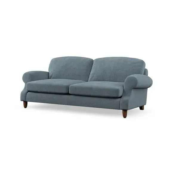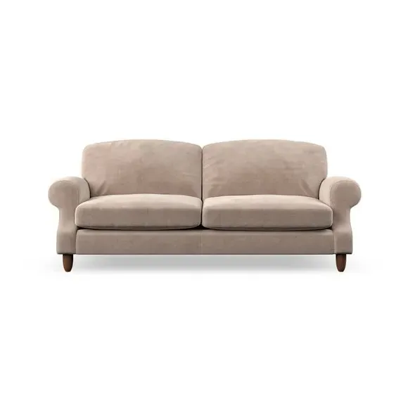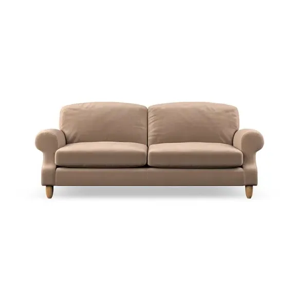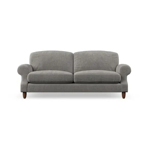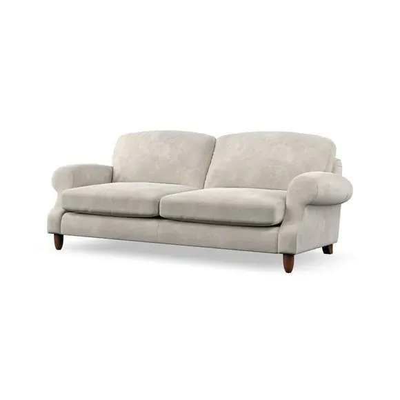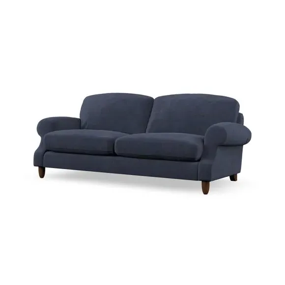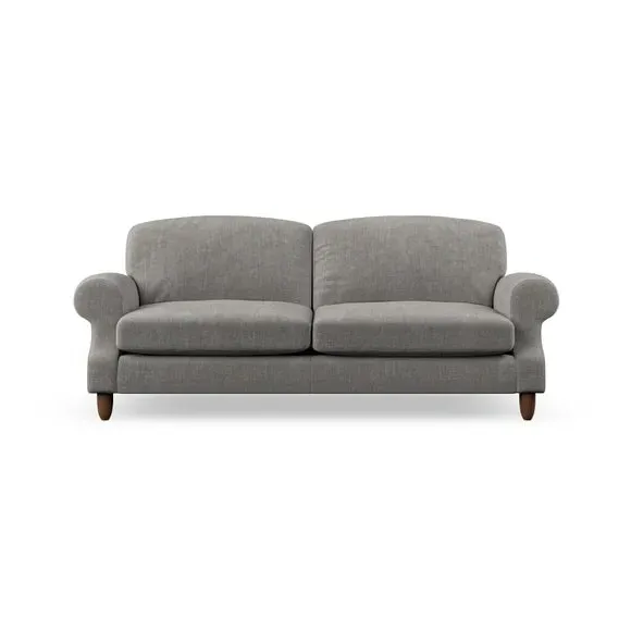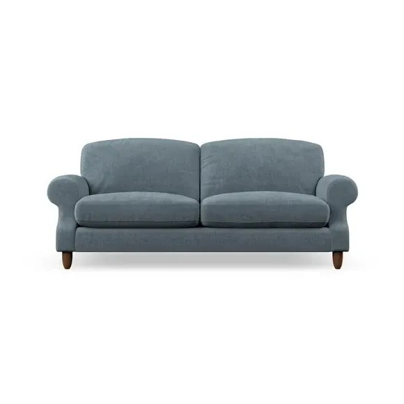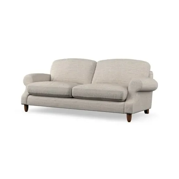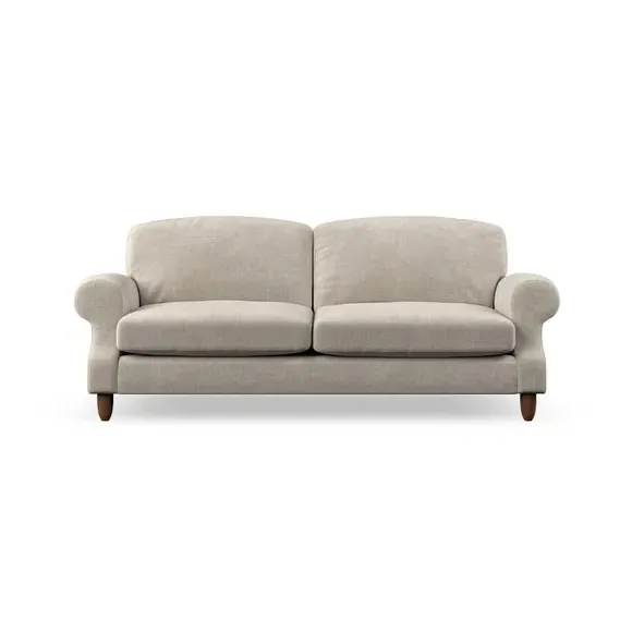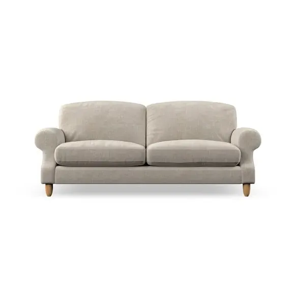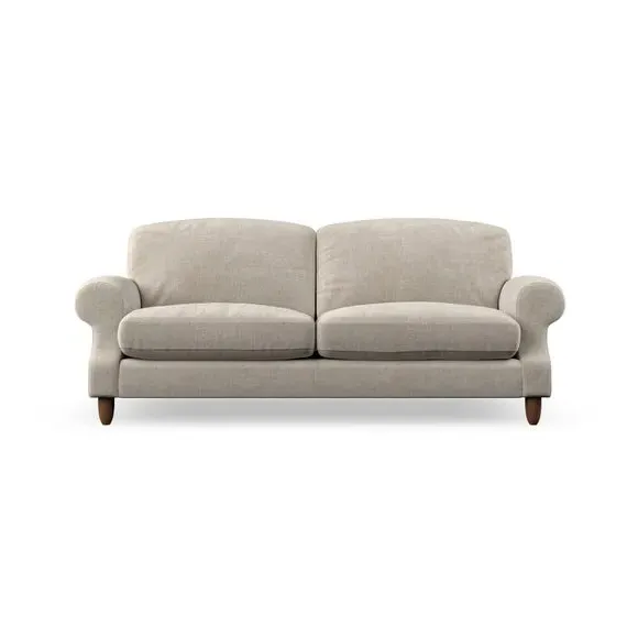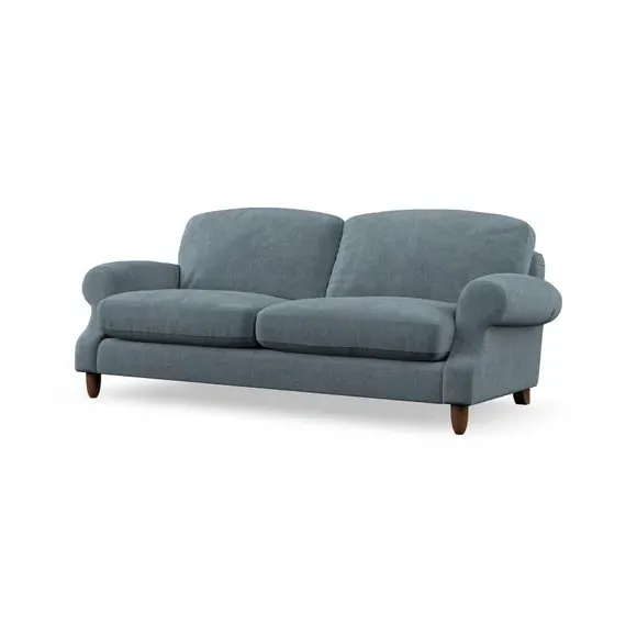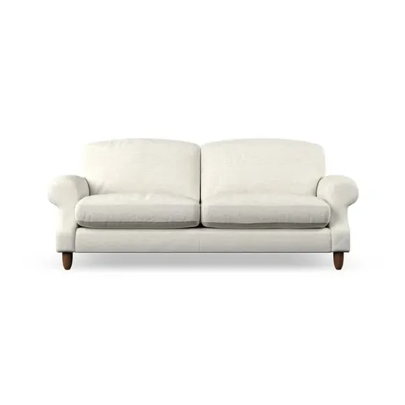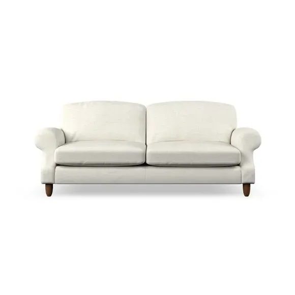 * Elegant style* Top stitched detail* High back cushions* Serpentine seat springs* Choose your support, fabric and leg colour This sofa features a cut back scroll arm and elegant, gently arched back cushions, providing both style and comfort. The top-stitched detail on the arm front adds a touch of sophistication. Higher back cushions with generous fibre filling offer excellent support for your back and shoulders. Customise your comfort by choosing between a low-maintenance foam seat or the inviting ‘Qualofill Blue’ fibre seat, made from 100% recycled polyester. Built for longevity, it includes serpentine seat springs for added comfort. The turned hardwood legs, available in two finishes, are easy to fit.