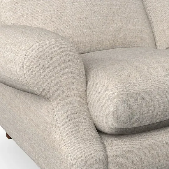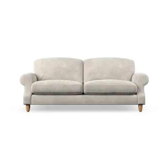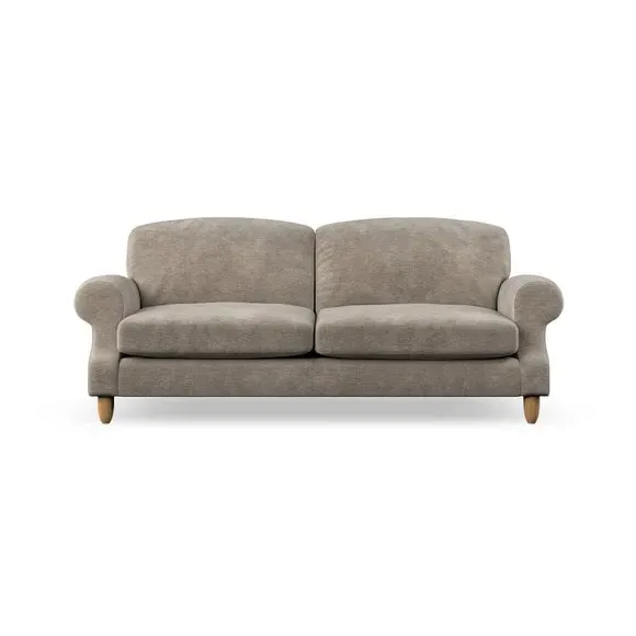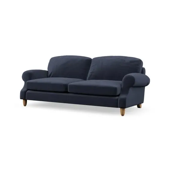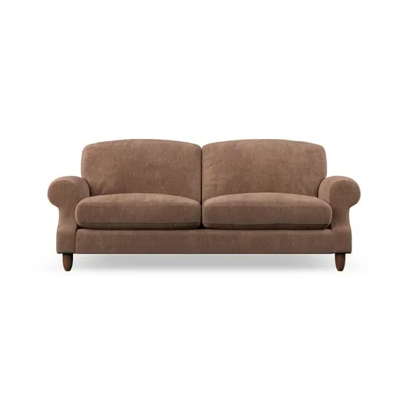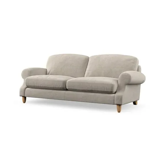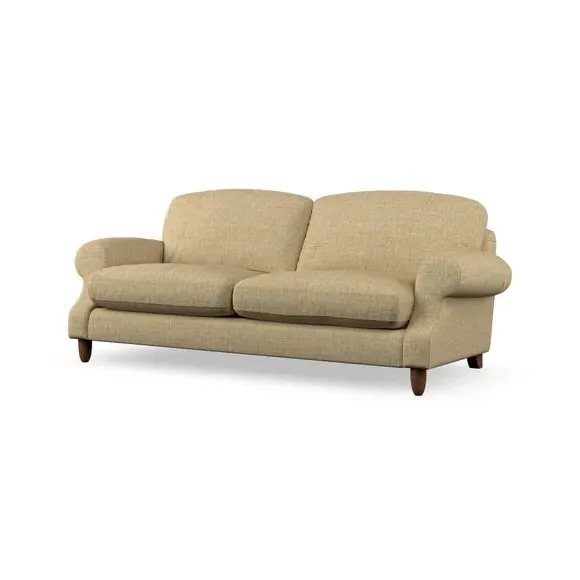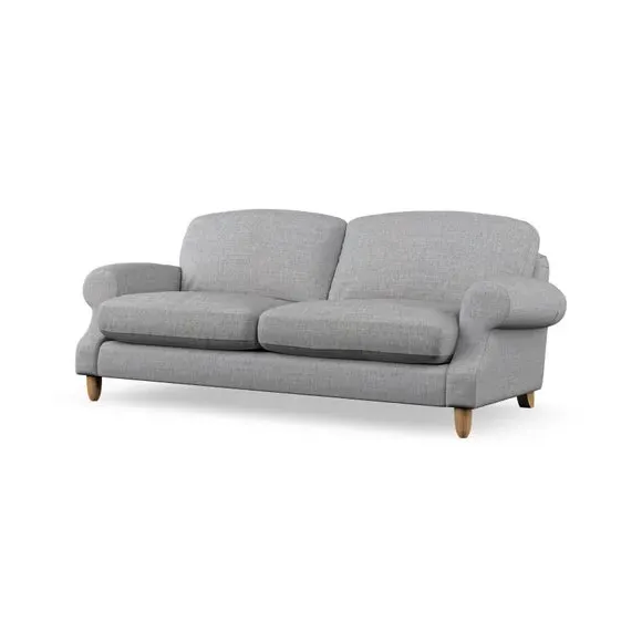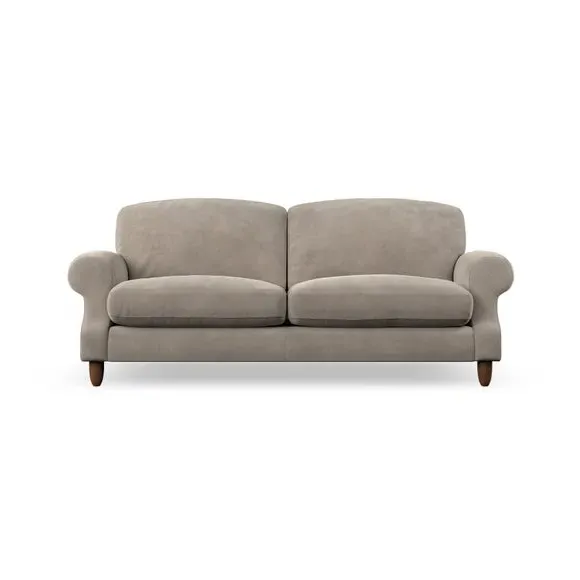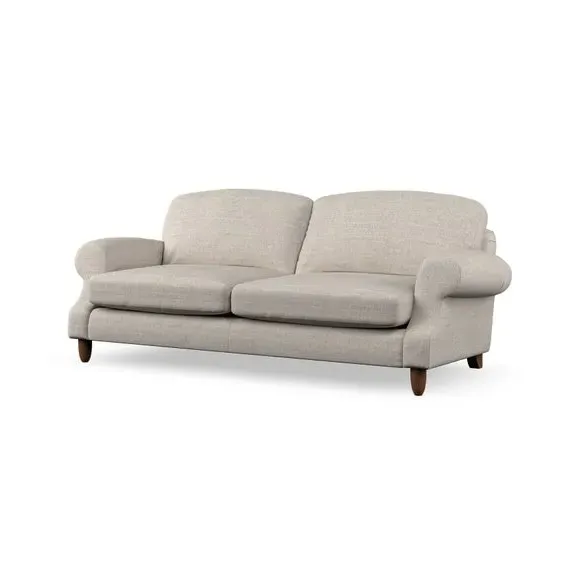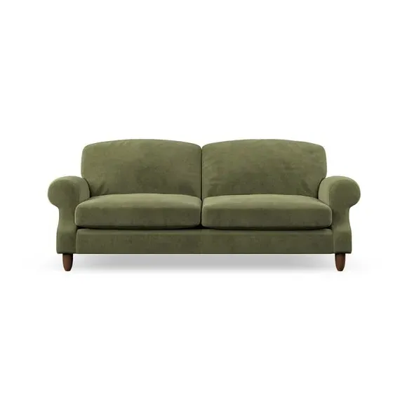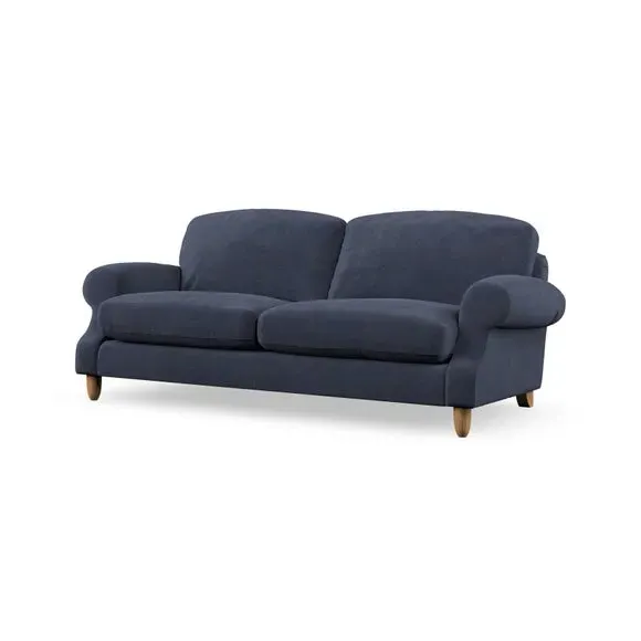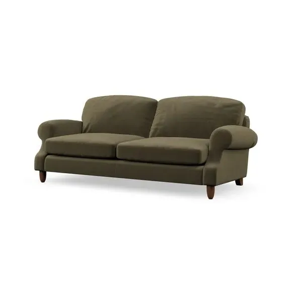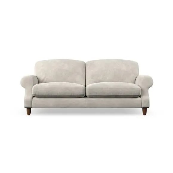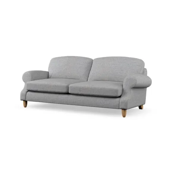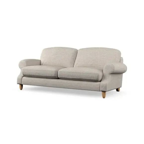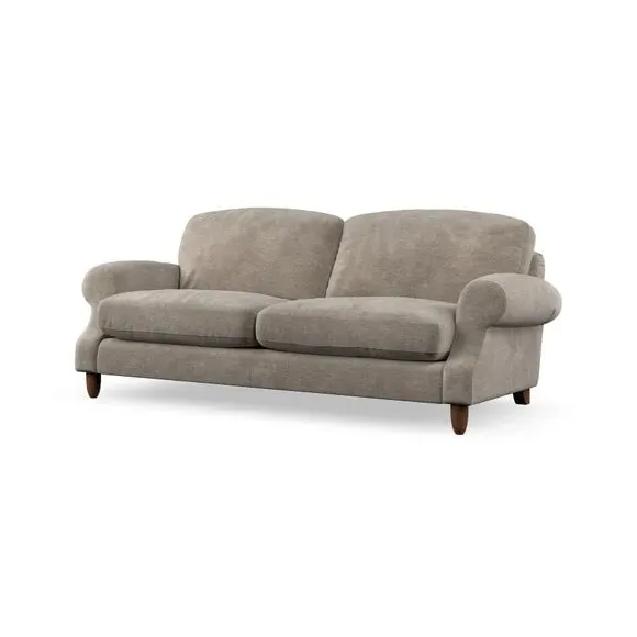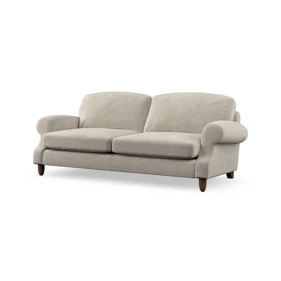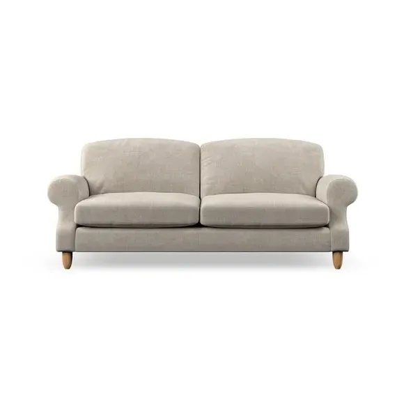 * Elegant style* Top stitched detail* High back cushions* Serpentine seat springs* Choose your support, fabric and leg colour This sofa features a cut back scroll arm and elegant, gently arched back cushions, providing both style and comfort. The top-stitched detail on the arm front adds a touch of sophistication. Higher back cushions with generous fibre filling offer excellent support for your back and shoulders. Customise your comfort by choosing between a low-maintenance foam seat or the inviting ‘Qualofill Blue’ fibre seat, made from 100% recycled polyester. Built for longevity, it includes serpentine seat springs for added comfort. The turned hardwood legs, available in two finishes, are easy to fit.