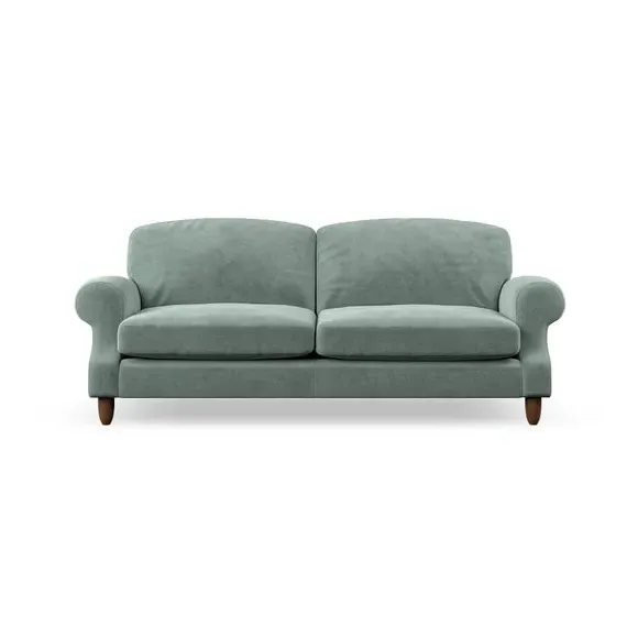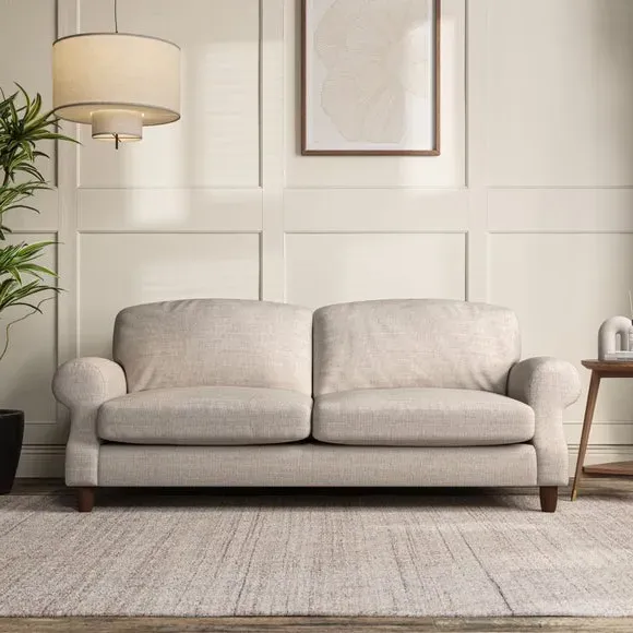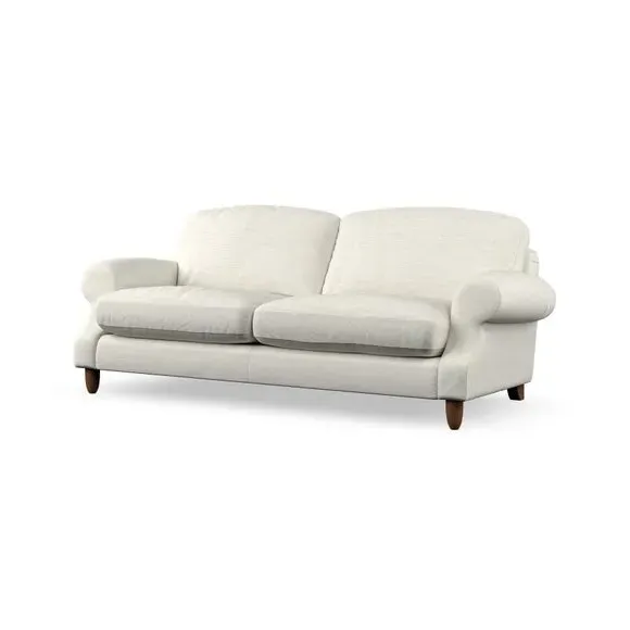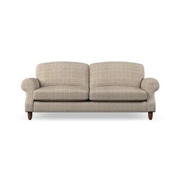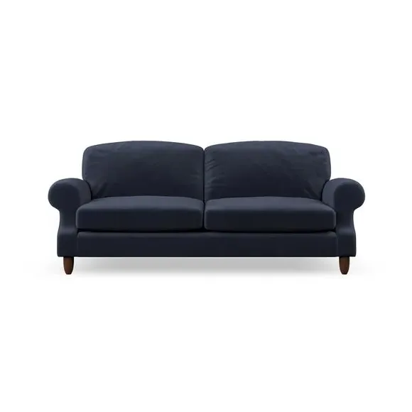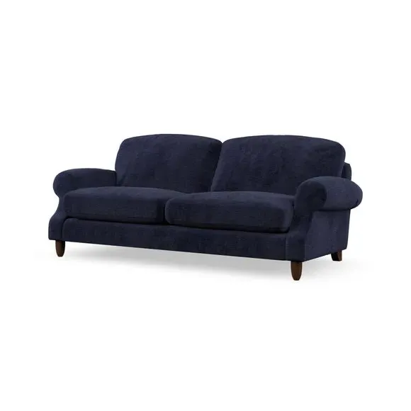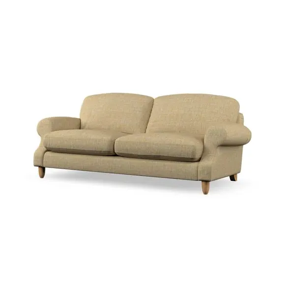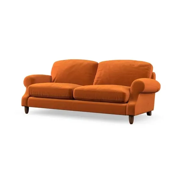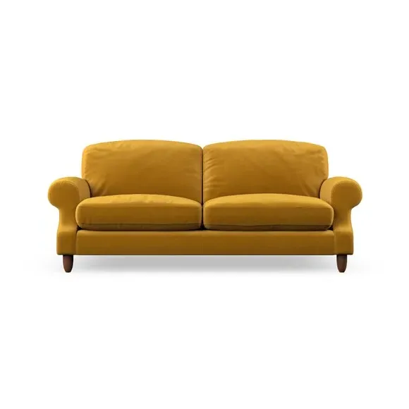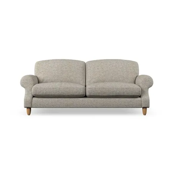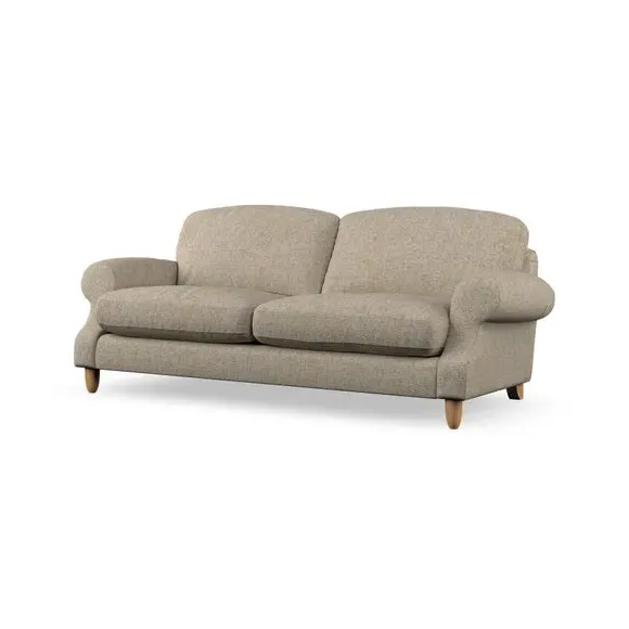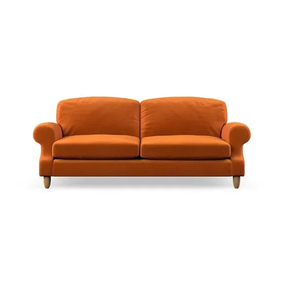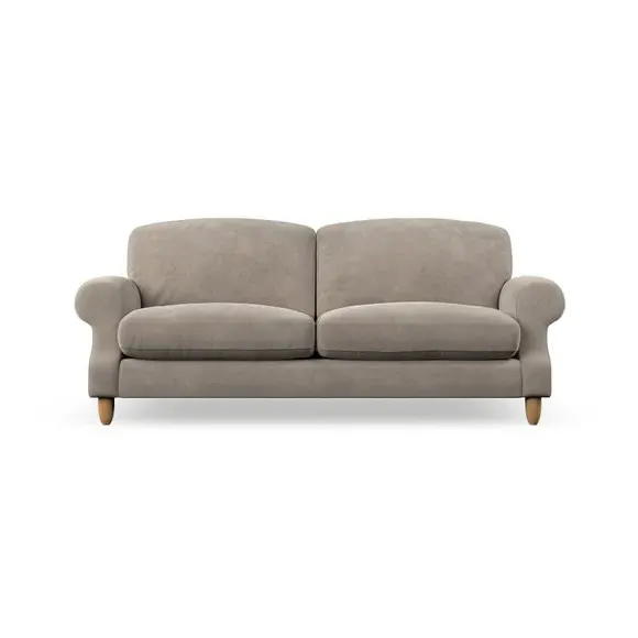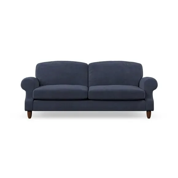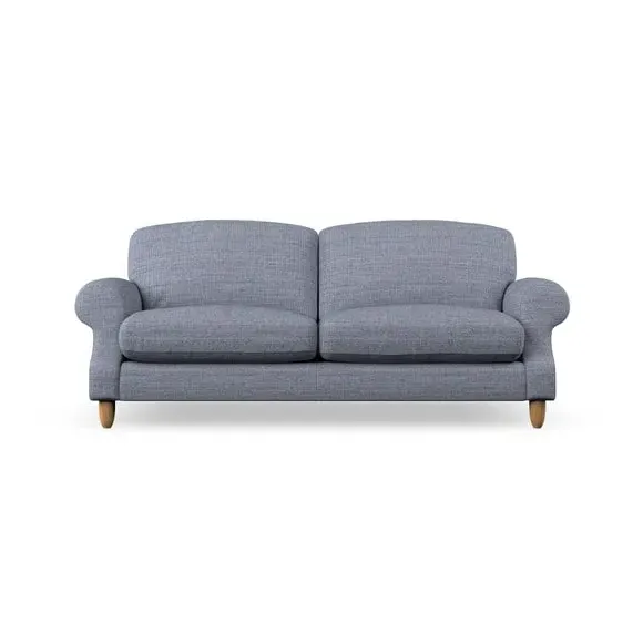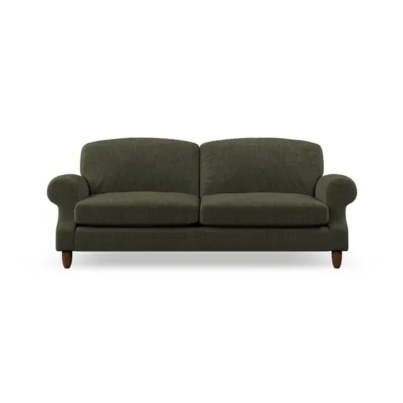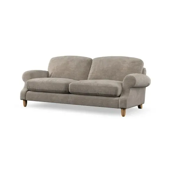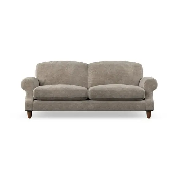 * Elegant style* Top stitched detail* High back cushions* Serpentine seat springs* Choose your support, fabric and leg colour This sofa features a cut back scroll arm and elegant, gently arched back cushions, providing both style and comfort. The top-stitched detail on the arm front adds a touch of sophistication. Higher back cushions with generous fibre filling offer excellent support for your back and shoulders. Customise your comfort by choosing between a low-maintenance foam seat or the inviting ‘Qualofill Blue’ fibre seat, made from 100% recycled polyester. Built for longevity, it includes serpentine seat springs for added comfort. The turned hardwood legs, available in two finishes, are easy to fit.