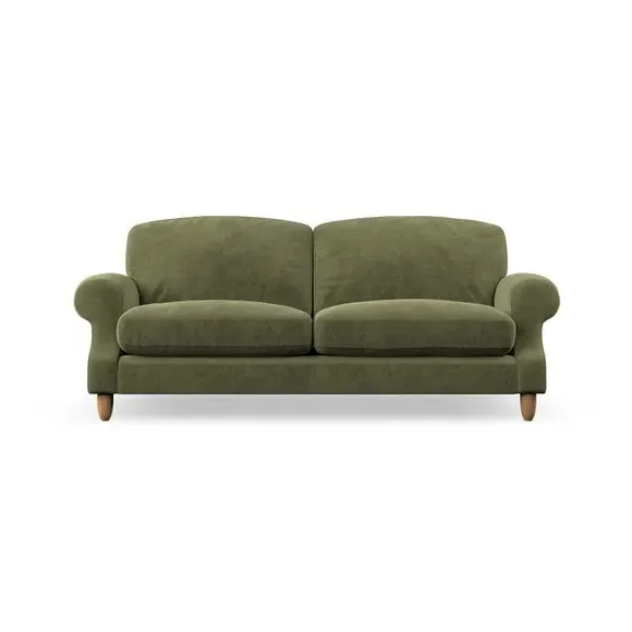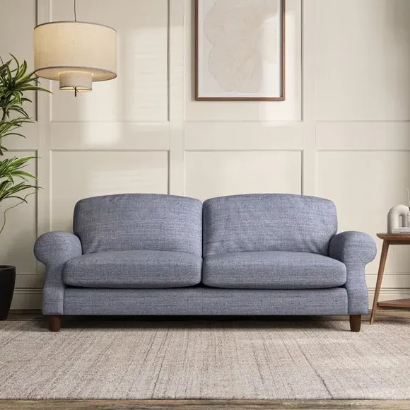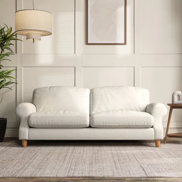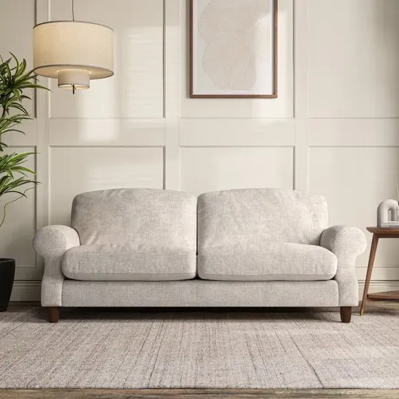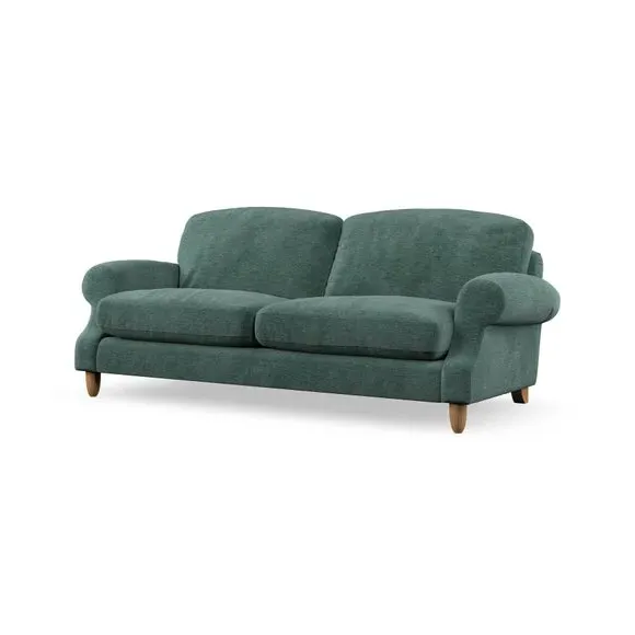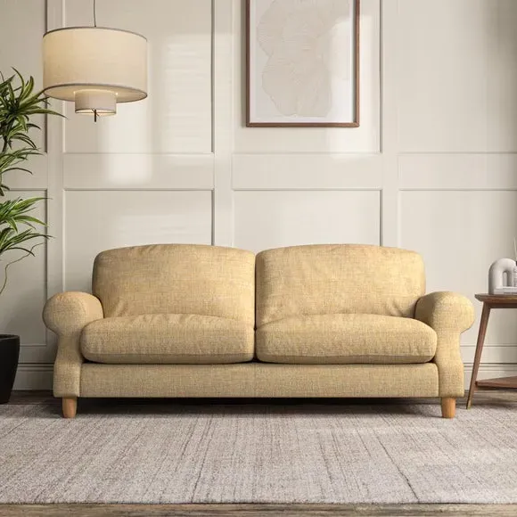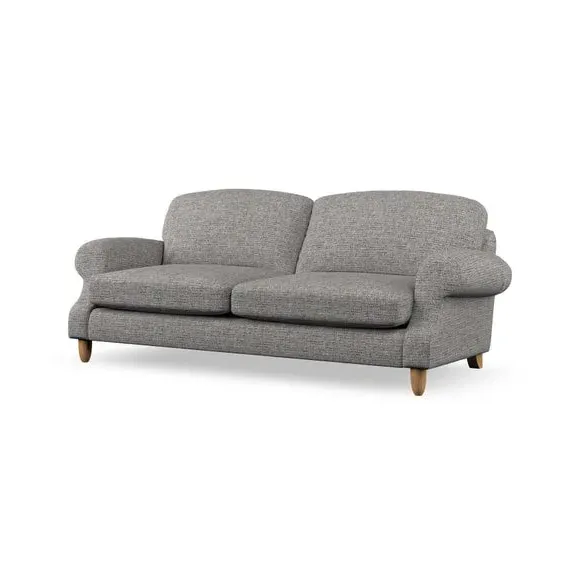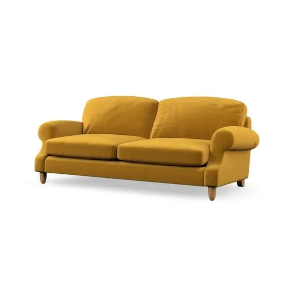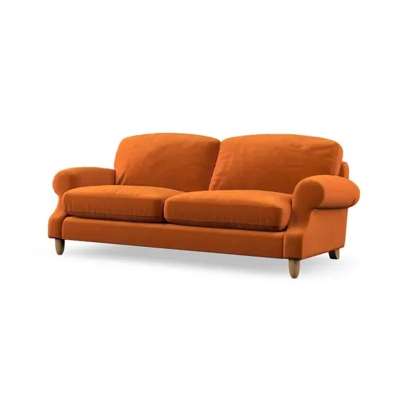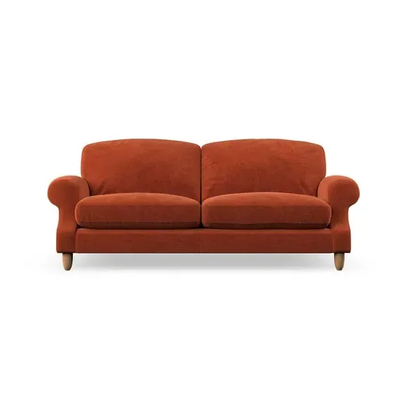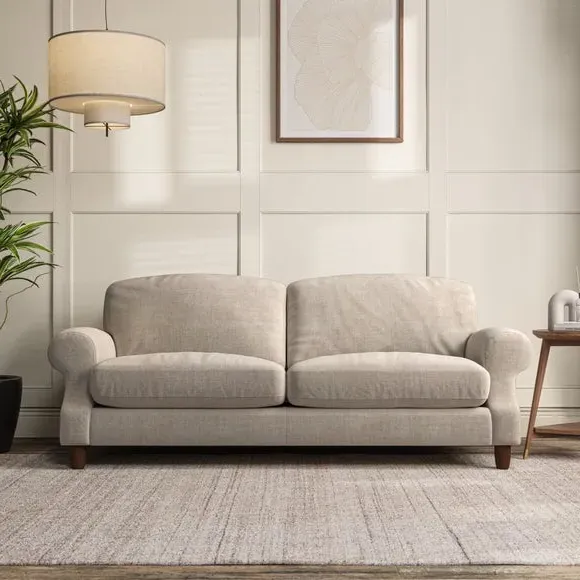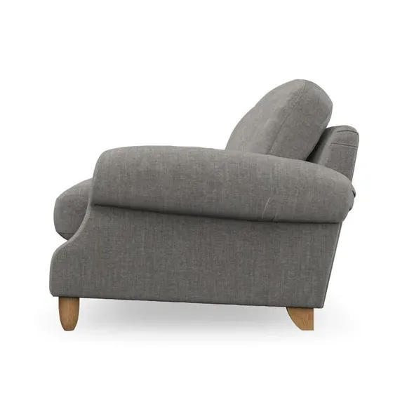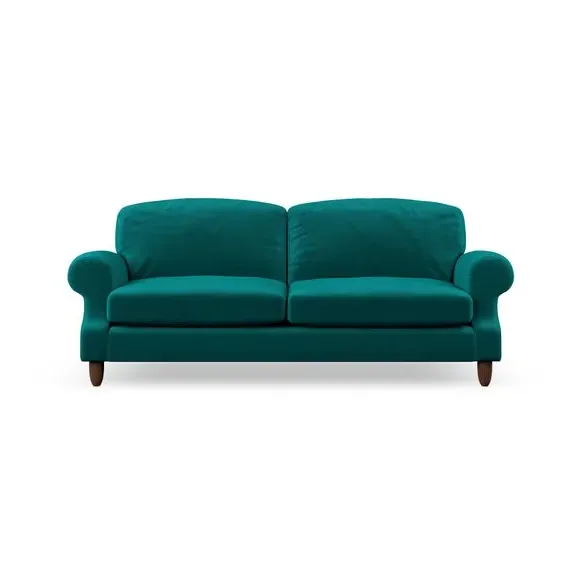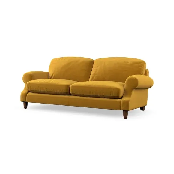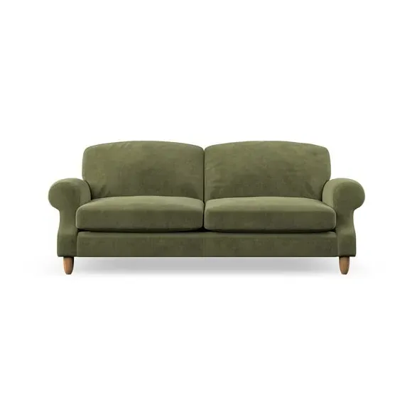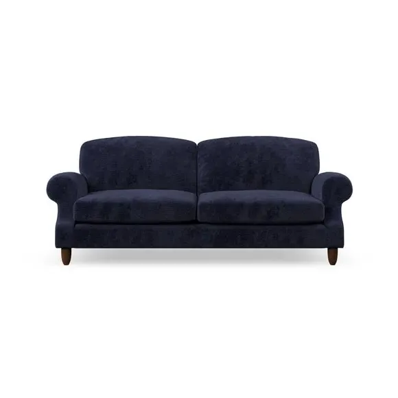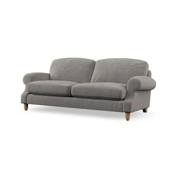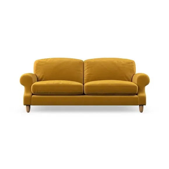 * Elegant style* Top stitched detail* High back cushions* Serpentine seat springs* Choose your support, fabric and leg colour This sofa features a cut back scroll arm and elegant, gently arched back cushions, providing both style and comfort. The top-stitched detail on the arm front adds a touch of sophistication. Higher back cushions with generous fibre filling offer excellent support for your back and shoulders. Customise your comfort by choosing between a low-maintenance foam seat or the inviting ‘Qualofill Blue’ fibre seat, made from 100% recycled polyester. Built for longevity, it includes serpentine seat springs for added comfort. The turned hardwood legs, available in two finishes, are easy to fit.