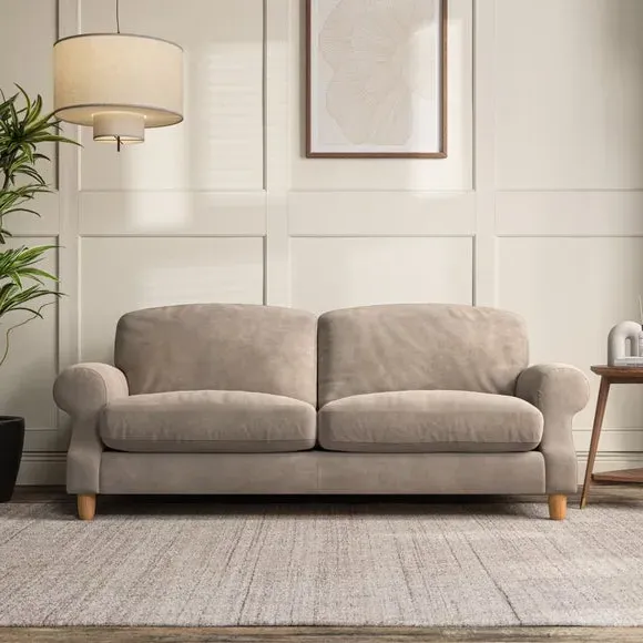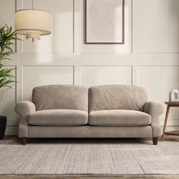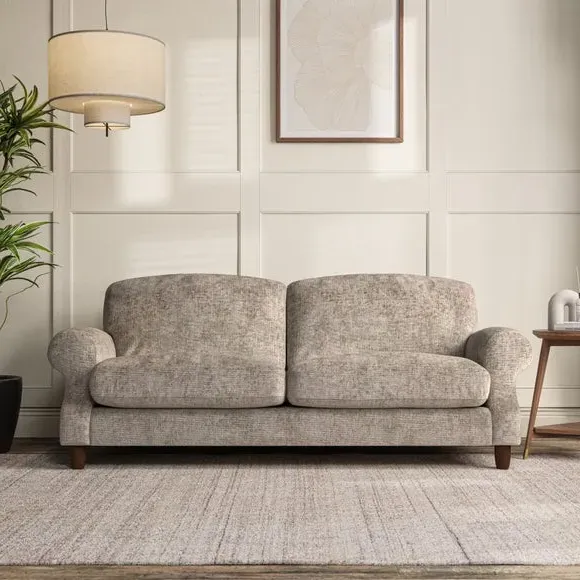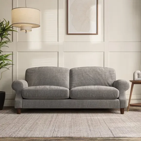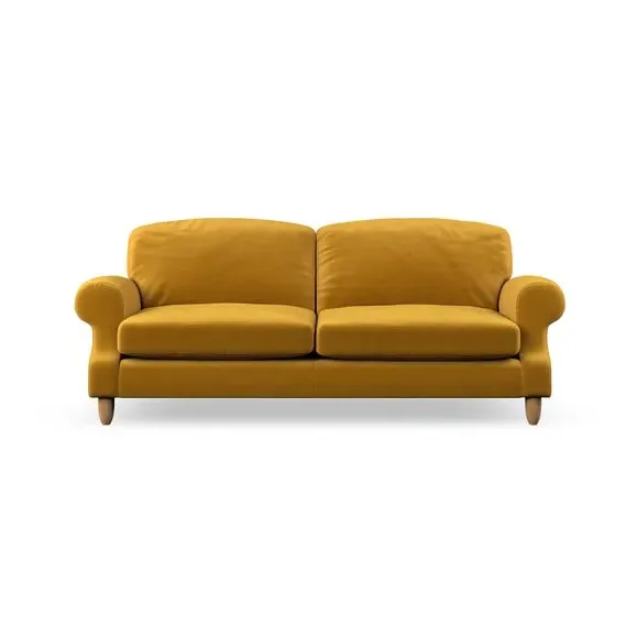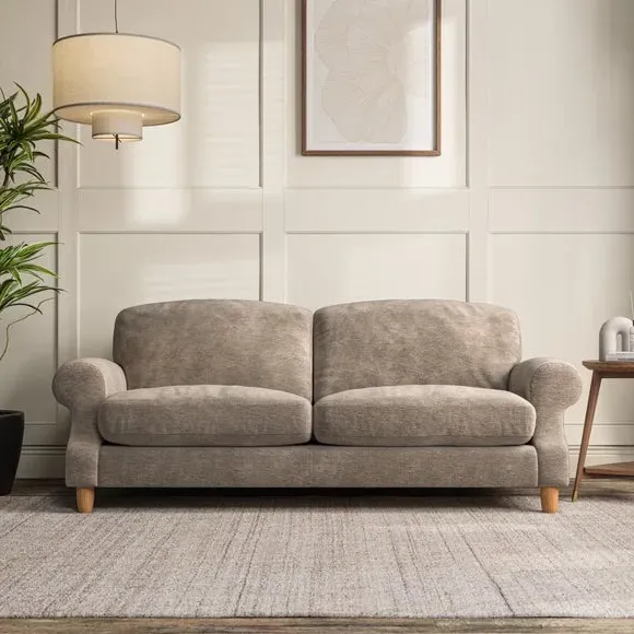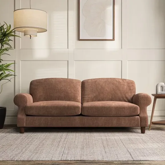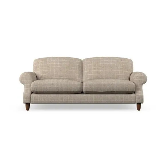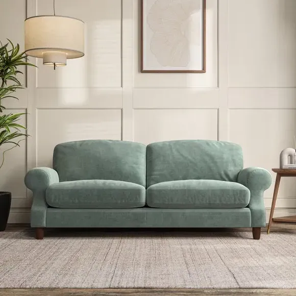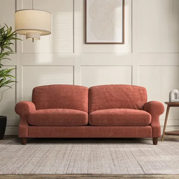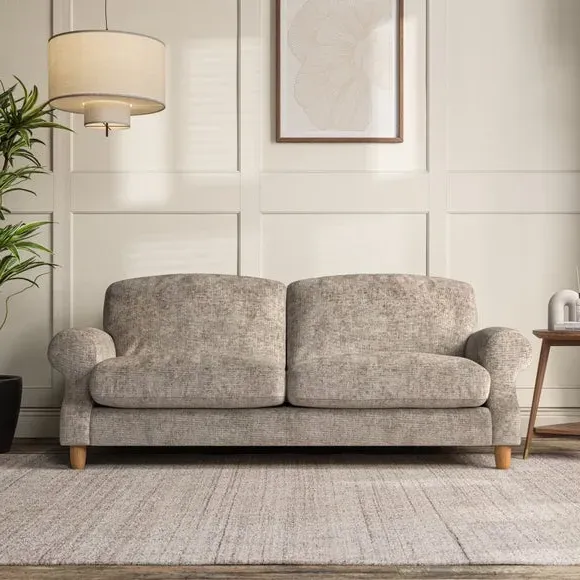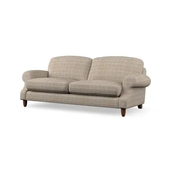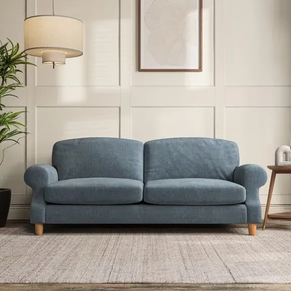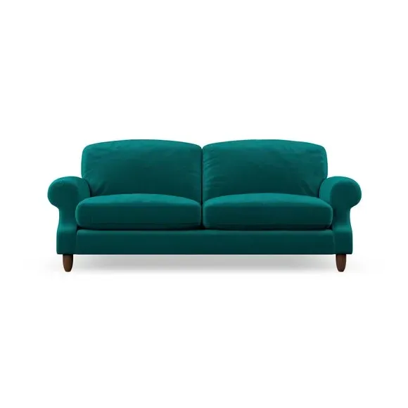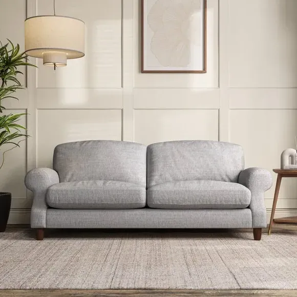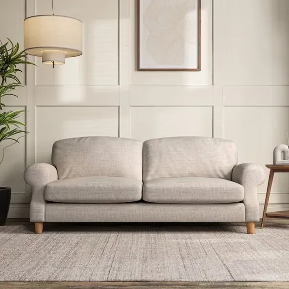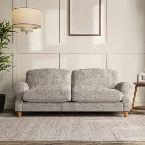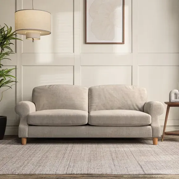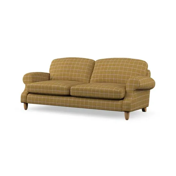 * Elegant style* Top stitched detail* High back cushions* Serpentine seat springs* Choose your support, fabric and leg colour This sofa features a cut back scroll arm and elegant, gently arched back cushions, providing both style and comfort. The top-stitched detail on the arm front adds a touch of sophistication. Higher back cushions with generous fibre filling offer excellent support for your back and shoulders. Customise your comfort by choosing between a low-maintenance foam seat or the inviting ‘Qualofill Blue’ fibre seat, made from 100% recycled polyester. Built for longevity, it includes serpentine seat springs for added comfort. The turned hardwood legs, available in two finishes, are easy to fit.